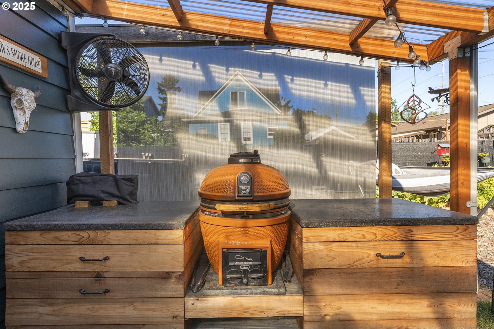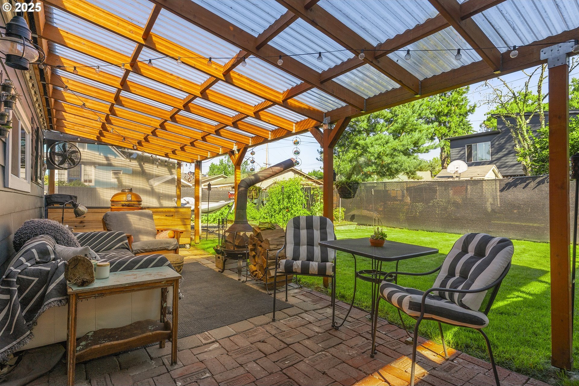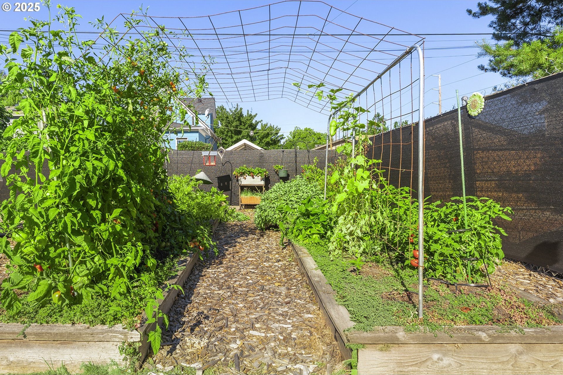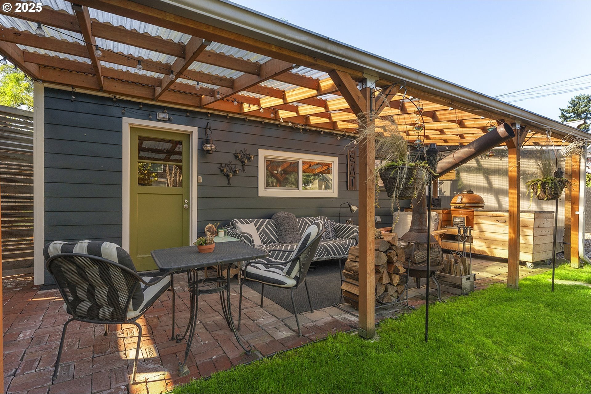 Thoughtfully updated cottage with surprising space and style. The sunny main level offers an inviting living room, hardwood floors, a cheerful kitchen, and two comfortable bedrooms. Downstairs, the basement adds flexible living with a family/media room, egress windows, bonus area for office and guests, plus ample storage. Step outside to a backyard made for Northwest living with a covered patio perfect for year-round gatherings, raised garden beds, lush landscaping, and a hot tub for unwinding under the stars. A detached garage provides extra storage or workshop potential, and the fully fenced yard keeps pets and play secure. Located on a quiet street just blocks to Rosa Parks Elementary plus quick access to University of Portland, St. Johns restaurants, New Seasons, parks, and bike trails. Easy commute routes and public transit nearby keep you connected while enjoying the charm of North Portland. This home pairs vintage character with modern comfort and invites you to spread out, entertain, and settle in. Every detail has been considered - this one is totally dialed. Energy Score:9!! [Home Energy Score = 9. HES Report at https://rpt.greenbuildingregistry.com/hes/OR10242319]