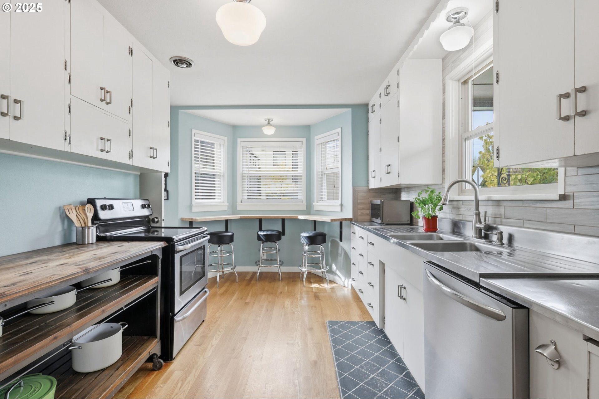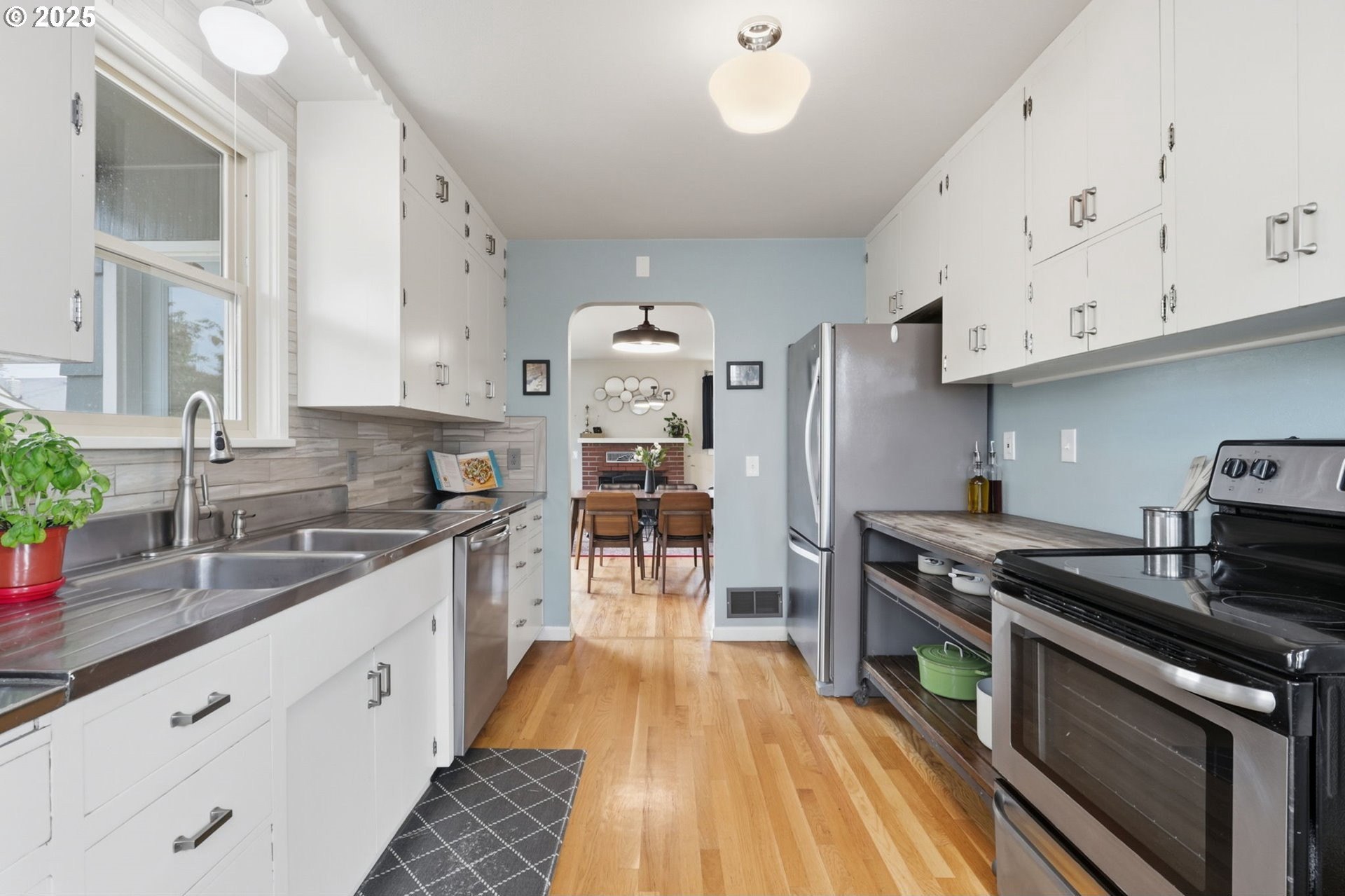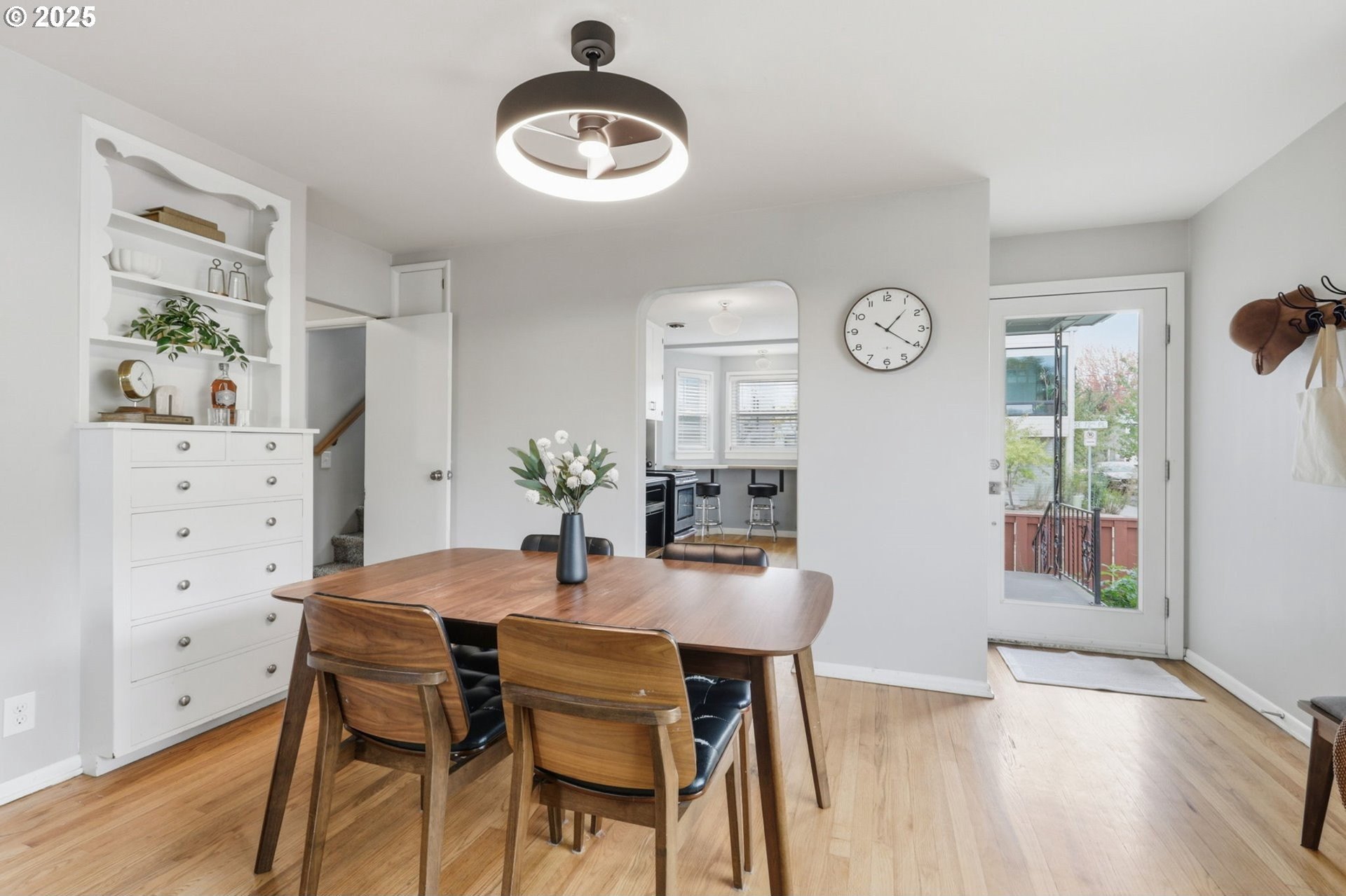 From the moment you step inside, you can feel the warmth and personality that fill this charming storybook-style home. Every space tells a story—from the darling built-ins, cozy fireplace and warm, rich hardwood floors to the timeless touches that make this home feel instantly welcoming. This flexible layout adapts to any lifestyle. Upstairs, the attic loft offers generous headroom, abundant built-ins, and its own mini-split for zoned comfort. Whether used as a spacious family room, home office, or quiet retreat, it’s a space that invites imagination. A newly remodeled lower level features eco-friendly cork flooring, two legal bedrooms, a full bath, and a private entrance—ideal for multigenerational living, guests, or generating rental income while maintaining separation. Behind glass French doors, you’ll find an expansive storage area with washer/dryer hookups and a large closet—perfect for dry goods, craft supplies, or turn it into your very own wine cellar. Beautifully cared for and thoughtfully updated, this home offers both comfort and efficiency, earning an impressive energy score of 8/10. Major improvements provide peace of mind: a new furnace and AC (2024), water heater (2021), fresh exterior paint, and newly stained fencing (2025). The fully fenced front and side yards create a safe, inviting space for little ones and furry companions to explore. Parking is effortless with a two-car tandem driveway, complete with a brand-new hardwired ChargePoint EV charger (2025)—convenience meets sustainability right at home. Perfectly situated just two blocks from Mt. Scott Park and the newly renovated Community Center, and one block from beloved local eateries, this home captures the essence of Portland living. The soon-to-reopen (2026) Portland Mercado will bring vibrant food trucks, a rooftop bar, and community gathering spaces just steps away. More than a house, this is a place to slow down, connect, and create lasting memories—a home that simply feels right. [Home Energy Score = 8. HES Report at https://rpt.greenbuildingregistry.com/hes/OR10242314]