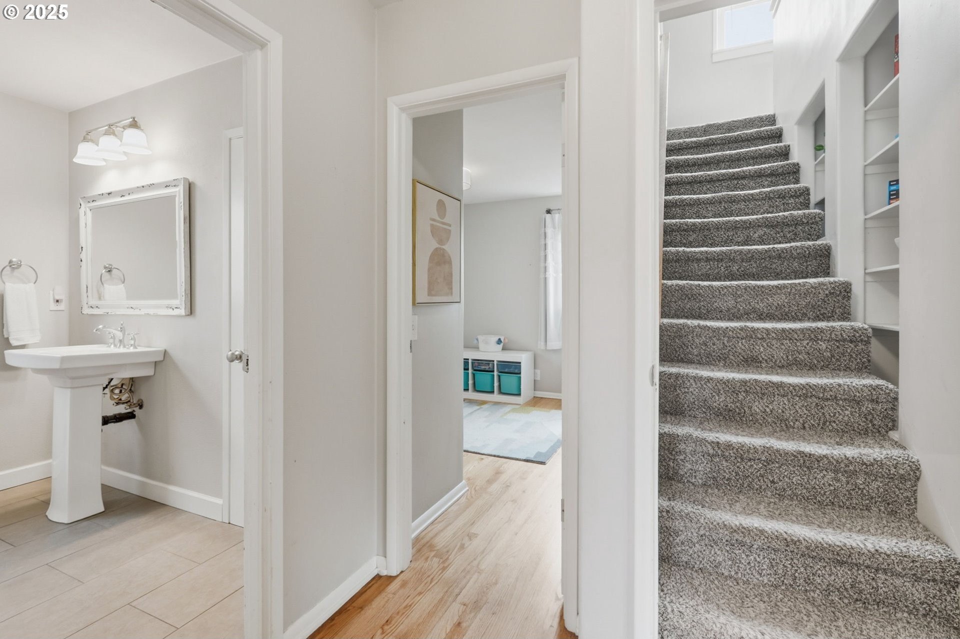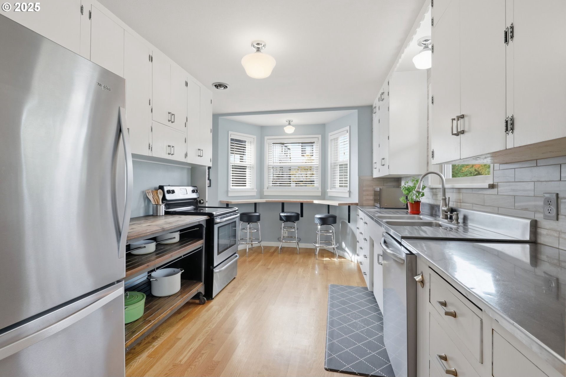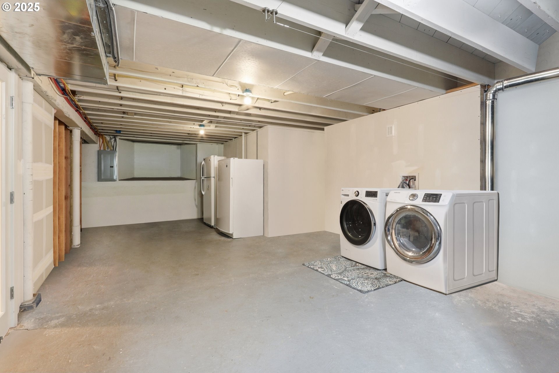 From the moment you step inside, you can feel the warmth and personality that fill this charming storybook-style home. Every space tells a story—from the darling built-ins, cozy fireplace and warm, rich hardwood floors to the timeless touches that make this home feel instantly welcoming. This flexible layout adapts to any lifestyle. Upstairs, the attic loft offers generous headroom, abundant built-ins, and its own mini-split for zoned comfort. Whether used as a spacious family room, home office, or quiet retreat, it’s a space that invites imagination. A newly remodeled lower level features eco-friendly cork flooring, two legal bedrooms, a full bath, and a private entrance—ideal for multigenerational living, guests, or generating rental income while maintaining separation. Behind glass French doors, you’ll find an expansive storage area with washer/dryer hookups and a large closet—perfect for dry goods, craft supplies, or turn it into your very own wine cellar. Beautifully cared for and thoughtfully updated, this home offers both comfort and efficiency, earning an impressive energy score of 8/10. Major improvements provide peace of mind: a new furnace and AC (2024), water heater (2021), fresh exterior paint, and newly stained fencing (2025). The fully fenced front and side yards create a safe, inviting space for little ones and furry companions to explore. Parking is effortless with a two-car tandem driveway, complete with a brand-new hardwired ChargePoint EV charger (2025)—convenience meets sustainability right at home. Perfectly situated just two blocks from Mt. Scott Park and the newly renovated Community Center, and one block from beloved local eateries, this home captures the essence of Portland living. The soon-to-reopen (2026) Portland Mercado will bring vibrant food trucks, a rooftop bar, and community gathering spaces just steps away. More than a house, this is a place to slow down, connect, and create lasting memories—a home that simply feels right. [Home Energy Score = 8. HES Report at https://rpt.greenbuildingregistry.com/hes/OR10242314]