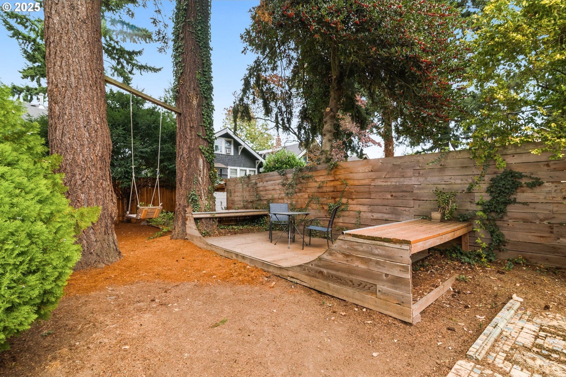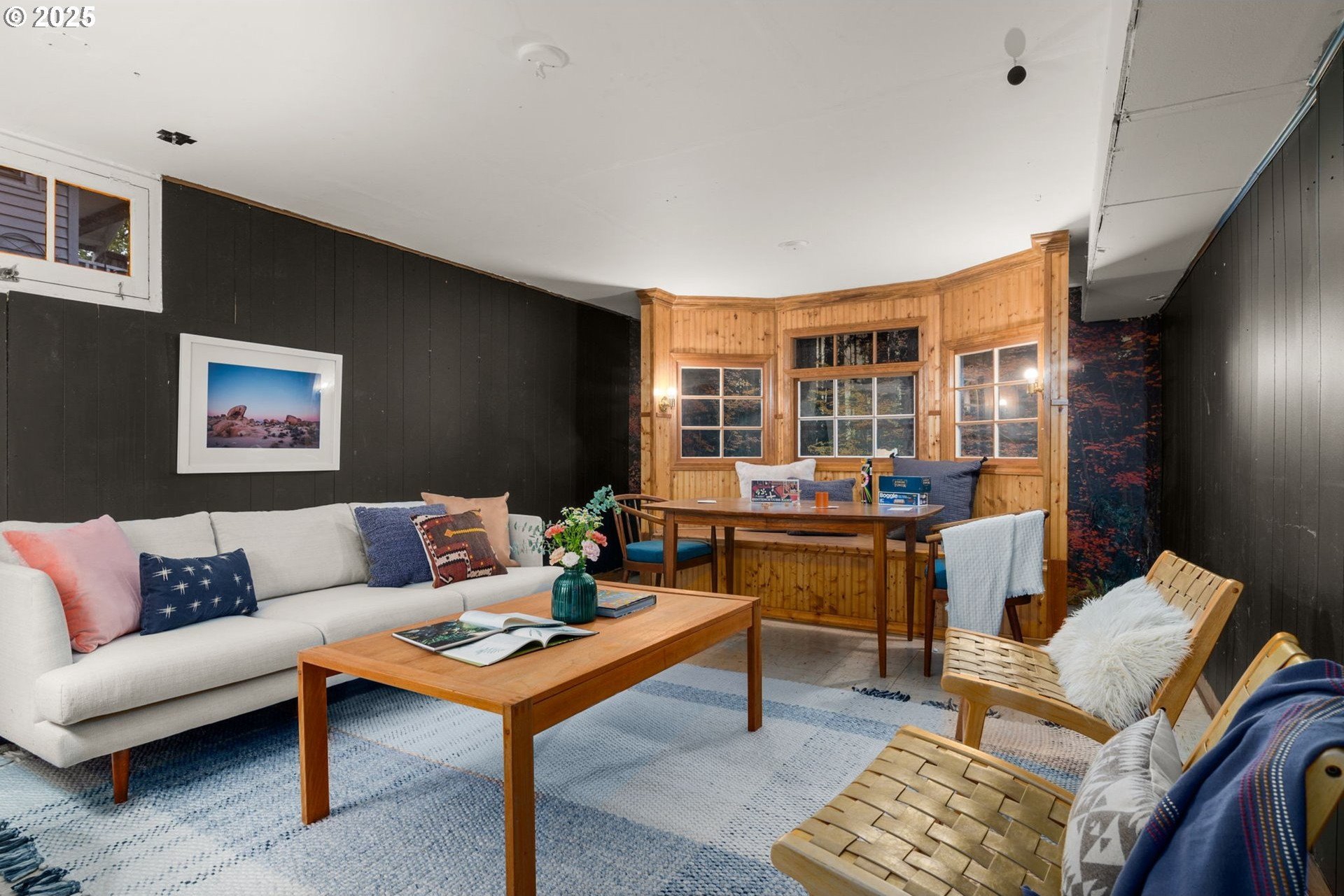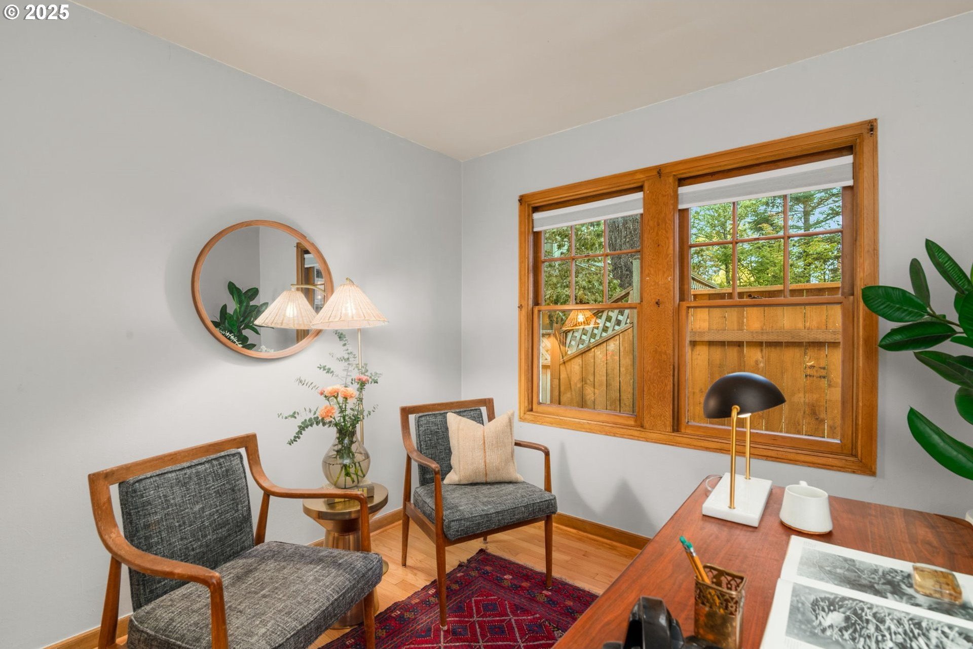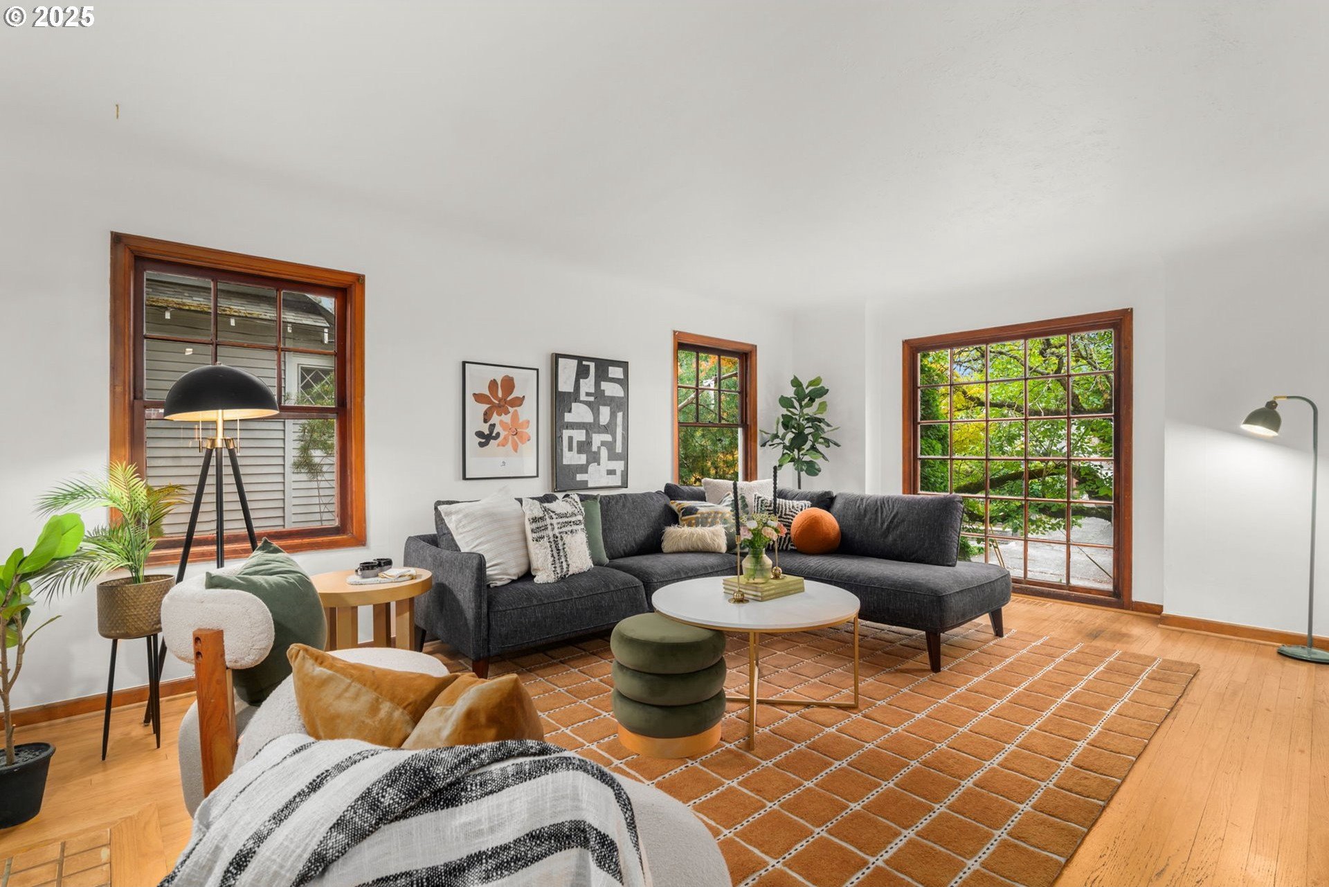 In the heart of Portland’s Mt. Tabor neighborhood, this charming cottage with a Tudor twist offers style, warmth, and walkability. Set above the street for privacy, the home feels bright and airy throughout, with large windows that frame leafy views and fill every room with natural light. Original woodwork, coved ceilings, and custom built-ins showcase timeless craftsmanship, while oak floors add warmth and character. The main level features three bedrooms—including an oversized primary—and a stylish bathroom with high-end fixtures and heated tile floors. The kitchen is bright and efficient, with stainless steel appliances and bay windows overlooking the front yard. Downstairs, the spacious basement includes a cozy family room with a fireplace, a half bath, home gym/flex space, laundry area, and generous storage. Outdoor living is exceptional: the front yard features a covered outdoor kitchen with slate counters and a built-in gas grill, plus a welcoming porch and deck perfect for morning coffee or evening sunsets. Out back, a large covered deck, playhouse, and peaceful park-like setting invite relaxation year-round. With a newer roof, gutters, and furnace, this home is move-in ready and ideally located—just blocks from Mt. Tabor Park, coffee shops, restaurants, and top-rated schools. [Home Energy Score = 3. HES Report at https://rpt.greenbuildingregistry.com/hes/OR10026619]