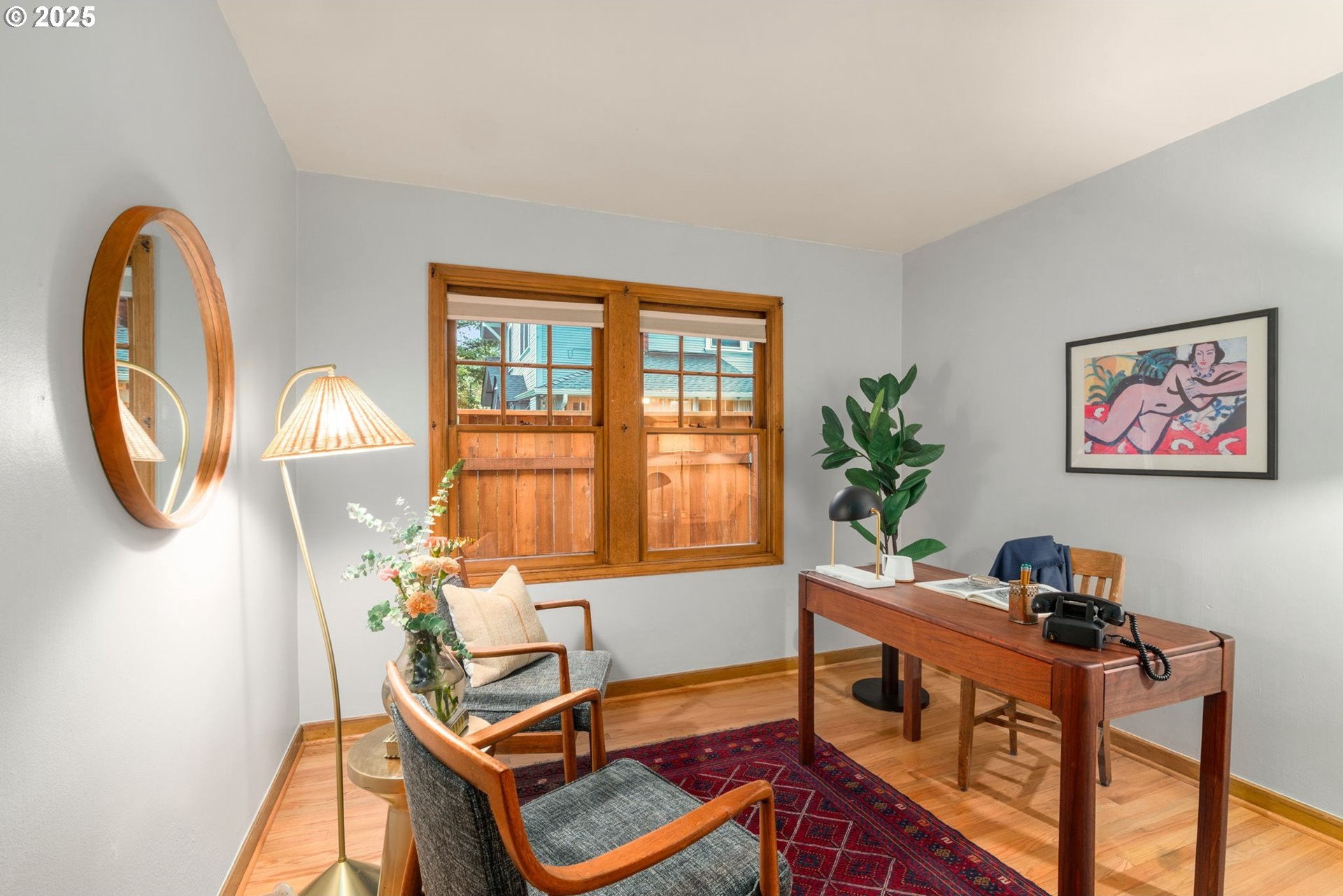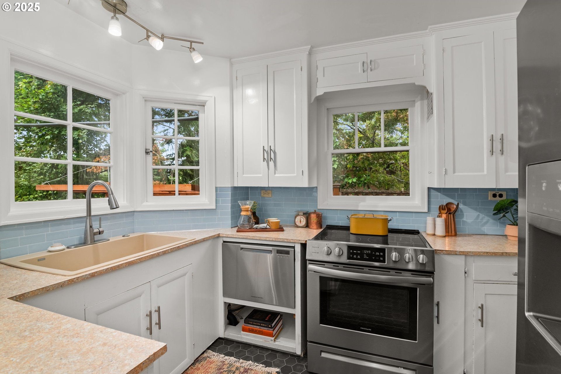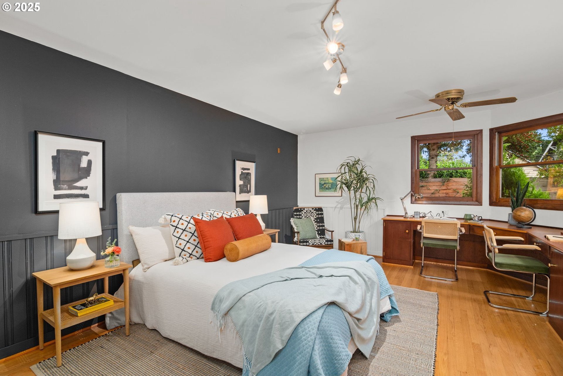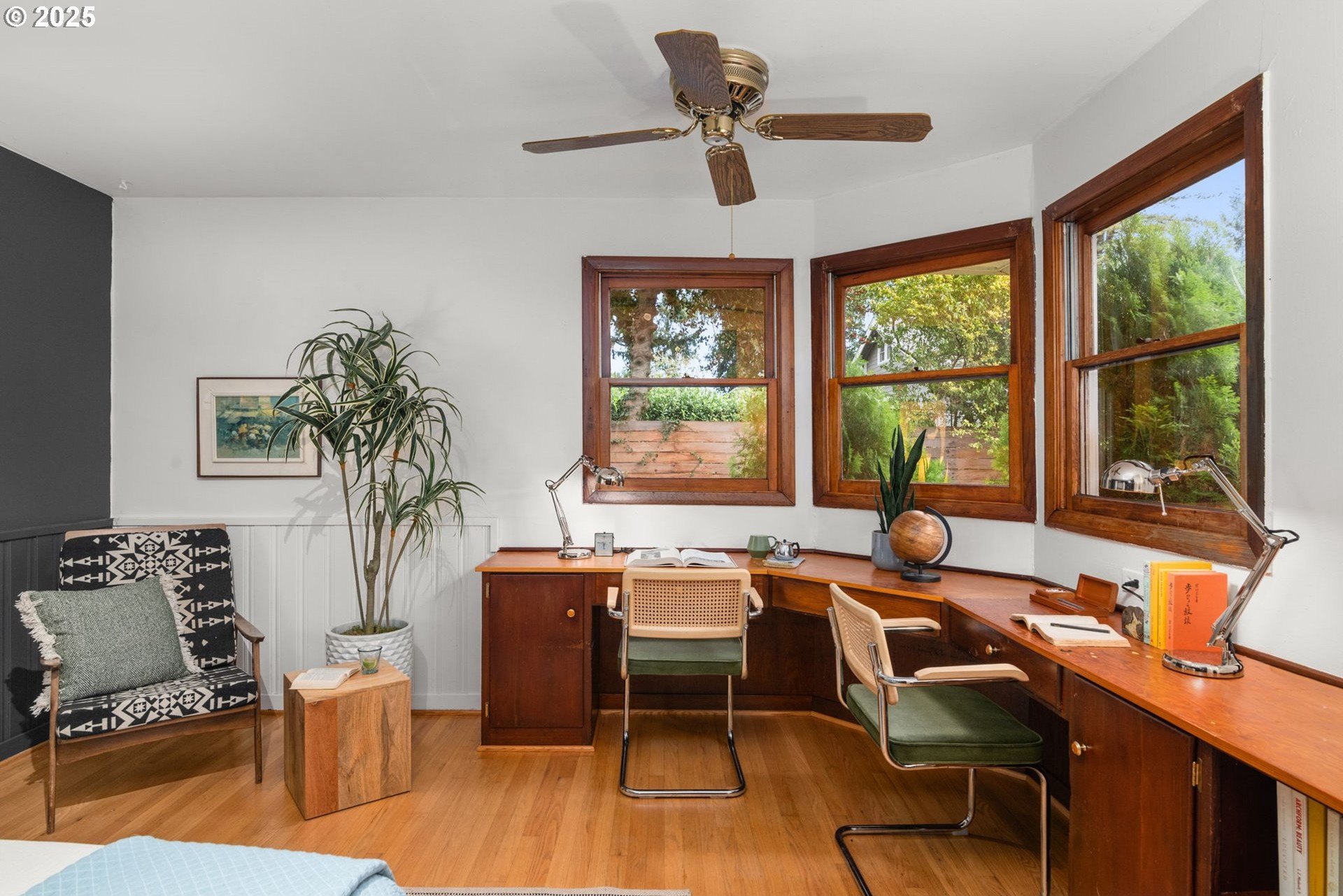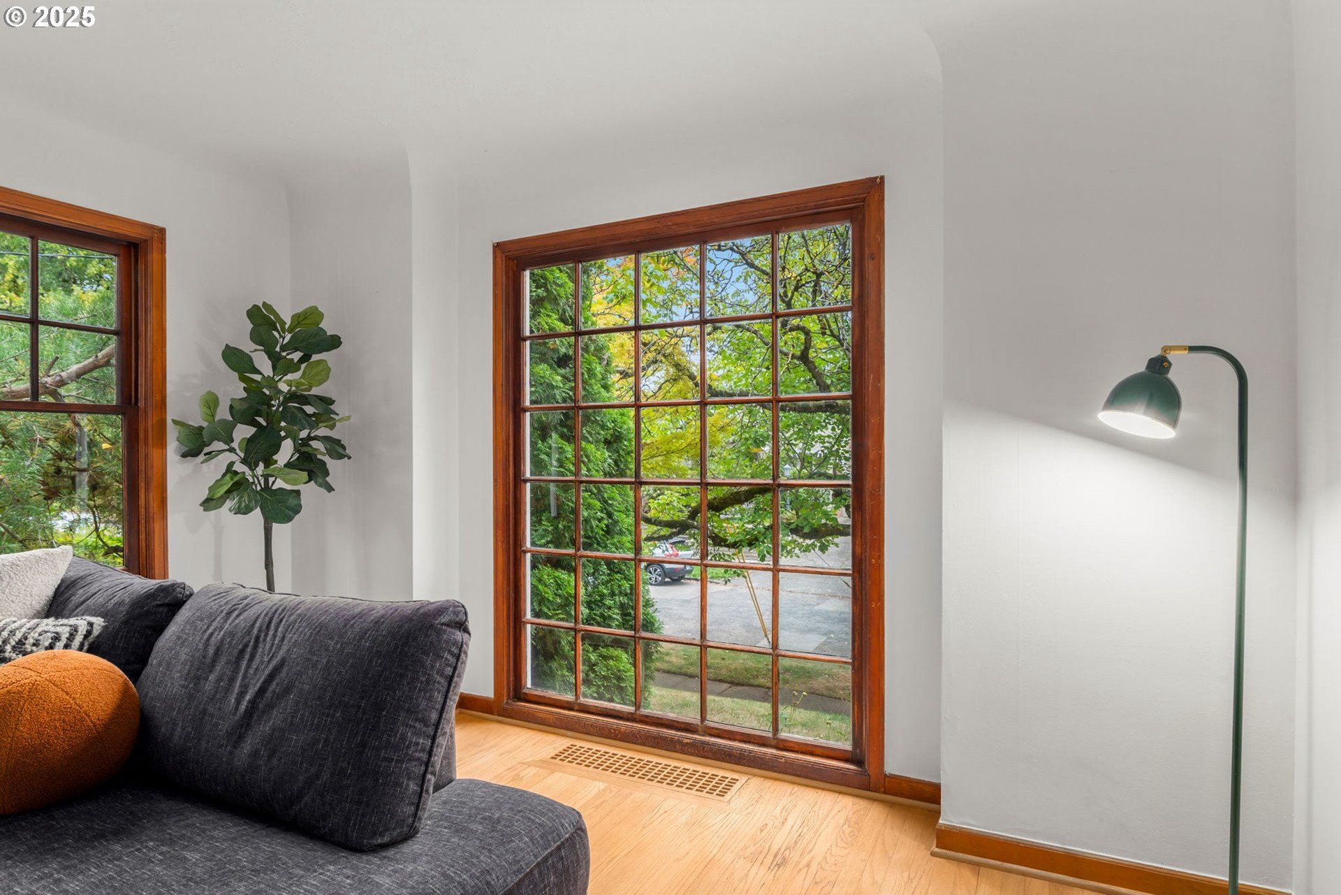 In the heart of Portland’s Mt. Tabor neighborhood, this charming cottage with a Tudor twist offers style, warmth, and walkability. Set above the street for privacy, the home feels bright and airy throughout, with large windows that frame leafy views and fill every room with natural light. Original woodwork, coved ceilings, and custom built-ins showcase timeless craftsmanship, while oak floors add warmth and character. The main level features three bedrooms—including an oversized primary—and a stylish bathroom with high-end fixtures and heated tile floors. The kitchen is bright and efficient, with stainless steel appliances and bay windows overlooking the front yard. Downstairs, the spacious basement includes a cozy family room with a fireplace, a half bath, home gym/flex space, laundry area, and generous storage. Outdoor living is exceptional: the front yard features a covered outdoor kitchen with slate counters and a built-in gas grill, plus a welcoming porch and deck perfect for morning coffee or evening sunsets. Out back, a large covered deck, playhouse, and peaceful park-like setting invite relaxation year-round. With a newer roof, gutters, and furnace, this home is move-in ready and ideally located—just blocks from Mt. Tabor Park, coffee shops, restaurants, and top-rated schools. [Home Energy Score = 3. HES Report at https://rpt.greenbuildingregistry.com/hes/OR10026619]
