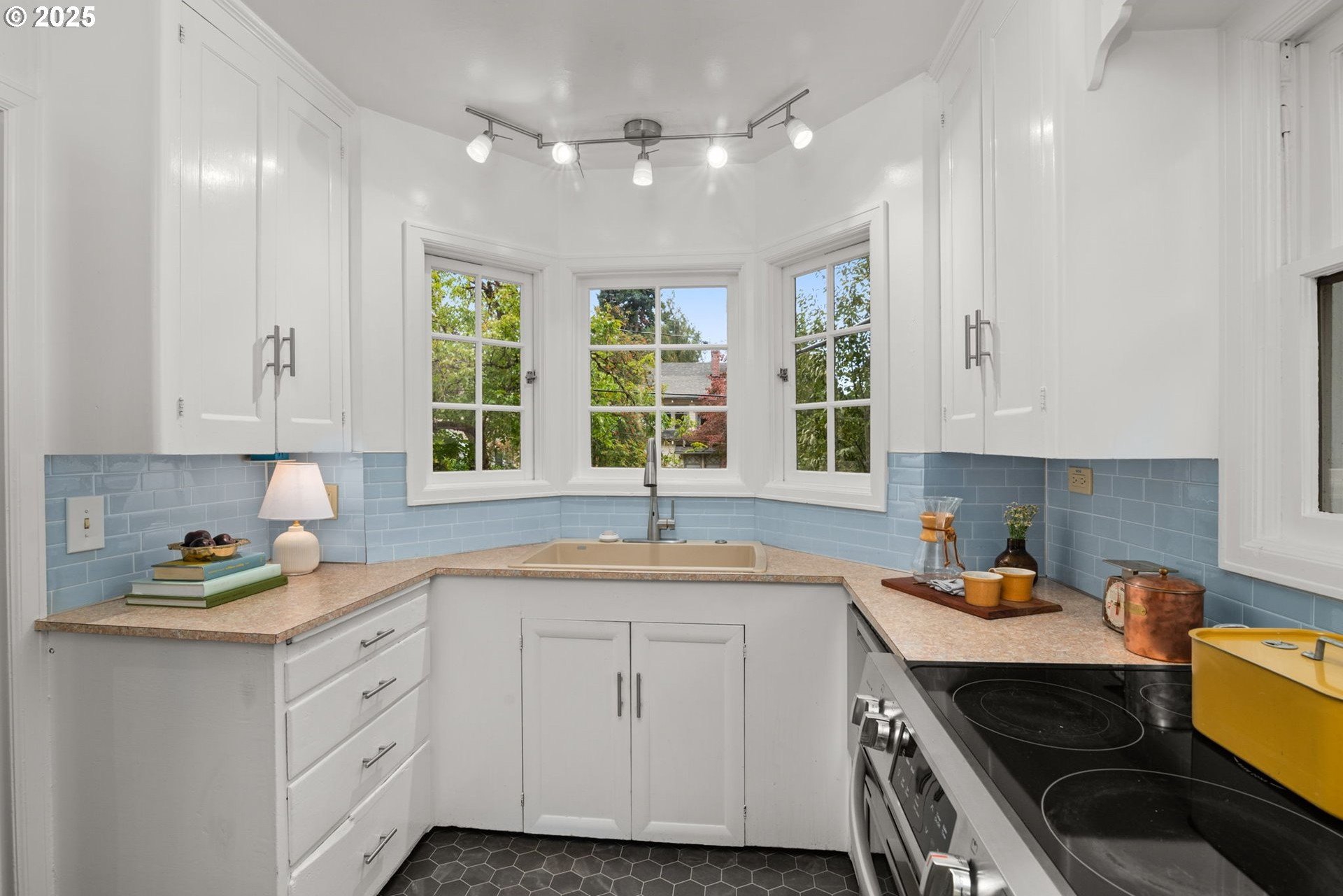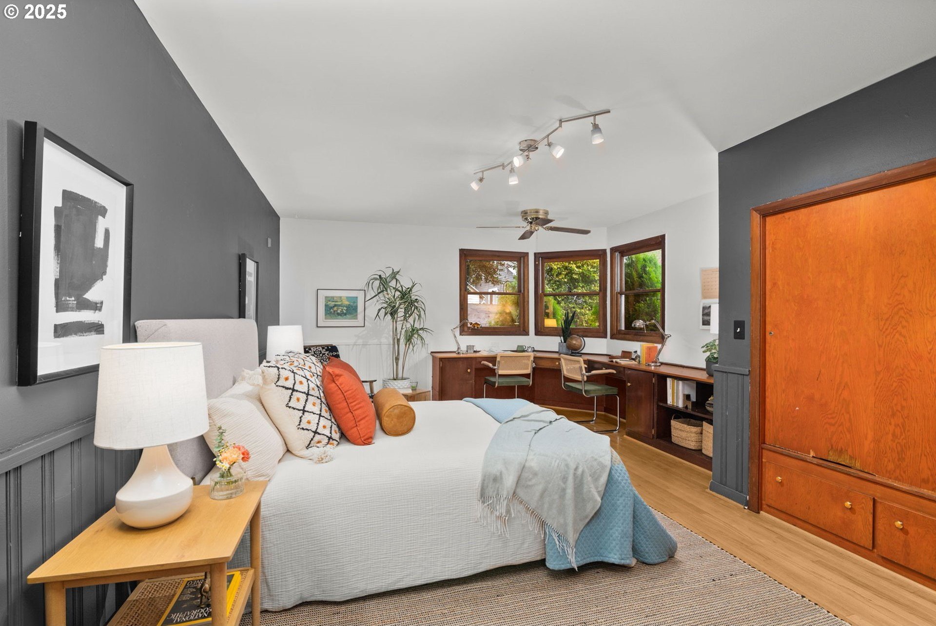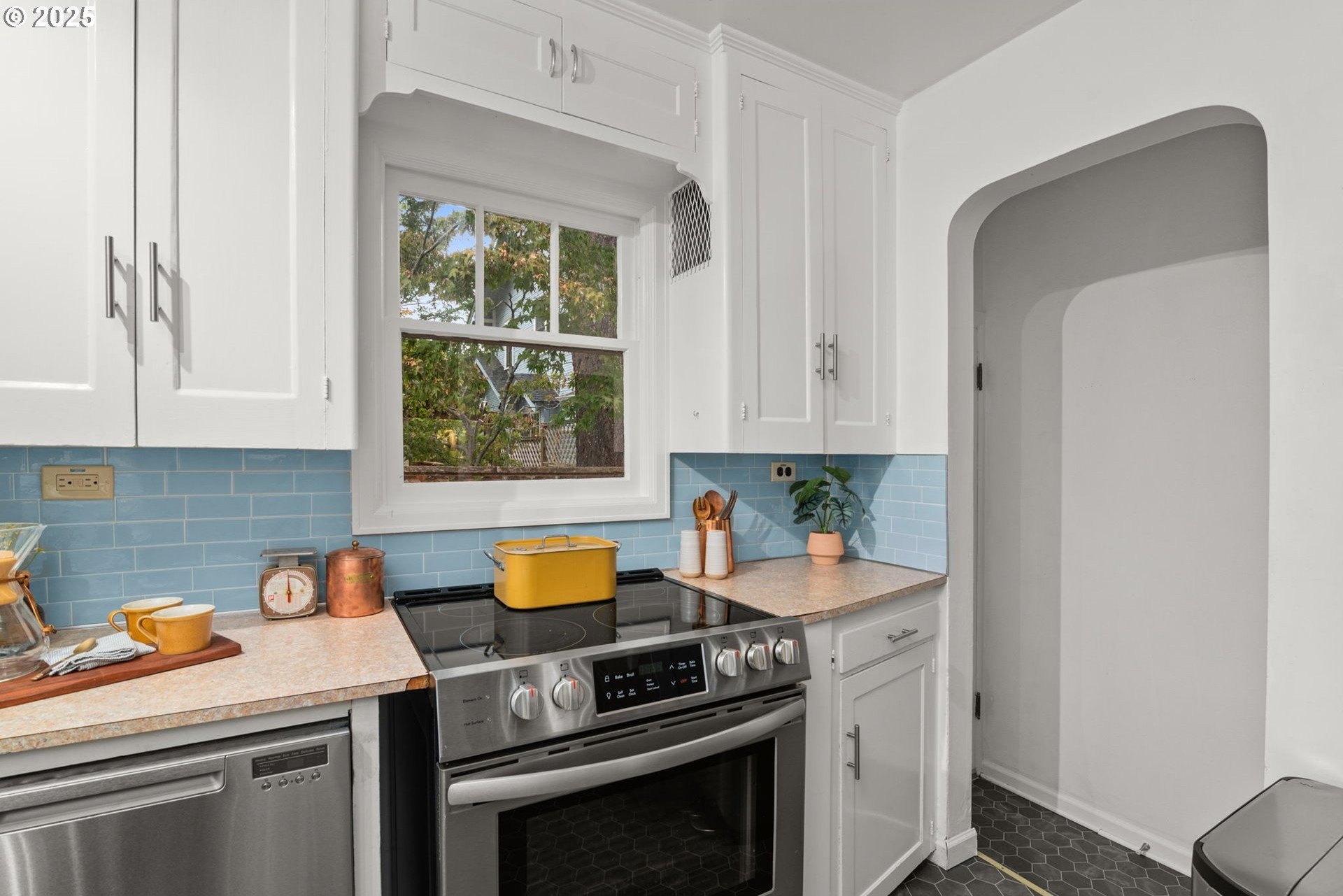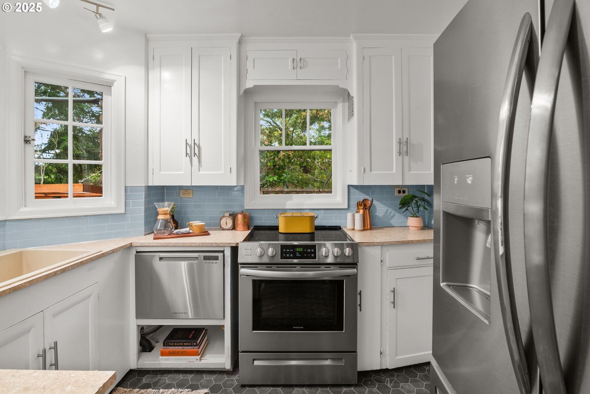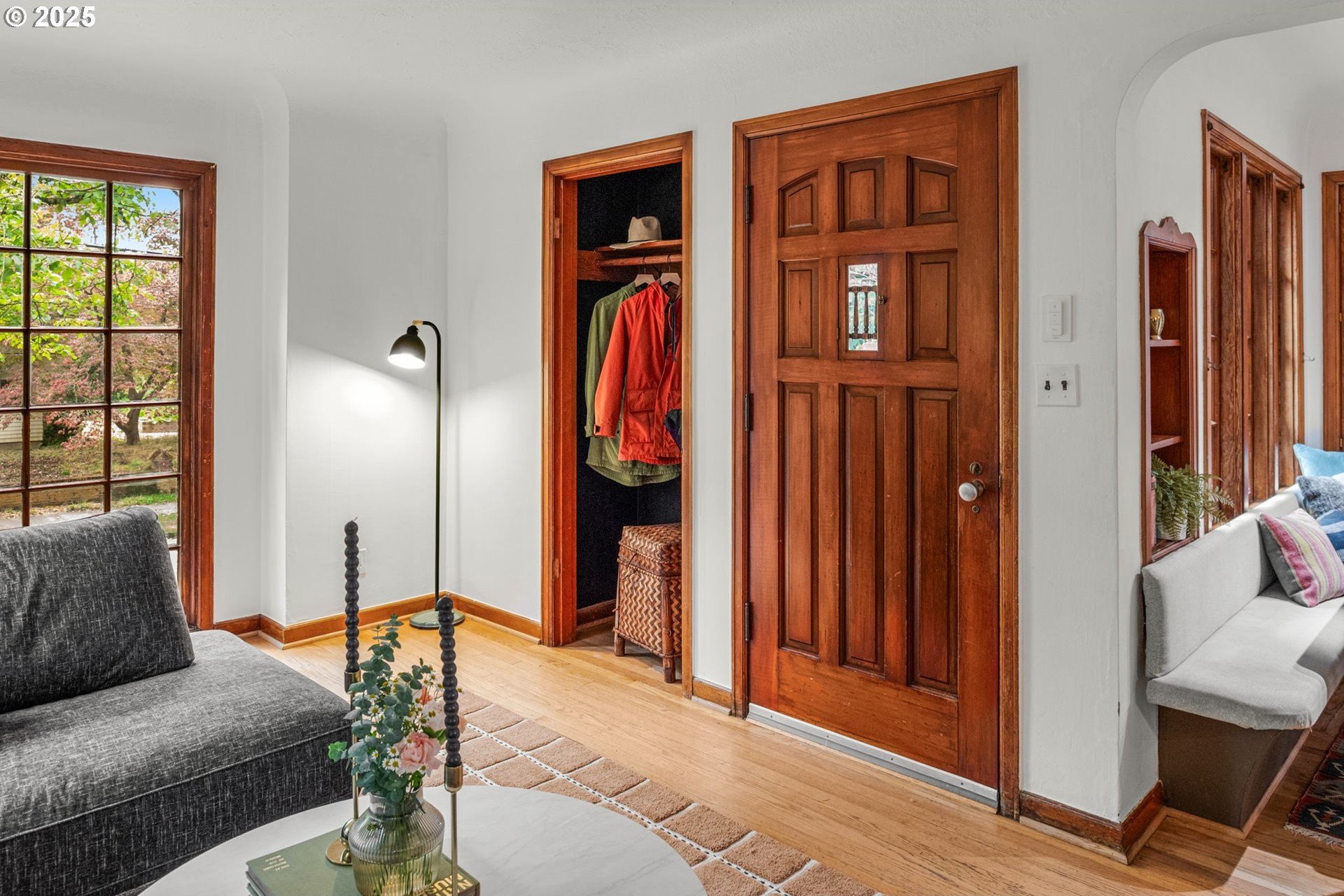 In the heart of Portland’s Mt. Tabor neighborhood, this charming cottage with a Tudor twist offers style, warmth, and walkability. Set above the street for privacy, the home feels bright and airy throughout, with large windows that frame leafy views and fill every room with natural light. Original woodwork, coved ceilings, and custom built-ins showcase timeless craftsmanship, while oak floors add warmth and character. The main level features three bedrooms—including an oversized primary—and a stylish bathroom with high-end fixtures and heated tile floors. The kitchen is bright and efficient, with stainless steel appliances and bay windows overlooking the front yard. Downstairs, the spacious basement includes a cozy family room with a fireplace, a half bath, home gym/flex space, laundry area, and generous storage. Outdoor living is exceptional: the front yard features a covered outdoor kitchen with slate counters and a built-in gas grill, plus a welcoming porch and deck perfect for morning coffee or evening sunsets. Out back, a large covered deck, playhouse, and peaceful park-like setting invite relaxation year-round. With a newer roof, gutters, and furnace, this home is move-in ready and ideally located—just blocks from Mt. Tabor Park, coffee shops, restaurants, and top-rated schools. [Home Energy Score = 3. HES Report at https://rpt.greenbuildingregistry.com/hes/OR10026619]