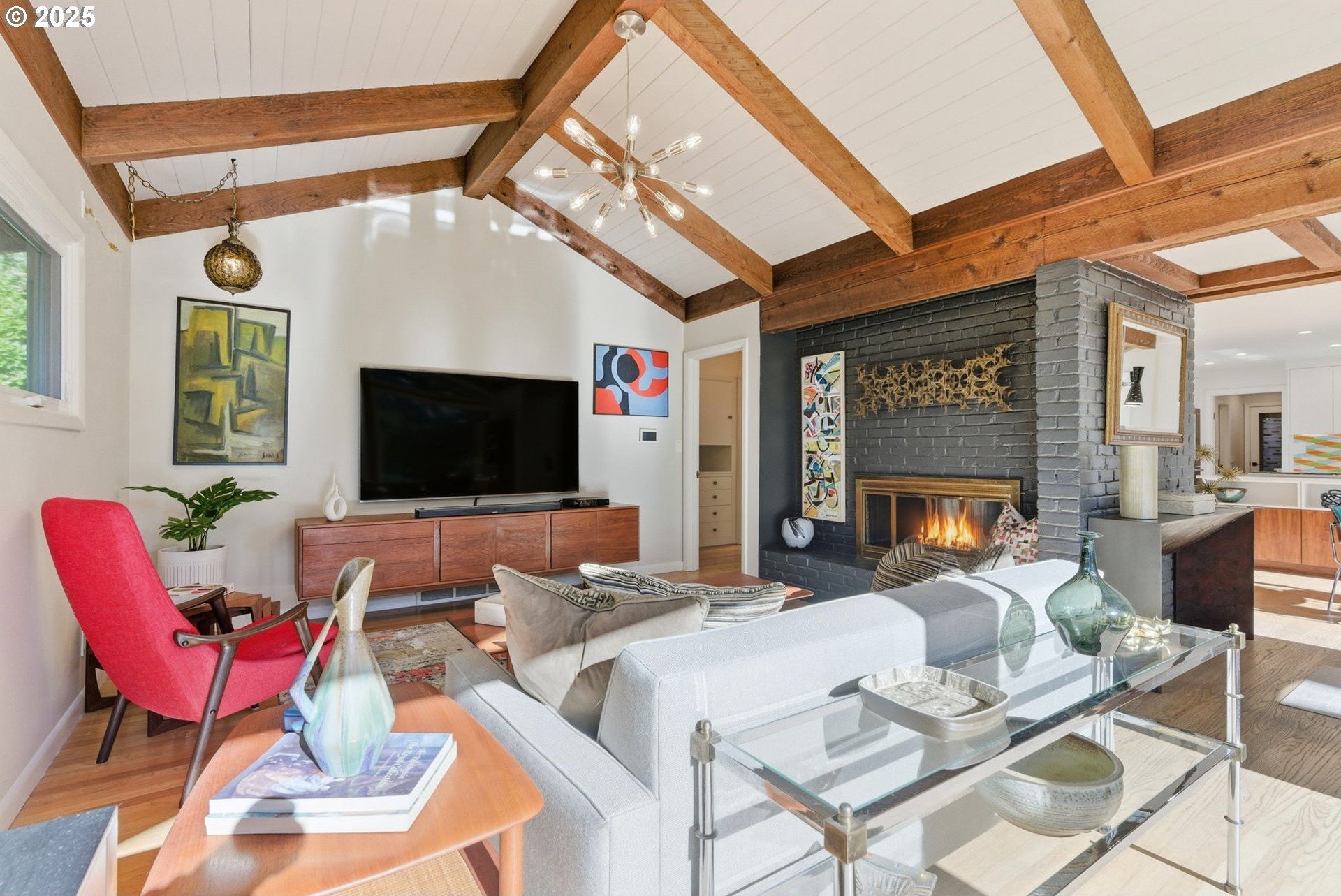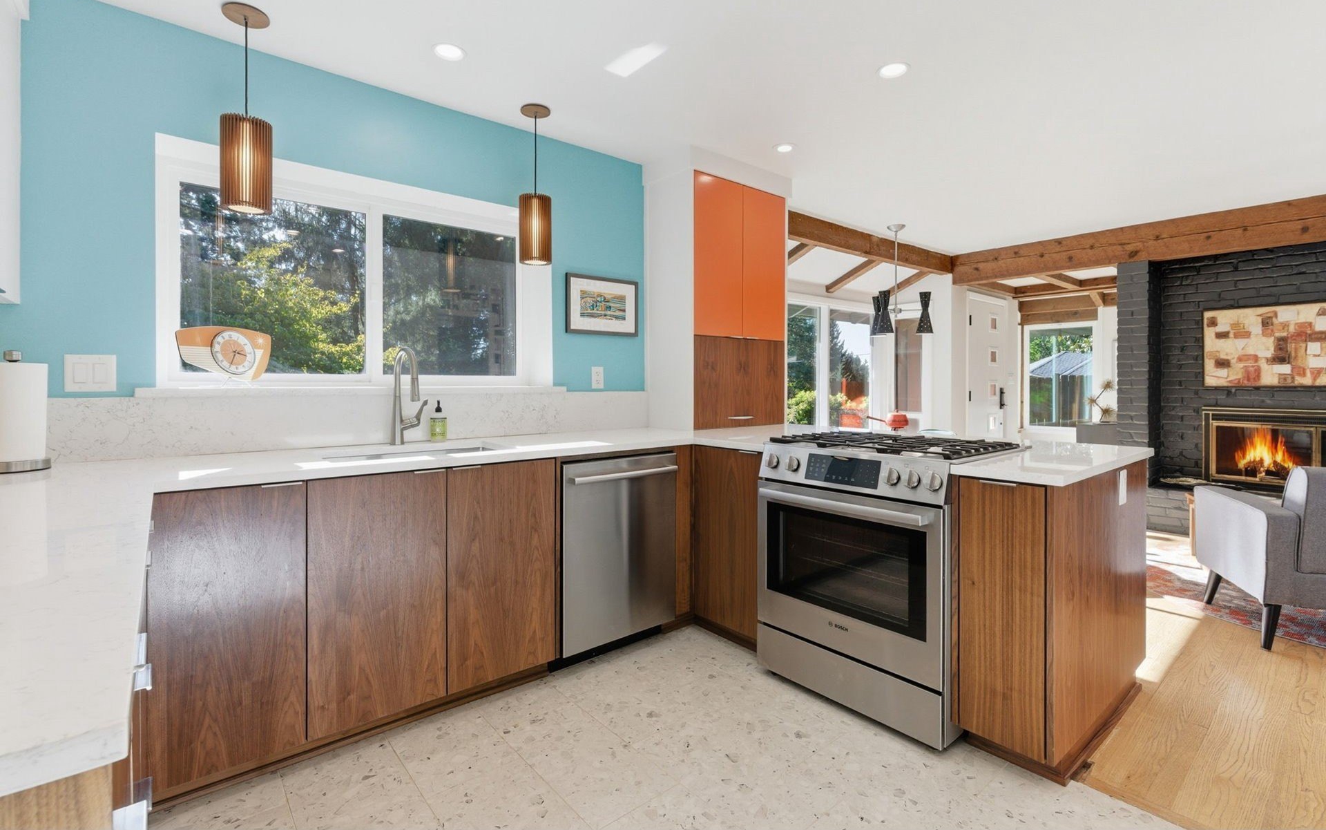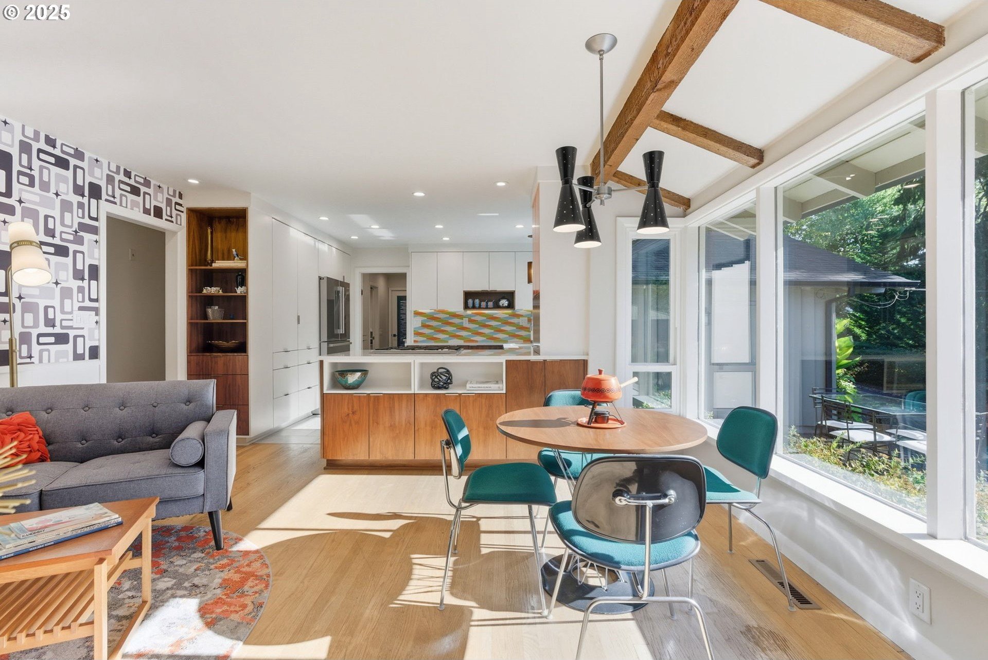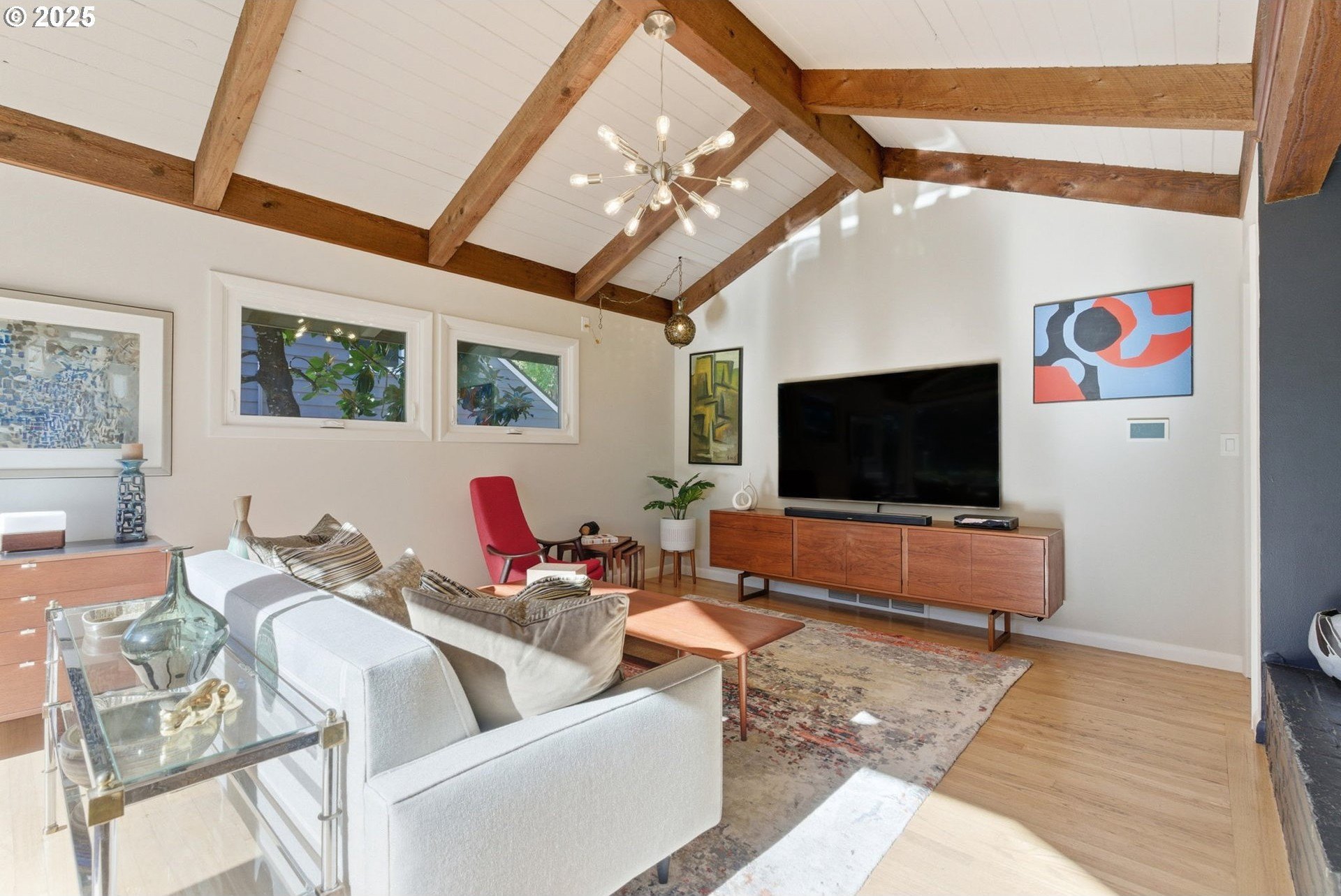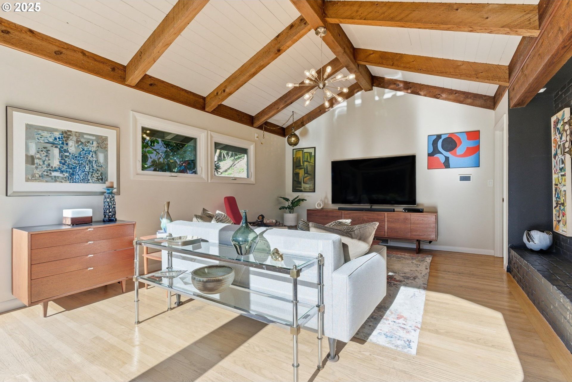 Discover a rare mid-century modern treasure in Lake Oswego’s coveted Uplands neighborhood, just steps from the Iron Mountain Park trailhead. Built in 1954 and recently renovated, this one-level home sits on an oversized 0.28-acre private lot bathed in natural light from sunrise to sunset. Walls of glass frame the lush surroundings, creating an effortless connection between indoor and outdoor living, a defining hallmark of true mid-century design. Inside, the custom kitchen blends new Bosch appliances, sleek finishes, and imported Brazilian lighting, offering both style and function. Every room feels purposeful, with custom storage solutions and an original dual-sided wood-burning fireplace anchoring the home in timeless character. Perfectly positioned for those who value privacy, nature, and convenience, this home enjoys exclusive access to the Uplands Lake Easement and sits just minutes from top-rated schools, downtown Lake Oswego, and the lake itself. With abundant sun exposure, peaceful surroundings, and a location that defines the best of Uplands living.