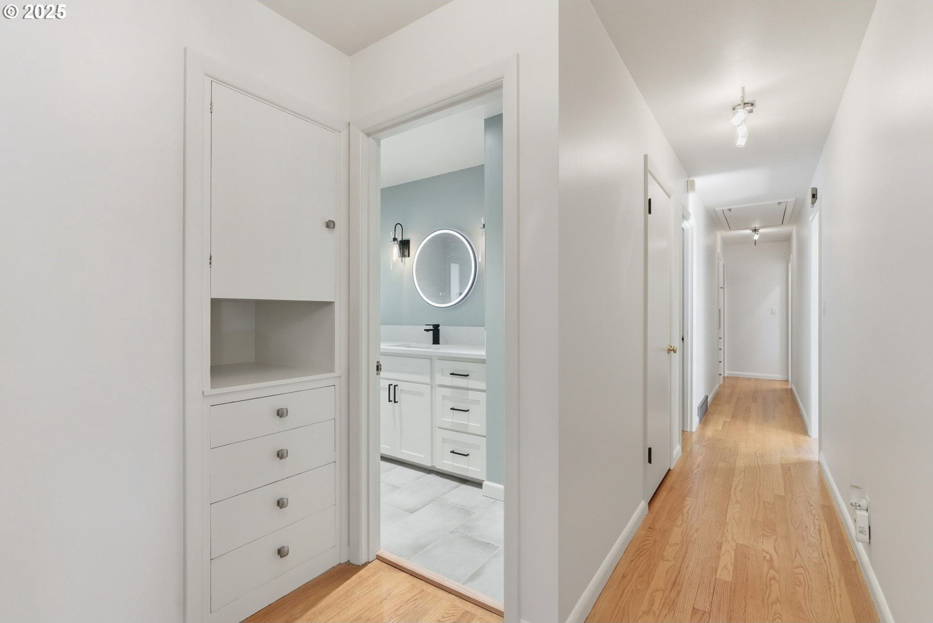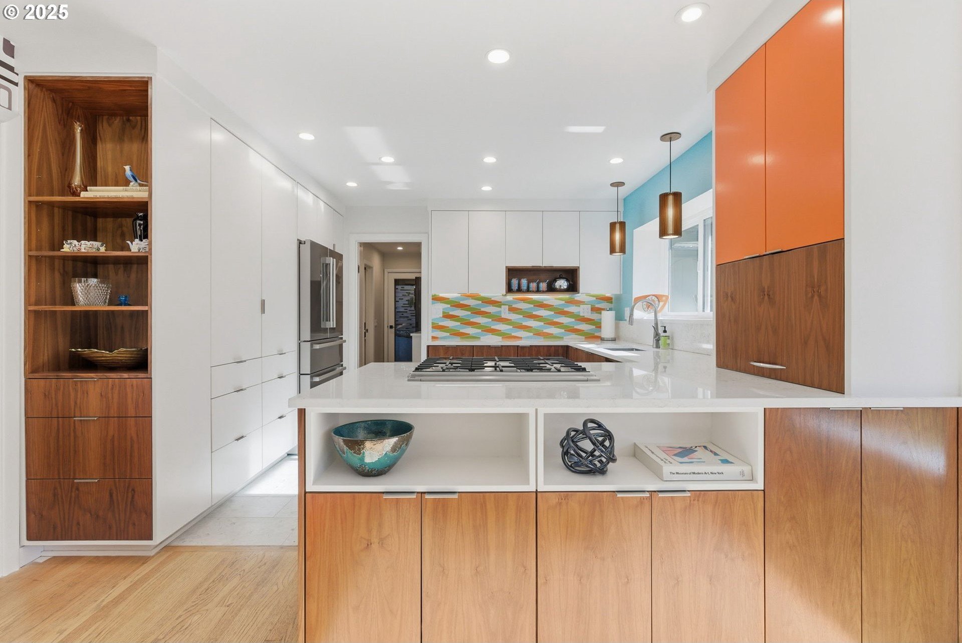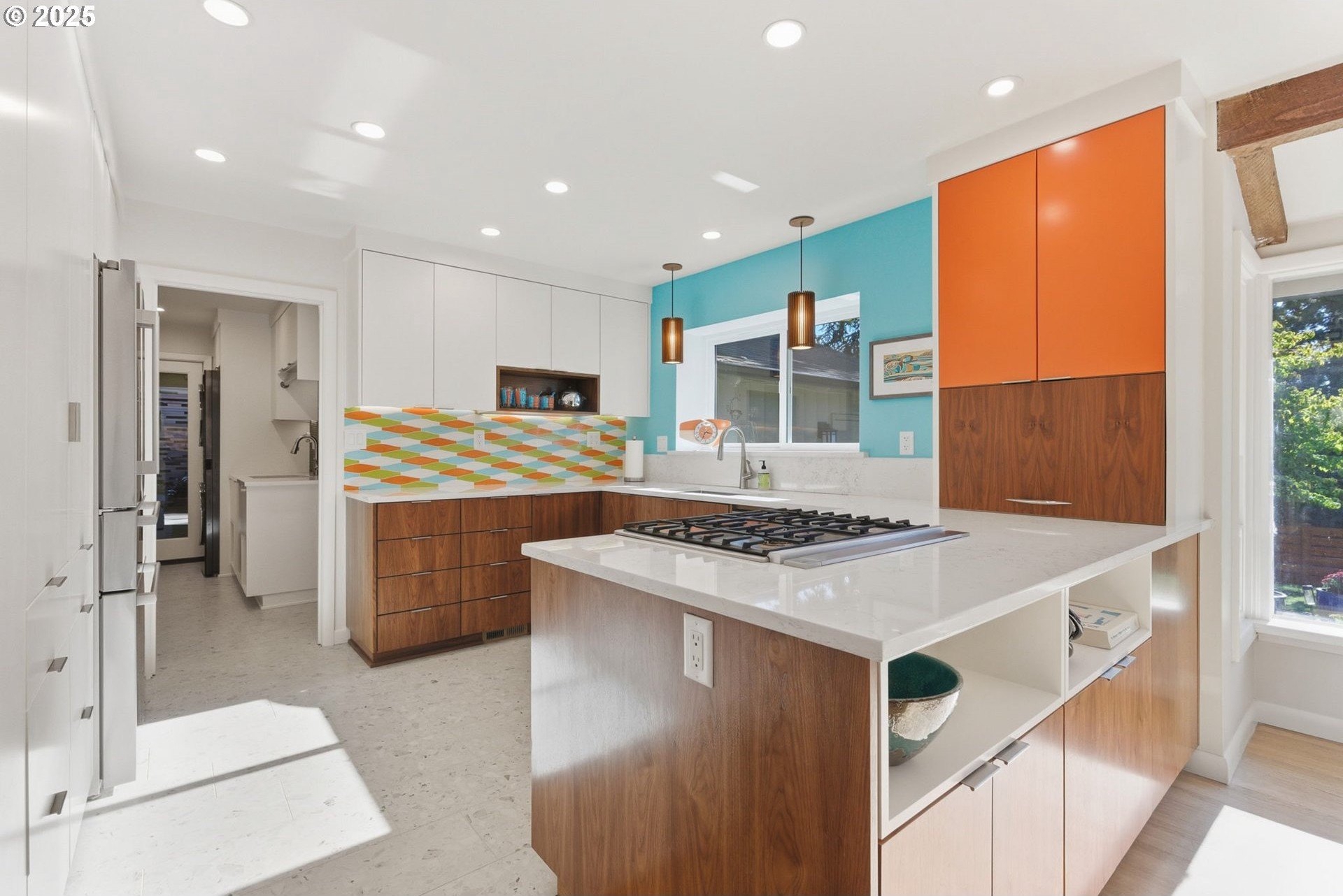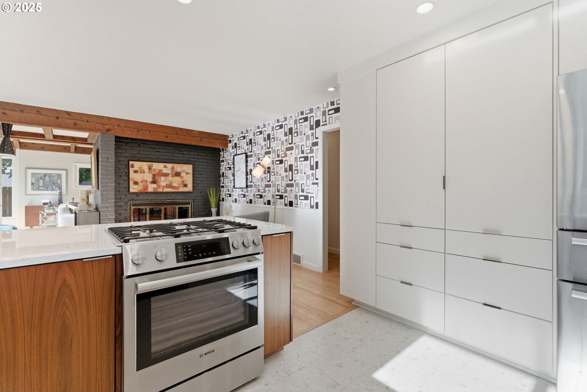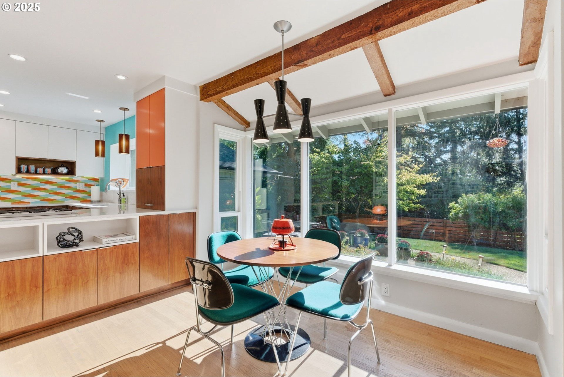 Discover a rare mid-century modern treasure in Lake Oswego’s coveted Uplands neighborhood, just steps from the Iron Mountain Park trailhead. Built in 1954 and recently renovated, this one-level home sits on an oversized 0.28-acre private lot bathed in natural light from sunrise to sunset. Walls of glass frame the lush surroundings, creating an effortless connection between indoor and outdoor living, a defining hallmark of true mid-century design. Inside, the custom kitchen blends new Bosch appliances, sleek finishes, and imported Brazilian lighting, offering both style and function. Every room feels purposeful, with custom storage solutions and an original dual-sided wood-burning fireplace anchoring the home in timeless character. Perfectly positioned for those who value privacy, nature, and convenience, this home enjoys exclusive access to the Uplands Lake Easement and sits just minutes from top-rated schools, downtown Lake Oswego, and the lake itself. With abundant sun exposure, peaceful surroundings, and a location that defines the best of Uplands living.