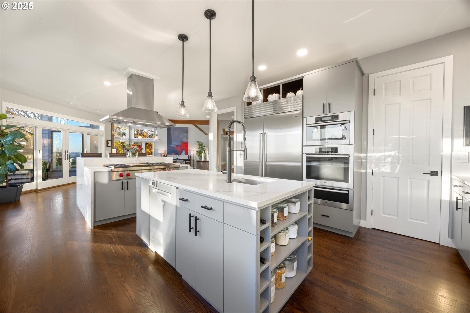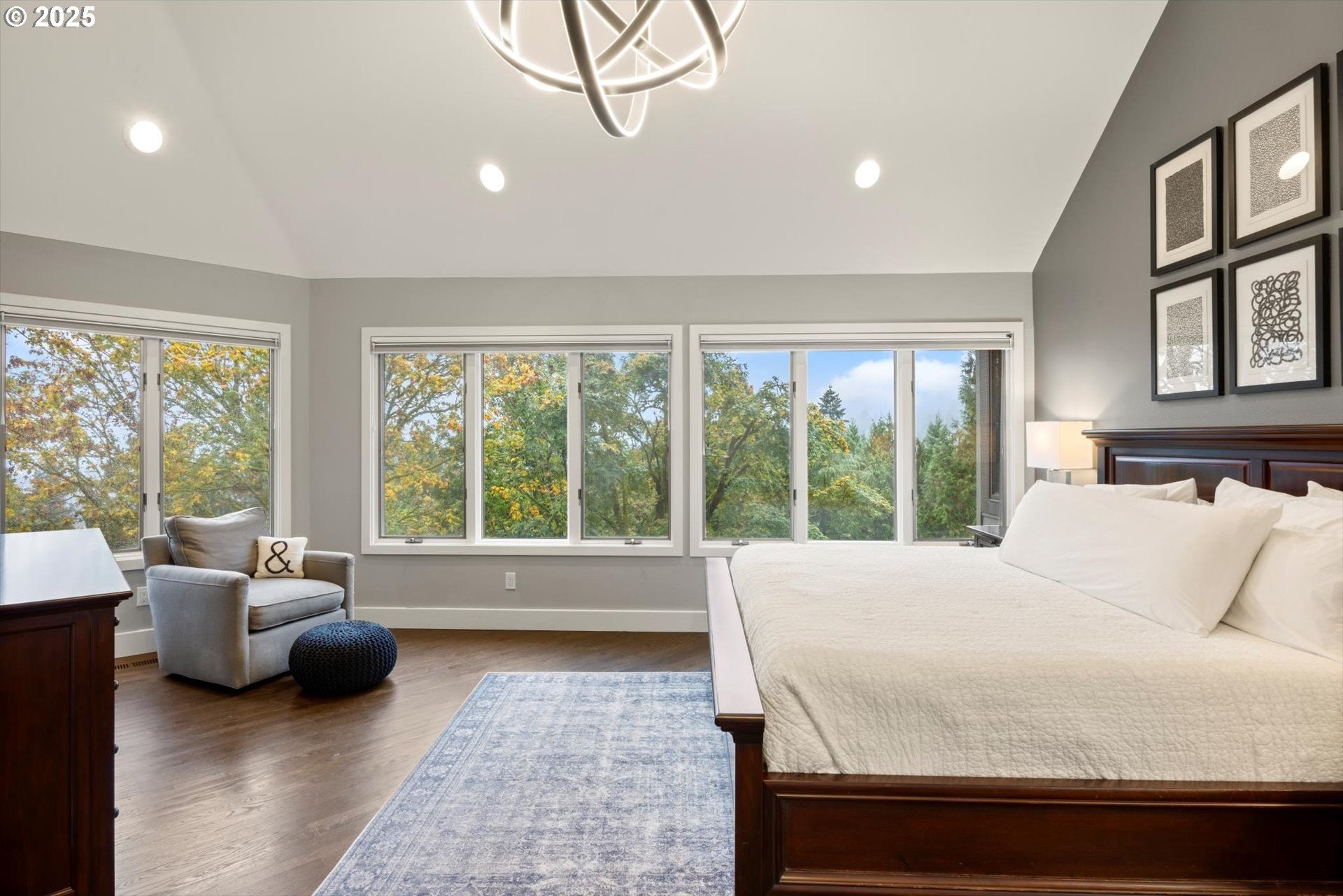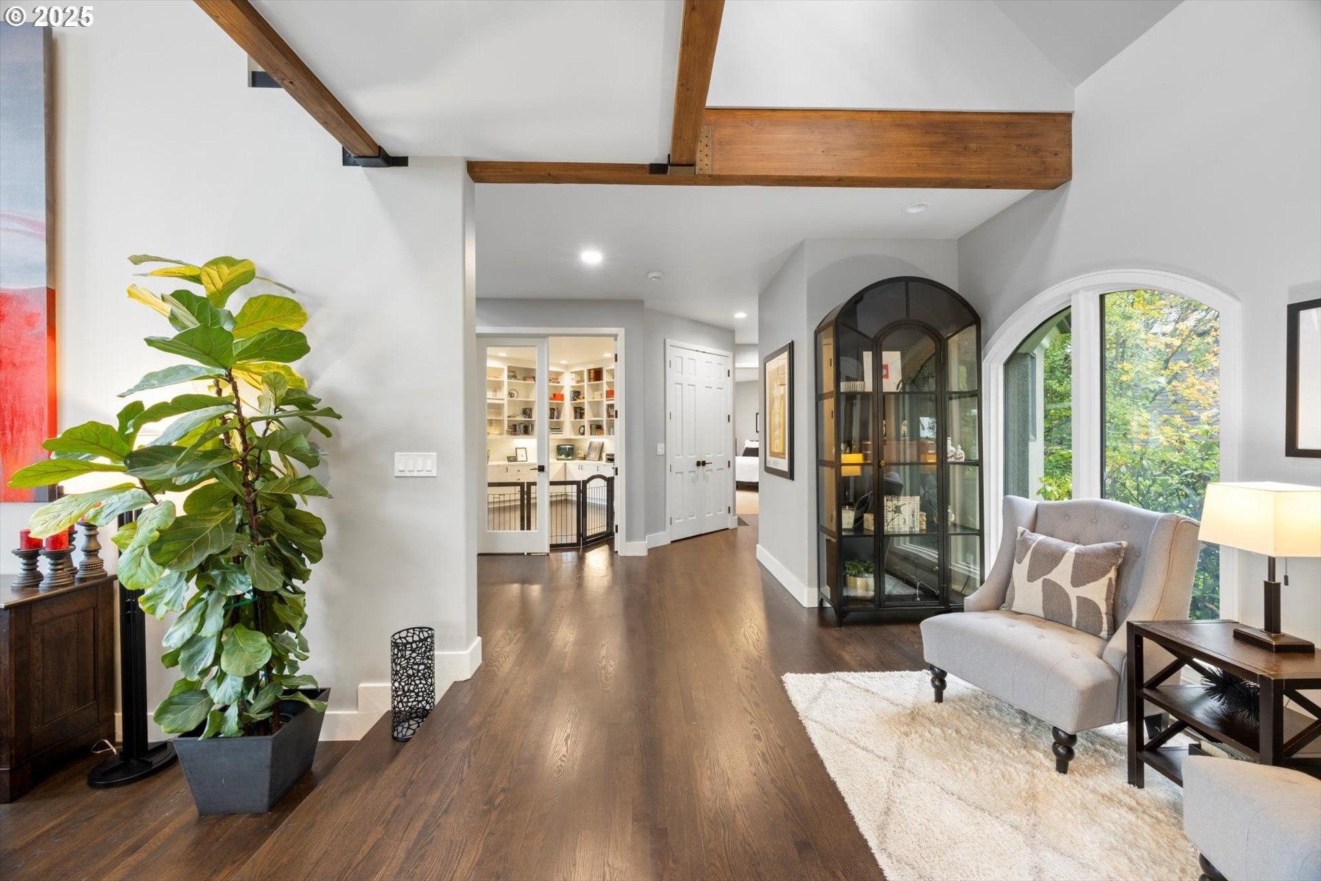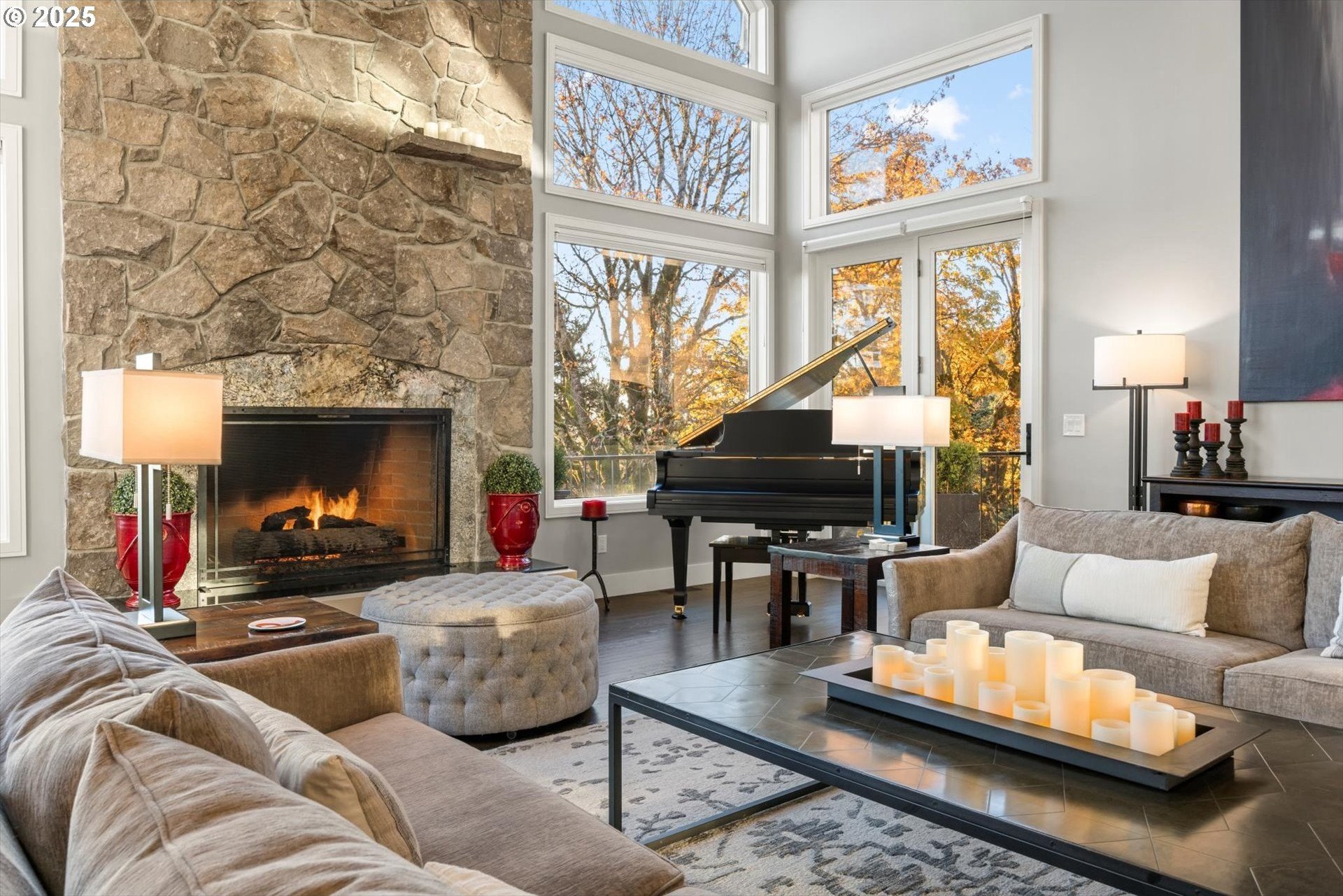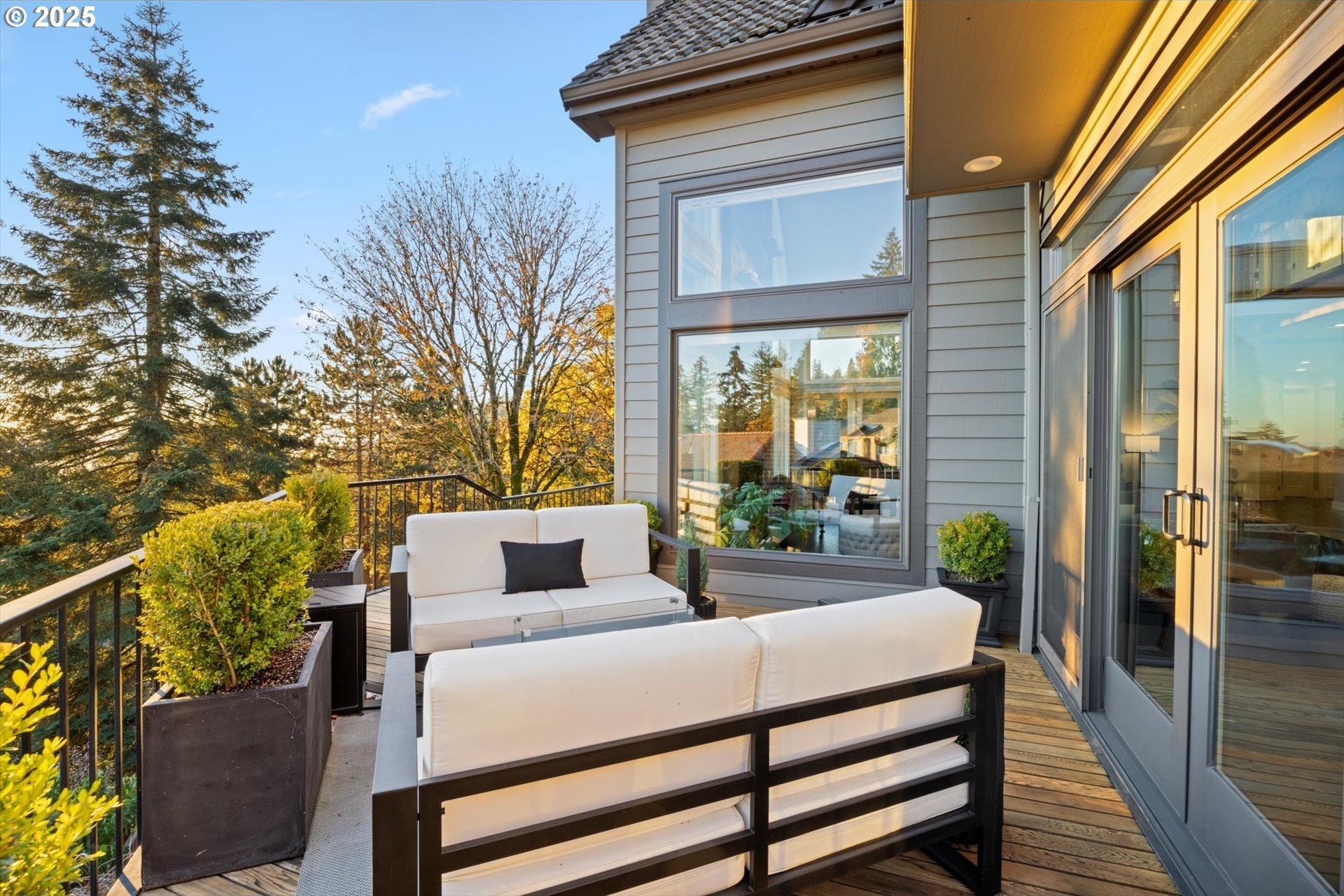 Welcome to an extraordinary retreat in the coveted, gated enclave of West Hills View Estates—where panoramic sunsets, high design, and thoughtful functionality converge. This reimagined residence offers an exceptional blend of grand scale, refined detail, and seamless indoor-outdoor living. Step into the dramatic mezzanine-level great room, where soaring 25-foot beamed ceilings and expansive windows create a stunning first impression. The open-concept chef’s kitchen is outfitted with premium Carrera quartz surfaces and top-tier appliances from Wolf, Miele, and SubZero—perfect for both everyday living and elevated entertaining. Experience elegant touches throughout, from sleek hardwood floors and Andersen windows to a luxe primary spa-style bath. Designed with versatility in mind, the home includes ADA-accessible guest accommodations complete with a second kitchenette, ideal for multi-generational living or long-term guests. Host effortlessly on the elevated deck and heated patio, with a nearby outdoor fireplace offering year-round ambiance. The lower level invites relaxation with a plush media lounge, wine cellar, and a soundproof flex room—perfect for music, art, or studio needs. Additional highlights include dual laundry areas and abundant space for customization. Enjoy the privacy of a boutique neighborhood of luxury estates, just minutes from Portland’s best—OHSU, the Multnomah Athletic Club, top-rated public and private schools, and a wealth of fine dining and cultural amenities. This is more than a home—it’s a lifestyle defined by reimagined vision, comfort, sophistication, and possibility. [Home Energy Score = 2. HES Report at https://rpt.greenbuildingregistry.com/hes/OR10233983]