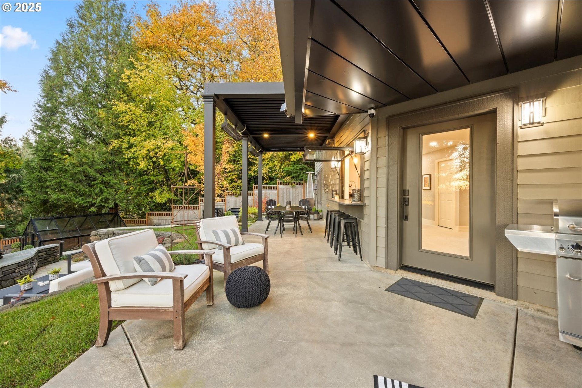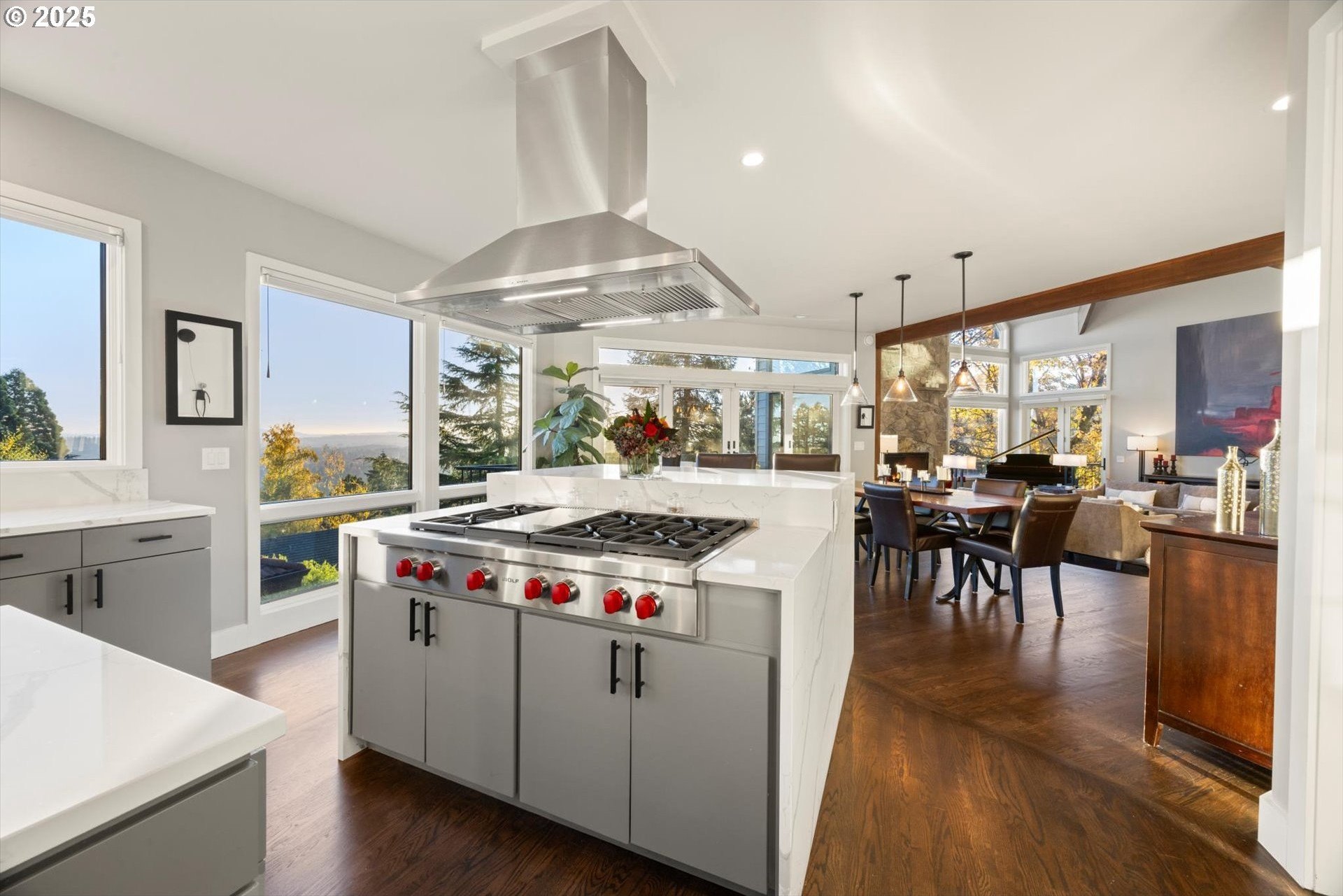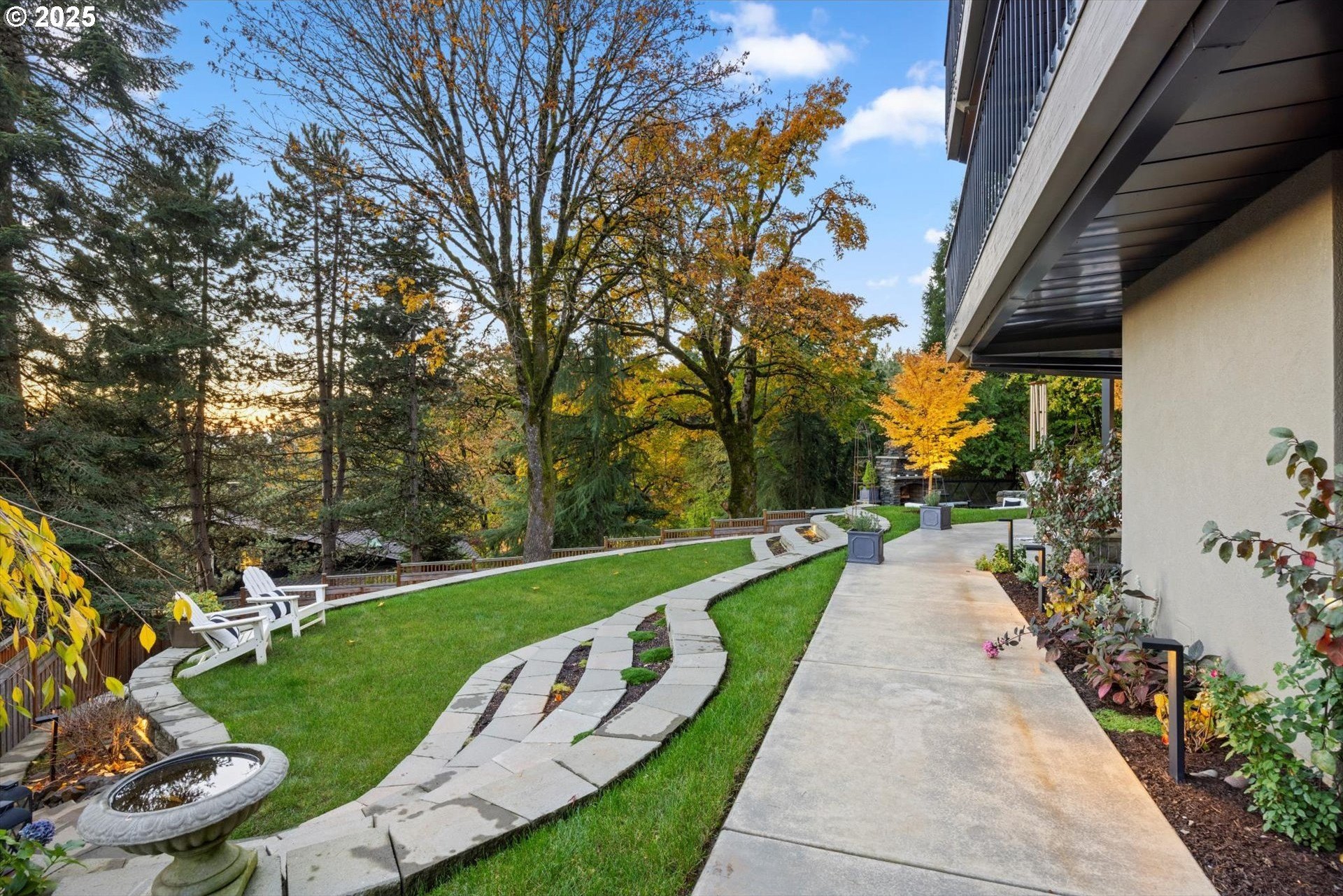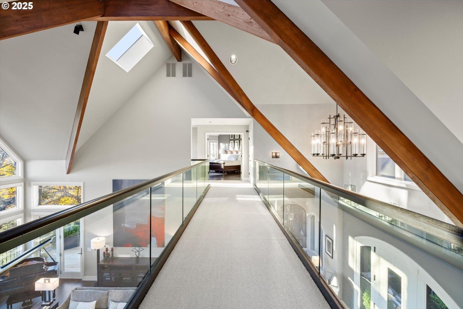 Welcome to an extraordinary retreat in the coveted, gated enclave of West Hills View Estates—where panoramic sunsets, high design, and thoughtful functionality converge. This reimagined residence offers an exceptional blend of grand scale, refined detail, and seamless indoor-outdoor living. Step into the dramatic mezzanine-level great room, where soaring 25-foot beamed ceilings and expansive windows create a stunning first impression. The open-concept chef’s kitchen is outfitted with premium Carrera quartz surfaces and top-tier appliances from Wolf, Miele, and SubZero—perfect for both everyday living and elevated entertaining. Experience elegant touches throughout, from sleek hardwood floors and Andersen windows to a luxe primary spa-style bath. Designed with versatility in mind, the home includes ADA-accessible guest accommodations complete with a second kitchenette, ideal for multi-generational living or long-term guests. Host effortlessly on the elevated deck and heated patio, with a nearby outdoor fireplace offering year-round ambiance. The lower level invites relaxation with a plush media lounge, wine cellar, and a soundproof flex room—perfect for music, art, or studio needs. Additional highlights include dual laundry areas and abundant space for customization. Enjoy the privacy of a boutique neighborhood of luxury estates, just minutes from Portland’s best—OHSU, the Multnomah Athletic Club, top-rated public and private schools, and a wealth of fine dining and cultural amenities. This is more than a home—it’s a lifestyle defined by reimagined vision, comfort, sophistication, and possibility. [Home Energy Score = 2. HES Report at https://rpt.greenbuildingregistry.com/hes/OR10233983]