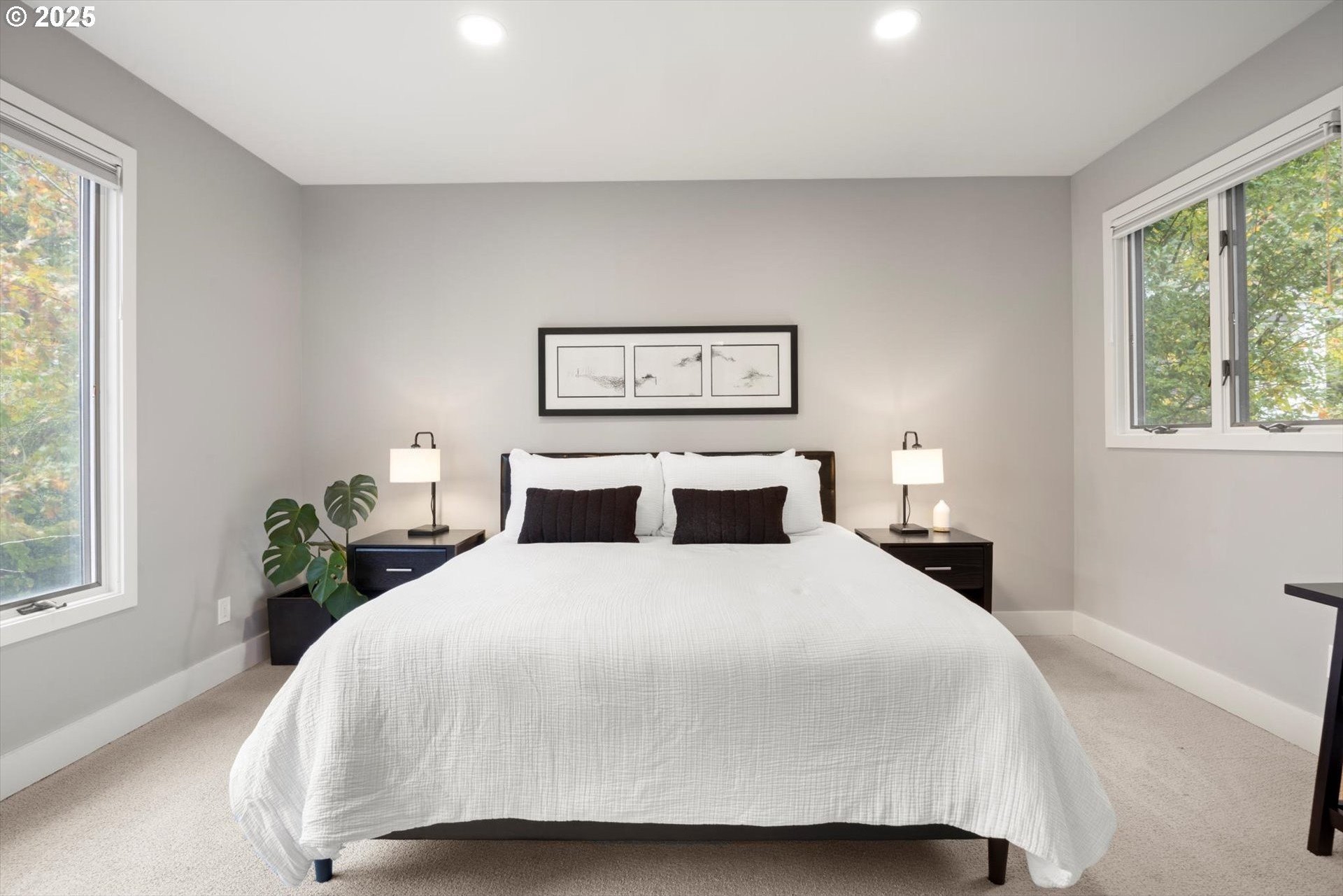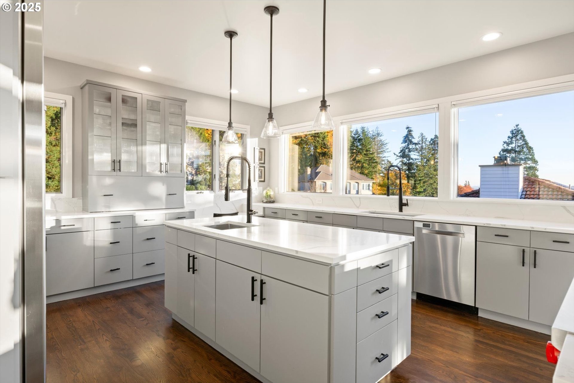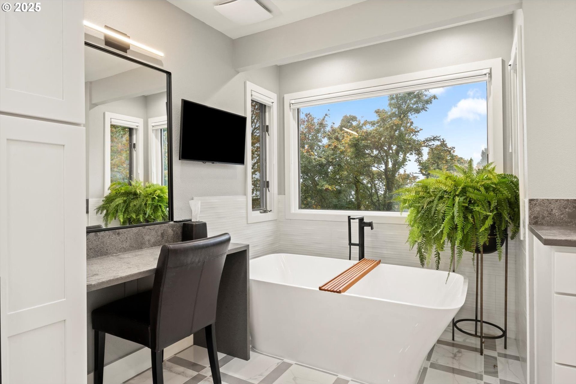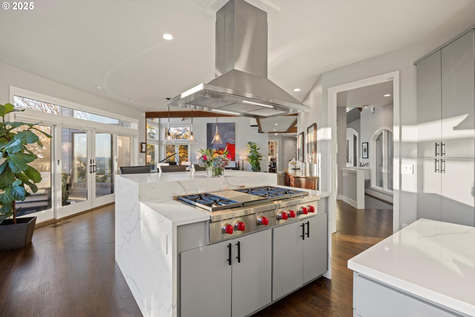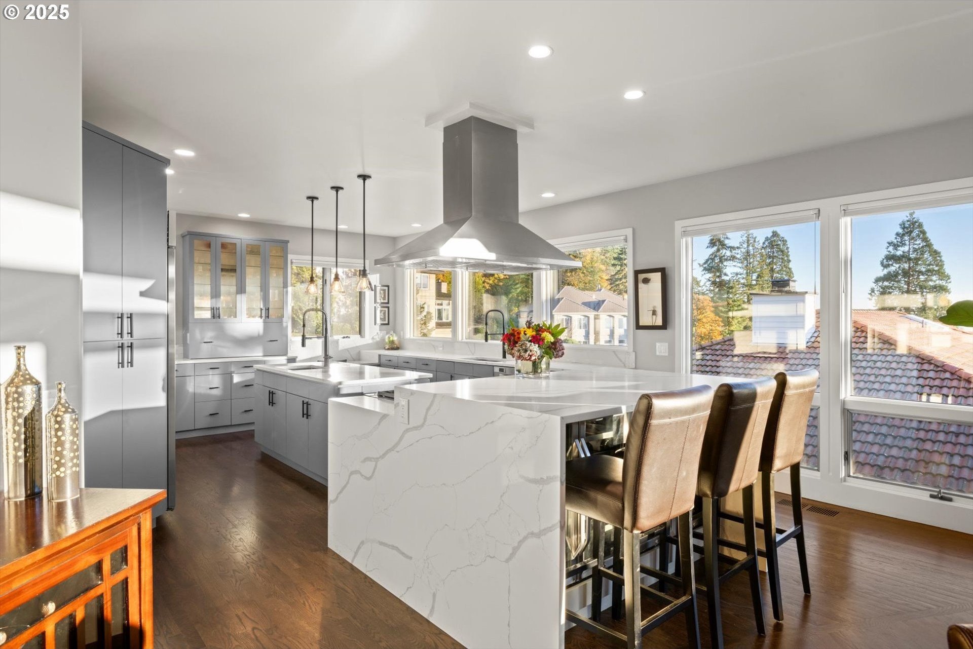 Welcome to an extraordinary retreat in the coveted, gated enclave of West Hills View Estates—where panoramic sunsets, high design, and thoughtful functionality converge. This reimagined residence offers an exceptional blend of grand scale, refined detail, and seamless indoor-outdoor living. Step into the dramatic mezzanine-level great room, where soaring 25-foot beamed ceilings and expansive windows create a stunning first impression. The open-concept chef’s kitchen is outfitted with premium Carrera quartz surfaces and top-tier appliances from Wolf, Miele, and SubZero—perfect for both everyday living and elevated entertaining. Experience elegant touches throughout, from sleek hardwood floors and Andersen windows to a luxe primary spa-style bath. Designed with versatility in mind, the home includes ADA-accessible guest accommodations complete with a second kitchenette, ideal for multi-generational living or long-term guests. Host effortlessly on the elevated deck and heated patio, with a nearby outdoor fireplace offering year-round ambiance. The lower level invites relaxation with a plush media lounge, wine cellar, and a soundproof flex room—perfect for music, art, or studio needs. Additional highlights include dual laundry areas and abundant space for customization. Enjoy the privacy of a boutique neighborhood of luxury estates, just minutes from Portland’s best—OHSU, the Multnomah Athletic Club, top-rated public and private schools, and a wealth of fine dining and cultural amenities. This is more than a home—it’s a lifestyle defined by reimagined vision, comfort, sophistication, and possibility. [Home Energy Score = 2. HES Report at https://rpt.greenbuildingregistry.com/hes/OR10233983]