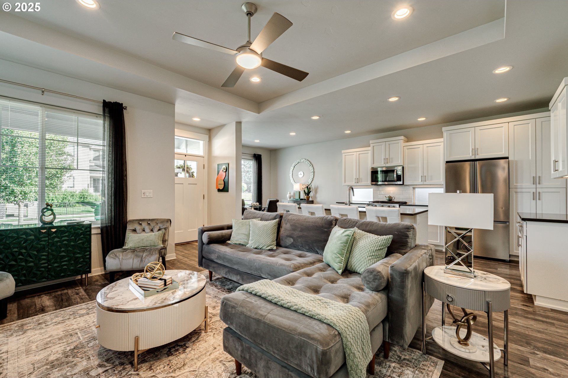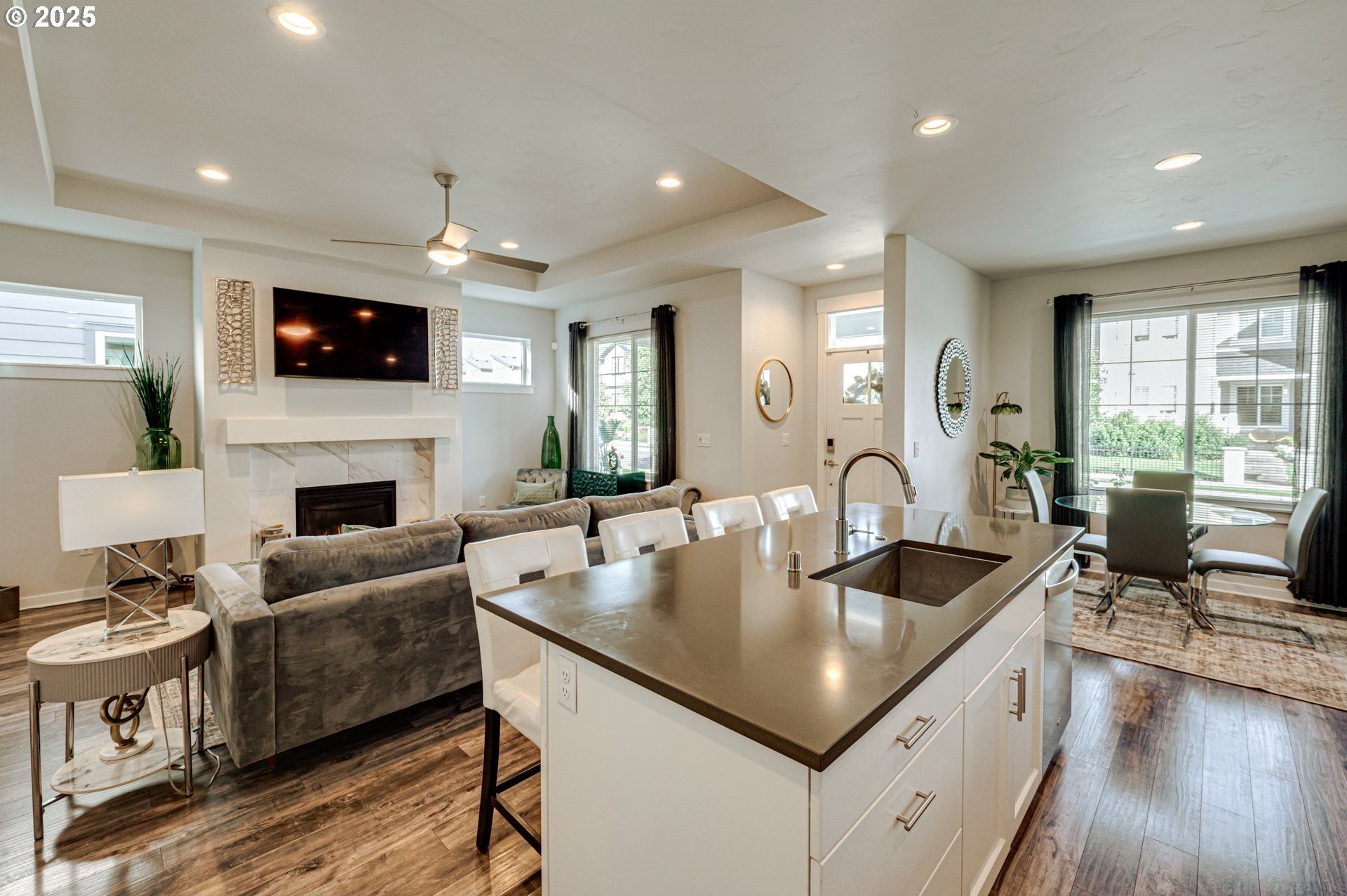 This stunning home offers timeless elegance and exceptional value being priced below the Tax value. The owner’s suite is conveniently located on the main floor, making it ideal for comfort and accessibility.Inside, you’ll find oversized and specialty windows—including trench and under-cabinet kitchen windows—that flood the home with natural light. High ceilings, tray ceilings, a stucco-textured walls, and an elegant fireplace add classic charm throughout the living spaces.The open-concept layout is perfect for gathering and entertaining, or simply relaxing and enjoying the home’s thoughtful design.Step outside to a beautifully designed side yard and a covered patio, ideal for year-round enjoyment. Upstairs, a spacious loft offers endless possibilities—whether as a media room, playroom, gym, or guest space—while still leaving room for a dedicated office area. Both upstairs bedrooms include walk-in closets for ample storage.Enjoy community pool, party room, nature trails and more.