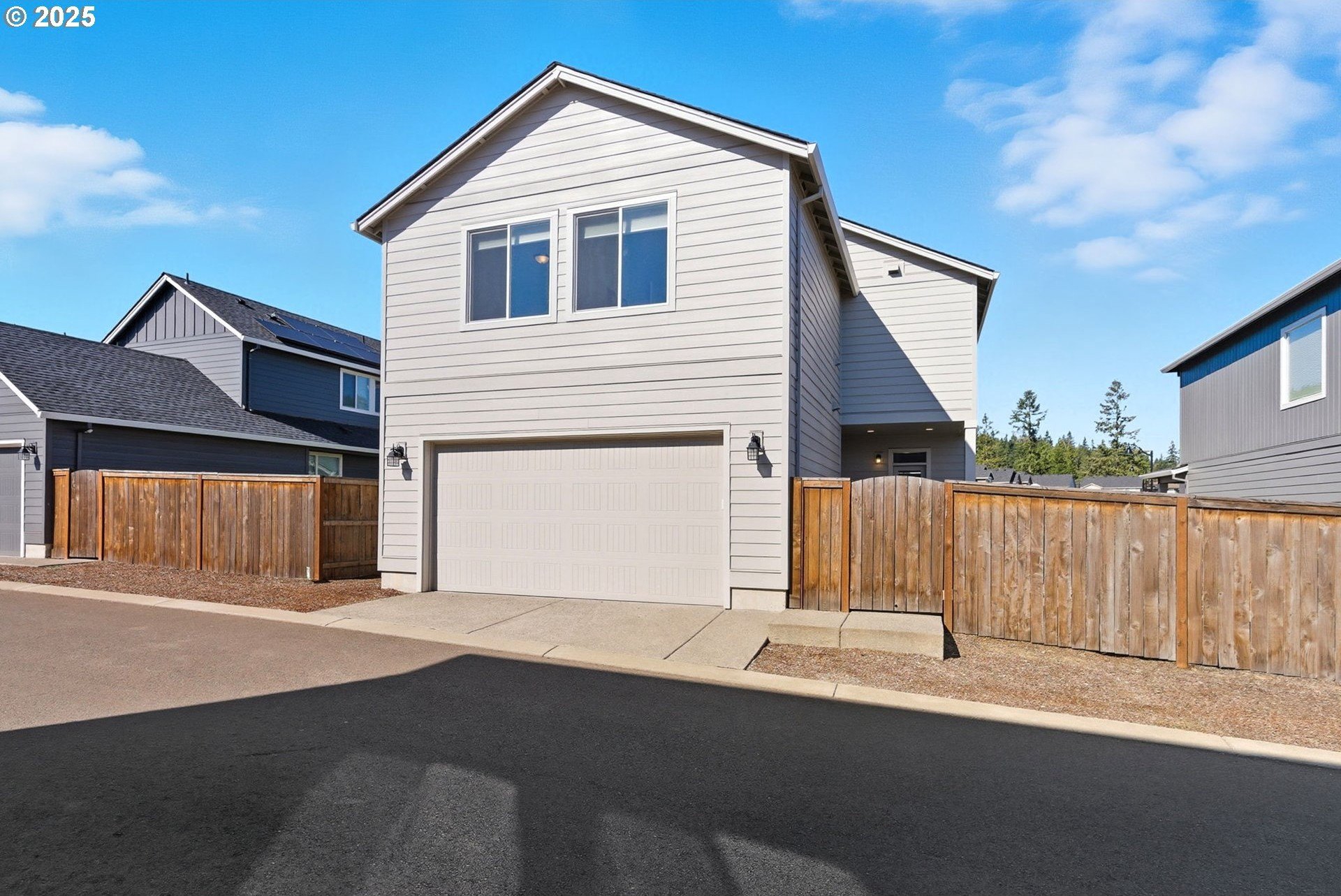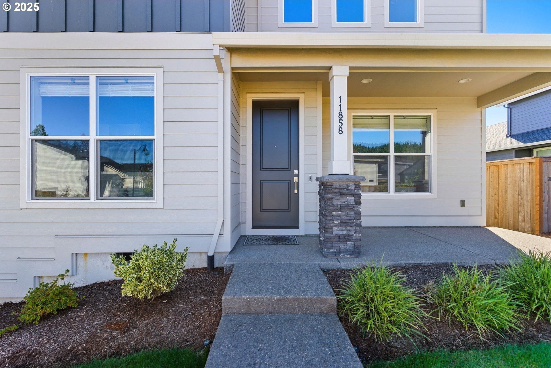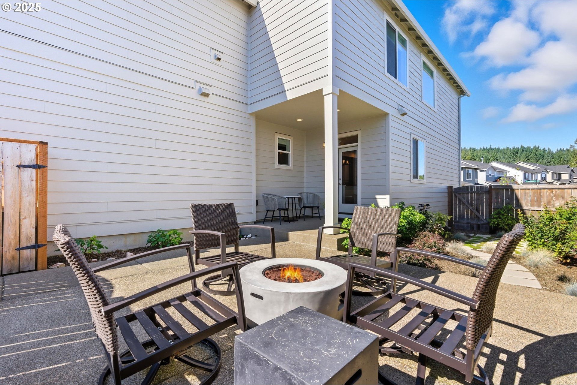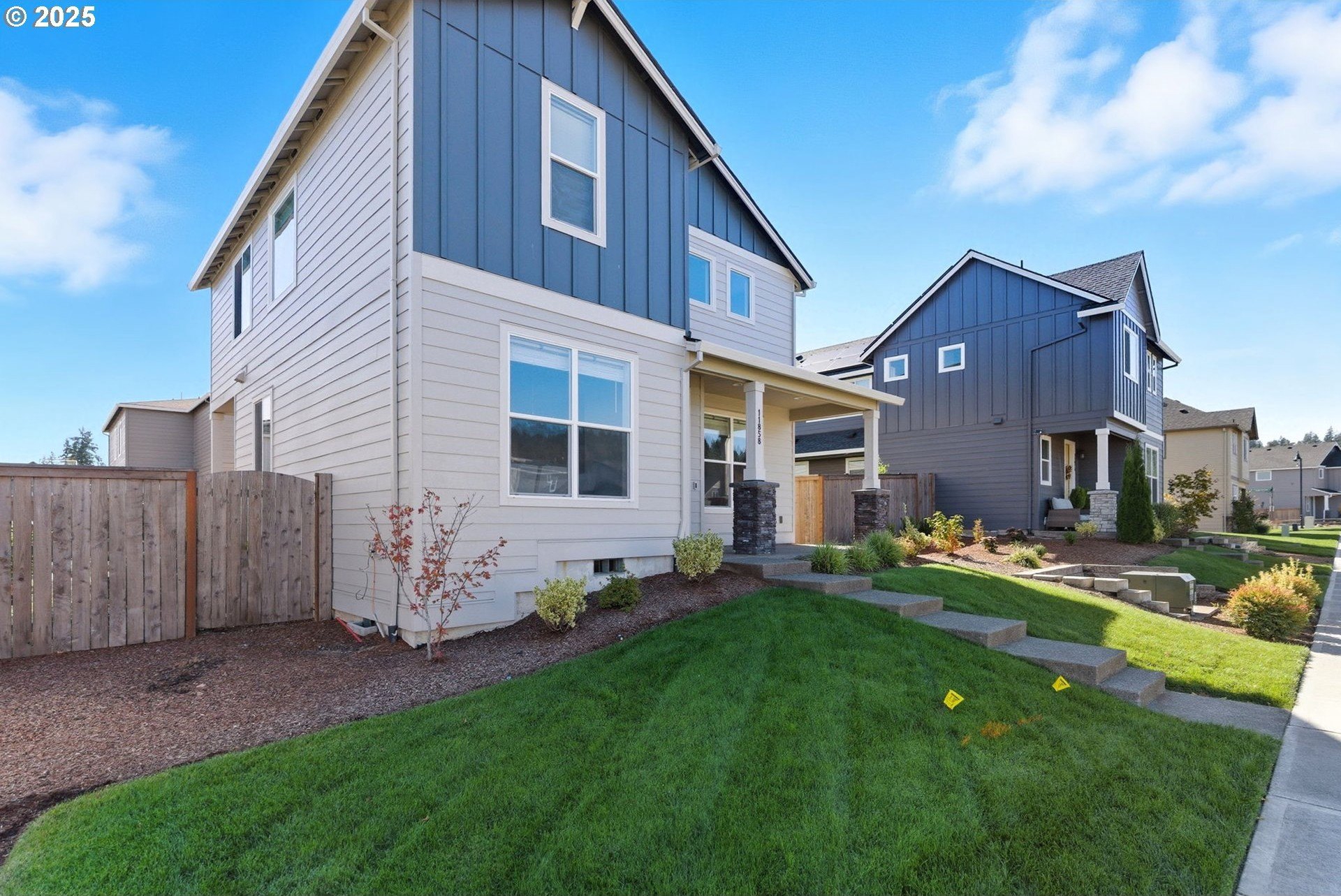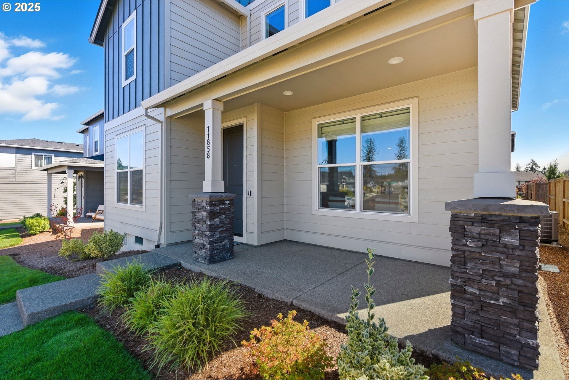 Built in 2022, this 4 bedroom, 2.5 bath Craftsman combines modern finishes with pristine condition. Lightly occupied and move-in ready, it shows like new. The open-concept chef’s kitchen offers abundant counter space, stainless steel gas appliances, a wine cooler, and a large quartz island with bar seating that's perfect for gatherings. The inviting living room centers around a cozy gas fireplace, while a separate dining area provides additional space for entertaining.Upgraded laminate flooring extends through the upper level and stairs. The spacious primary suite features high ceilings, a walk-in closet, and dual sinks in the ensuite bath.Enjoy outdoor living on the extended backyard patio that's ideal for grilling and relaxing, plus a fully fenced yard offering privacy and space for gardening.Located in one of Happy Valley’s sought-after newer neighborhoods, Pleasant Valley Villages offers exceptional amenities including a private community pool, playground, basketball court, trails, clubhouse, and more. Conveniently close to shopping, dining, and highway access.