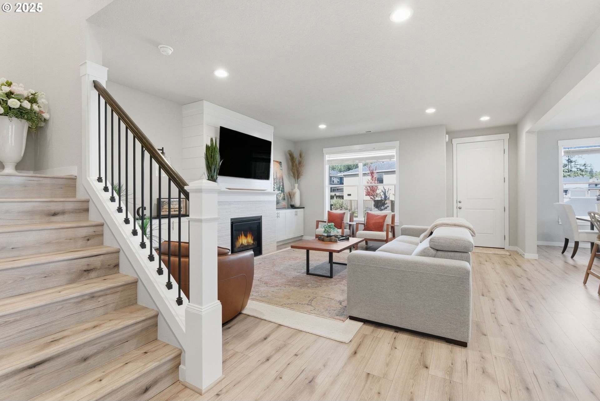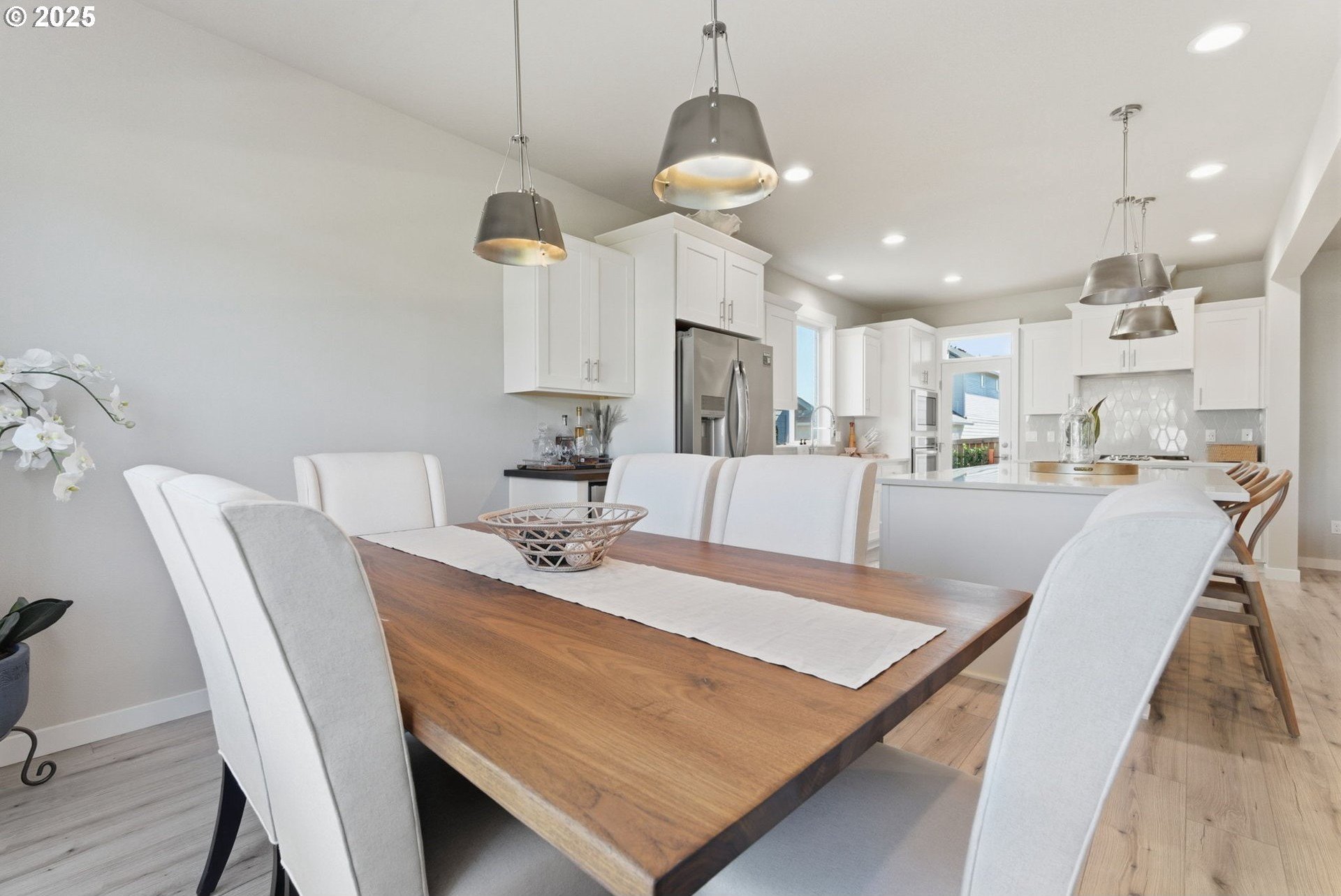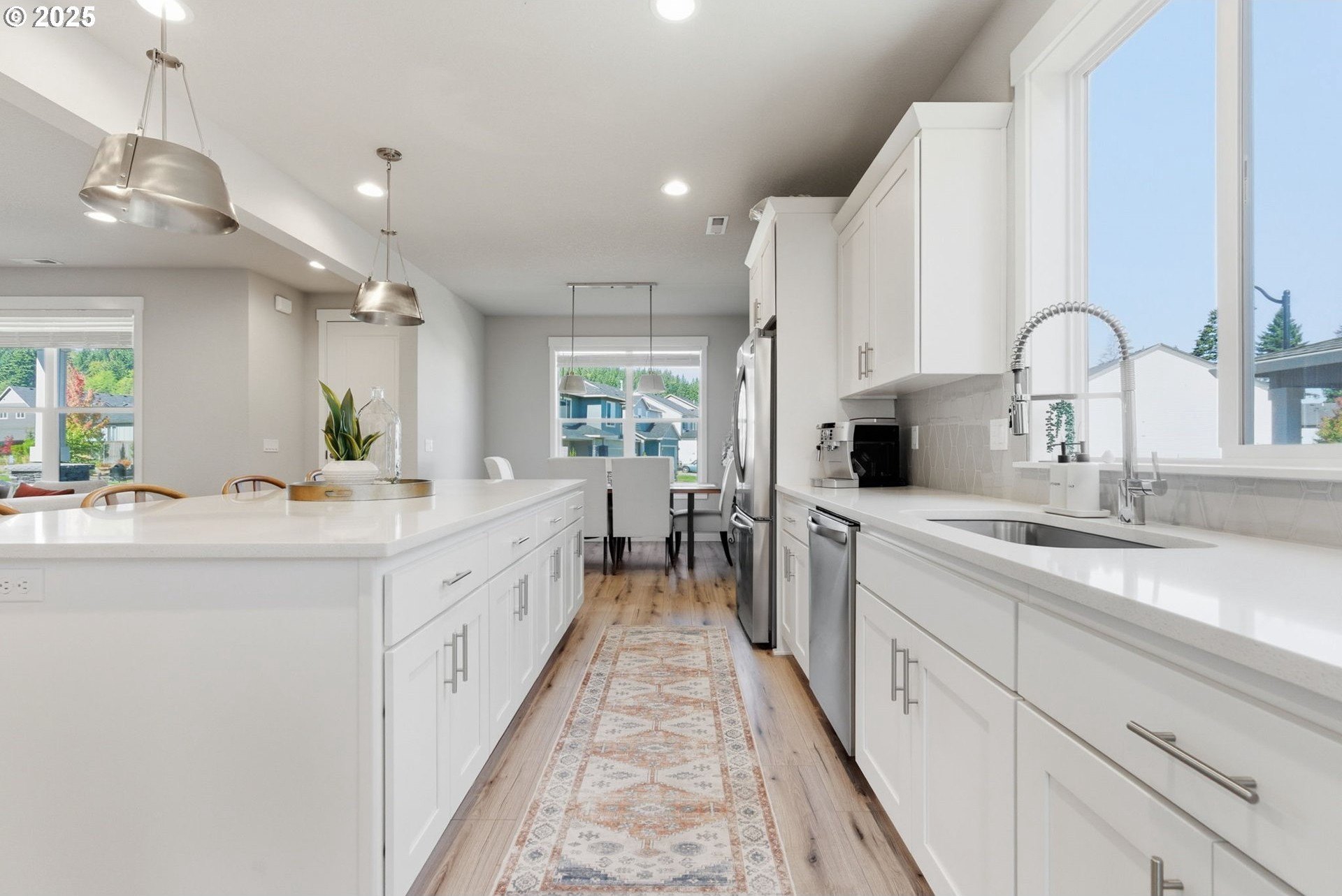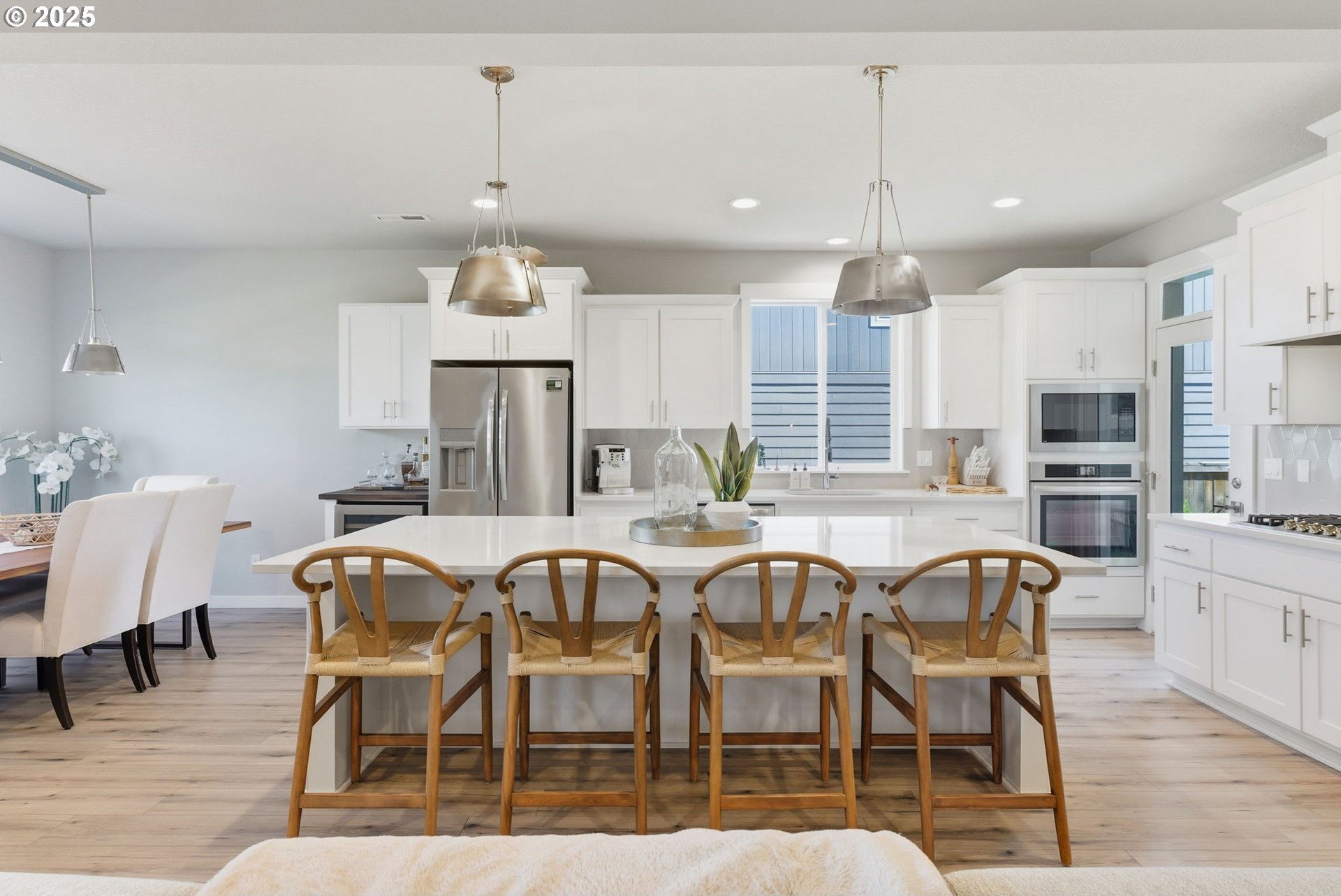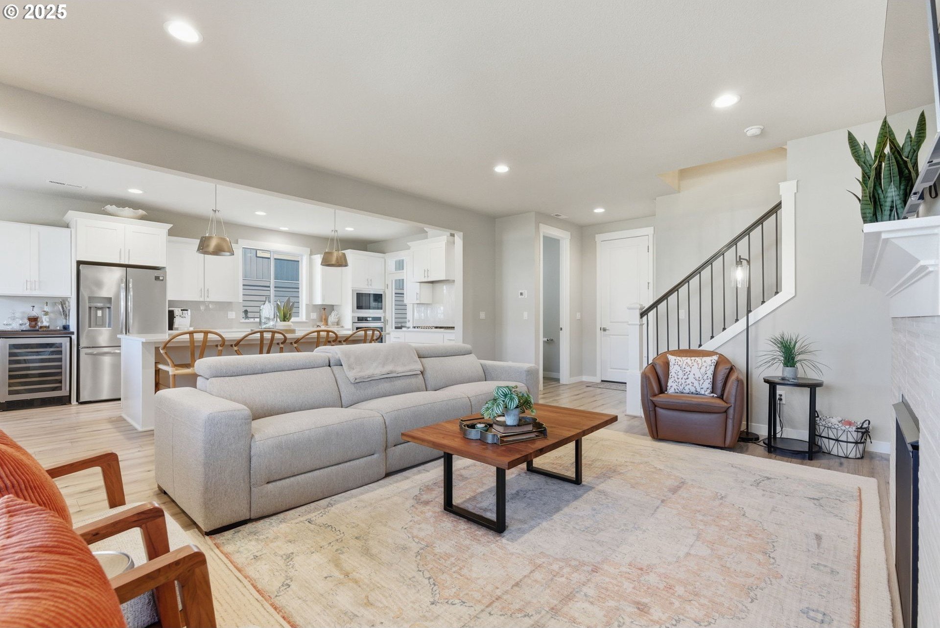 Built in 2022, this 4 bedroom, 2.5 bath Craftsman combines modern finishes with pristine condition. Lightly occupied and move-in ready, it shows like new. The open-concept chef’s kitchen offers abundant counter space, stainless steel gas appliances, a wine cooler, and a large quartz island with bar seating that's perfect for gatherings. The inviting living room centers around a cozy gas fireplace, while a separate dining area provides additional space for entertaining.Upgraded laminate flooring extends through the upper level and stairs. The spacious primary suite features high ceilings, a walk-in closet, and dual sinks in the ensuite bath.Enjoy outdoor living on the extended backyard patio that's ideal for grilling and relaxing, plus a fully fenced yard offering privacy and space for gardening.Located in one of Happy Valley’s sought-after newer neighborhoods, Pleasant Valley Villages offers exceptional amenities including a private community pool, playground, basketball court, trails, clubhouse, and more. Conveniently close to shopping, dining, and highway access.