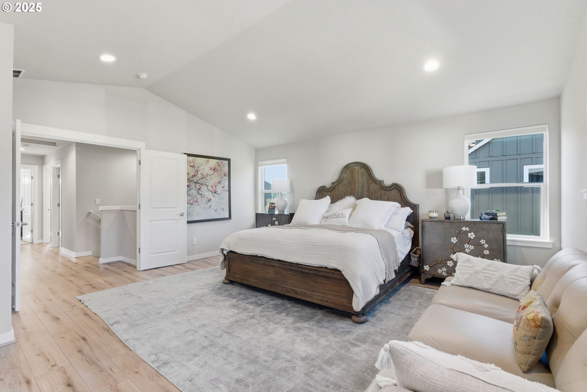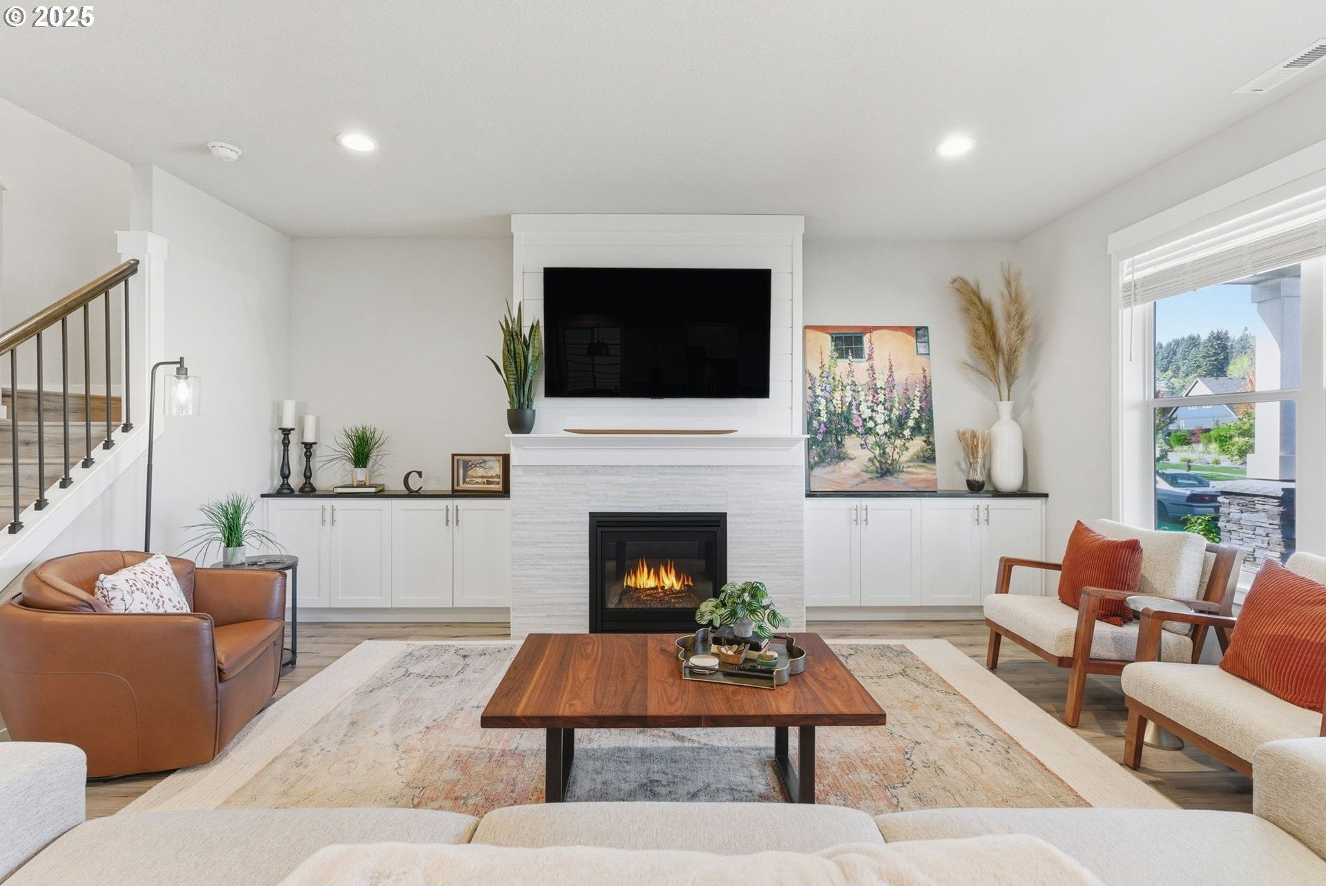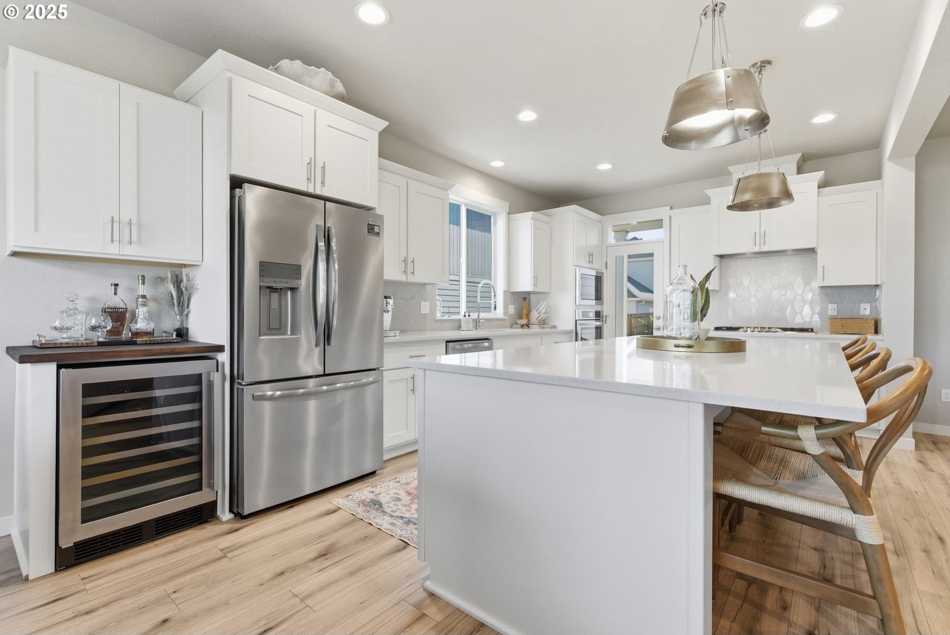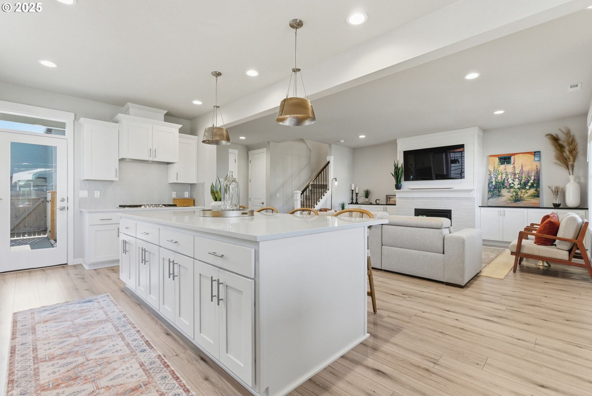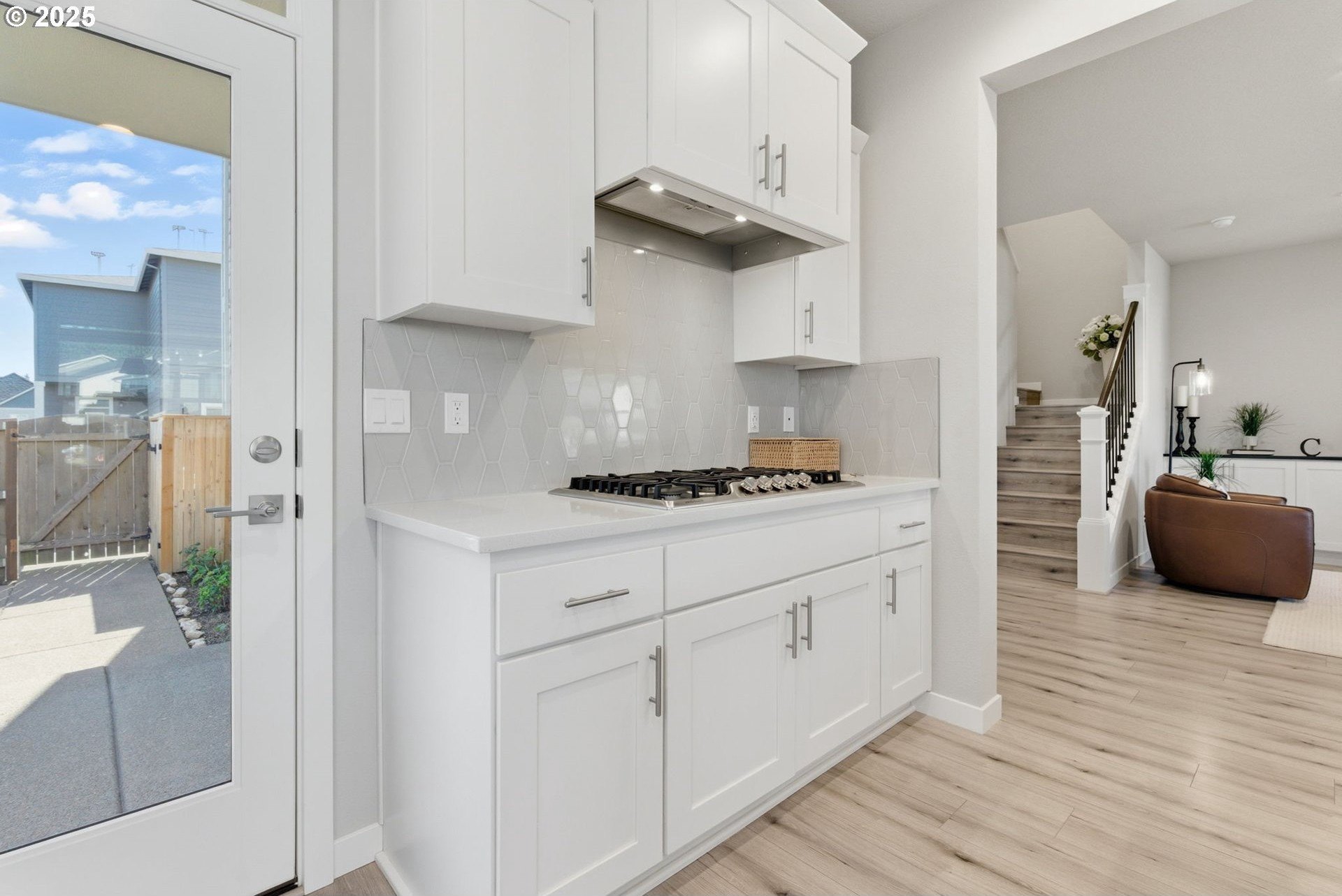 Built in 2022, this 4 bedroom, 2.5 bath Craftsman combines modern finishes with pristine condition. Lightly occupied and move-in ready, it shows like new. The open-concept chef’s kitchen offers abundant counter space, stainless steel gas appliances, a wine cooler, and a large quartz island with bar seating that's perfect for gatherings. The inviting living room centers around a cozy gas fireplace, while a separate dining area provides additional space for entertaining.Upgraded laminate flooring extends through the upper level and stairs. The spacious primary suite features high ceilings, a walk-in closet, and dual sinks in the ensuite bath.Enjoy outdoor living on the extended backyard patio that's ideal for grilling and relaxing, plus a fully fenced yard offering privacy and space for gardening.Located in one of Happy Valley’s sought-after newer neighborhoods, Pleasant Valley Villages offers exceptional amenities including a private community pool, playground, basketball court, trails, clubhouse, and more. Conveniently close to shopping, dining, and highway access.