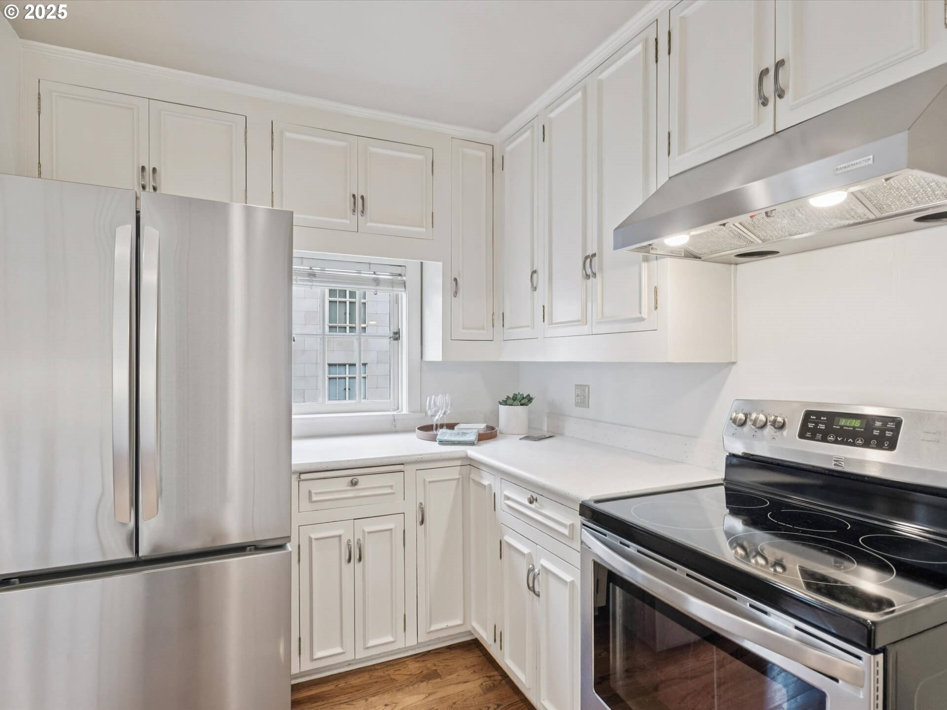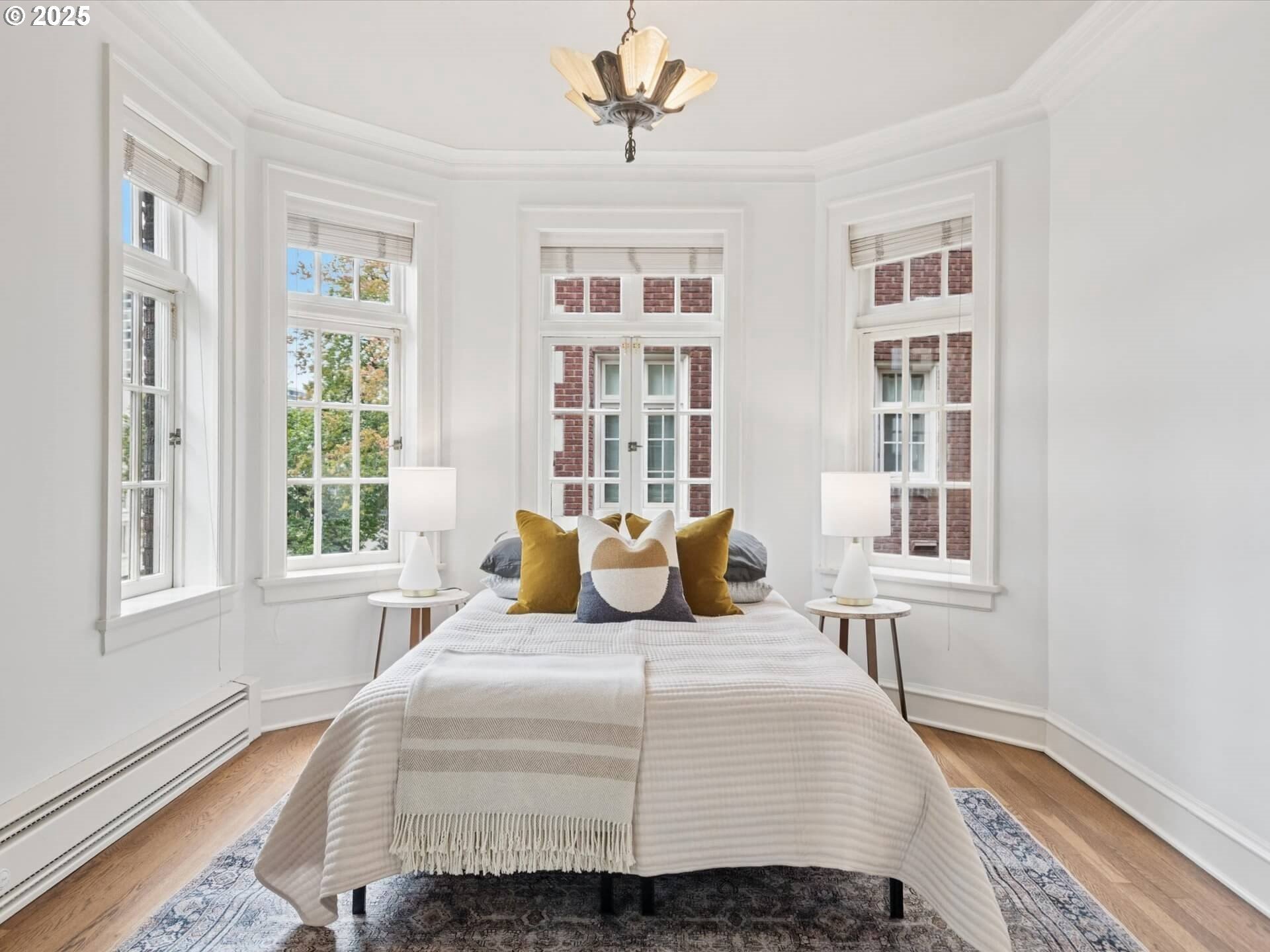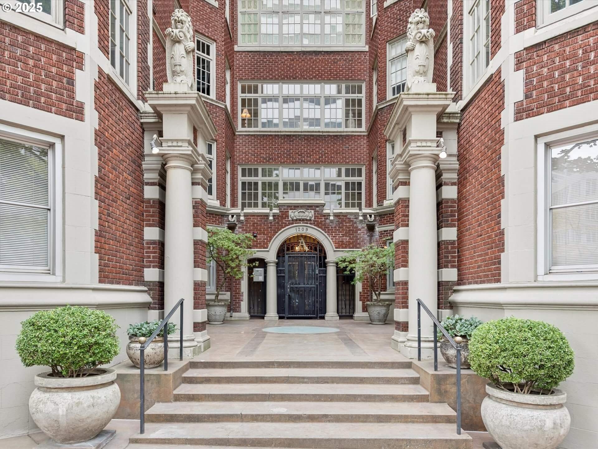 Step into a slice of Portland history at The Ambassador, a National Historic Landmark of the Italian Renaissance / Jacobean Tudor style. This front corner residence—nearly 2,100 sq. ft. on the 7th floor—feels straight out of NYC’s Upper West Side. Graced with abundant natural light from its north and east exposures, the condo features timeless details: gleaming hardwoods, crown molding, vintage lighting, and French doors. The layout offers rare flexibility and privacy with three ensuite bedrooms, a gracious formal entry, and expansive living and dining rooms perfect for entertaining. The spacious kitchen with a charming breakfast nook and built-ins adds everyday comfort, while in-unit laundry and only one shared wall enhance convenience and quiet. Enjoy the newly designed rooftop terrace for modern relaxation and entertaining, plus dedicated parking, private storage, pet-friendly living, and no rental cap. A truly special opportunity in one of Portland’s most storied buildings.