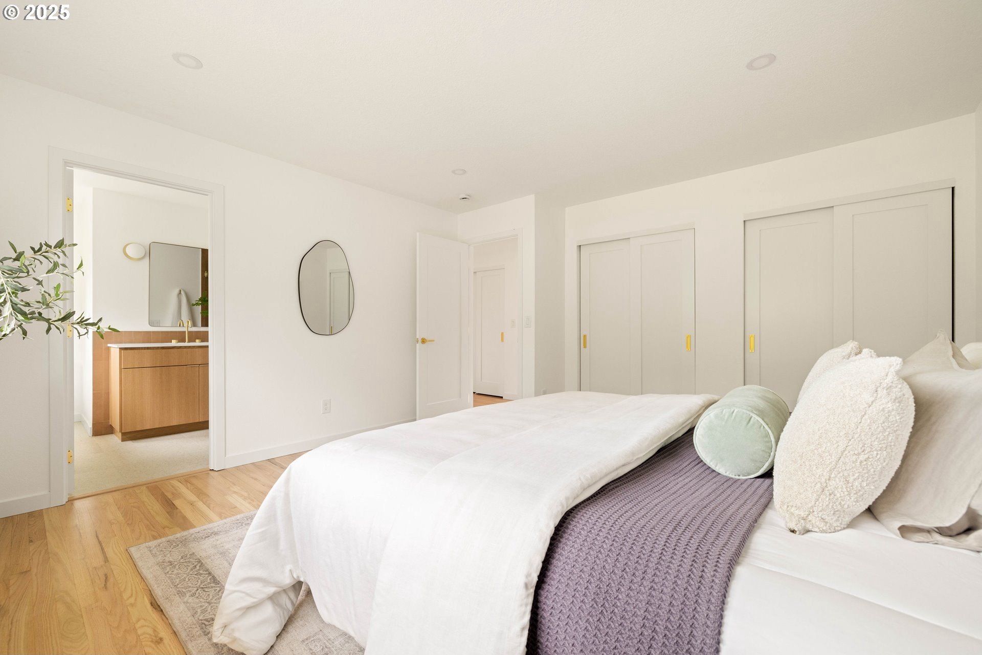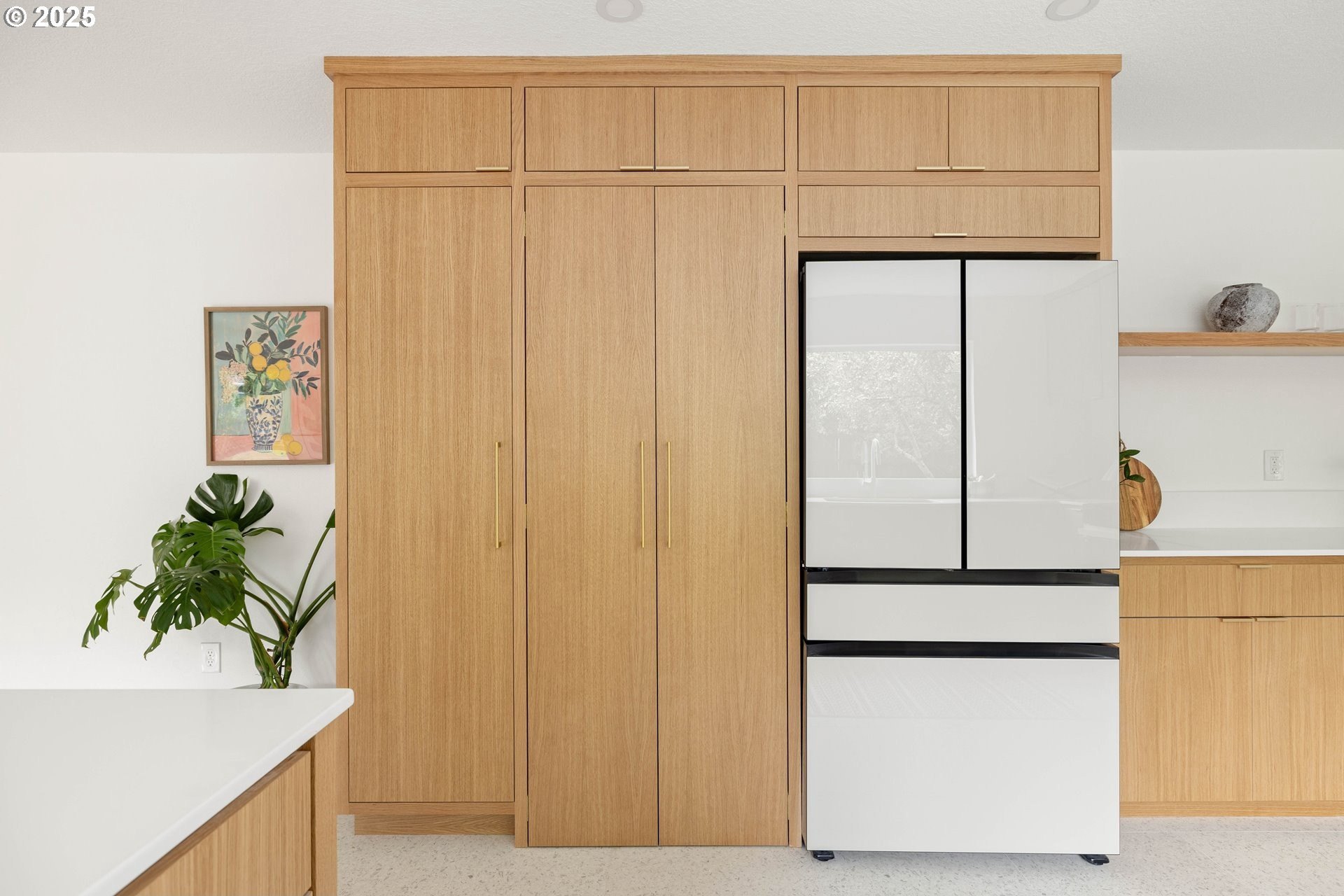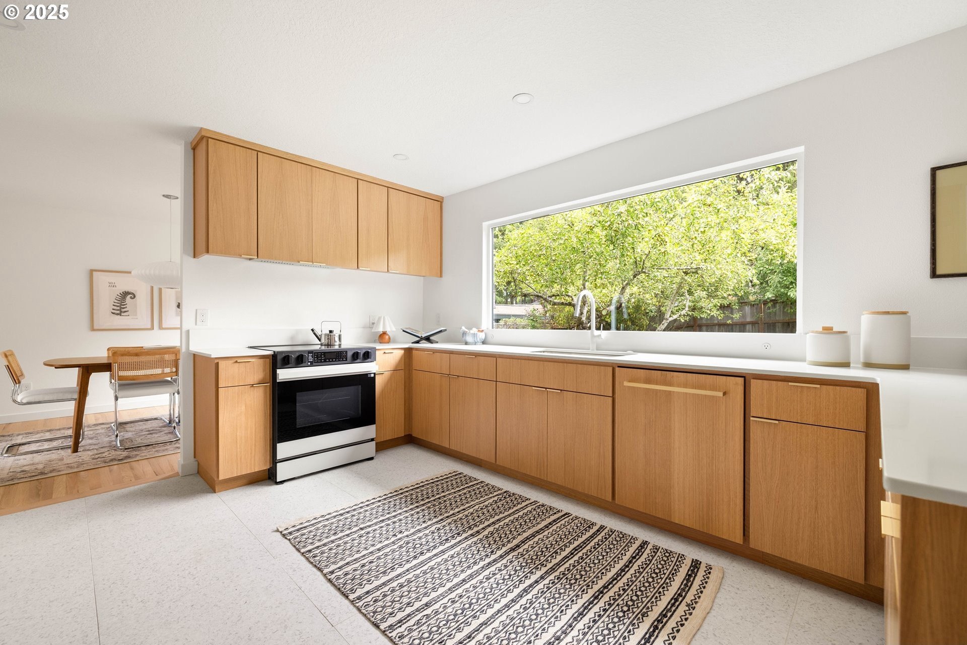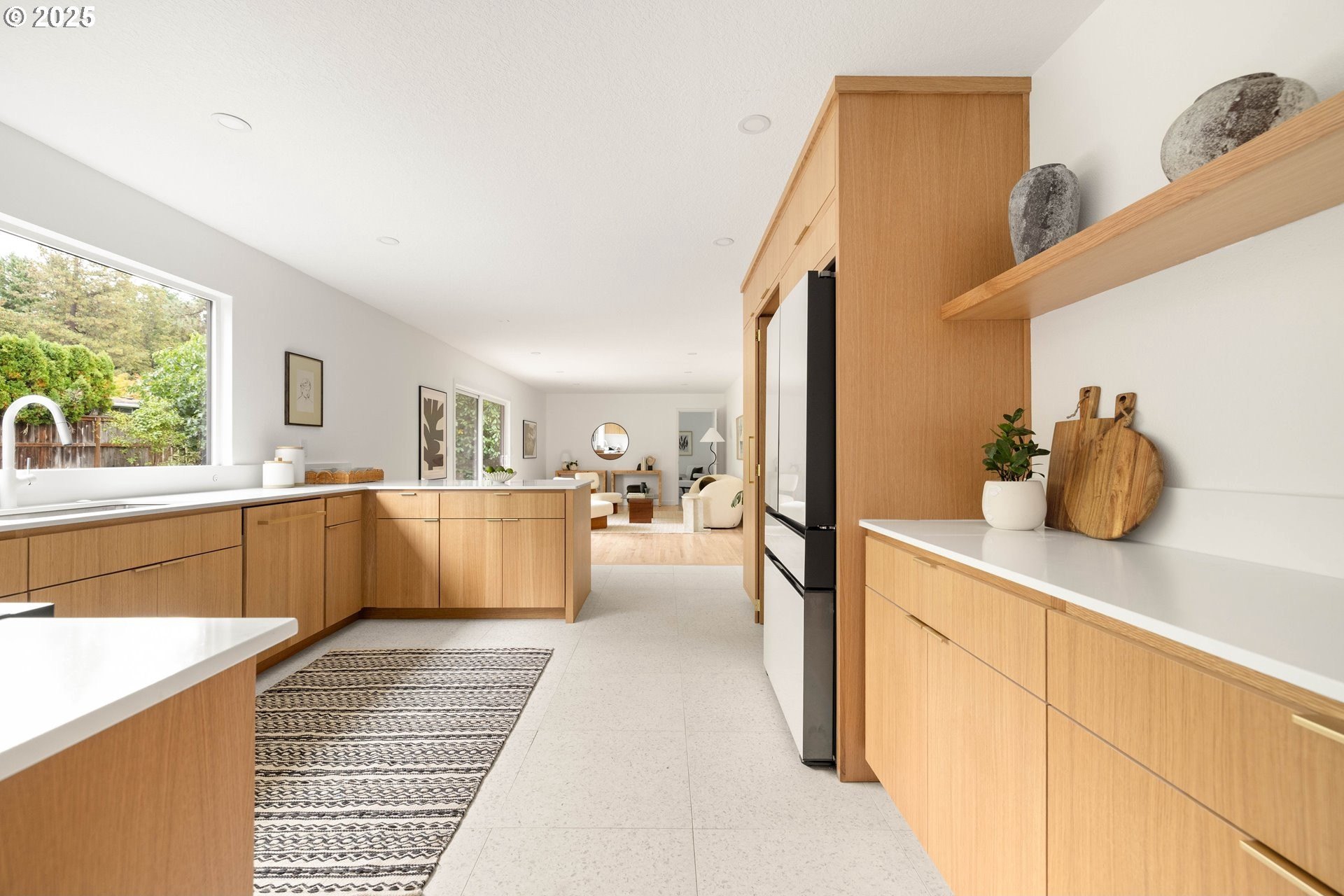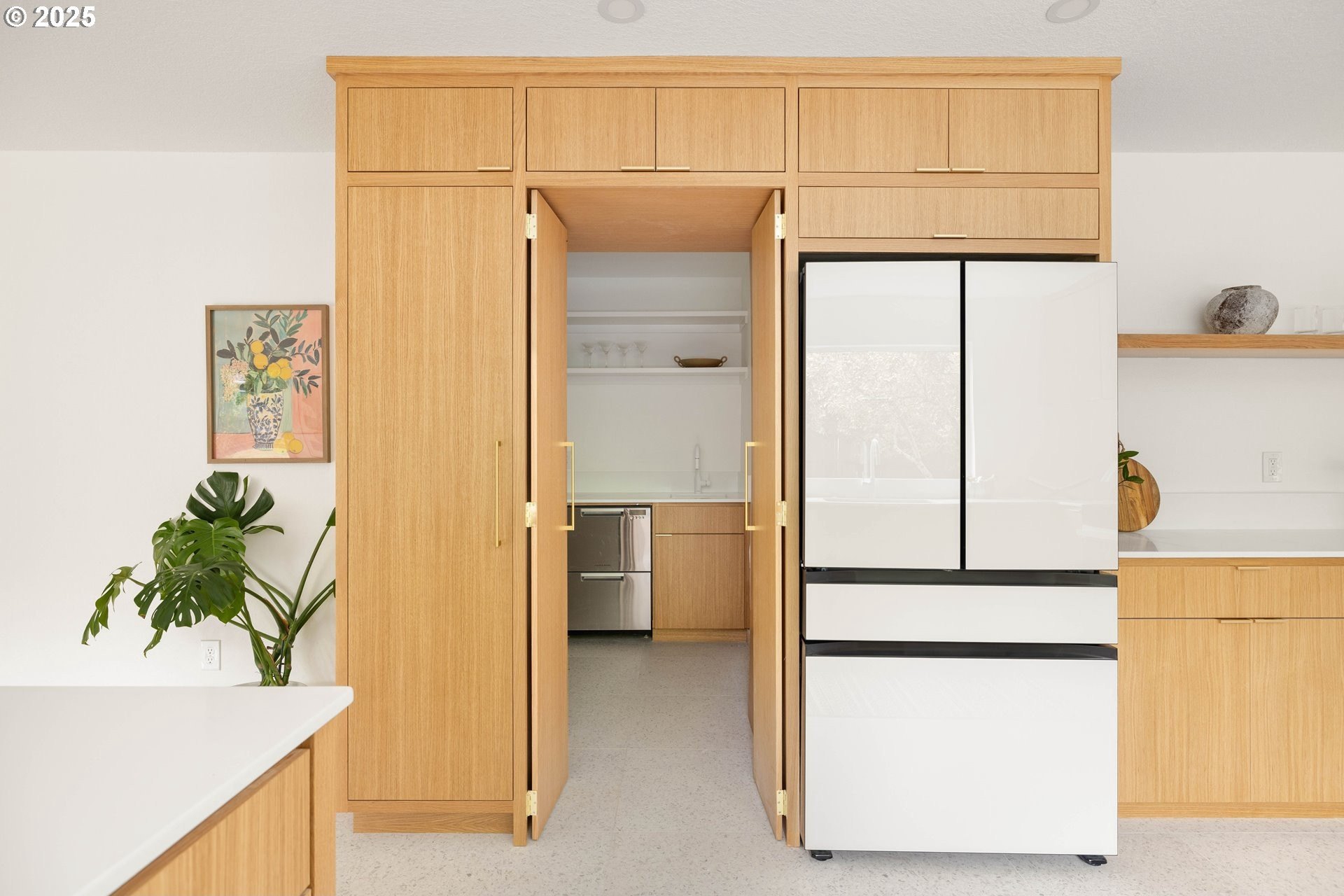 This one is straight out of Dwell Magazine. Every inch of this home was reimagined with intention. A hidden scullery adds a layer of quiet luxury to the expansive kitchen, anchored by custom white-oak cabinetry and bathed in natural light. Refinished hardwood floors flow throughout the open spaces, creating warmth and continuity. High-end details—featuring pieces from Herman Miller and Design Within Reach—give the home a curated, modern sensibility. Large bedrooms offer calm and proportion, while new air-conditioning ensures comfort in every season. Outside, cedar-plank garage doors nod to mid-century craftsmanship, and the surrounding neighborhood of wide, quiet streets completes the picture: refined design, livable beauty, and a sense of place that feels truly intentional. This one is special.