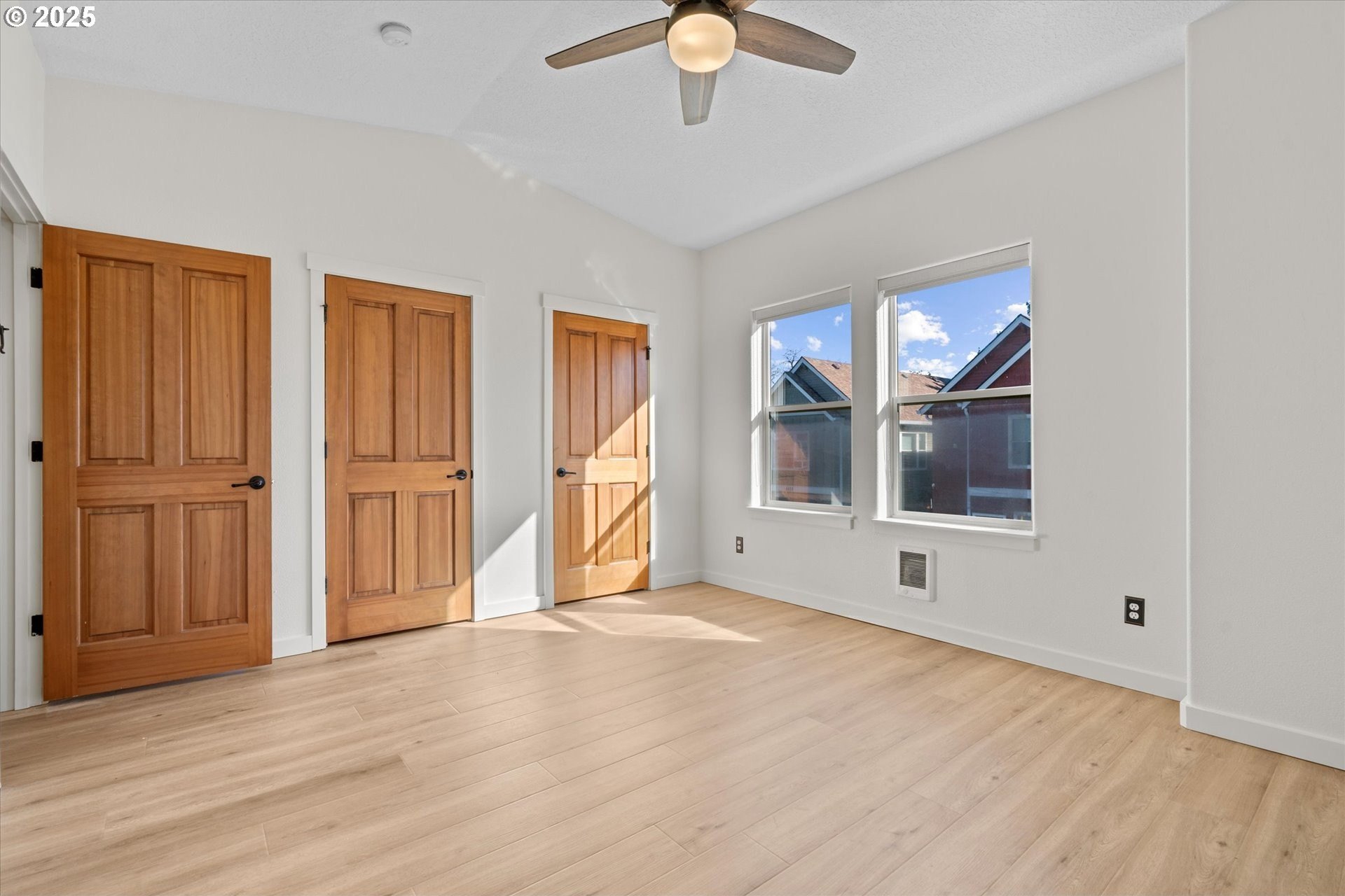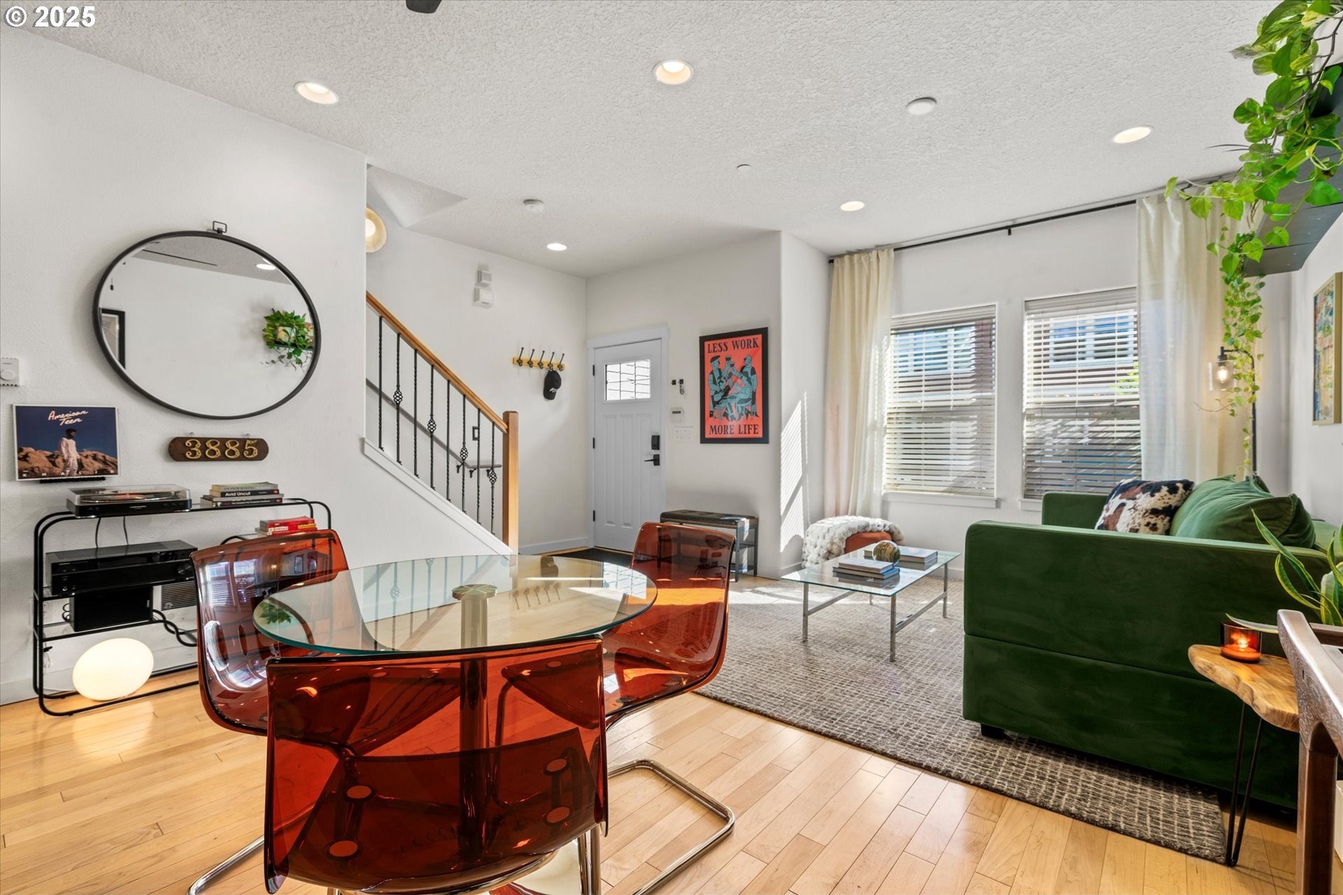This townhome-style condo offers the perfect blend of privacy, comfort, and close-in city convenience. Located on a quiet drive just off NE Killingsworth, this home is blocks from the Kennedy School, Fernhill Park, and neighborhood favorites along Alberta, 42nd, Fremont, and Killingsworth. Inside, the open main floor features warm hardwood floors, a spacious great-room layout, and a flexible bedroom/home office with access to your own private, fenced backyard and patio. Great for relaxing after a long day. The kitchen is designed for everyday ease, with stainless steel appliances, slab granite counters, tall cabinets, a pantry, and an eat-in bar plus dining area. Upstairs, you will find two generous bedrooms with vaulted ceilings, double closets, new LVP flooring, and a full bathroom with double sinks, a soaking tub, separate shower, and a private water closet. Convenient front-load laundry included. With a dedicated parking space, a 1-year home warranty, a relaxed pet policy, and no rental cap, this home gives you flexibility to grow. Whether you are hosting friends, working remotely, or exploring the neighborhood, this condo fits your lifestyle. Move-in ready and waiting for you!