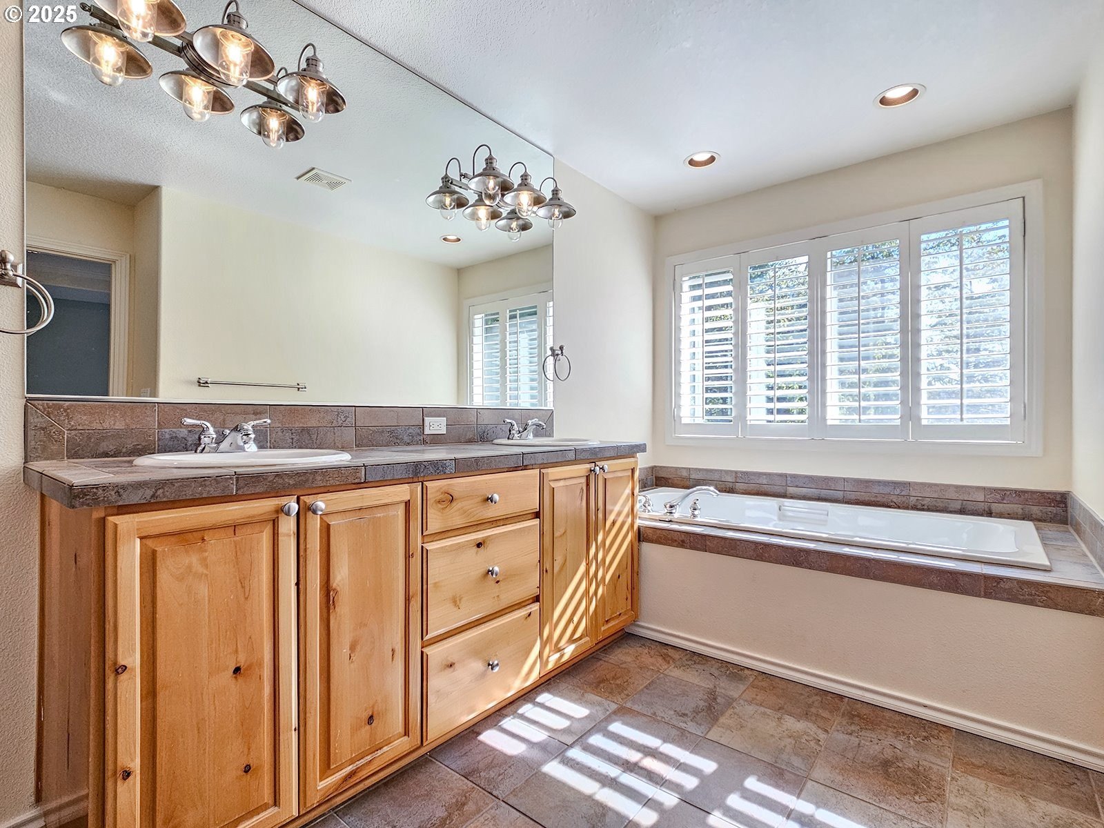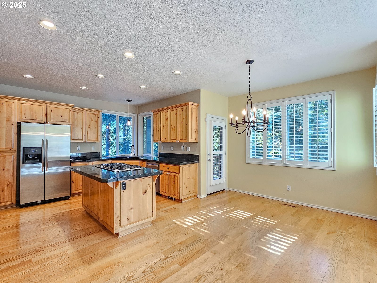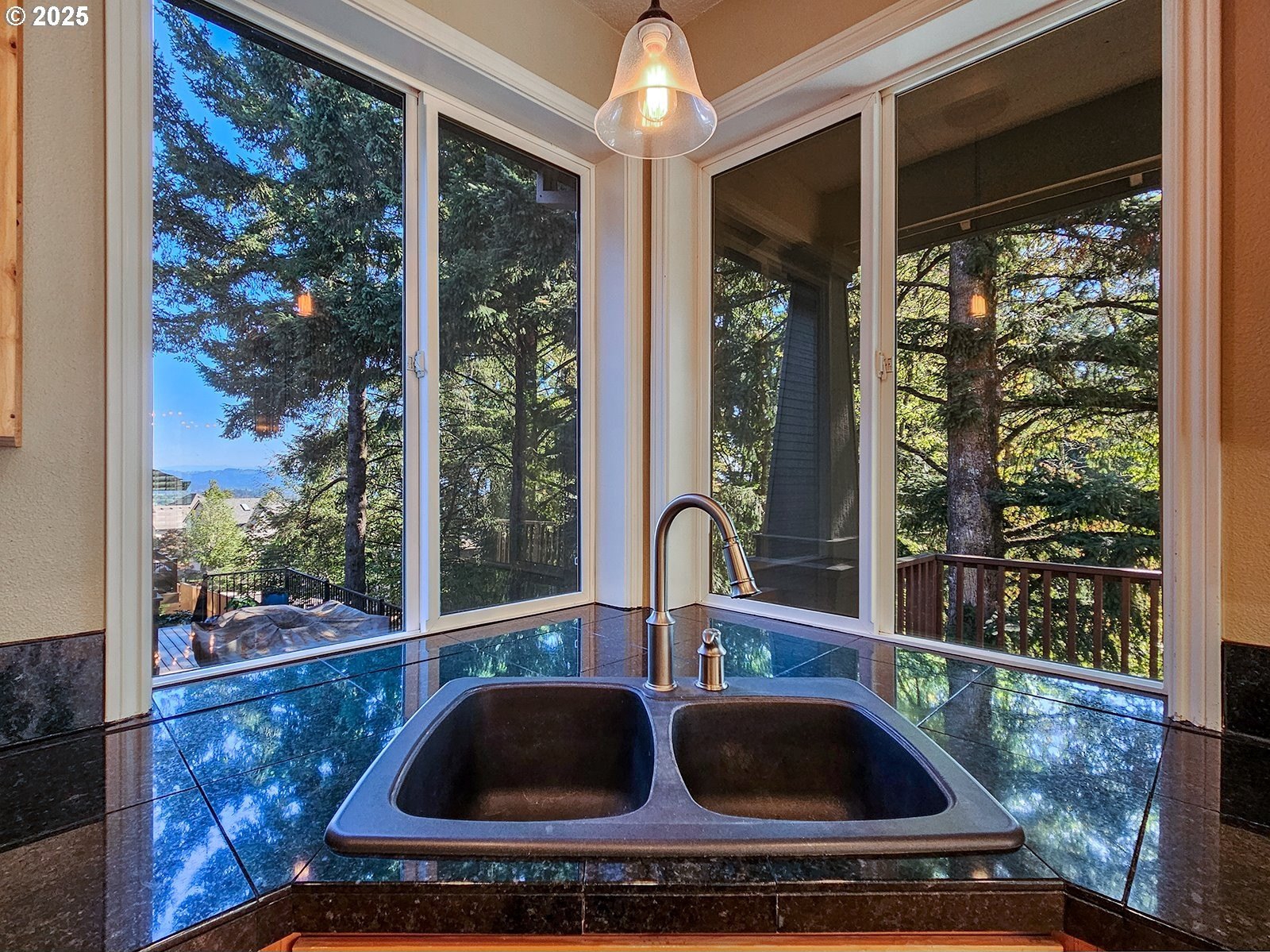 Welcome to 14992 SW Lookout Drive in Tigard’s desirable Arbor Summit community on Bull Mountain. This beautifully maintained 3,154 sq. ft. home offers 4 bedrooms, 3 full baths, plus a main-level den that could serve as a fifth bedroom with an adjacent full bath. A marble entry leads to a warm and inviting interior featuring a formal dining room with wainscoting, a living room with a bay window and plantation shutters, and a comfortable family room with a gas fireplace and built-ins. The kitchen is ideal for entertaining, complete with hardwood floors, granite countertops, a cook island, stainless steel appliances, a butler’s pantry, and a light-filled eating area that opens to a spacious covered deck overlooking the wooded backyard. Upstairs, the luxurious primary suite offers a coffered ceiling, spa-like bath with tile floors and counters, a soaking tub, separate shower, and a large walk-in closet. Wide hallways, a spindled staircase, and elegant finishes throughout add to the sense of openness and quality.Additional highlights include a large laundry room with washer and dryer, central air conditioning, a 75-gallon hot water tank, and a 3-car garage. Enjoy peace and privacy on a wooded lot with a partial view of Mt. Hood—just minutes from top-rated schools, parks, and shopping.This is Bull Mountain living at its finest—elegant, comfortable, and move-in ready.