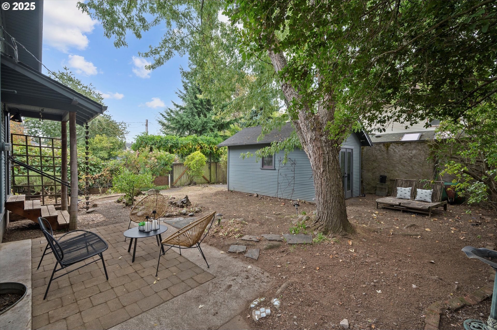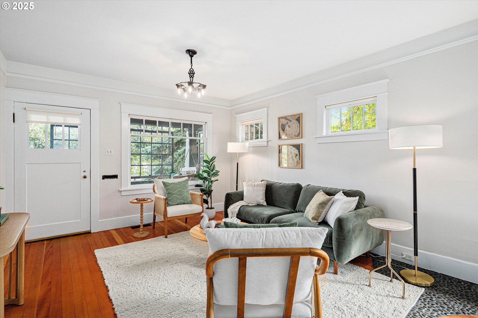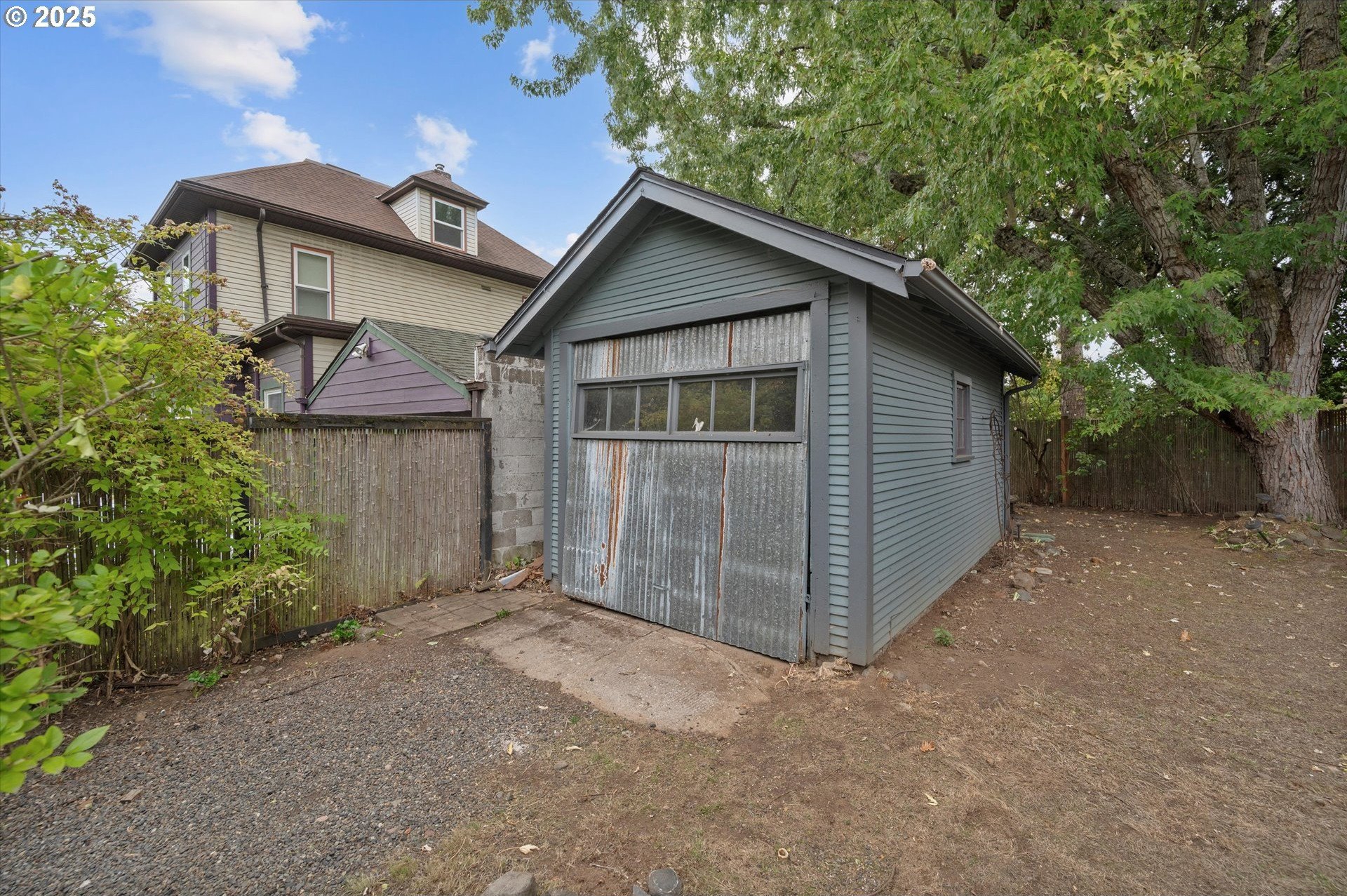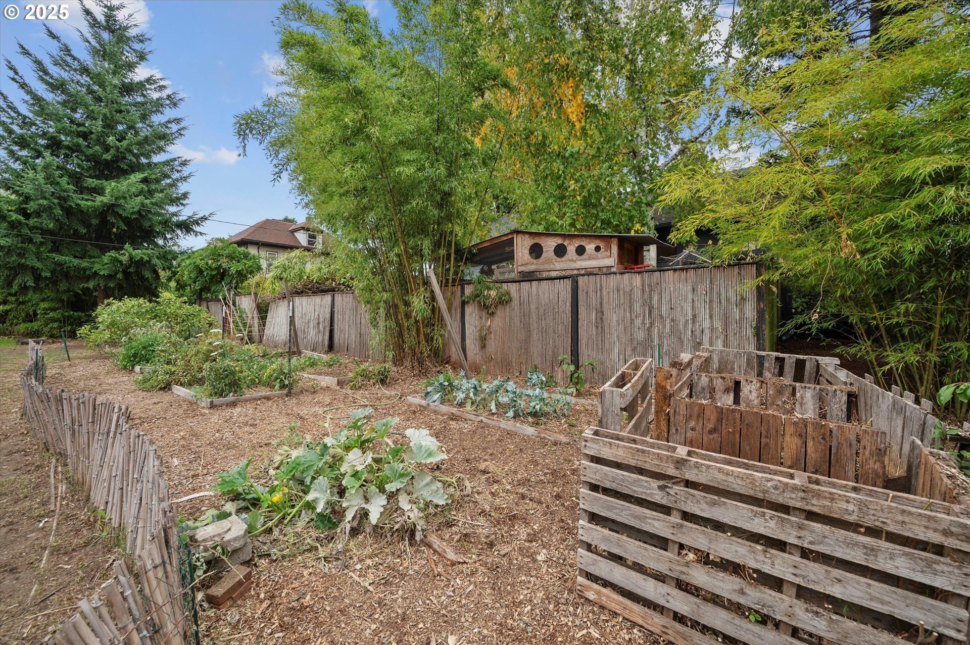 Welcome to this delightful St. Johns bungalow, where high ceilings, hardwood floors, and an open floor plan create a bright, inviting space filled with character. Sunlight pours through large windows overlooking a garden sanctuary bursting with life — from kiwi, pomegranate, and plum trees to Japanese wisteria and a thriving vegetable garden. A rain barrel system keeps things green year-round, and a deluxe chicken coop and run make this home a true urban homestead.The open kitchen features stainless steel appliances and a gas Wolf range that’s perfect for everyday cooking or sharing meals with friends. The bathroom is light and airy with a vintage clawfoot tub and hex-tile flooring. The basement offers flexible space for an office, workshop, or creative studio, the large light filled attic offers great storage and the possibility for future living space, while the detached garage—with power already installed—awaits your next project.Located on an oversized corner lot, this home offers a sense of peace and privacy while keeping you close to everything that makes St. Johns special. Just moments from downtown St. Johns, you’ll enjoy local coffee shops, restaurants, and boutique stores, as well as the scenic trails and river views of Cathedral Park. It’s a welcoming neighborhood with a small-town feel, community events, and the kind of charm that makes you feel right at home.Upgrades include refinished hardwood floors, interior paint, exterior paint, garage doors and electrical.