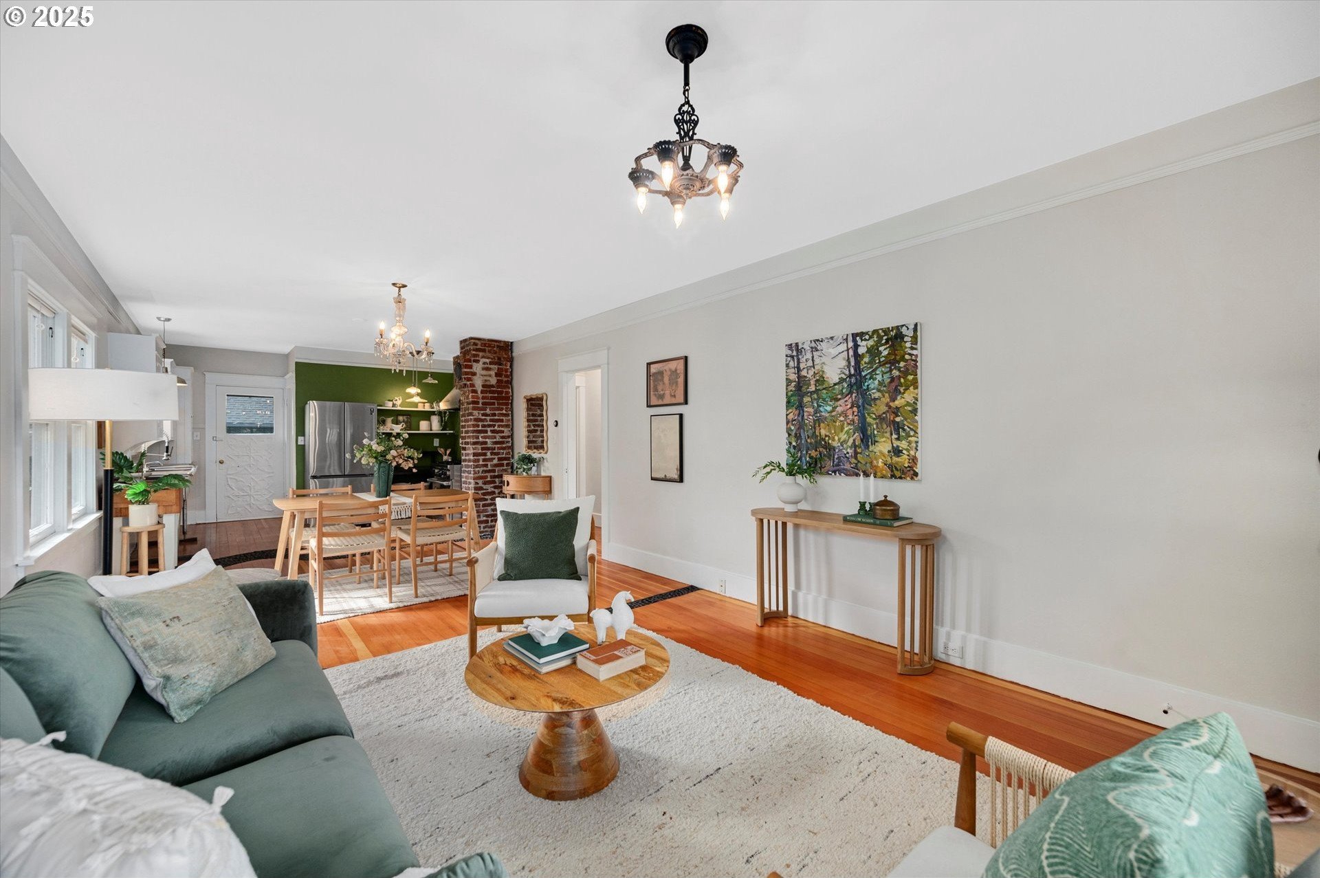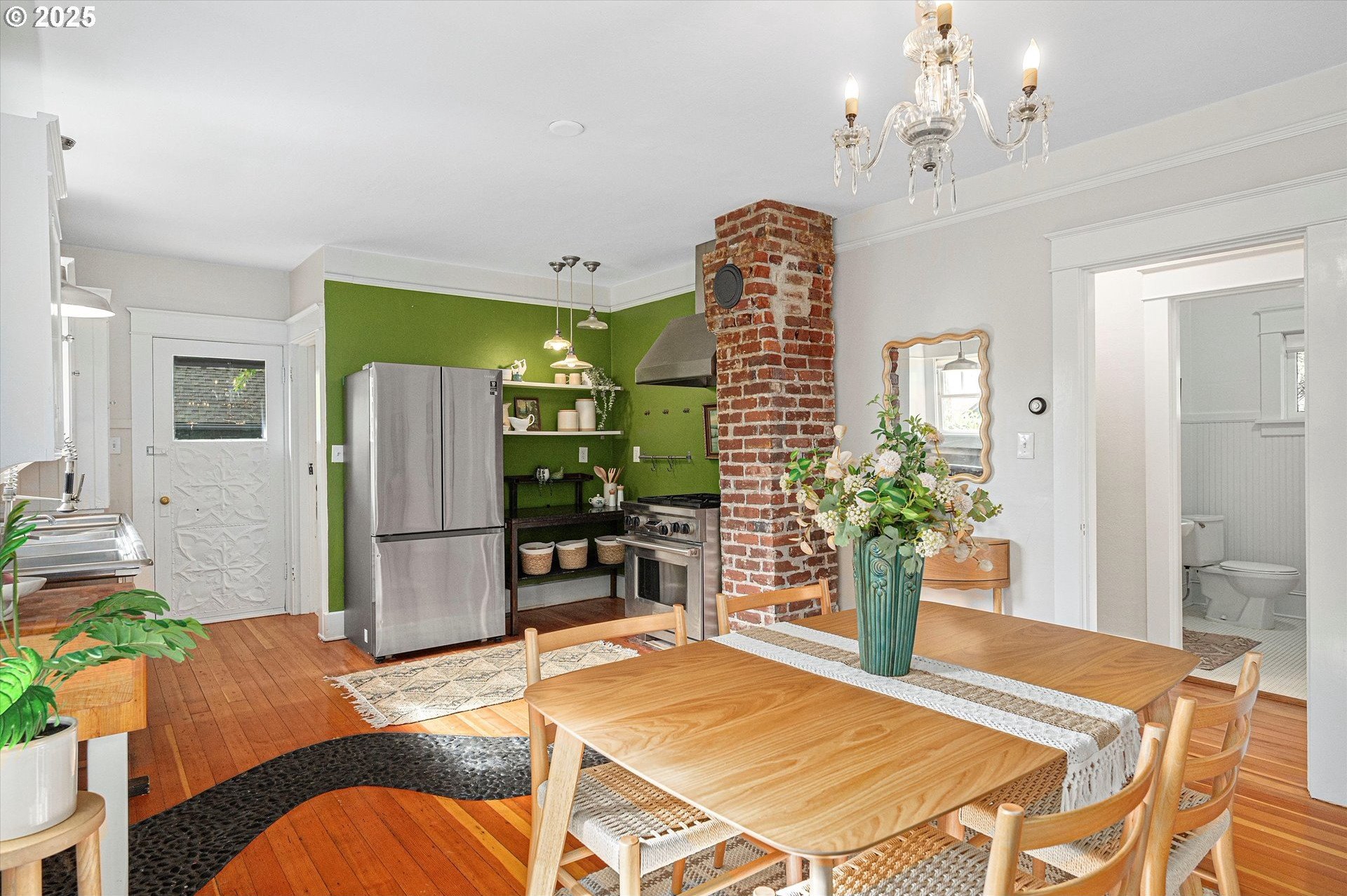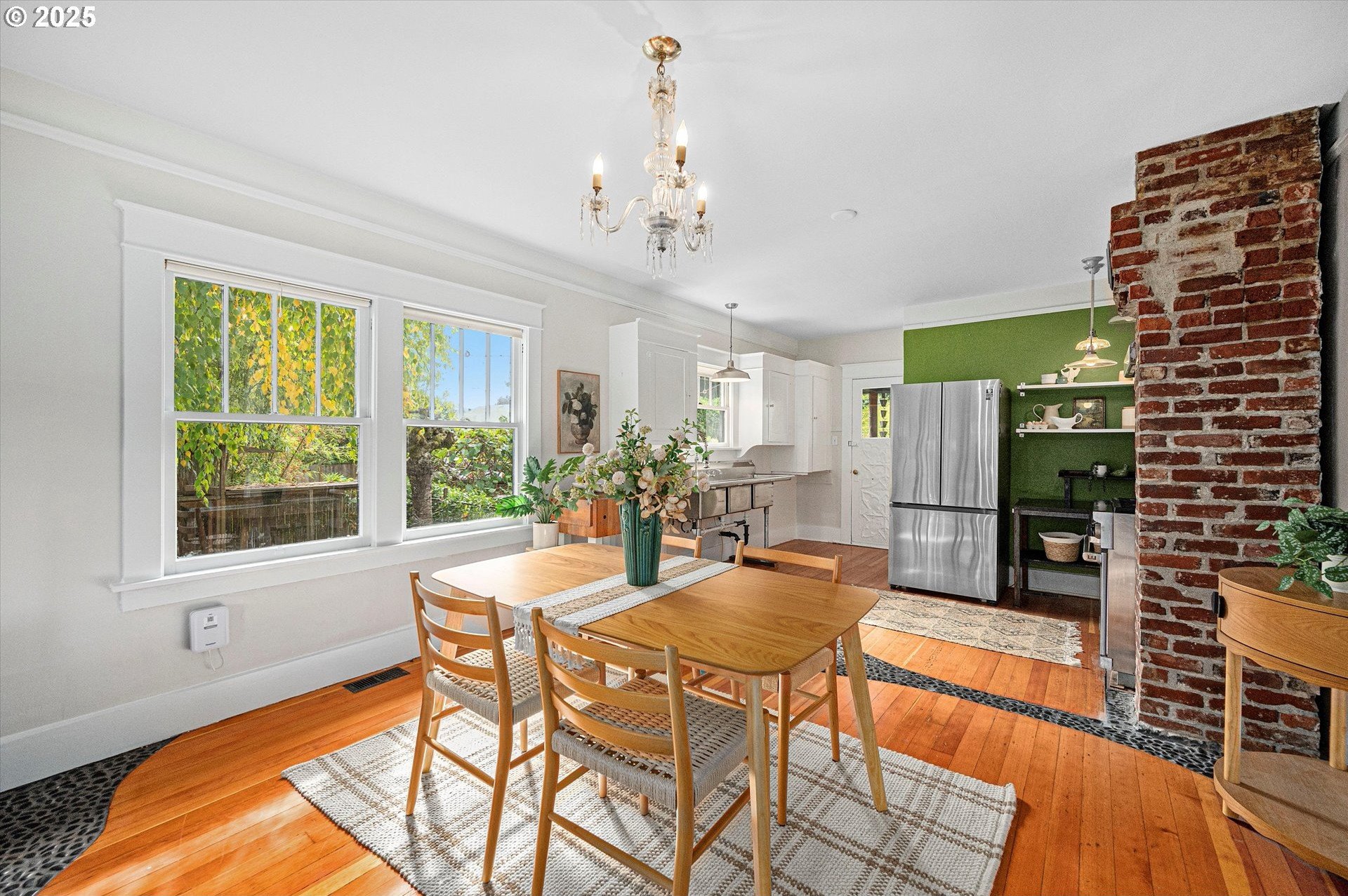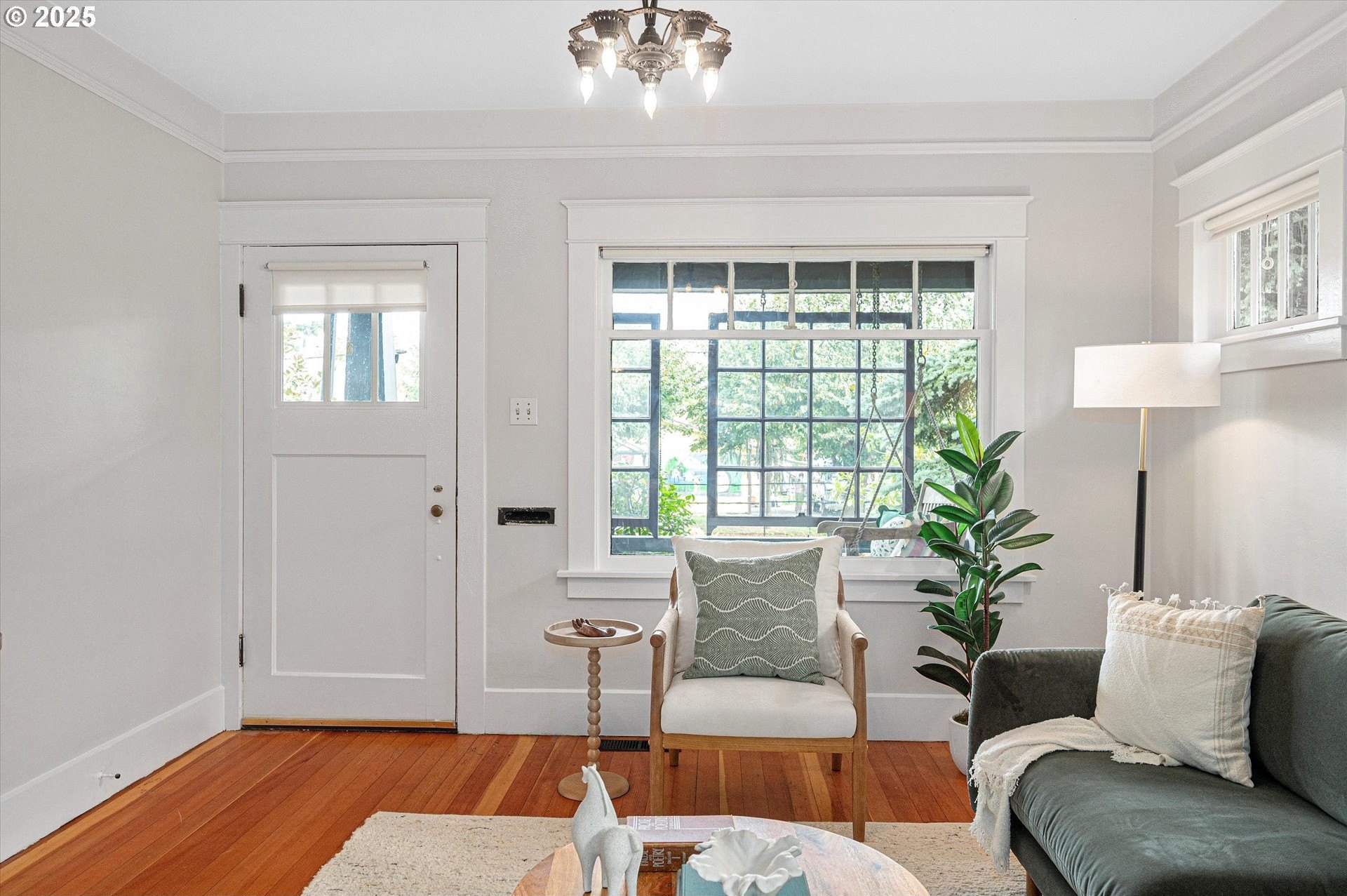 Welcome to this delightful St. Johns bungalow, where high ceilings, hardwood floors, and an open floor plan create a bright, inviting space filled with character. Sunlight pours through large windows overlooking a garden sanctuary bursting with life — from kiwi, pomegranate, and plum trees to Japanese wisteria and a thriving vegetable garden. A rain barrel system keeps things green year-round, and a deluxe chicken coop and run make this home a true urban homestead.The open kitchen features stainless steel appliances and a gas Wolf range that’s perfect for everyday cooking or sharing meals with friends. The bathroom is light and airy with a vintage clawfoot tub and hex-tile flooring. The basement offers flexible space for an office, workshop, or creative studio, the large light filled attic offers great storage and the possibility for future living space, while the detached garage—with power already installed—awaits your next project.Located on an oversized corner lot, this home offers a sense of peace and privacy while keeping you close to everything that makes St. Johns special. Just moments from downtown St. Johns, you’ll enjoy local coffee shops, restaurants, and boutique stores, as well as the scenic trails and river views of Cathedral Park. It’s a welcoming neighborhood with a small-town feel, community events, and the kind of charm that makes you feel right at home.Upgrades include refinished hardwood floors, interior paint, exterior paint, garage doors and electrical.