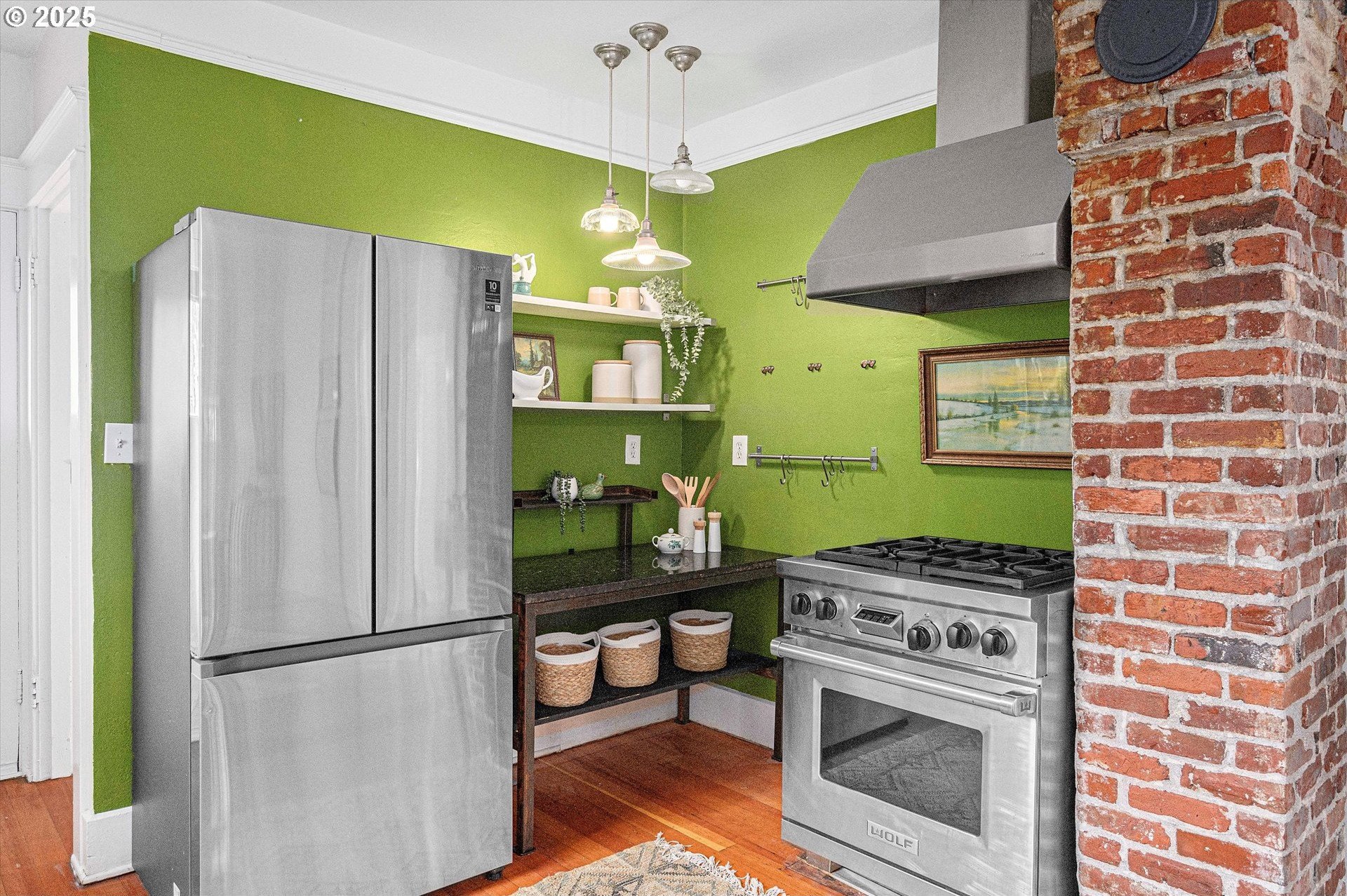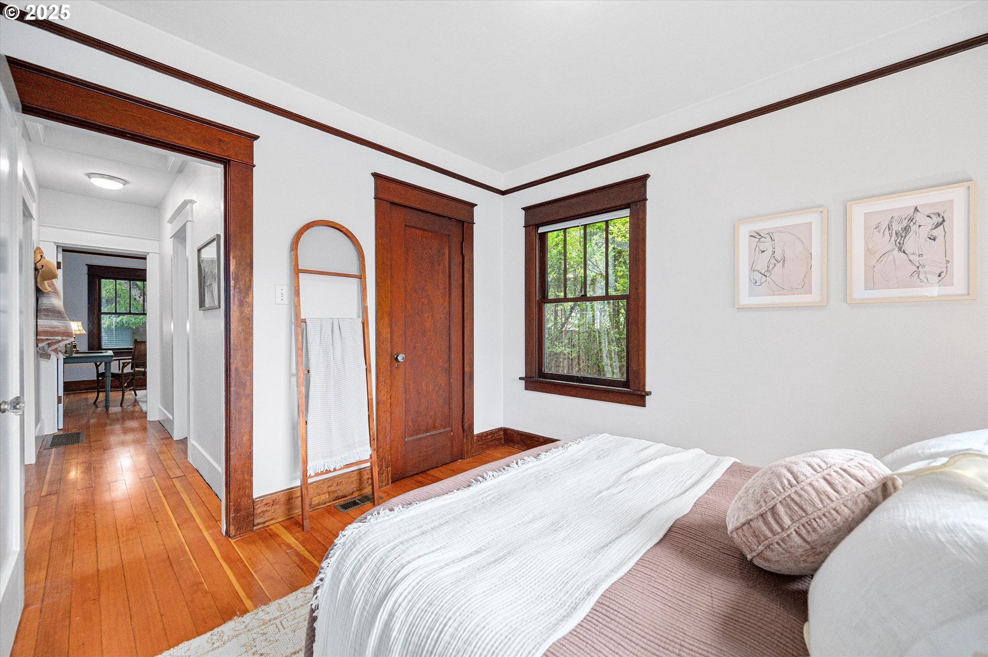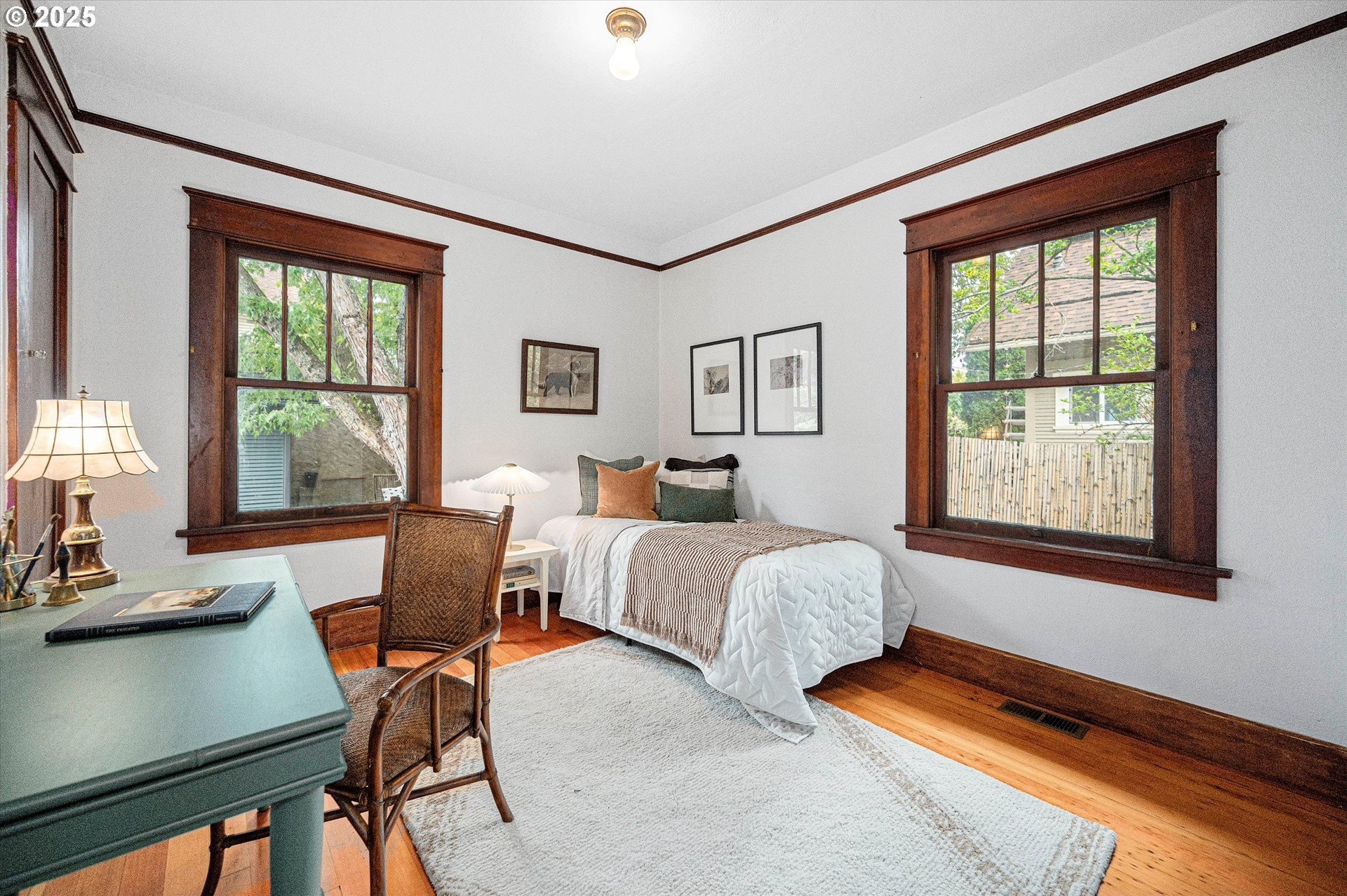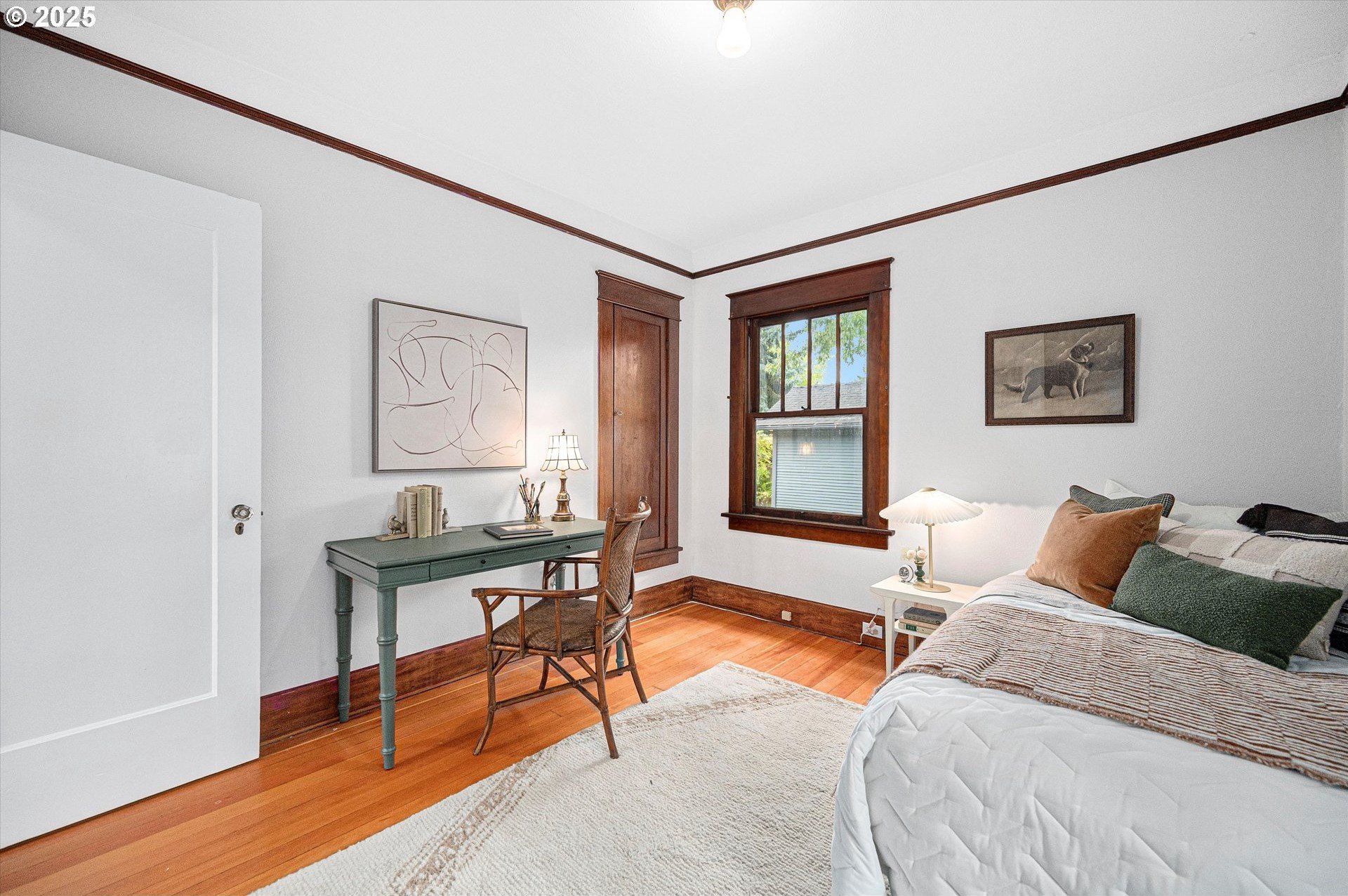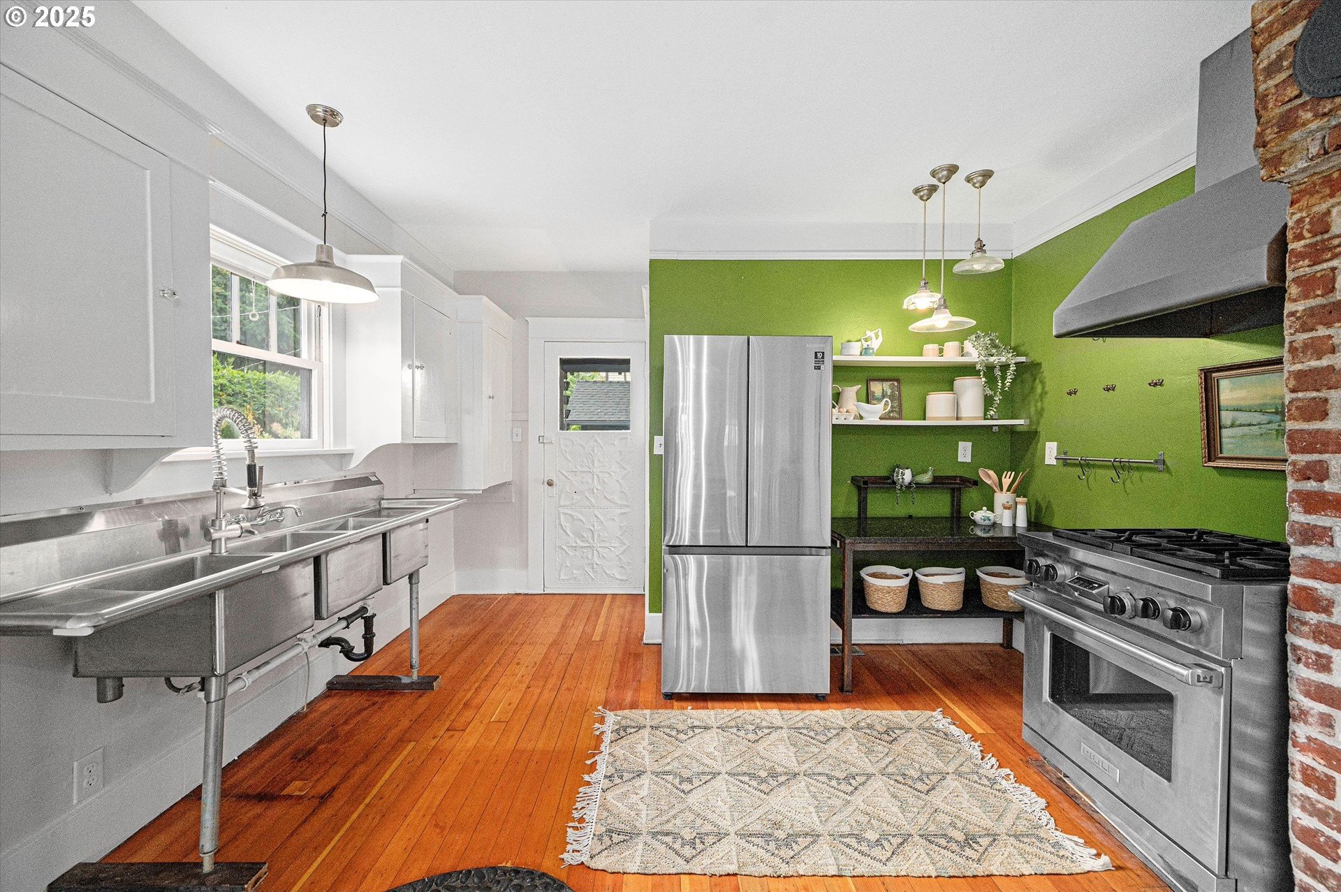 Welcome to this delightful St. Johns bungalow, where high ceilings, hardwood floors, and an open floor plan create a bright, inviting space filled with character. Sunlight pours through large windows overlooking a garden sanctuary bursting with life — from kiwi, pomegranate, and plum trees to Japanese wisteria and a thriving vegetable garden. A rain barrel system keeps things green year-round, and a deluxe chicken coop and run make this home a true urban homestead.The open kitchen features stainless steel appliances and a gas Wolf range that’s perfect for everyday cooking or sharing meals with friends. The bathroom is light and airy with a vintage clawfoot tub and hex-tile flooring. The basement offers flexible space for an office, workshop, or creative studio, the large light filled attic offers great storage and the possibility for future living space, while the detached garage—with power already installed—awaits your next project.Located on an oversized corner lot, this home offers a sense of peace and privacy while keeping you close to everything that makes St. Johns special. Just moments from downtown St. Johns, you’ll enjoy local coffee shops, restaurants, and boutique stores, as well as the scenic trails and river views of Cathedral Park. It’s a welcoming neighborhood with a small-town feel, community events, and the kind of charm that makes you feel right at home.Upgrades include refinished hardwood floors, interior paint, exterior paint, garage doors and electrical.