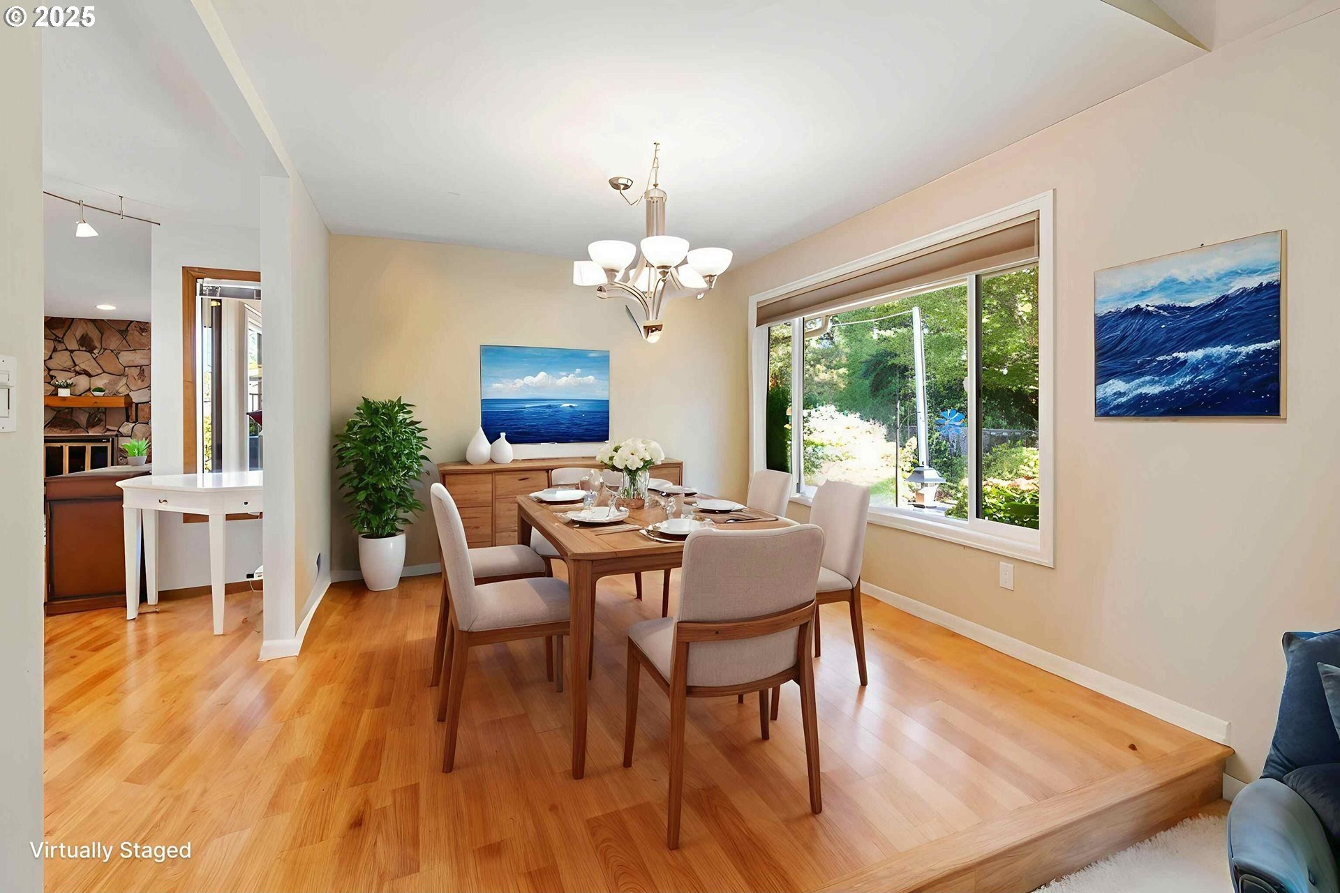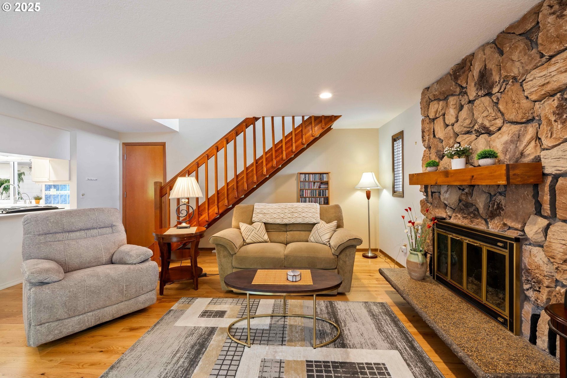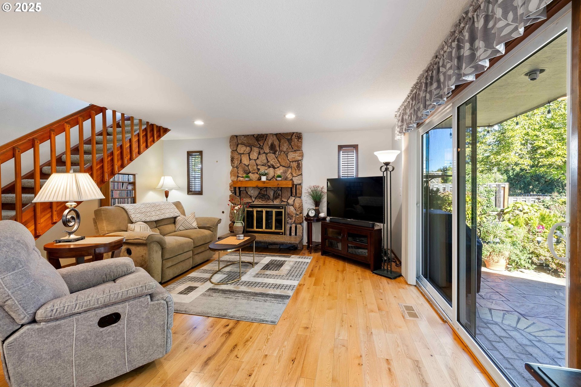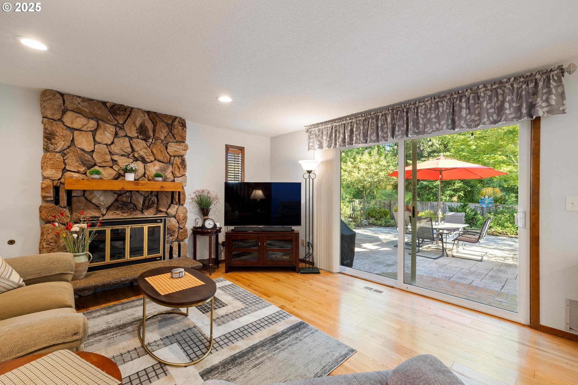 Backed to a peaceful private greenspace, this spacious 5-bedroom + Bonus, 3-bath home offers a thoughtful and functional floorplan designed for comfort and versatility. The main level features the primary suite with custom built-ins, an en suite bathroom with a walk-in shower, dual sinks, and a walk-in closet with built-in organization, plus two additional bedrooms. Enjoy the warmth of hardwood floors, a sunken living room, family room with a cozy fireplace, providing spaces that balance open gathering areas with private retreats. Upstairs, you'll find additional bedrooms, vaulted bonus room, and a full bath—ideal for guests or a home office setup. The backyard invites relaxation and entertaining with a large patio, space for gardening. Conveniently located near Greenway Park, Washington Square, and easy freeway access.