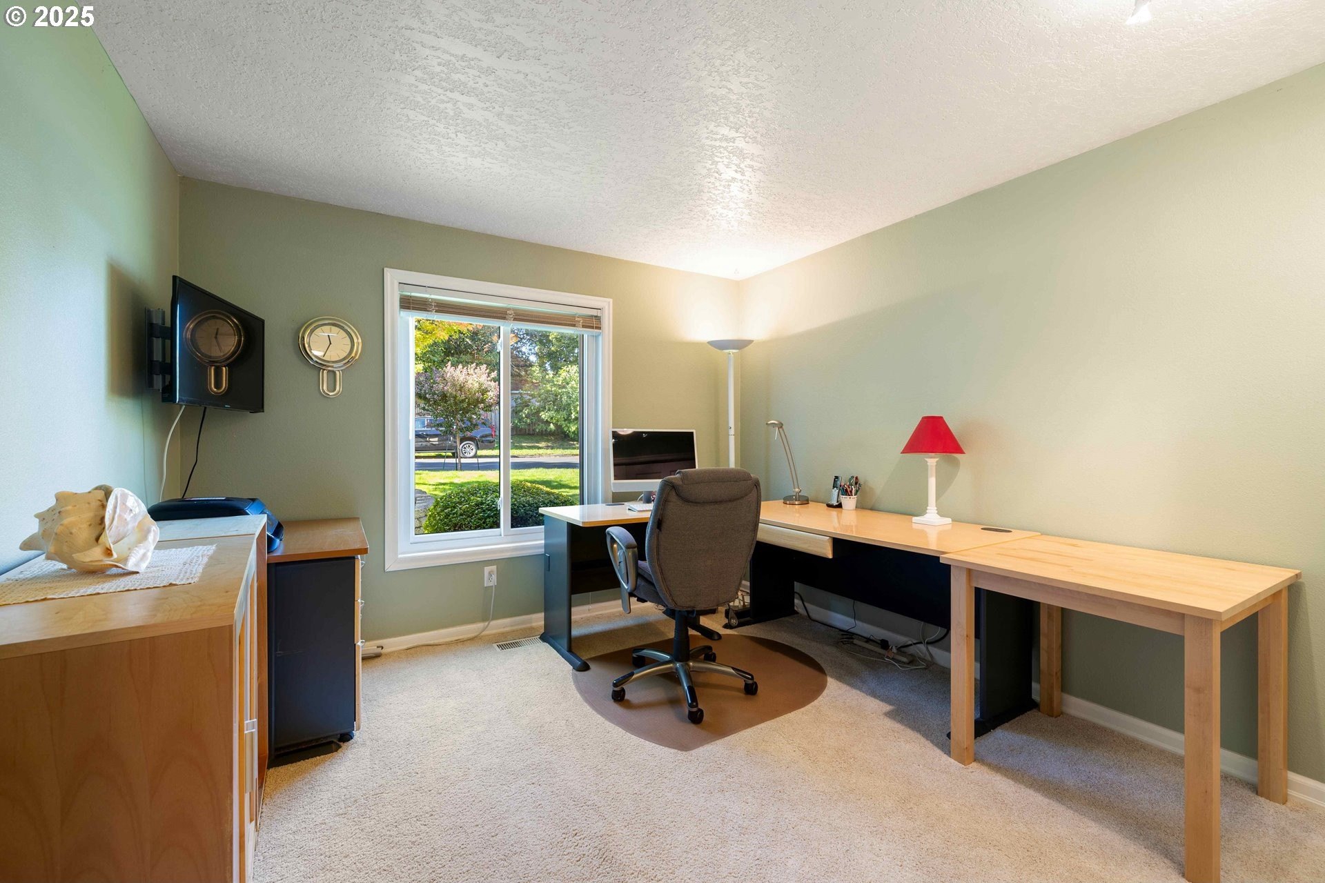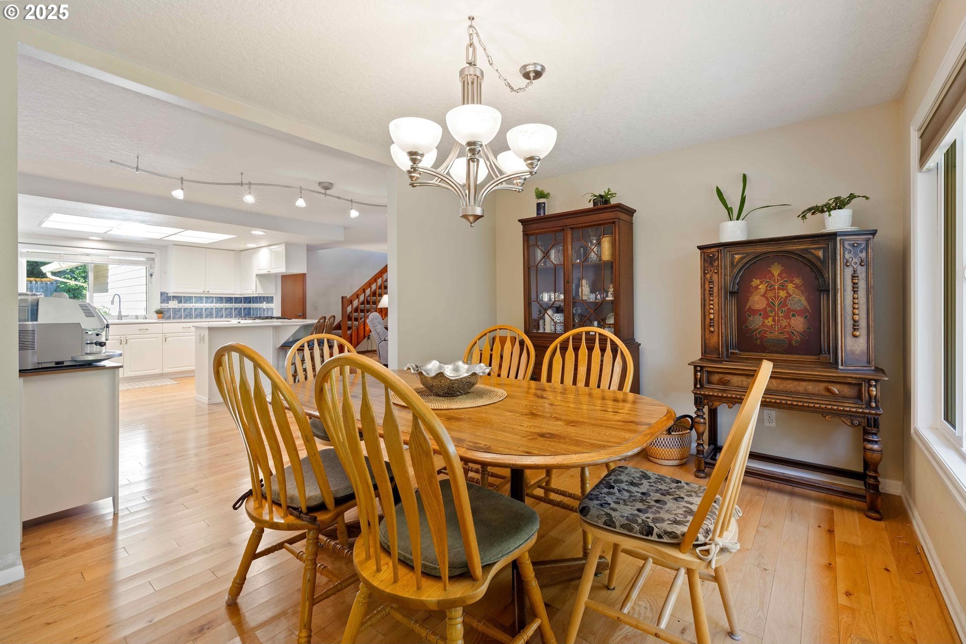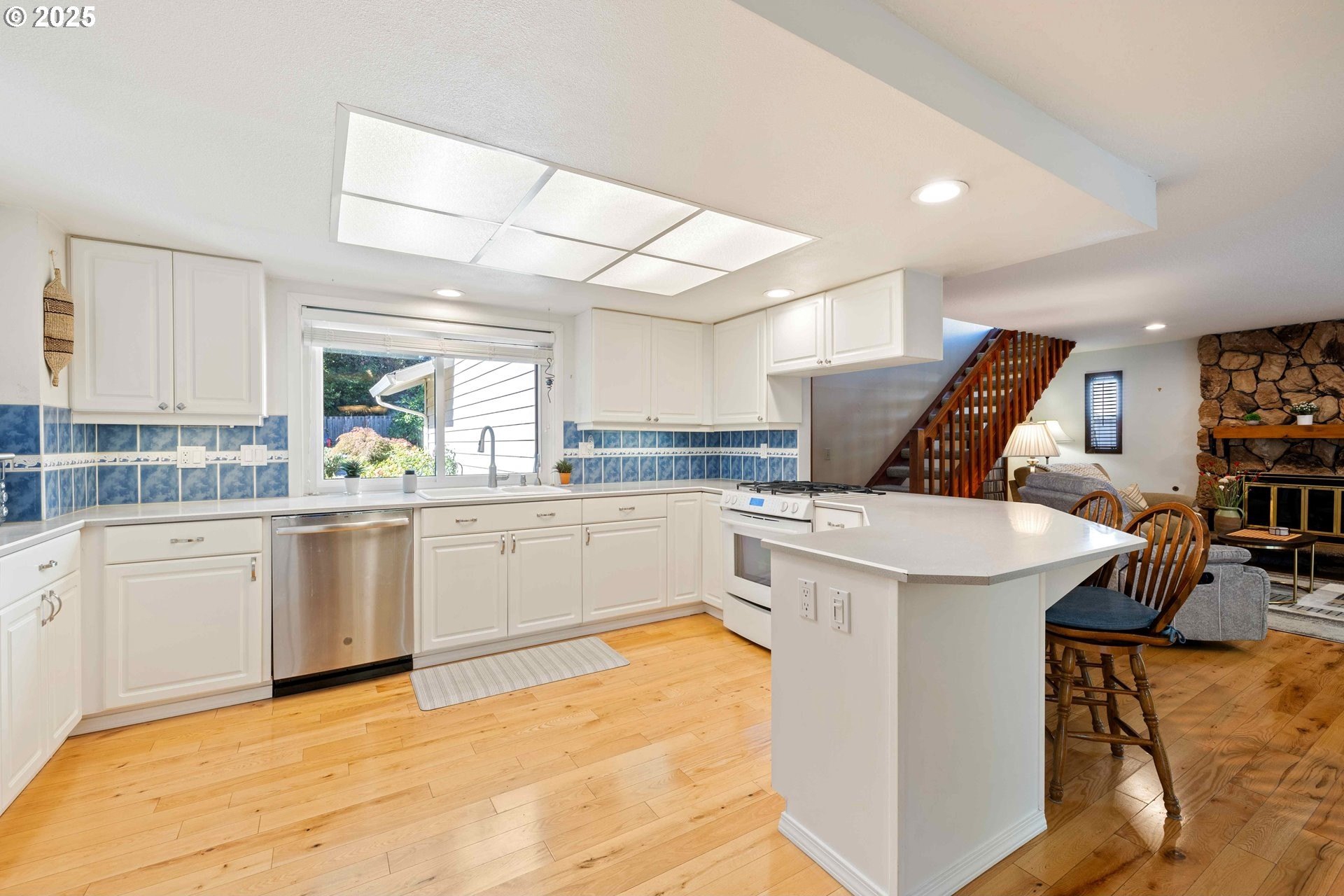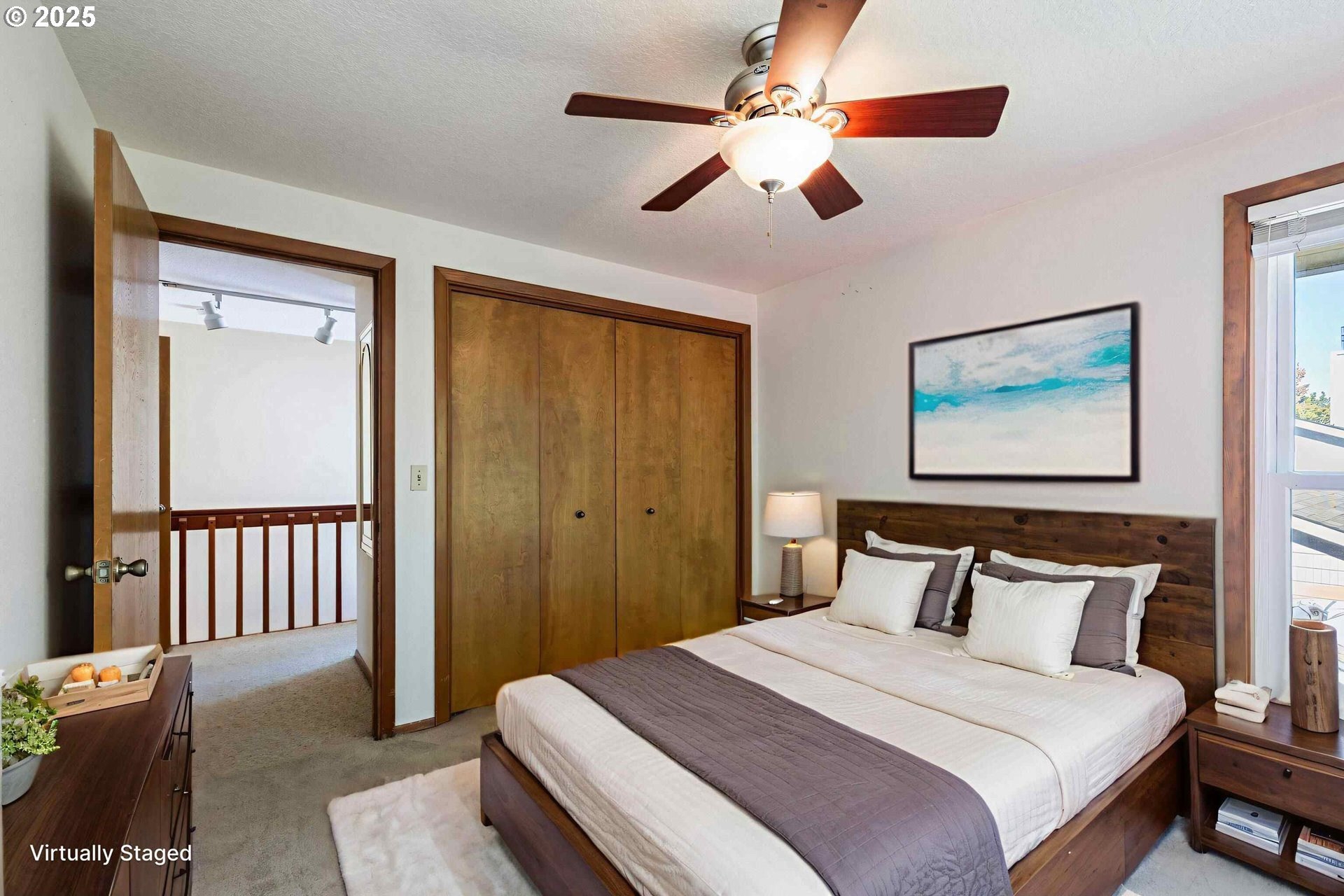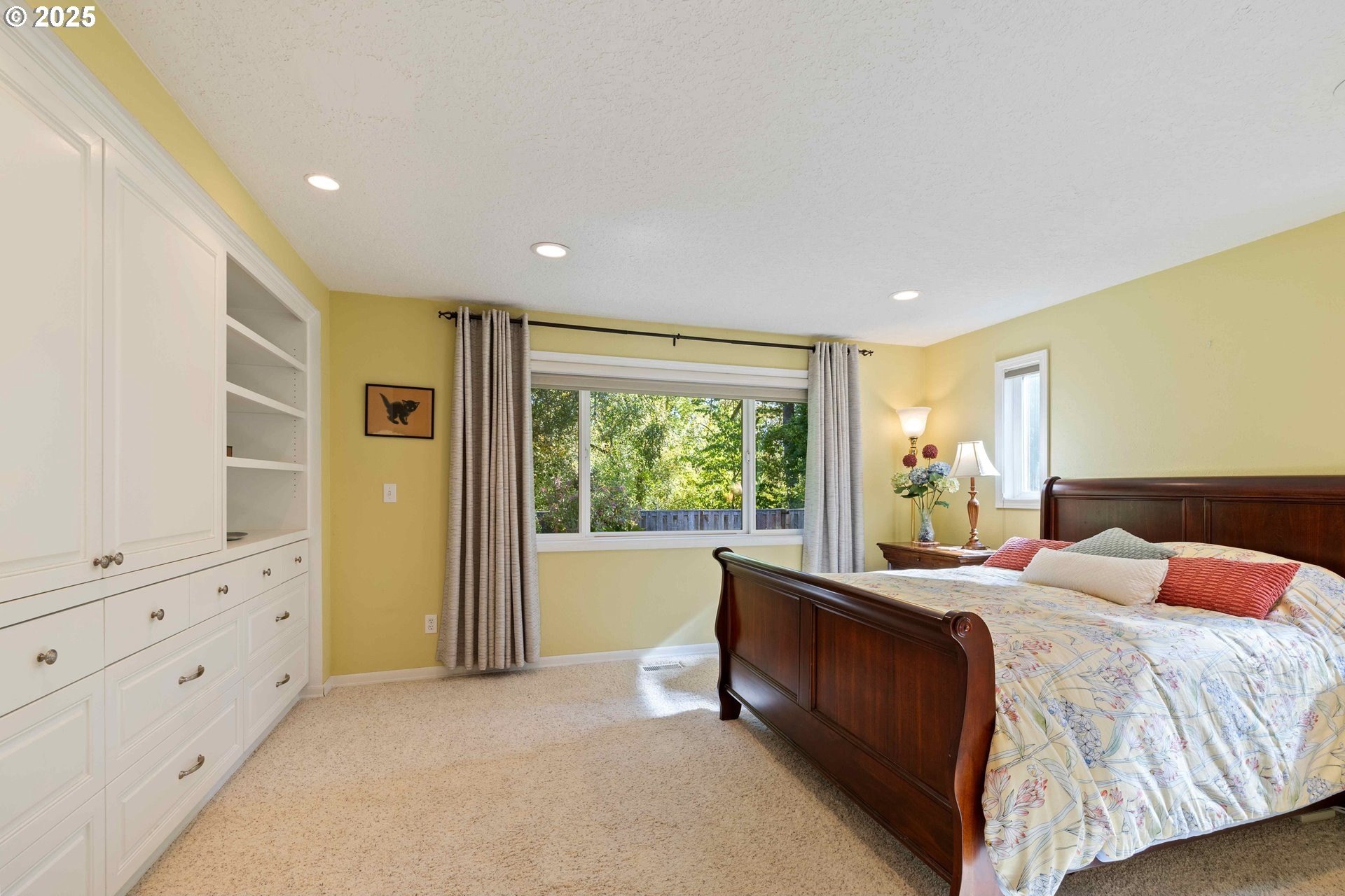 Backed to a peaceful private greenspace, this spacious 5-bedroom + Bonus, 3-bath home offers a thoughtful and functional floorplan designed for comfort and versatility. The main level features the primary suite with custom built-ins, an en suite bathroom with a walk-in shower, dual sinks, and a walk-in closet with built-in organization, plus two additional bedrooms. Enjoy the warmth of hardwood floors, a sunken living room, family room with a cozy fireplace, providing spaces that balance open gathering areas with private retreats. Upstairs, you'll find additional bedrooms, vaulted bonus room, and a full bath—ideal for guests or a home office setup. The backyard invites relaxation and entertaining with a large patio, space for gardening. Conveniently located near Greenway Park, Washington Square, and easy freeway access.