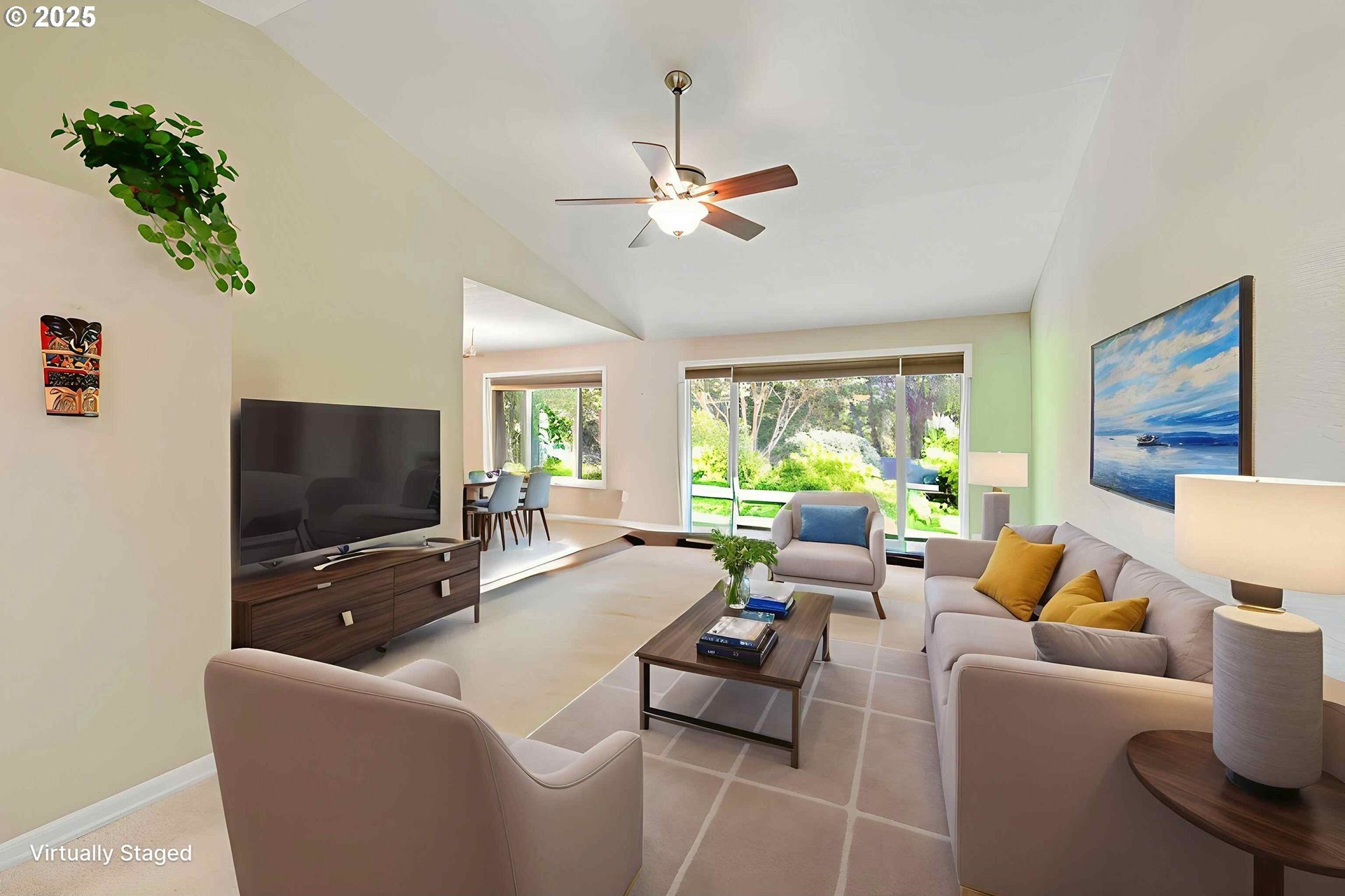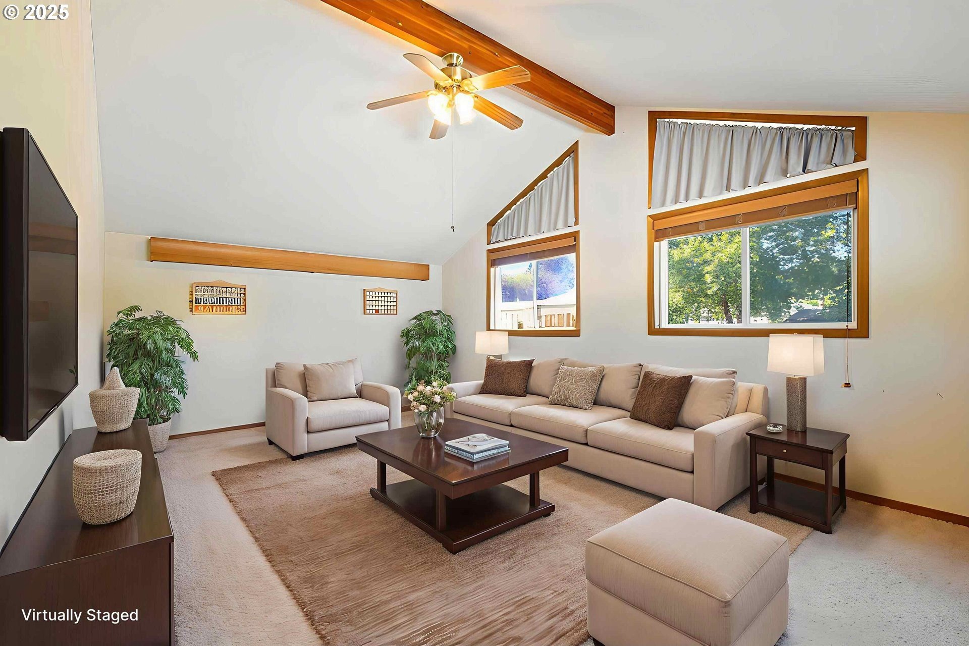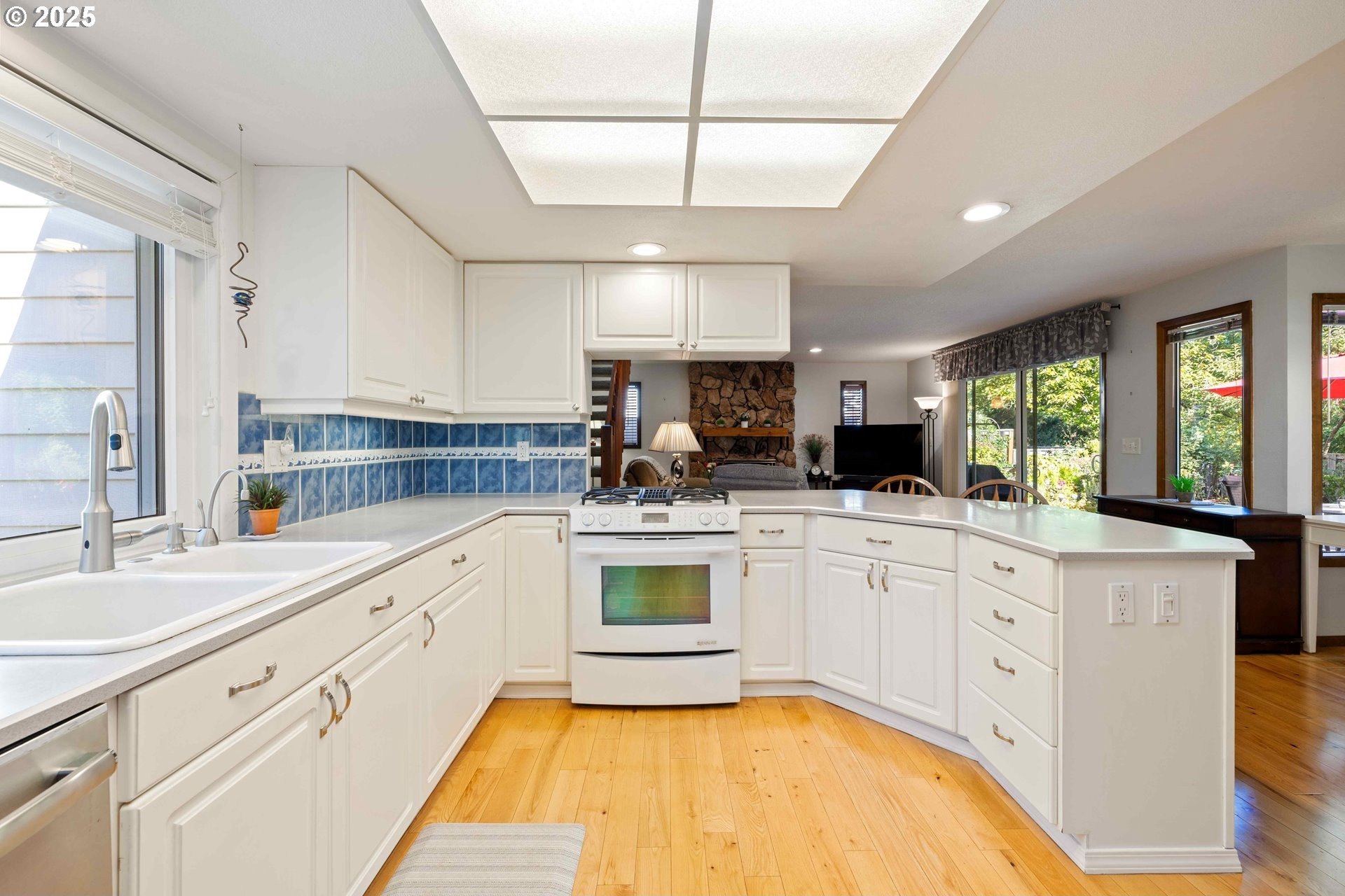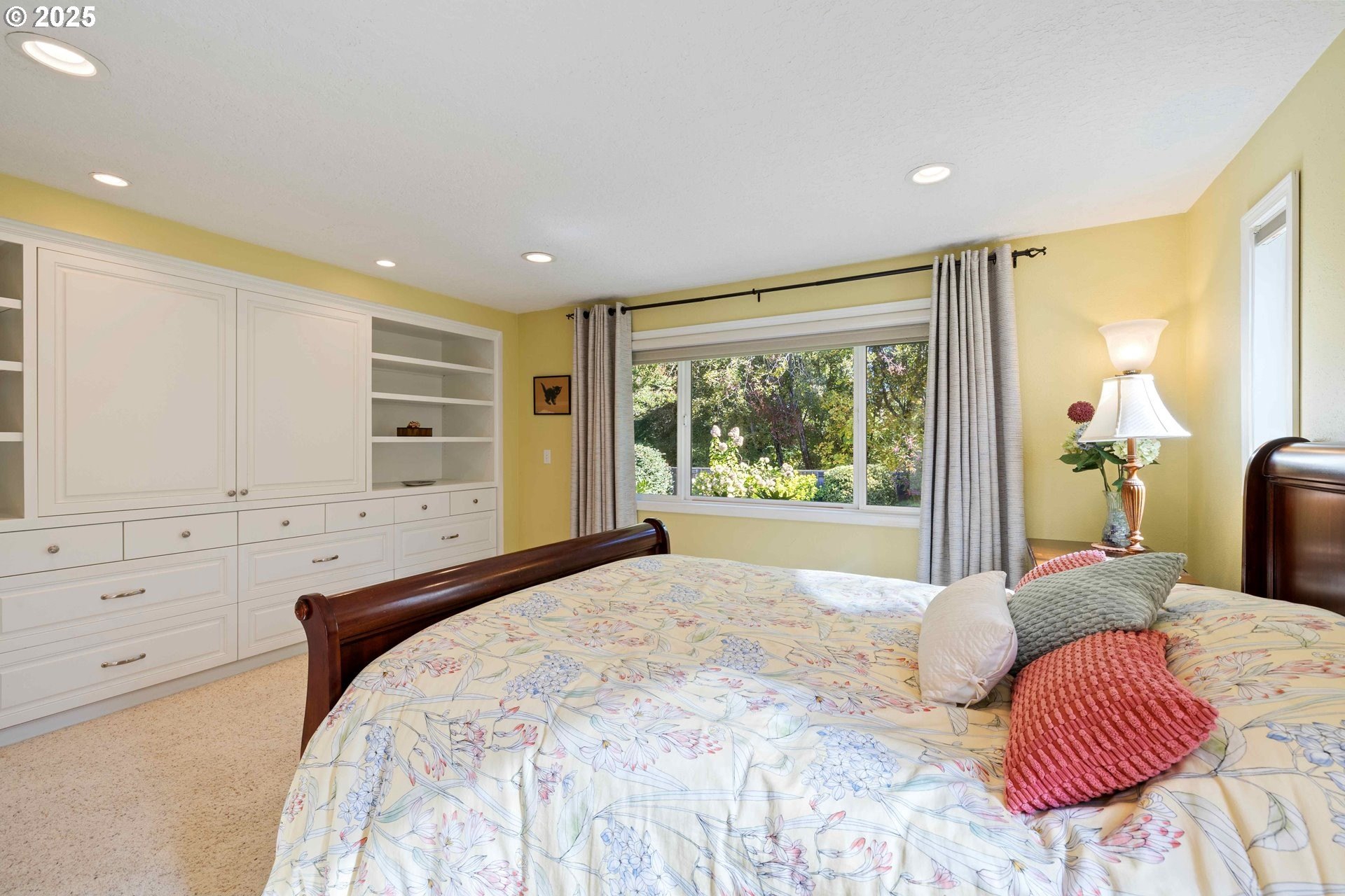 Backed to a peaceful private greenspace, this spacious 5-bedroom + Bonus, 3-bath home offers a thoughtful and functional floorplan designed for comfort and versatility. The main level features the primary suite with custom built-ins, an en suite bathroom with a walk-in shower, dual sinks, and a walk-in closet with built-in organization, plus two additional bedrooms. Enjoy the warmth of hardwood floors, a sunken living room, family room with a cozy fireplace, providing spaces that balance open gathering areas with private retreats. Upstairs, you'll find additional bedrooms, vaulted bonus room, and a full bath—ideal for guests or a home office setup. The backyard invites relaxation and entertaining with a large patio, space for gardening. Conveniently located near Greenway Park, Washington Square, and easy freeway access.