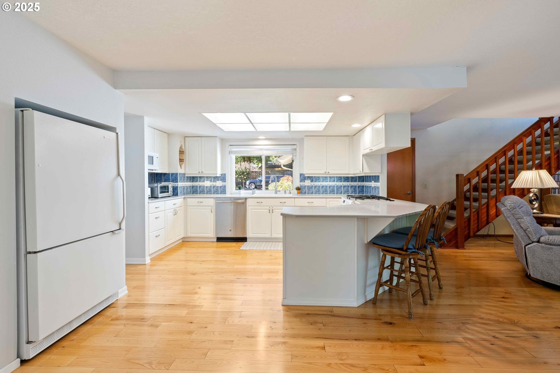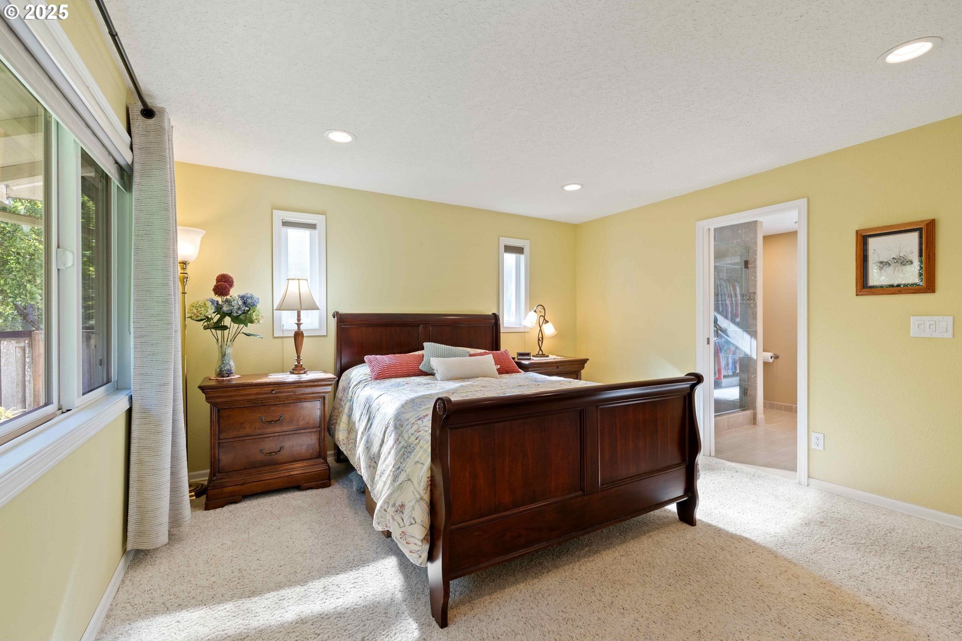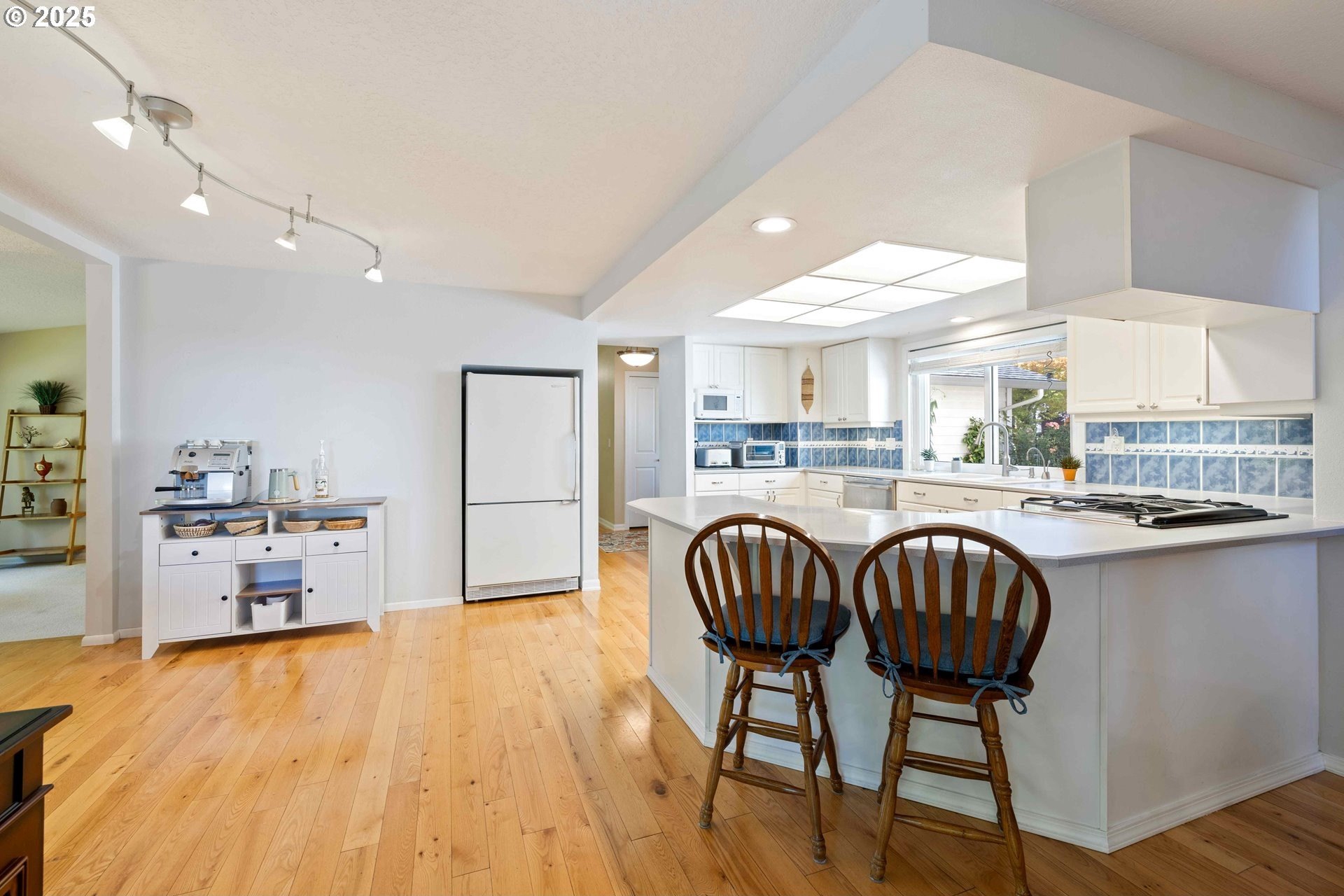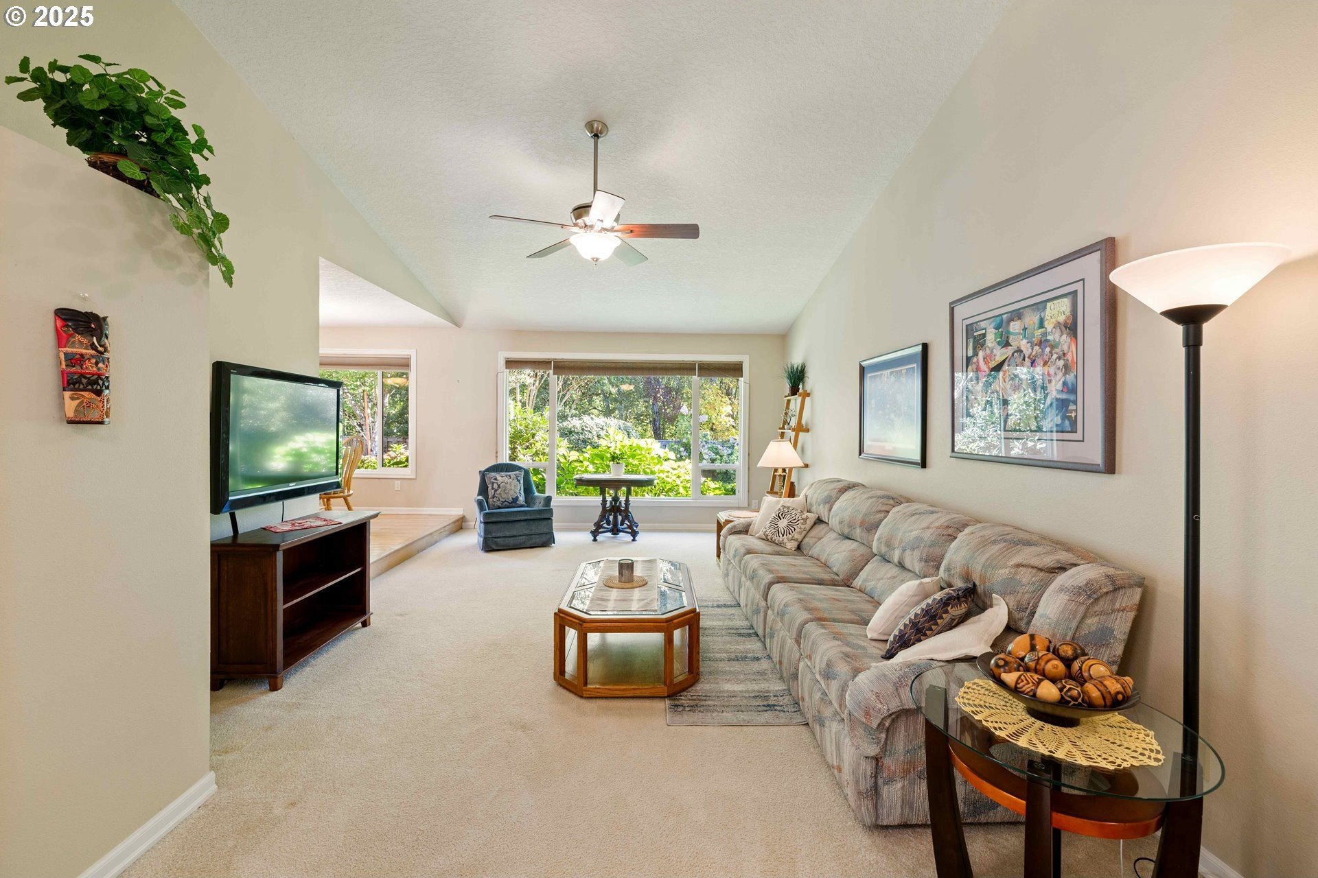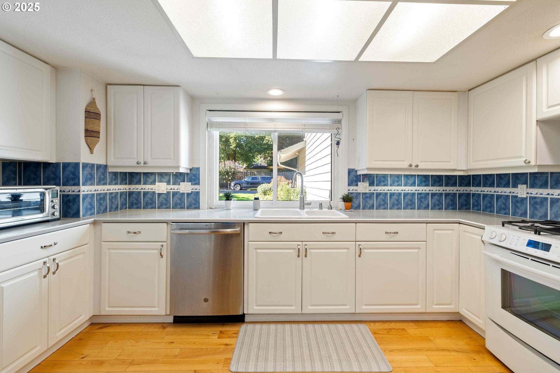 Backed to a peaceful private greenspace, this spacious 5-bedroom + Bonus, 3-bath home offers a thoughtful and functional floorplan designed for comfort and versatility. The main level features the primary suite with custom built-ins, an en suite bathroom with a walk-in shower, dual sinks, and a walk-in closet with built-in organization, plus two additional bedrooms. Enjoy the warmth of hardwood floors, a sunken living room, family room with a cozy fireplace, providing spaces that balance open gathering areas with private retreats. Upstairs, you'll find additional bedrooms, vaulted bonus room, and a full bath—ideal for guests or a home office setup. The backyard invites relaxation and entertaining with a large patio, space for gardening. Conveniently located near Greenway Park, Washington Square, and easy freeway access.