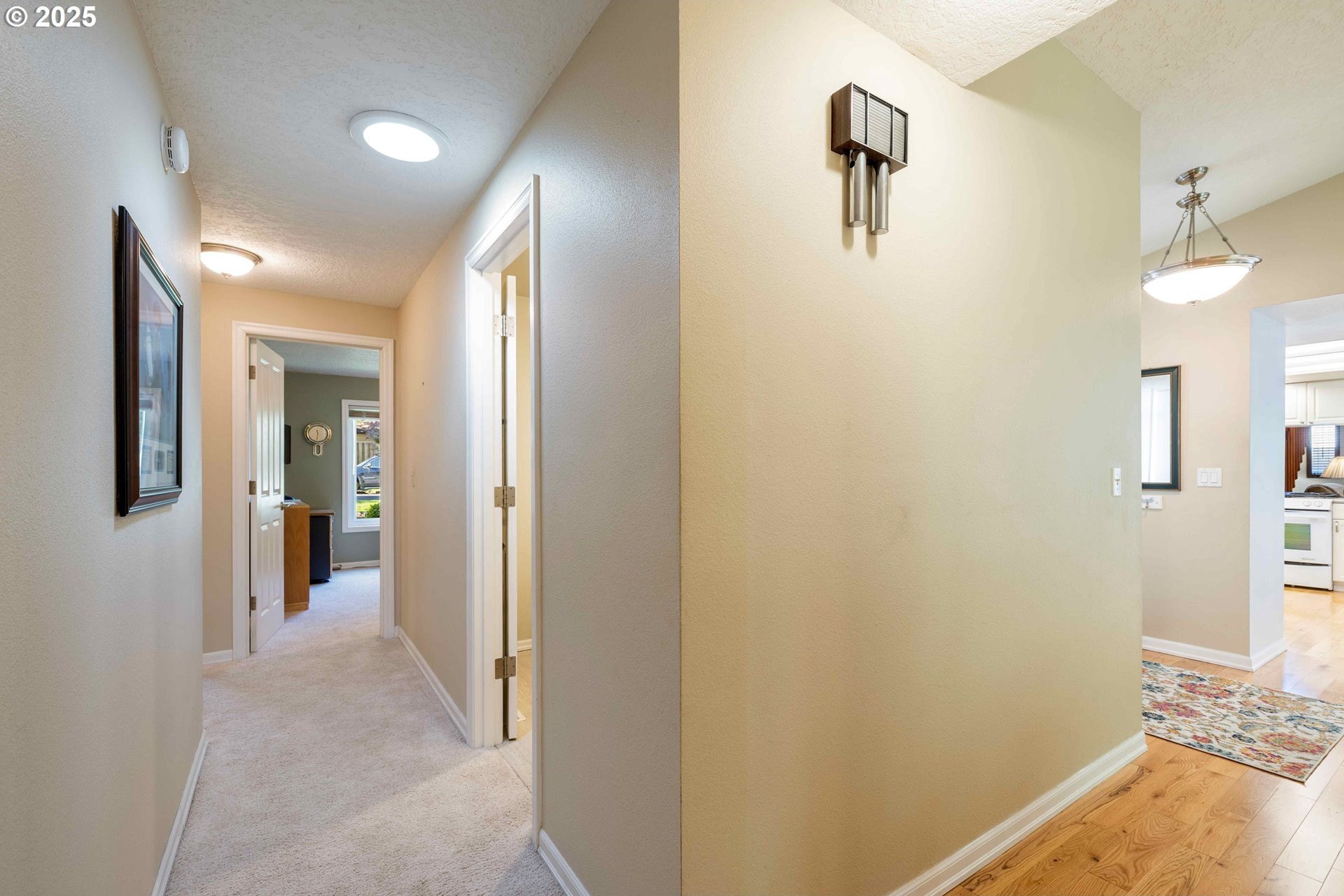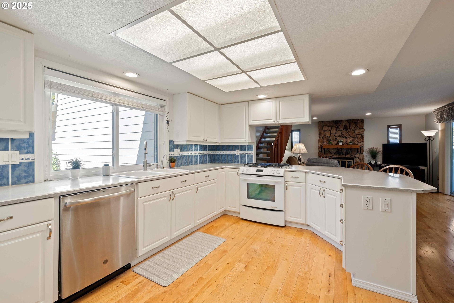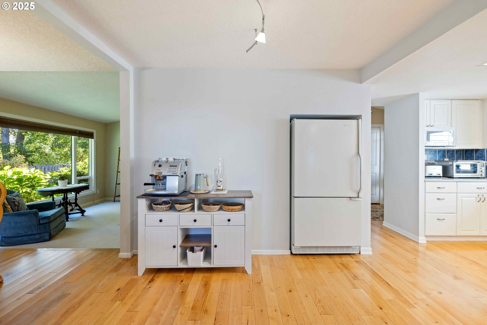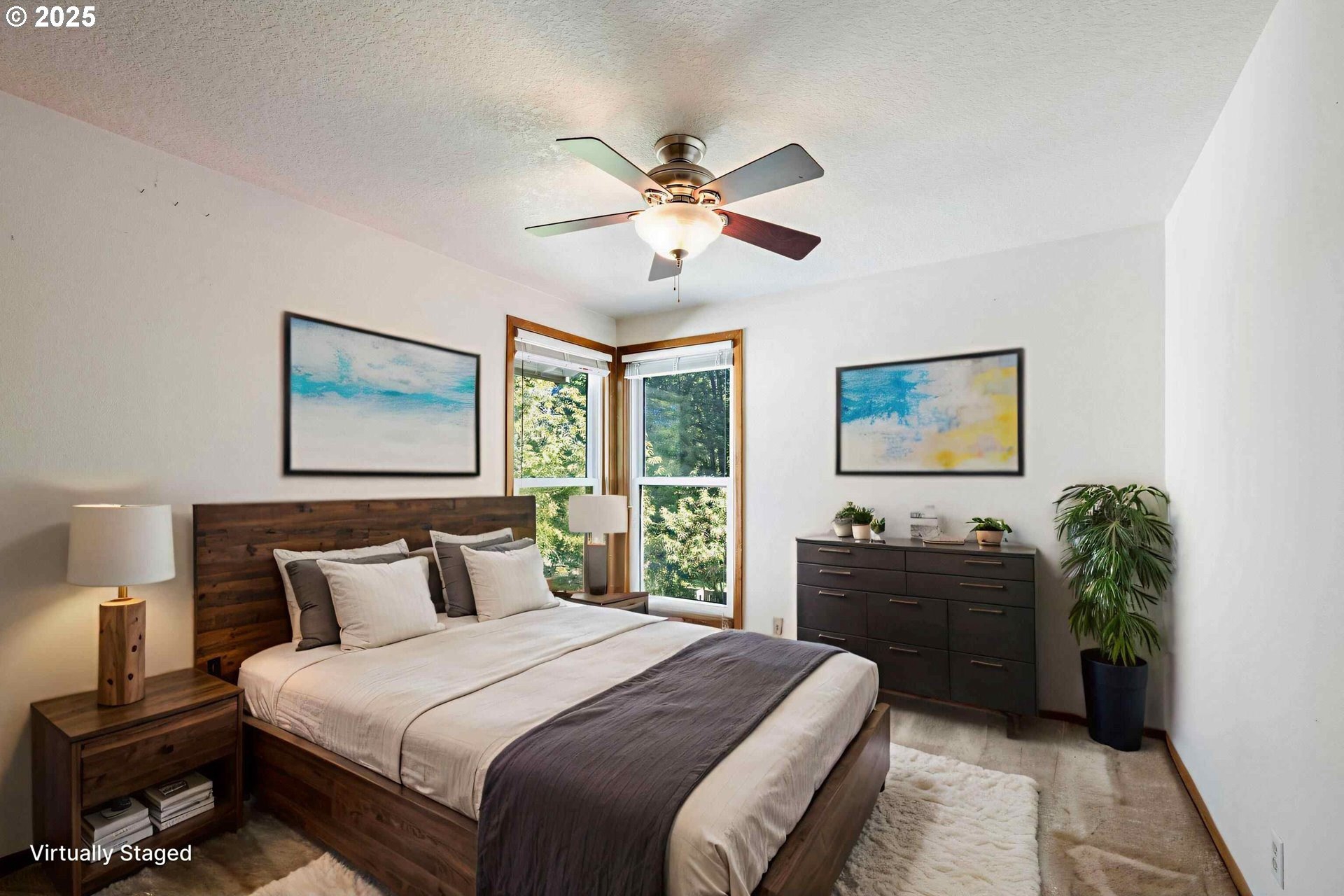 Backed to a peaceful private greenspace, this spacious 5-bedroom + Bonus, 3-bath home offers a thoughtful and functional floorplan designed for comfort and versatility. The main level features the primary suite with custom built-ins, an en suite bathroom with a walk-in shower, dual sinks, and a walk-in closet with built-in organization, plus two additional bedrooms. Enjoy the warmth of hardwood floors, a sunken living room, family room with a cozy fireplace, providing spaces that balance open gathering areas with private retreats. Upstairs, you'll find additional bedrooms, vaulted bonus room, and a full bath—ideal for guests or a home office setup. The backyard invites relaxation and entertaining with a large patio, space for gardening. Conveniently located near Greenway Park, Washington Square, and easy freeway access.