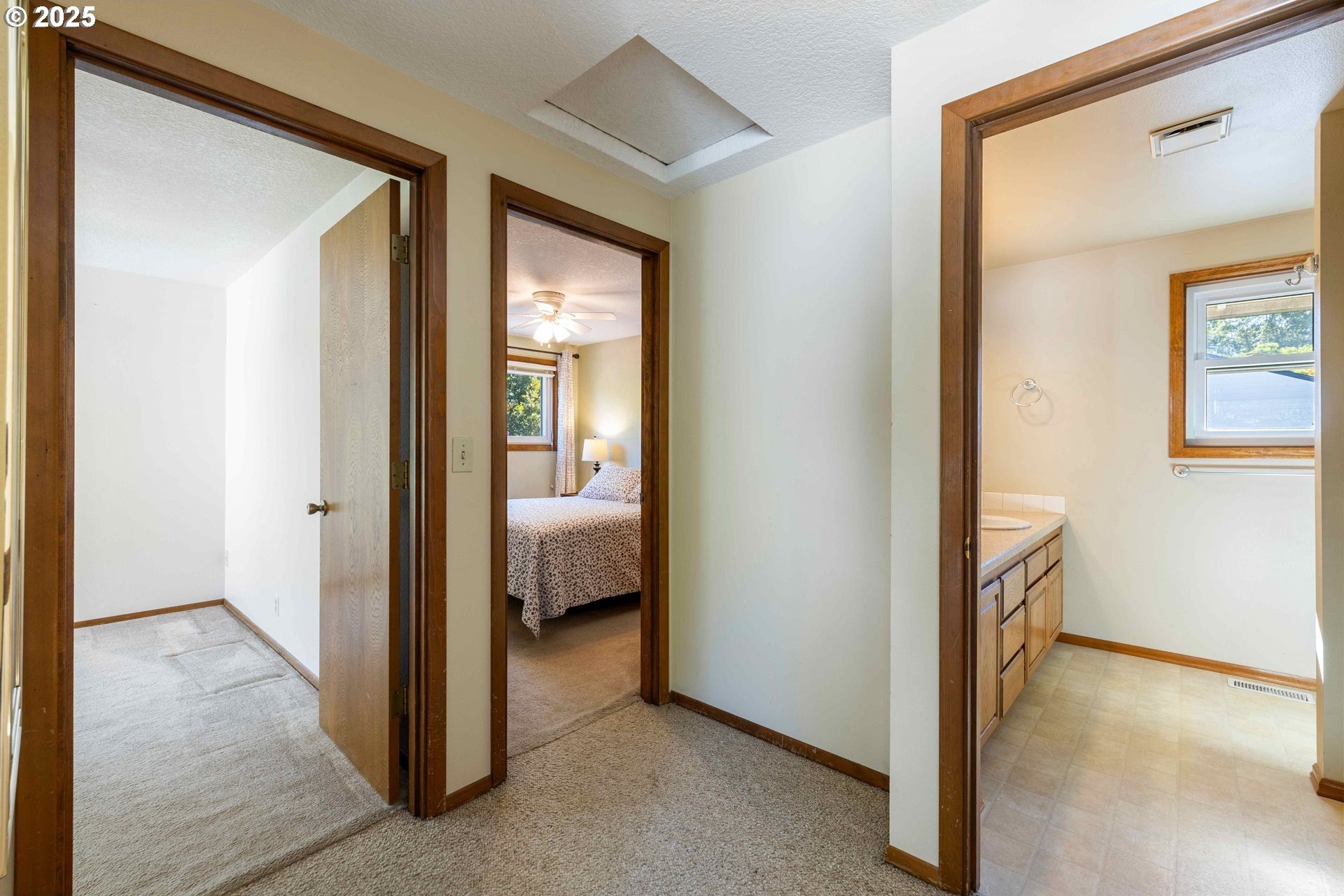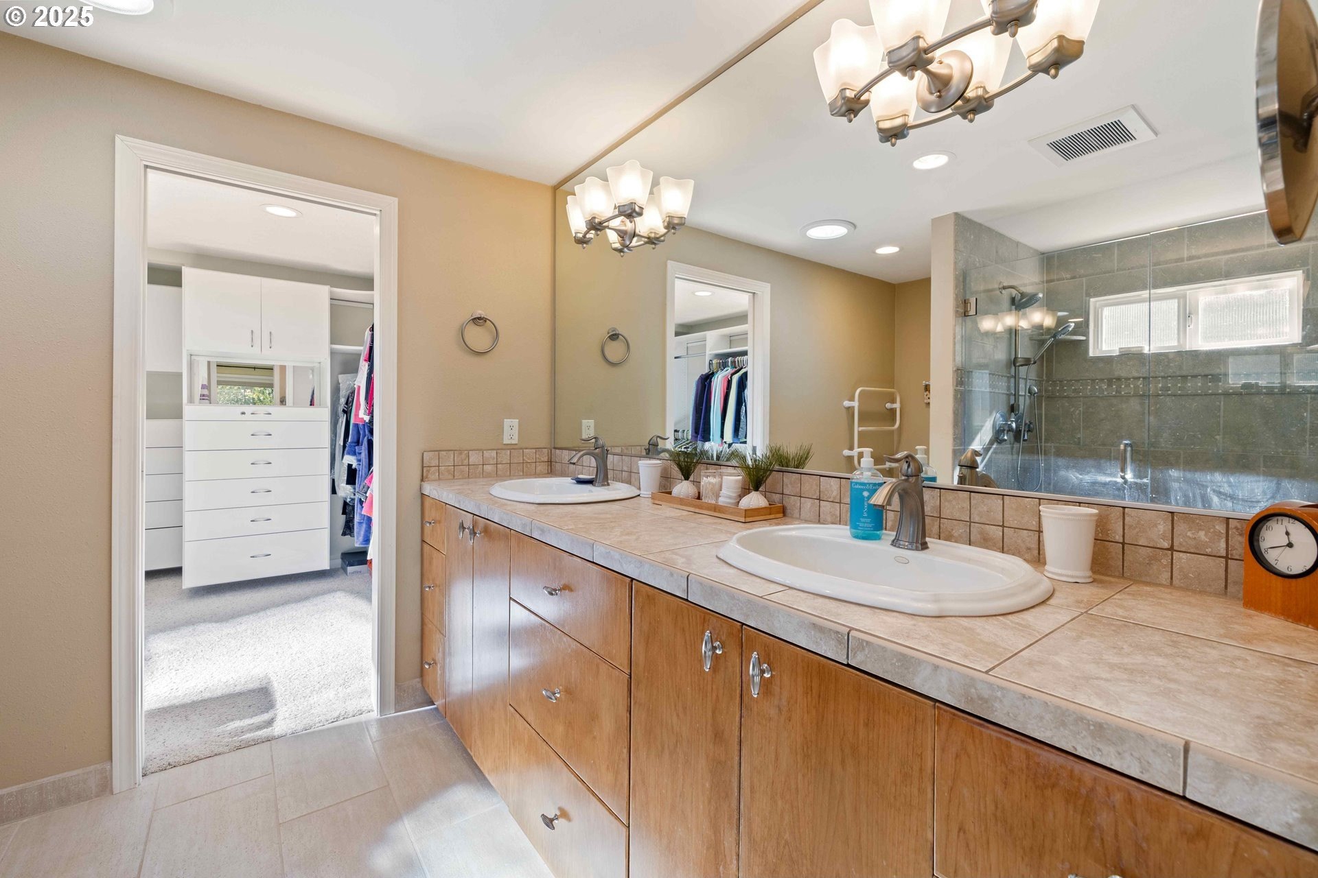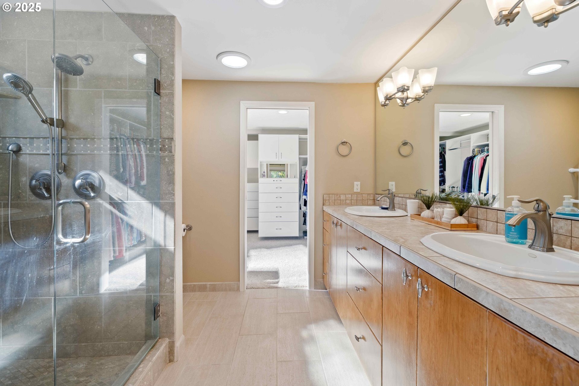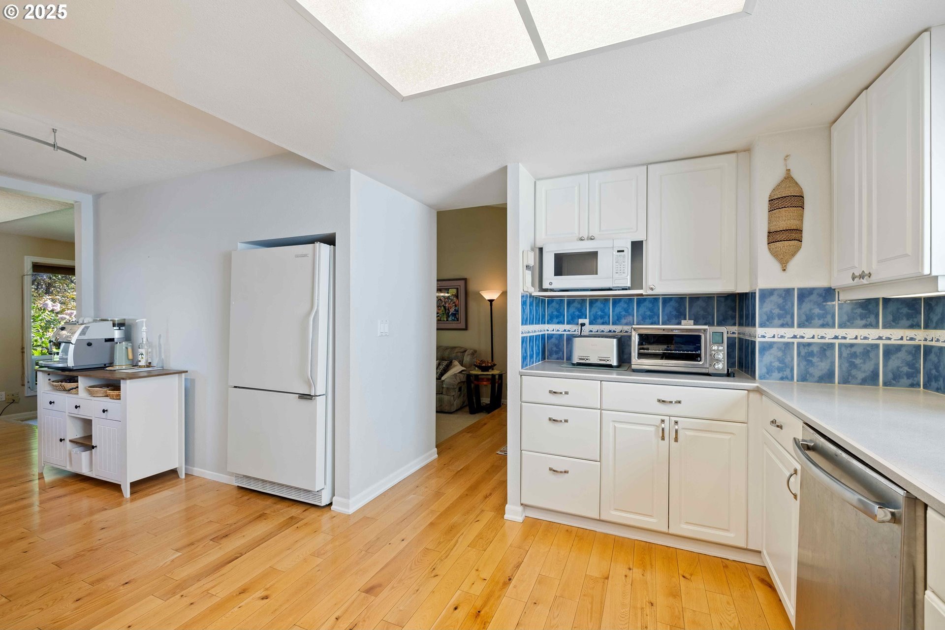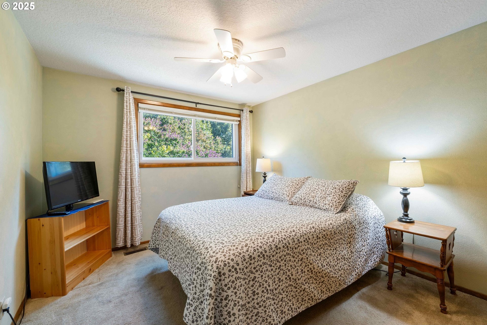 Backed to a peaceful private greenspace, this spacious 5-bedroom + Bonus, 3-bath home offers a thoughtful and functional floorplan designed for comfort and versatility. The main level features the primary suite with custom built-ins, an en suite bathroom with a walk-in shower, dual sinks, and a walk-in closet with built-in organization, plus two additional bedrooms. Enjoy the warmth of hardwood floors, a sunken living room, family room with a cozy fireplace, providing spaces that balance open gathering areas with private retreats. Upstairs, you'll find additional bedrooms, vaulted bonus room, and a full bath—ideal for guests or a home office setup. The backyard invites relaxation and entertaining with a large patio, space for gardening. Conveniently located near Greenway Park, Washington Square, and easy freeway access.