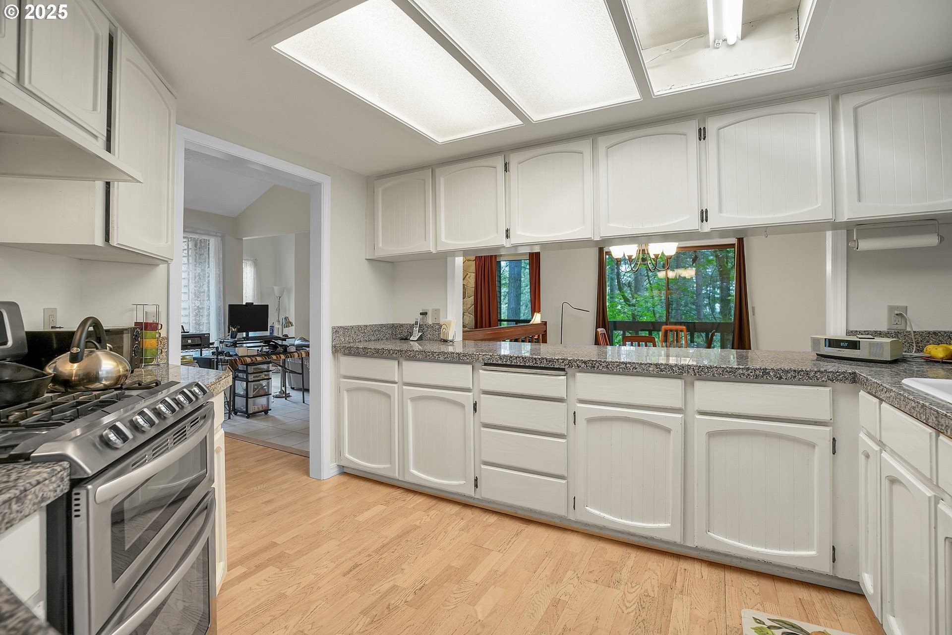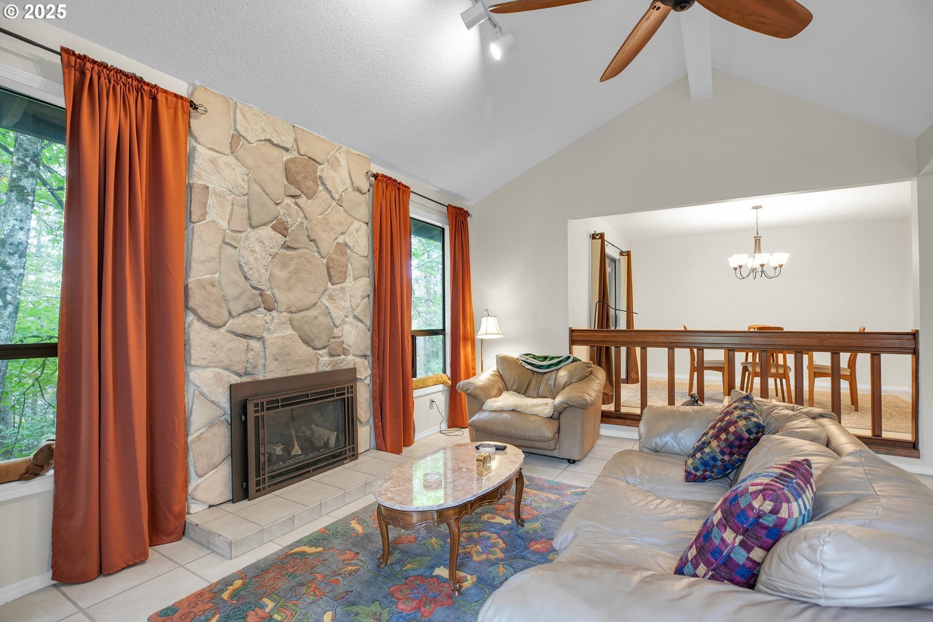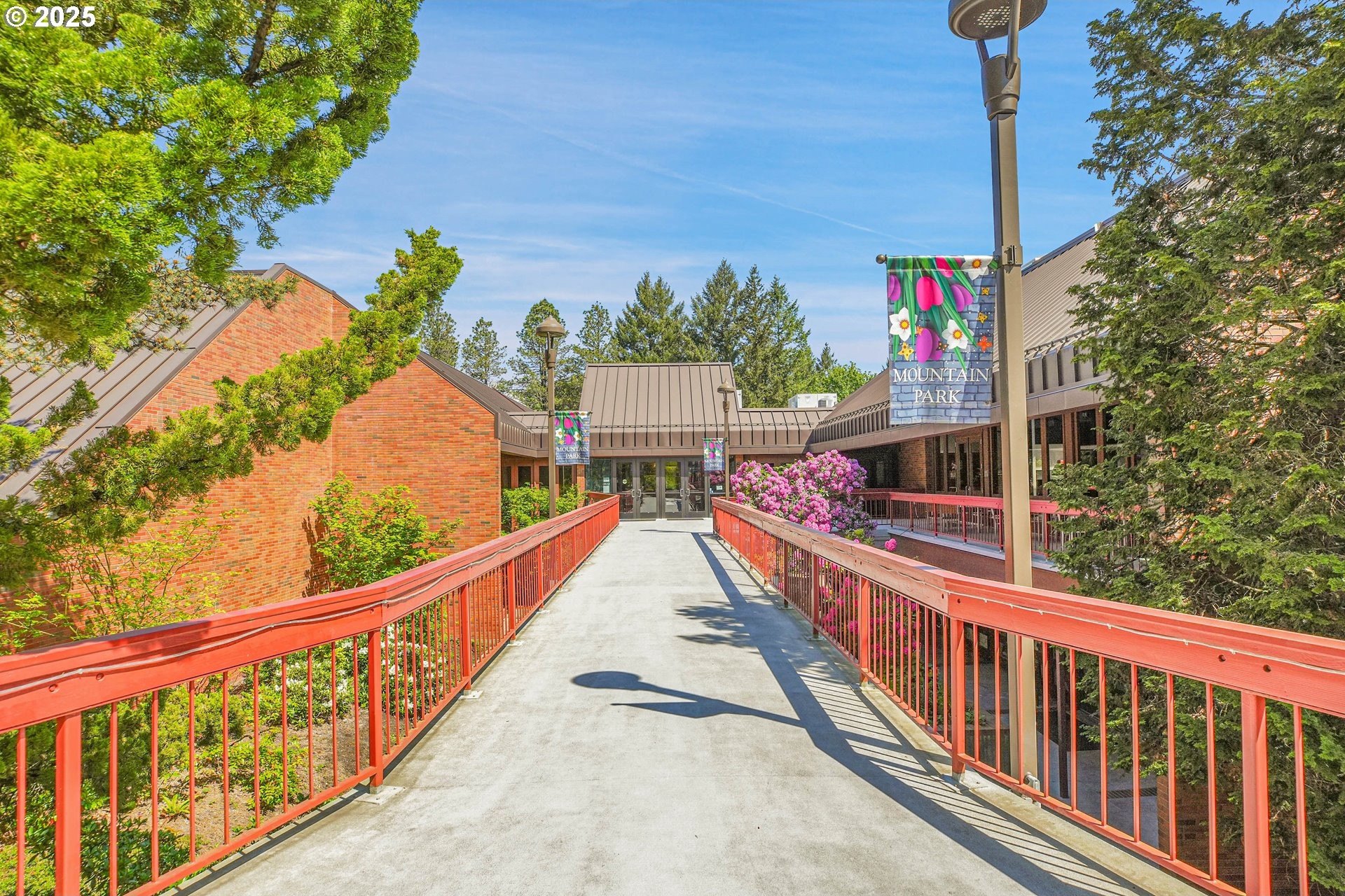 With one of the lowest HOA monthly payments in Mountain Park, this upper level contemporary condo features fresh paint, brand new carpet and LVP!  The spacious step-down living room has a vaulted ceiling, tile floor, gas fireplace and tall windows that invite the outdoors in!  The kitchen offers hardwood floors, granite counters, a stainless steel dishwasher, gas range with double-ovens, refrigerator and walk-in pantry for additional storage.  The dining room has a slider that accesses a deck overlooking a walking path surrounded by forest.  The primary bedroom has a deck of its own as well as a walk-in closet.  The continental bath features a laundry space (washer and dryer are included), a sink on the hall side as well as double-sinks on the primary bedroom side.  This condo offers a tuck-under attached single-car garage plus off-street parking. The entry has a covered access and a storage closet.  Landscaping and exterior maintenance is included with the monthly dues. This condo is less than a mile to Mountain Park Clubhouse, which offers a variety of activites and amenities, including a fitness center, tennis and basketball courts, a pool, meeting and party spaces and other recreational facilities.  If you want to be on top of the world and close to PCC, I-5, Lake Oswego and Westside amenities all for an affordable price, don’t miss this opportunity to dwell in one of Lake Oswego’s best communities!
