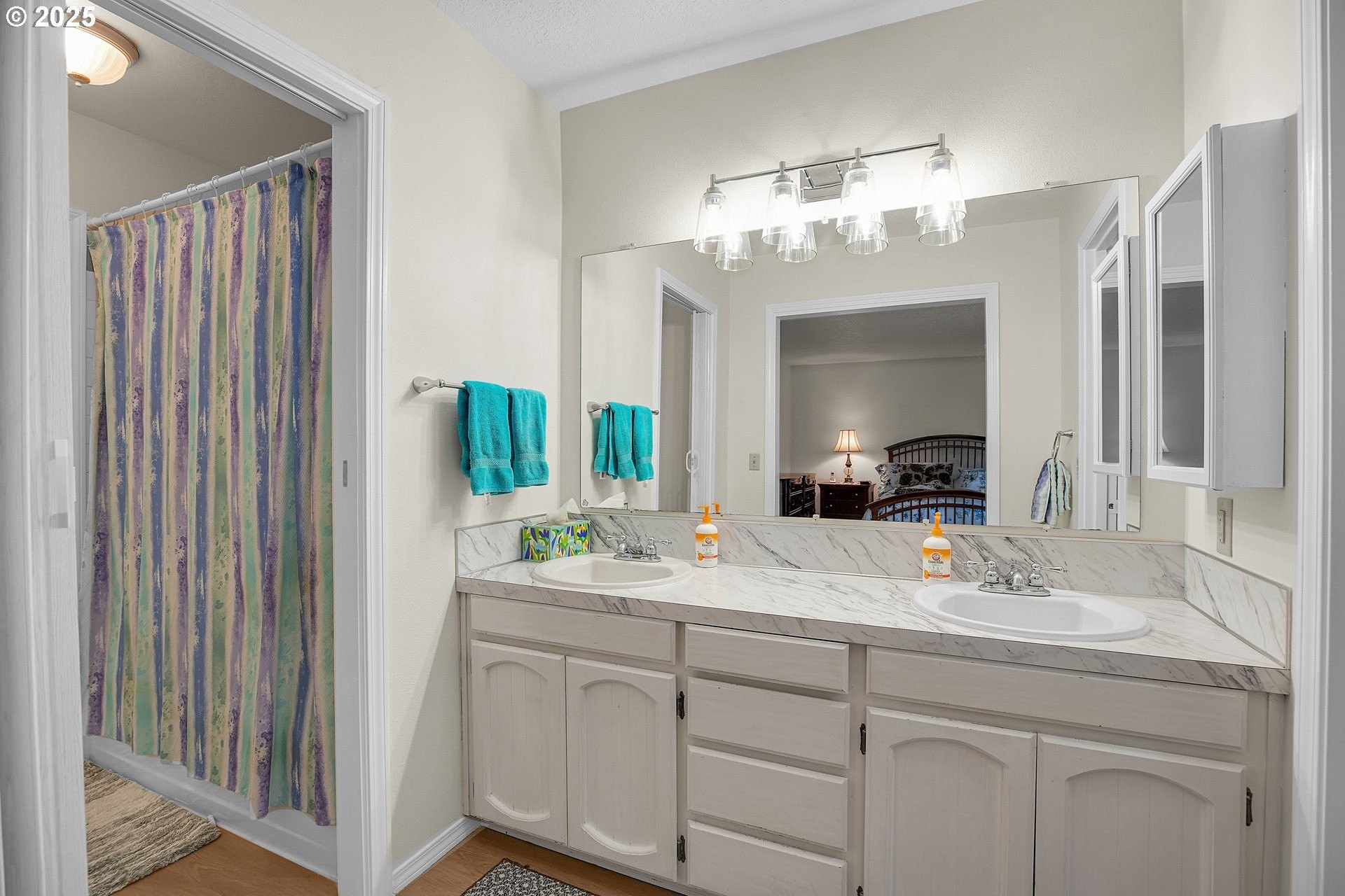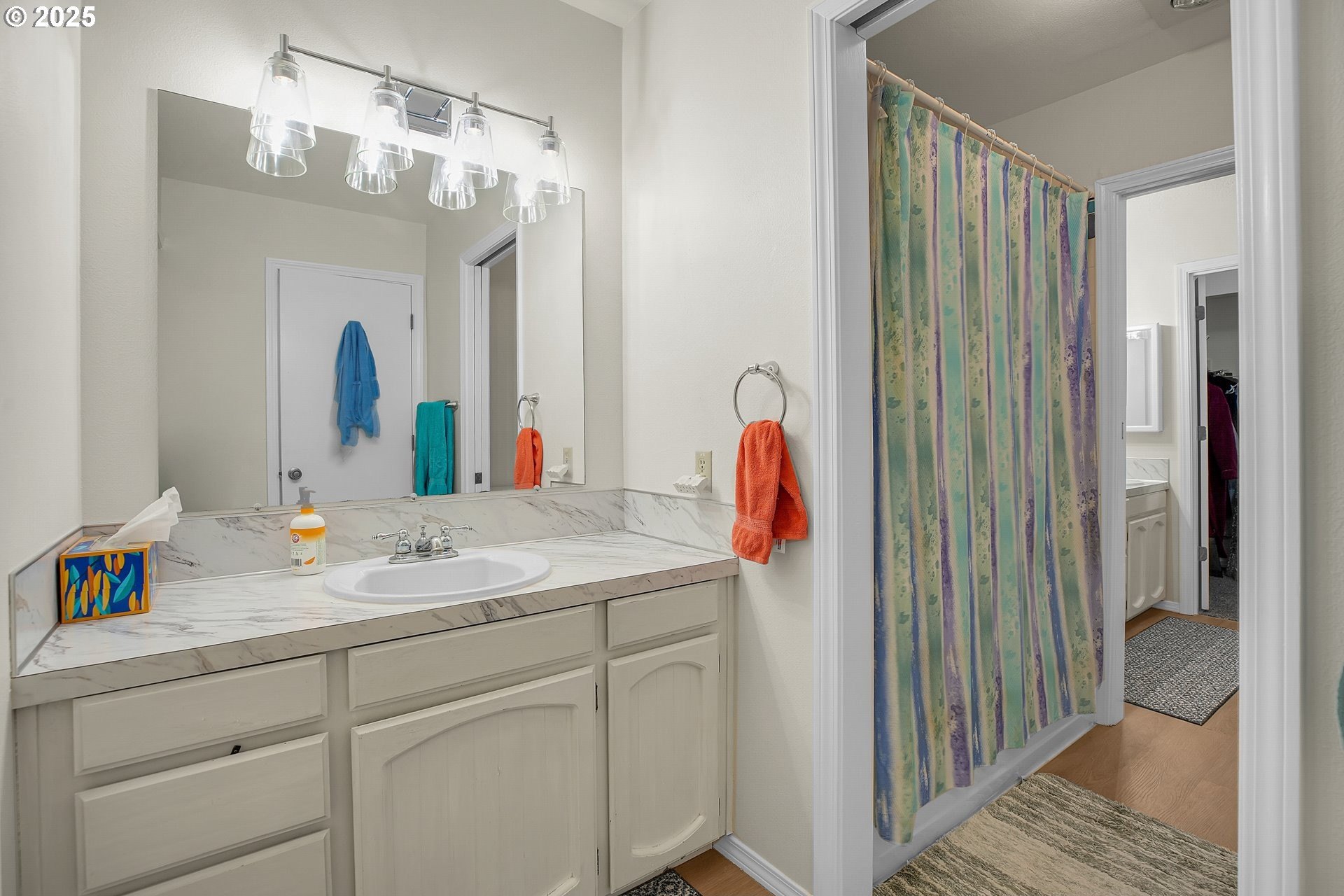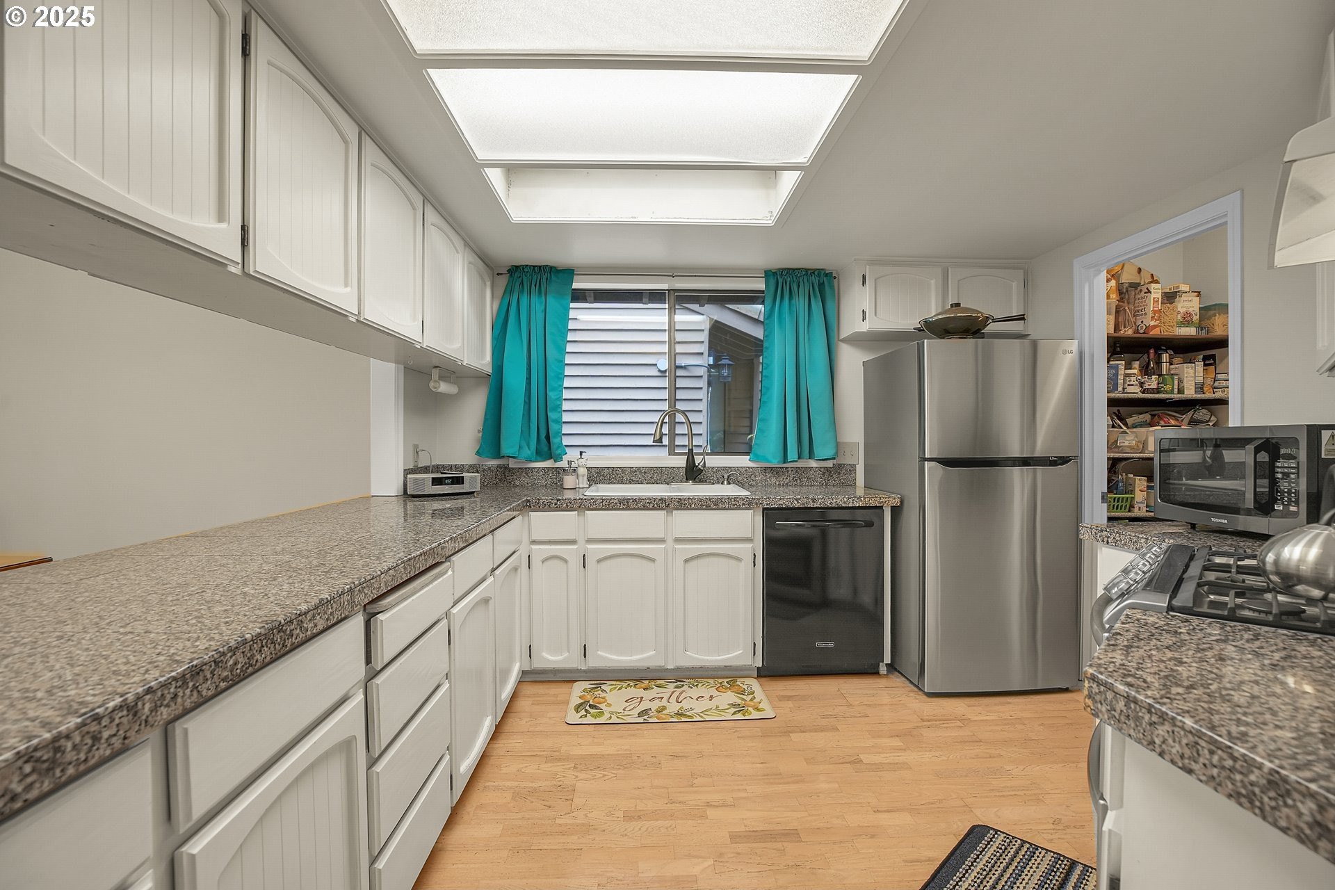 With one of the lowest HOA monthly payments in Mountain Park, this upper level contemporary condo features fresh paint, brand new carpet and LVP!  The spacious step-down living room has a vaulted ceiling, tile floor, gas fireplace and tall windows that invite the outdoors in!  The kitchen offers hardwood floors, granite counters, a stainless steel dishwasher, gas range with double-ovens, refrigerator and walk-in pantry for additional storage.  The dining room has a slider that accesses a deck overlooking a walking path surrounded by forest.  The primary bedroom has a deck of its own as well as a walk-in closet.  The continental bath features a laundry space (washer and dryer are included), a sink on the hall side as well as double-sinks on the primary bedroom side.  This condo offers a tuck-under attached single-car garage plus off-street parking. The entry has a covered access and a storage closet.  Landscaping and exterior maintenance is included with the monthly dues. This condo is less than a mile to Mountain Park Clubhouse, which offers a variety of activites and amenities, including a fitness center, tennis and basketball courts, a pool, meeting and party spaces and other recreational facilities.  If you want to be on top of the world and close to PCC, I-5, Lake Oswego and Westside amenities all for an affordable price, don’t miss this opportunity to dwell in one of Lake Oswego’s best communities!
