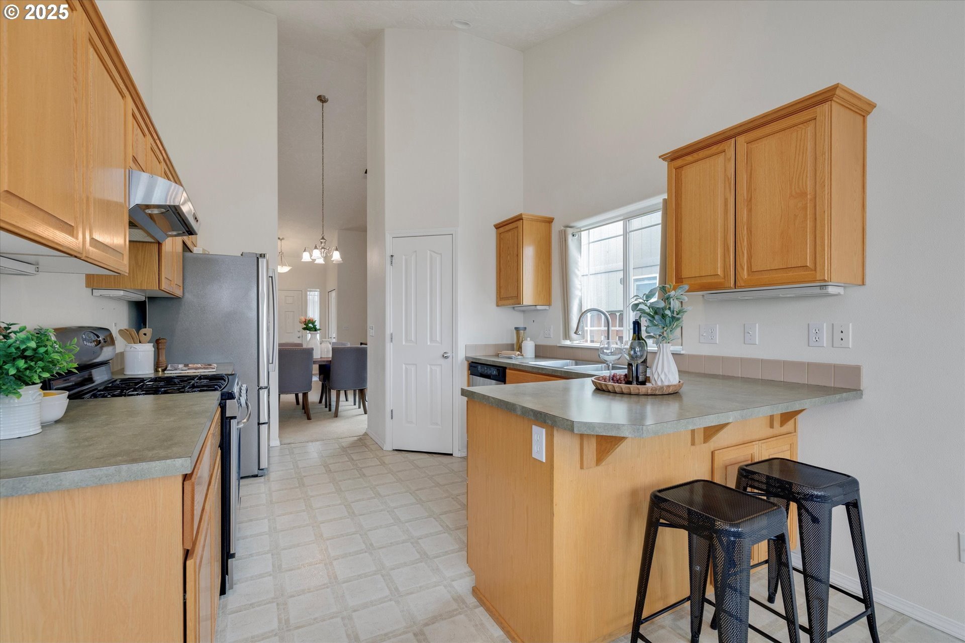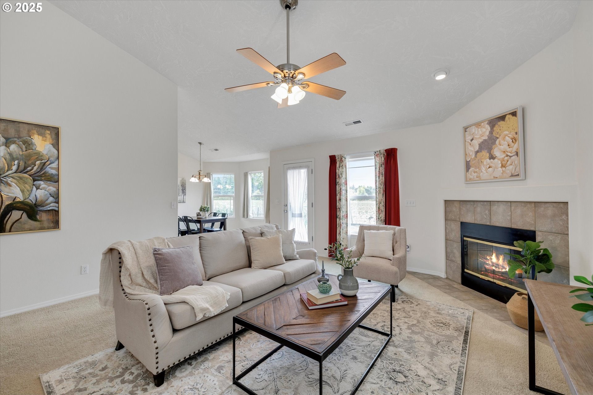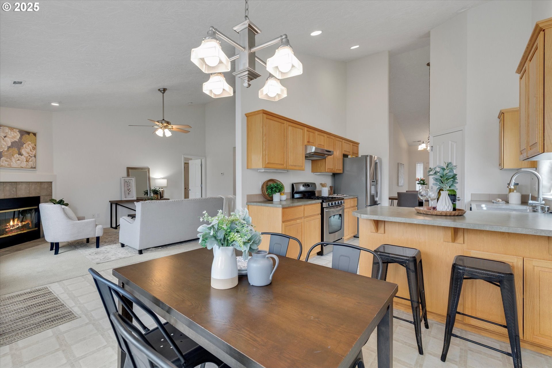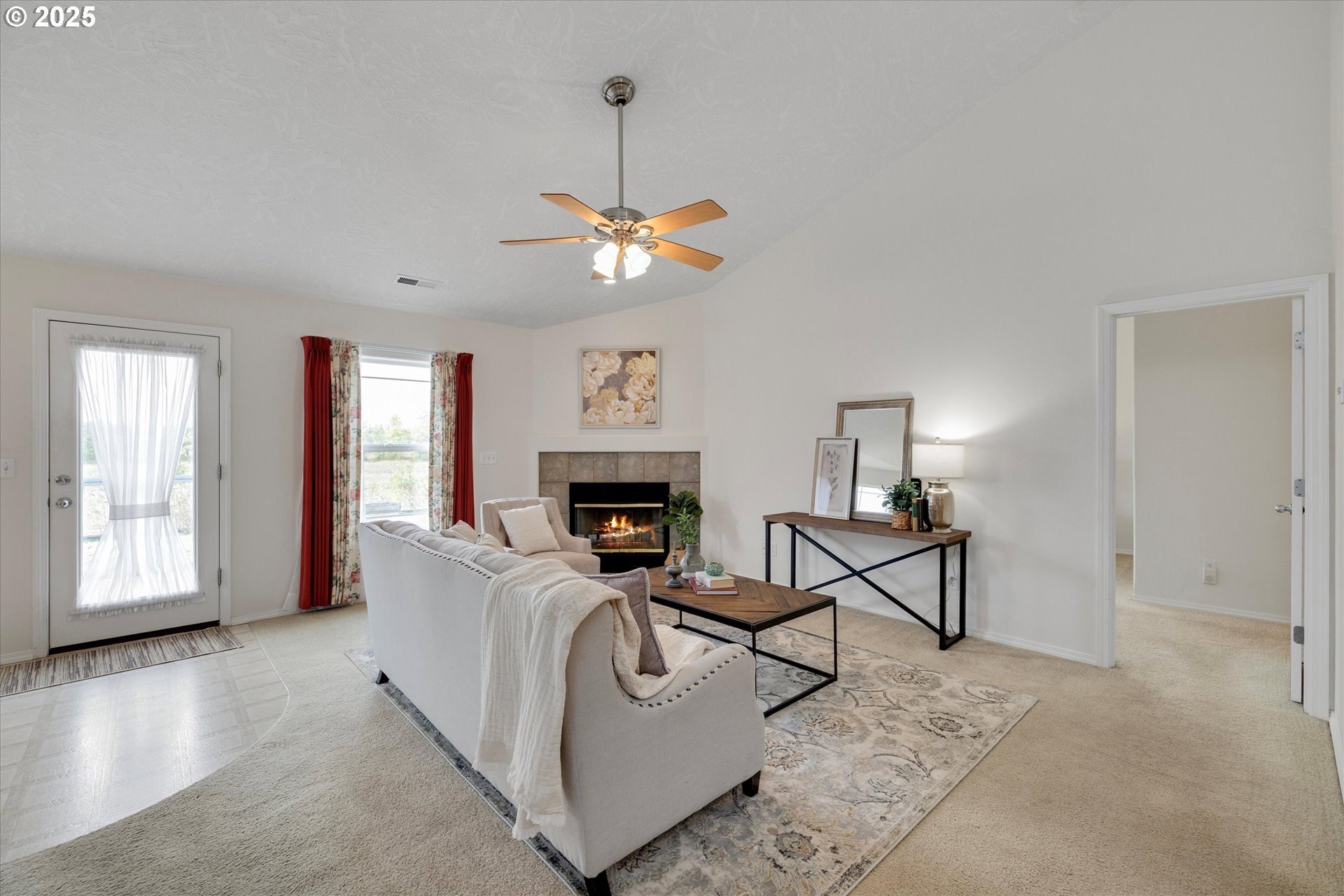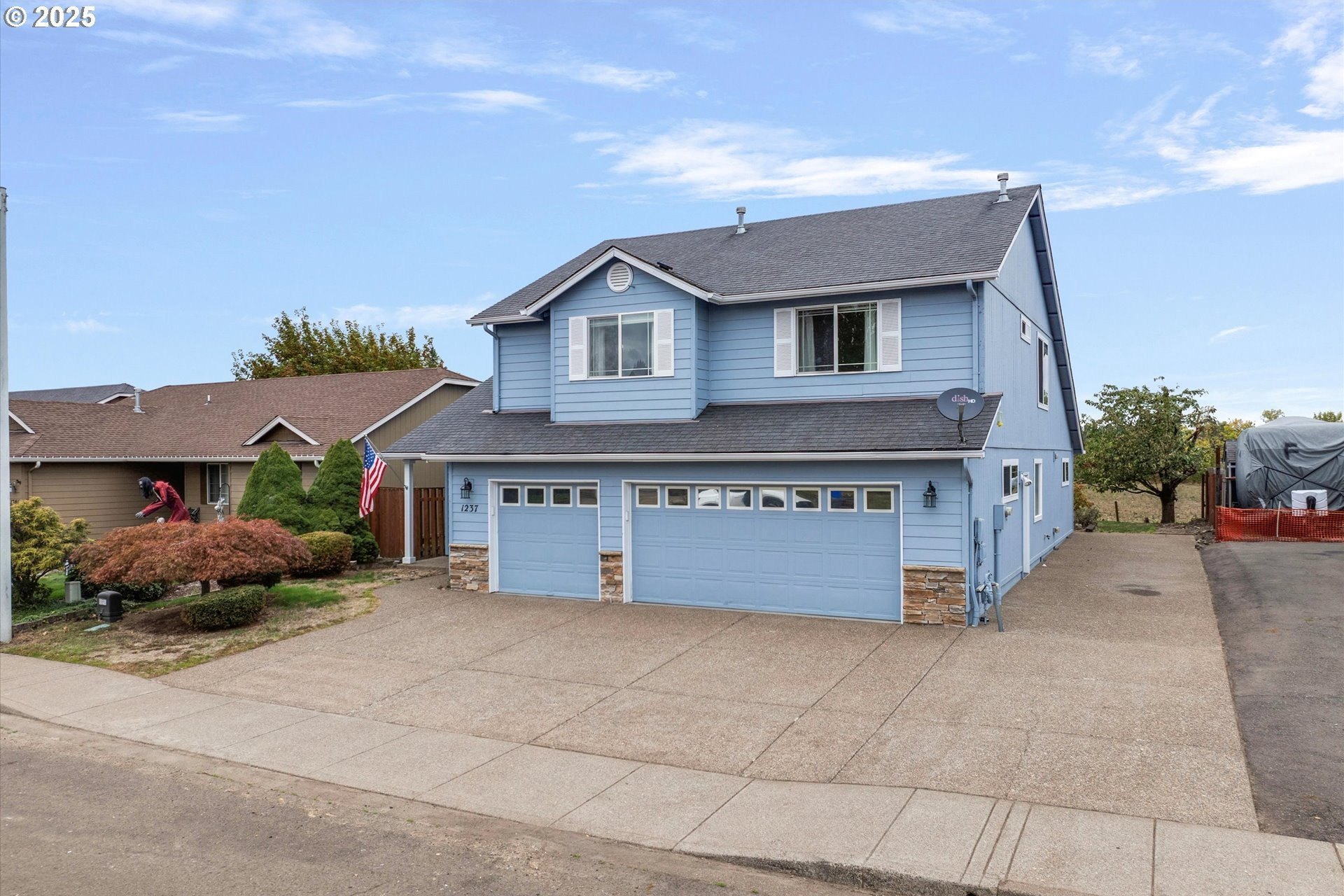 Inviting 3-bedroom + bonus/loft home in the desirable Big Meadow Subdivision of Molalla! The spacious main-level primary suite offers soaring ceilings, a walk-in closet, double sinks, and a private slider to the backyard. The kitchen features gas appliances, a pantry, and a cozy breakfast nook, while the open living room with a fireplace and patio access is perfect for relaxing or entertaining. Upstairs, you’ll find two additional bedrooms, a versatile loft, and plenty of storage space. Enjoy a backyard that backs to serene green space, a 3-car garage with updated LiftMaster openers, and RV parking—making this home a true blend of comfort and functionality.