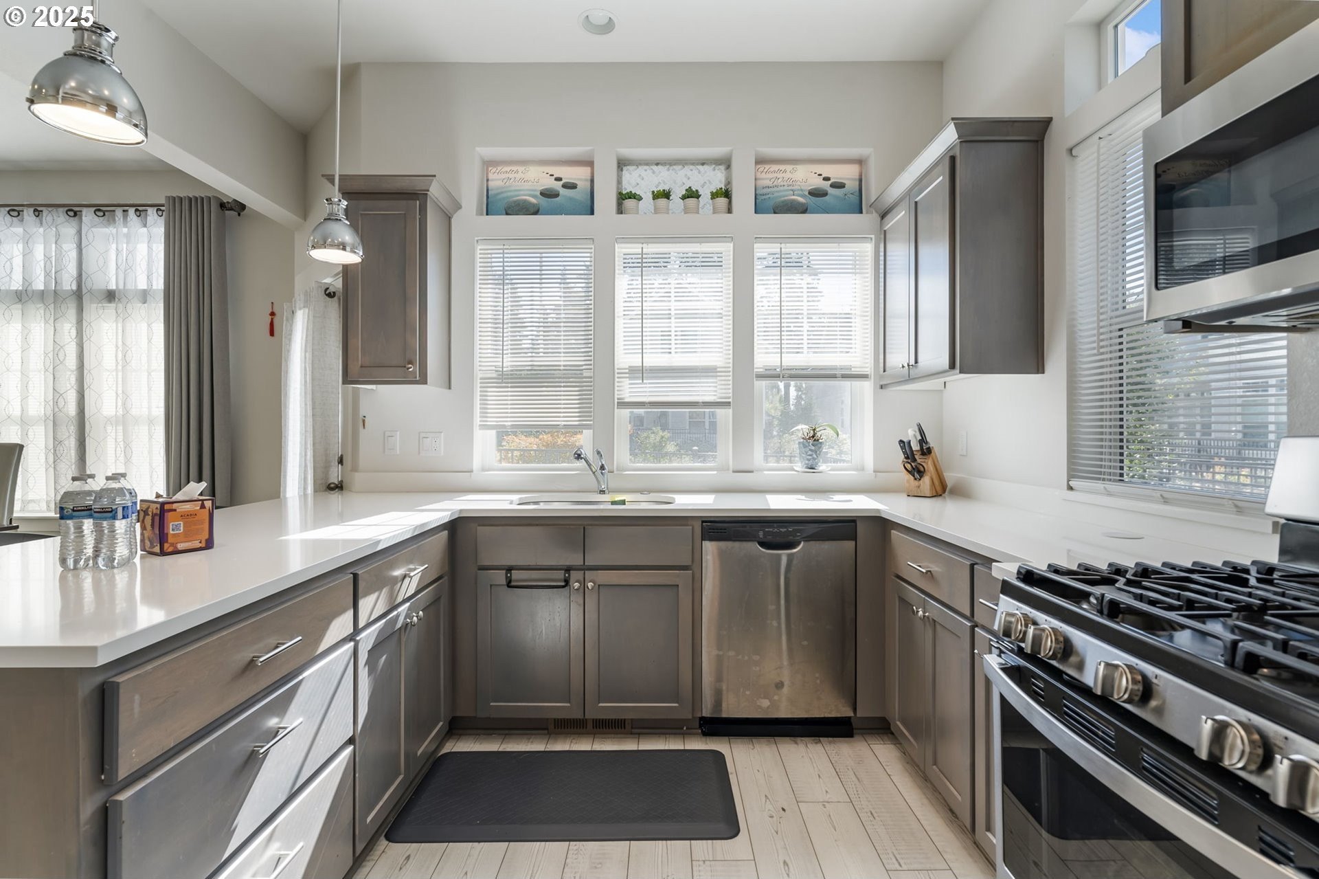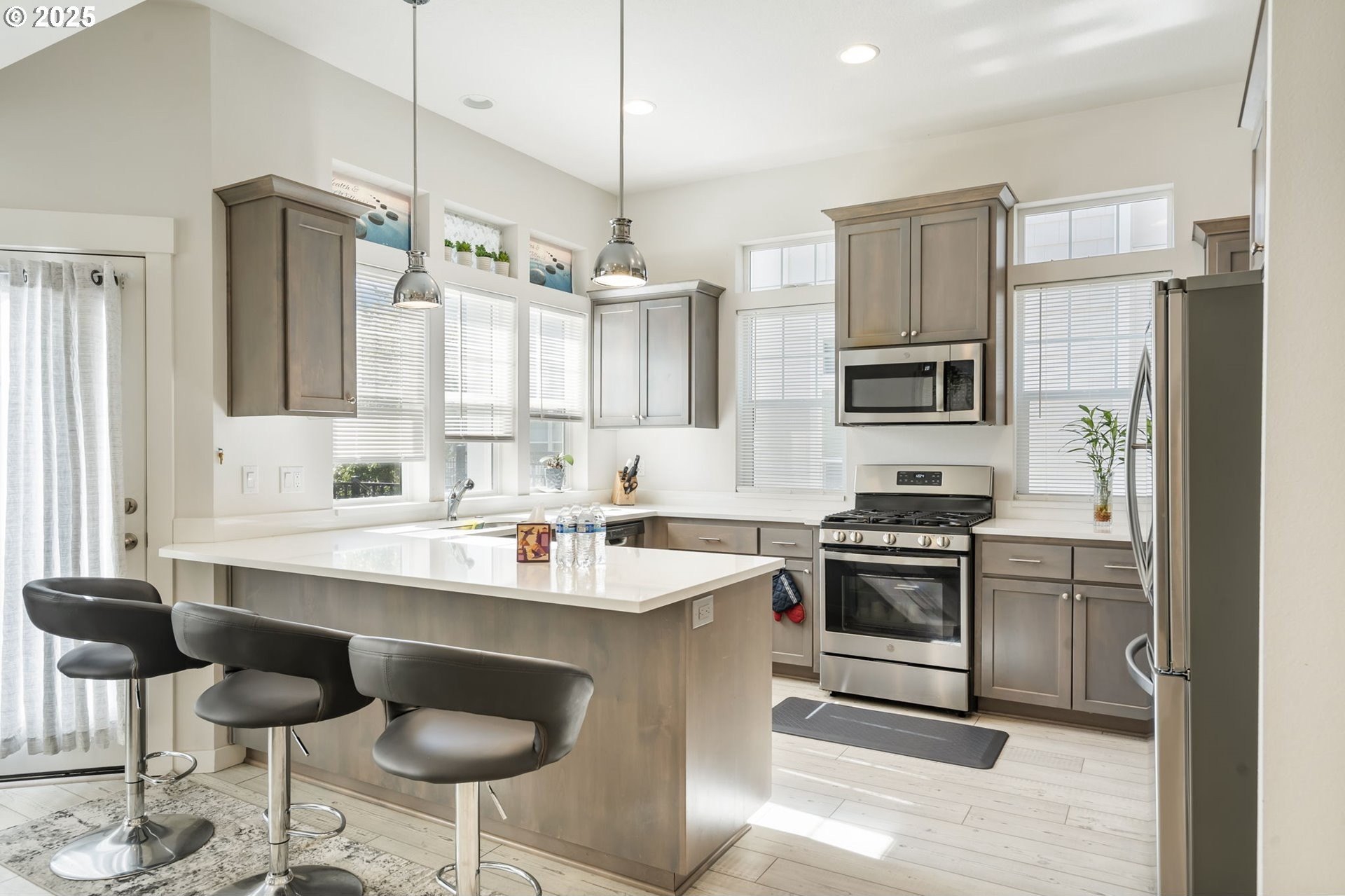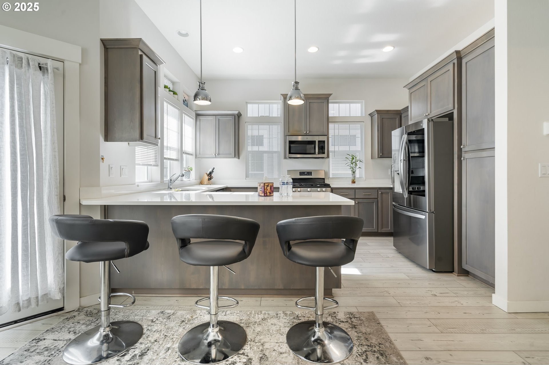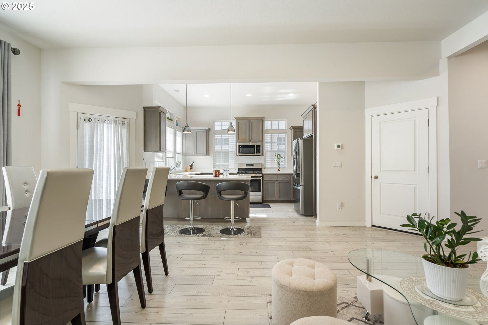 Beautiful Like-New Wilsonville Home! Built in 2021, this spacious detached condo lives large with an open floor plan, soaring vaulted ceilings, and abundant natural light. Enjoy elegant finishes throughout — LVP floors, quartz counters, and rich wood cabinetry. The home features three outdoor living spaces including a covered front porch, covered patio, and covered deck — perfect for relaxing or entertaining. With 4 generous bedrooms, 2.1 baths, and a one-car garage, there’s plenty of room. The inviting family room includes a gas fireplace with a stunning wood mantle, and the kitchen impresses with a gas stove and high-end finishes. Additional highlights include AC and a fantastic location with a 75 Walk Score and 96 Bike Score — just blocks from Fred Meyer, Starbucks, and shops. The community offers walking trails and an open green space for residents to enjoy.