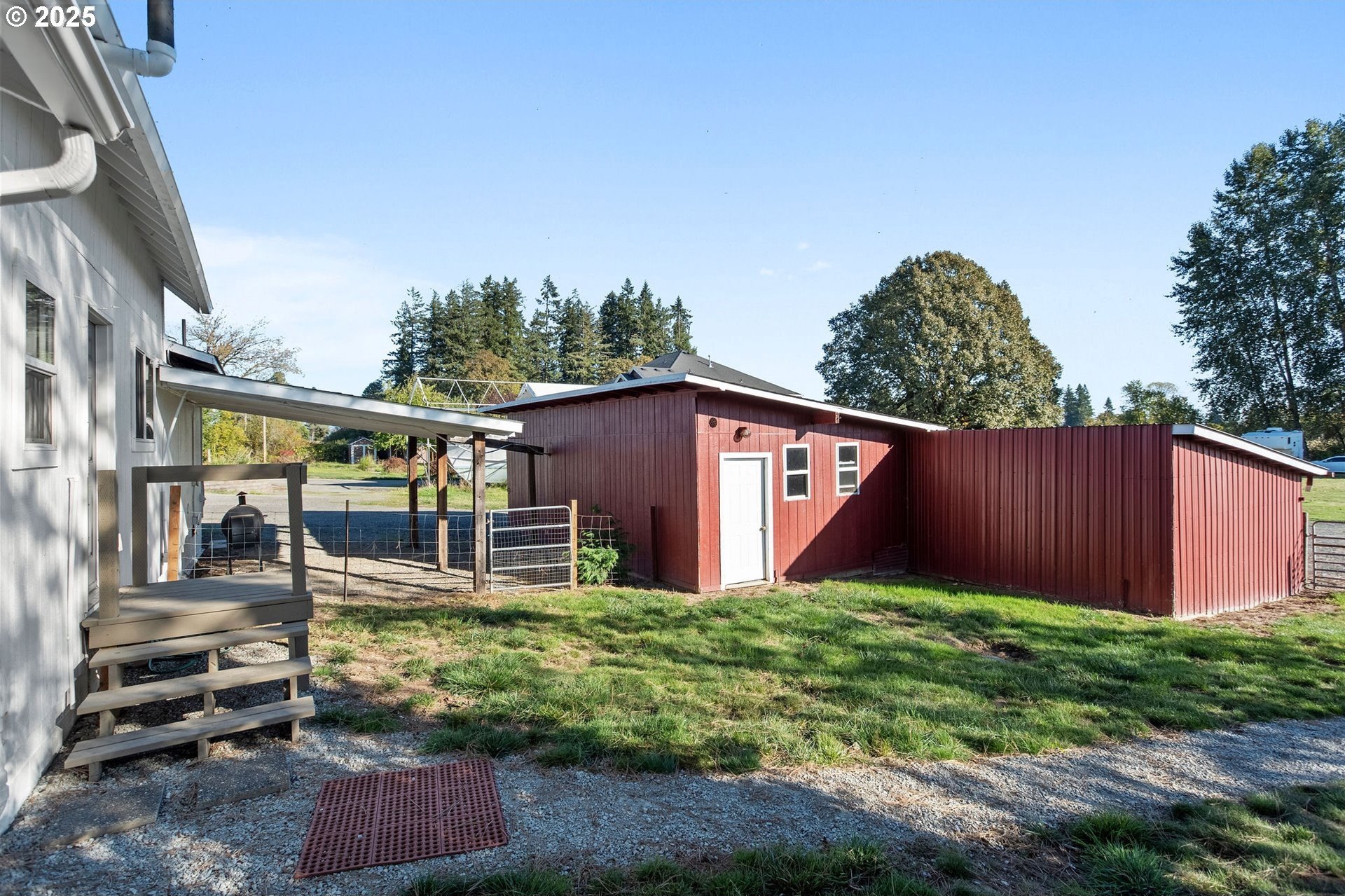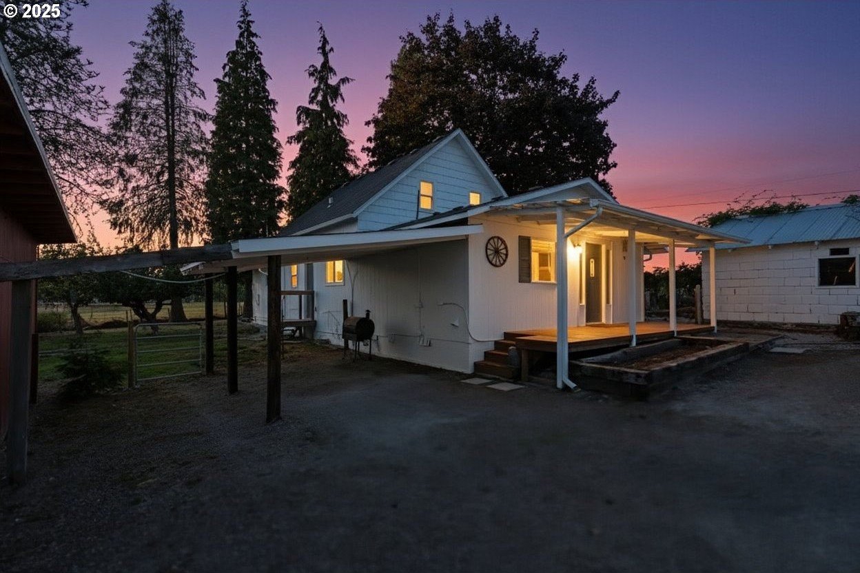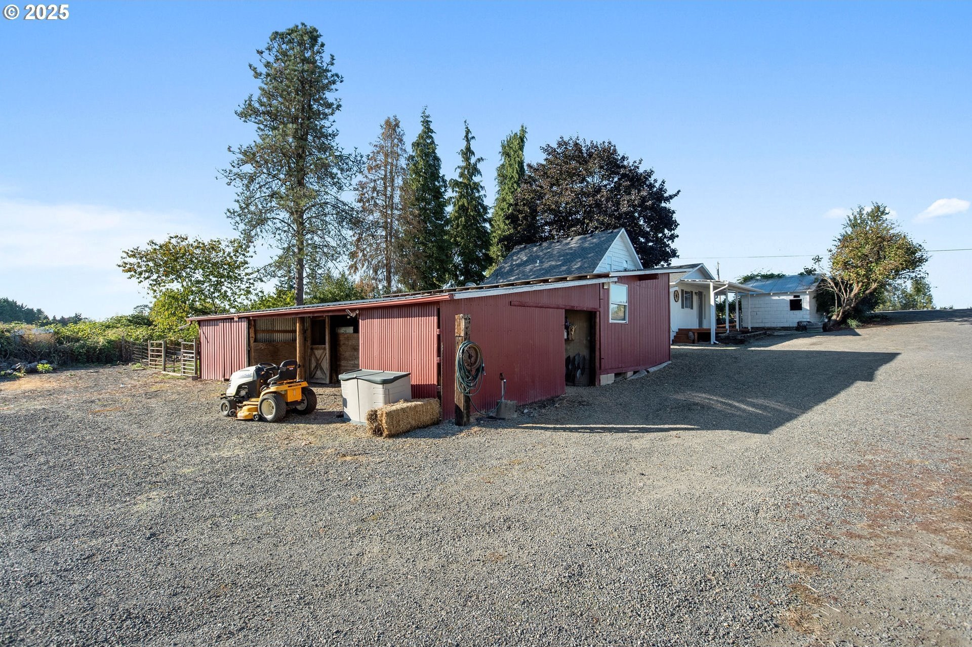 Discover your own slice of serene country living in Ridgefield—this adorable farmhouse checks all the boxes. Close to the new elementary school, this home sits on a flat, usable lot just over 3/4 an acre. This property offers space to play while still being close to town. The barn features two horse stalls plus abundant additional storage, perfect for hobby farms, equestrian dreams, or equipment storage. There’s also an extra storage shed for all your tools and gear.Inside, the home is open and inviting, with the primary bedroom conveniently located on the main level. Picture yourself washing dishes with a beautiful view of Mt. Hood through the kitchen window, or cozying up to the wood stove while taking in the stunning sight of Mt. St. Helens in the distance. Thoughtful touches like a mud room and instant hot water heater add comfort and functionality.Recent updates include new siding, fresh interior and exterior paint, an updated bathroom, new gravel drive, refreshed landscaping, and more.This charming 2-bedroom, 1-bath farmhouse blends warmth, functionality, and country appeal—an incredible opportunity to own land in desirable Ridgefield.