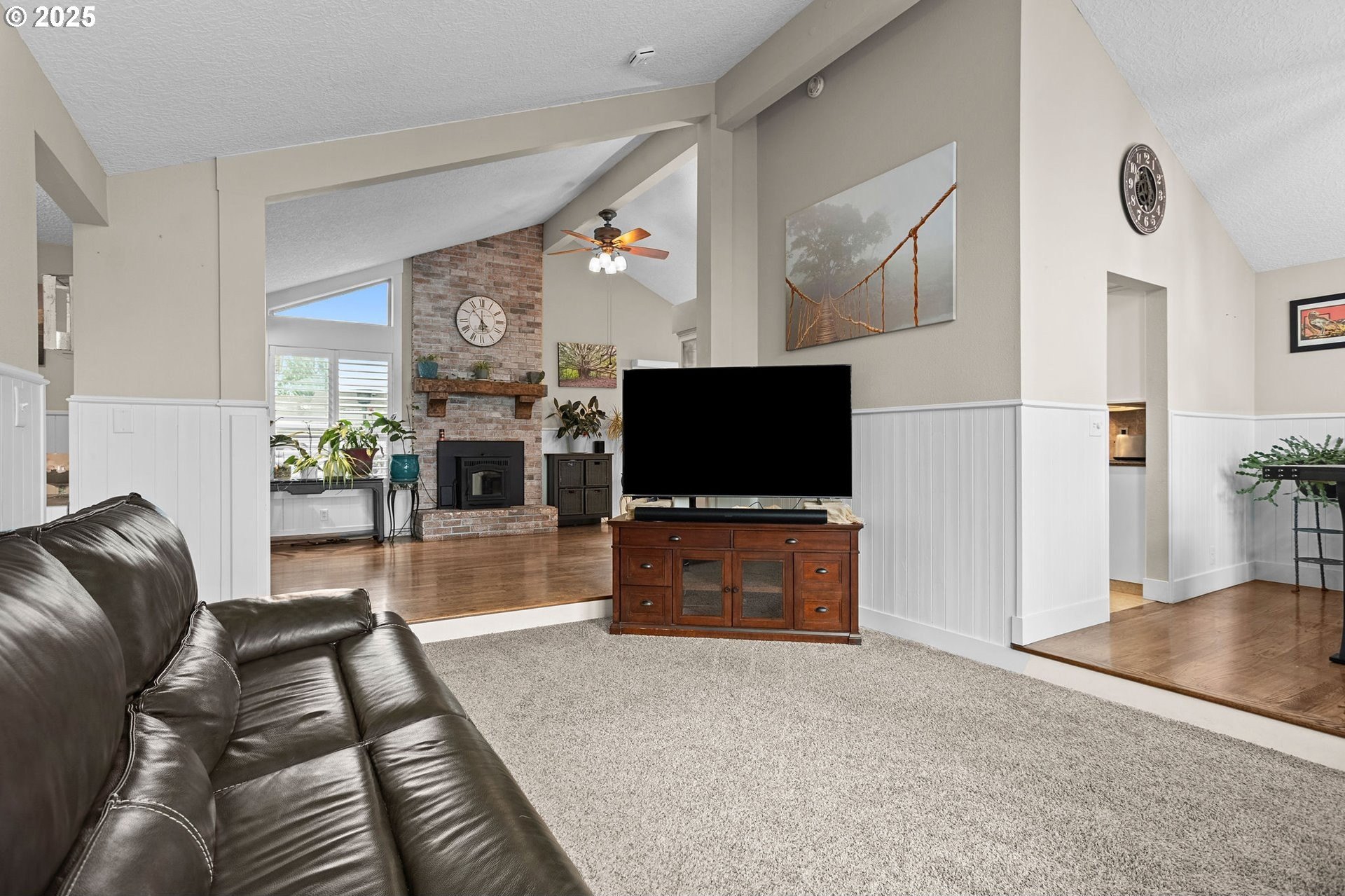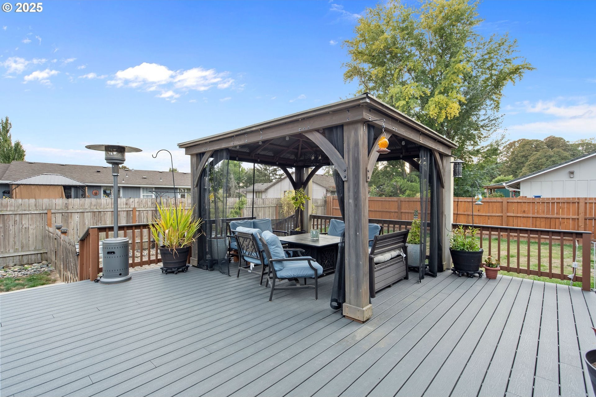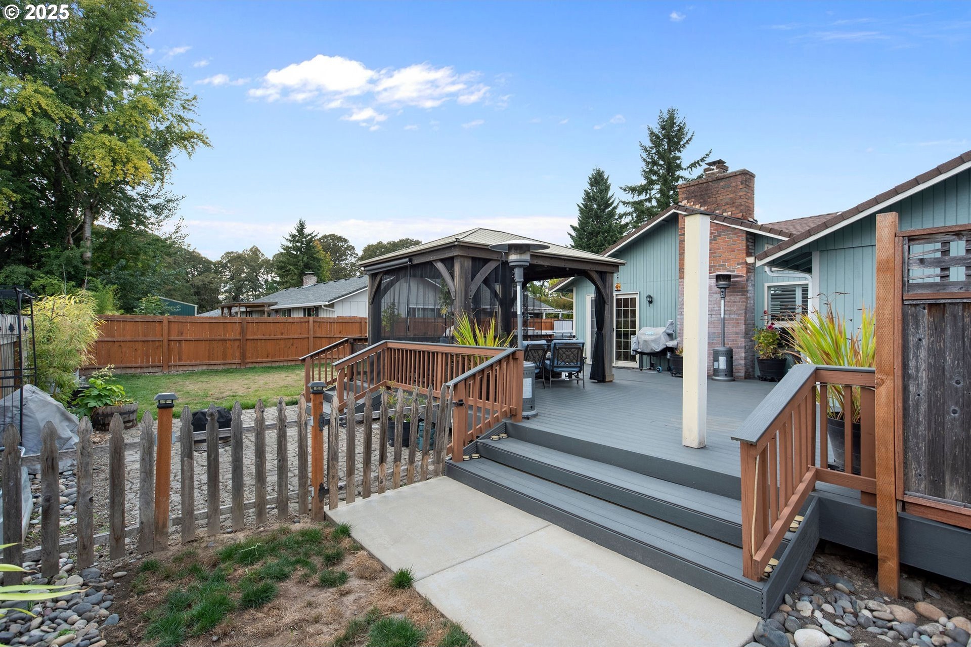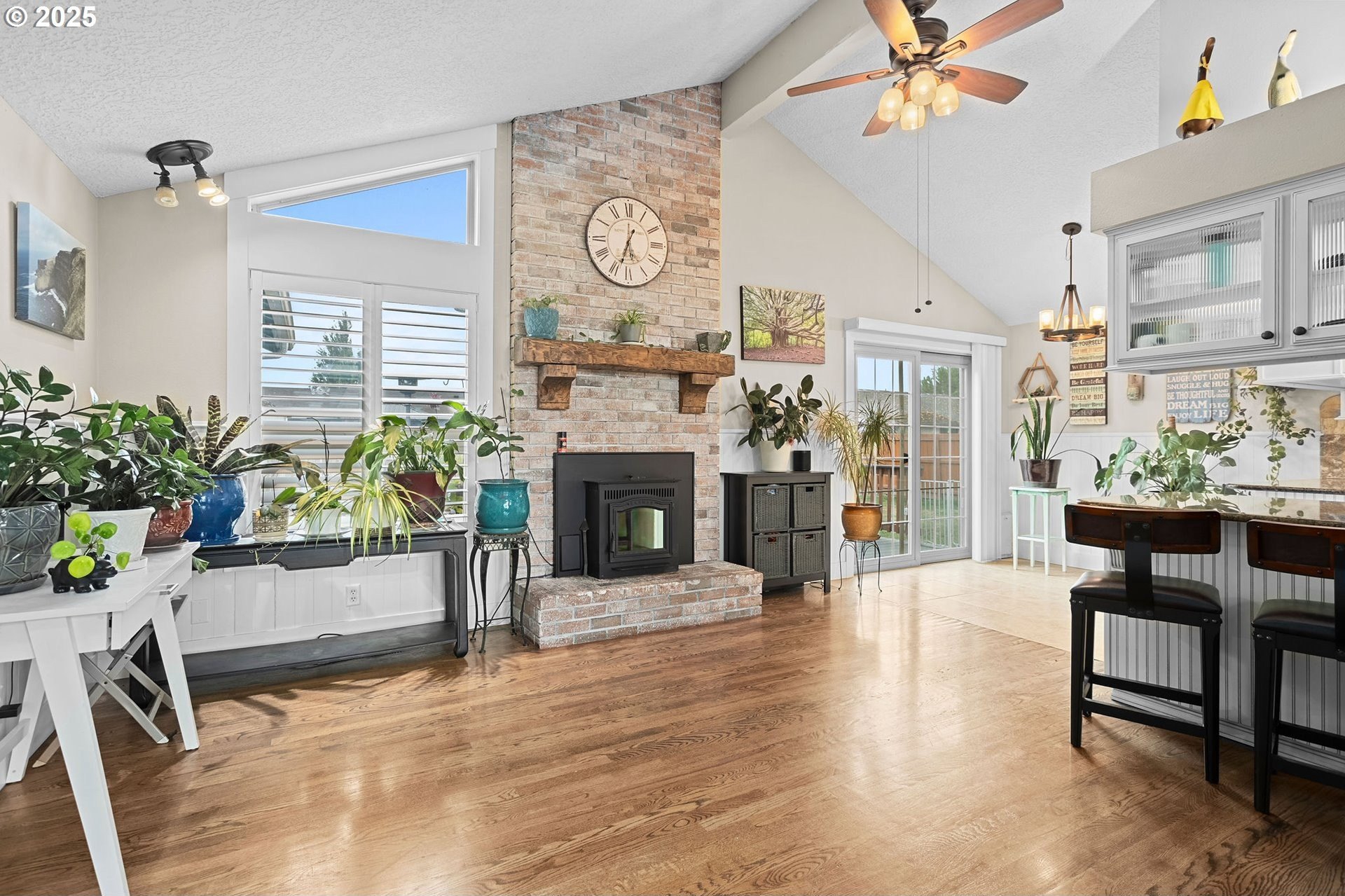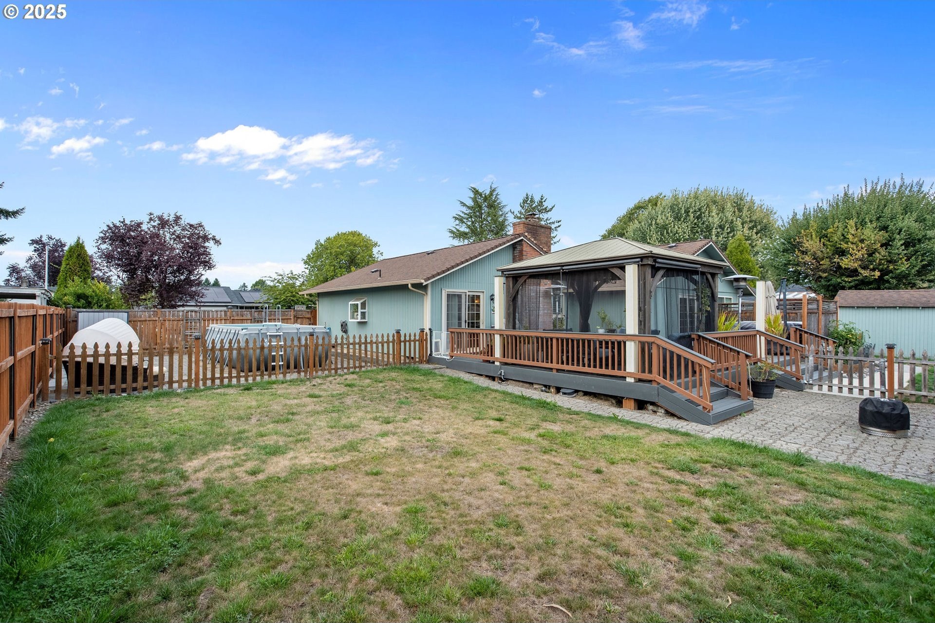Charming Single-Story Home in the Heart of Battle Ground!This bright and spacious home offers comfort, style, and plenty of room to entertain. The open floor plan features vaulted ceilings and a large great room with a stunning floor-to-ceiling brick fireplace and insert. Gleaming hardwood floors flow throughout, while the gourmet kitchen shines with stainless steel appliances and a formal dining room for special gatherings. Enjoy multiple living spaces with both a family room and great room, plus easy access to the outdoors with a slider leading to a brand-new composite deck. The huge fenced yard is beautifully landscaped and designed for entertaining with a private hot tub area, gazebo, an above-ground pool (9’ x 18’ x 4’), and plenty of space for relaxation. Additional highlights include: Fresh exterior paint, Ceiling fans for year-round comfort, Pellet stove for cozy evenings, 2-car garage and Excellent location near community parks. A perfect blend of comfort and convenience, this home offers everything you need to enjoy the best of Battle Ground living.