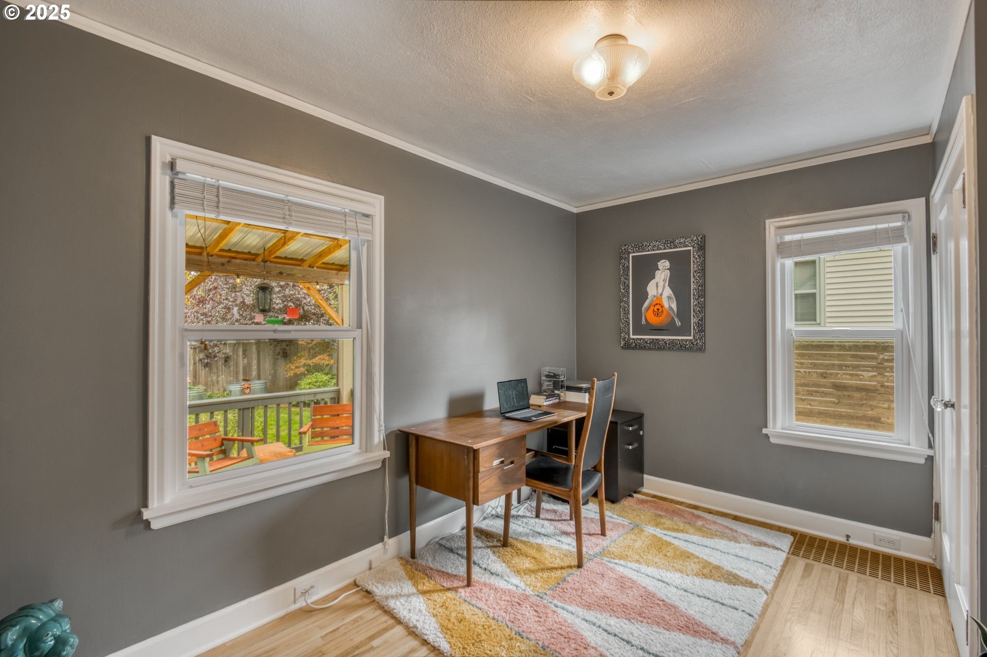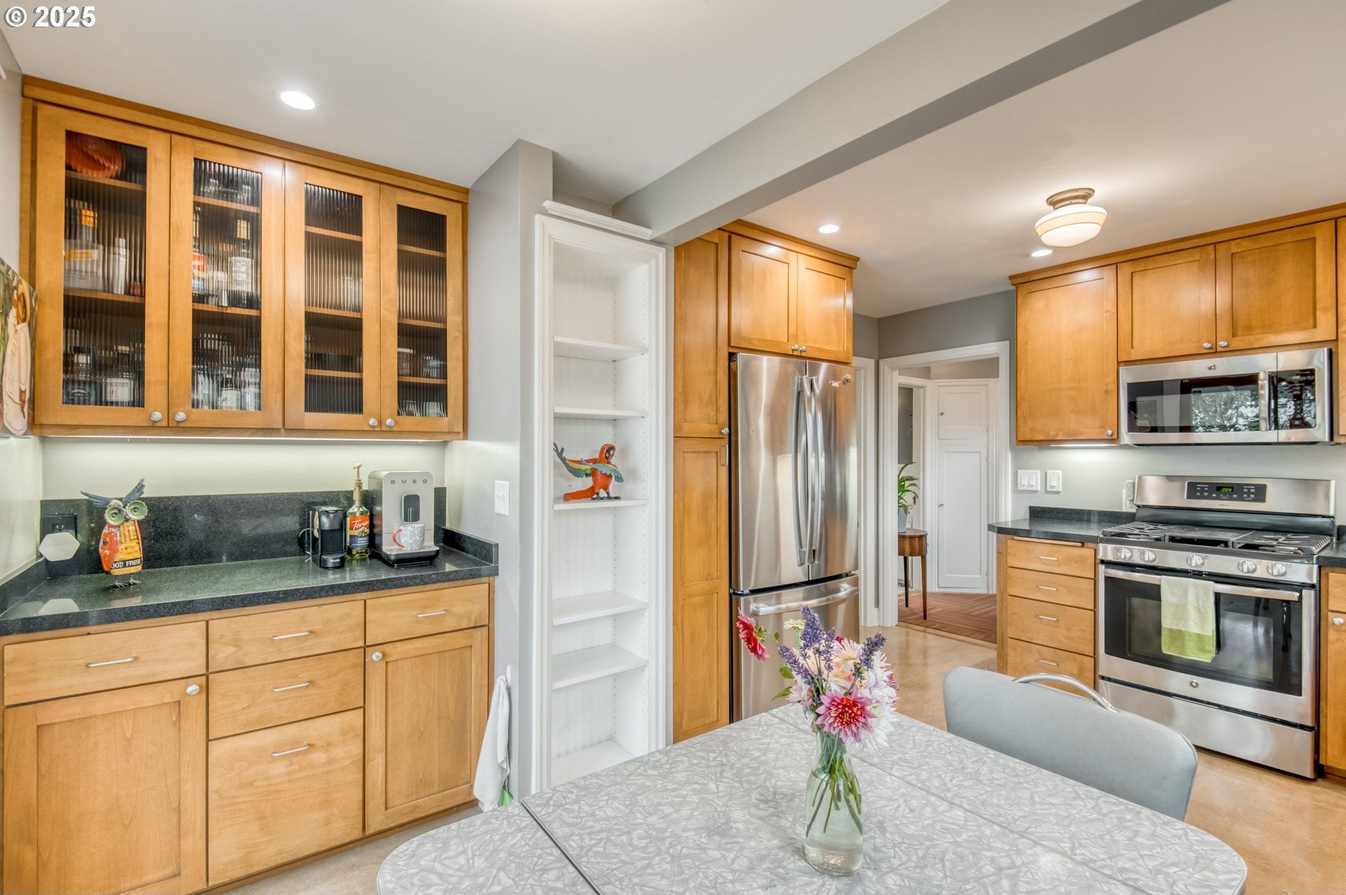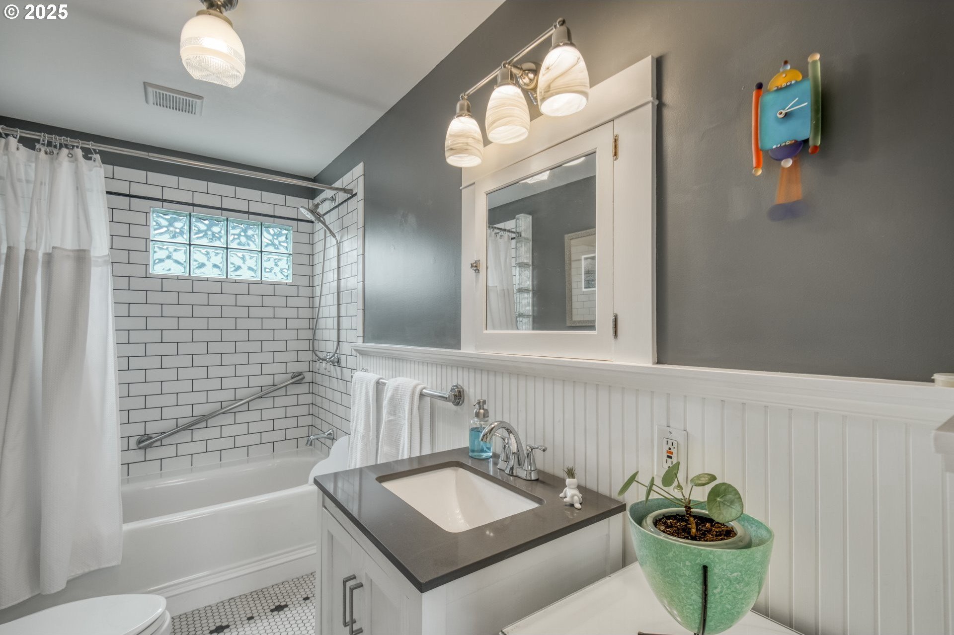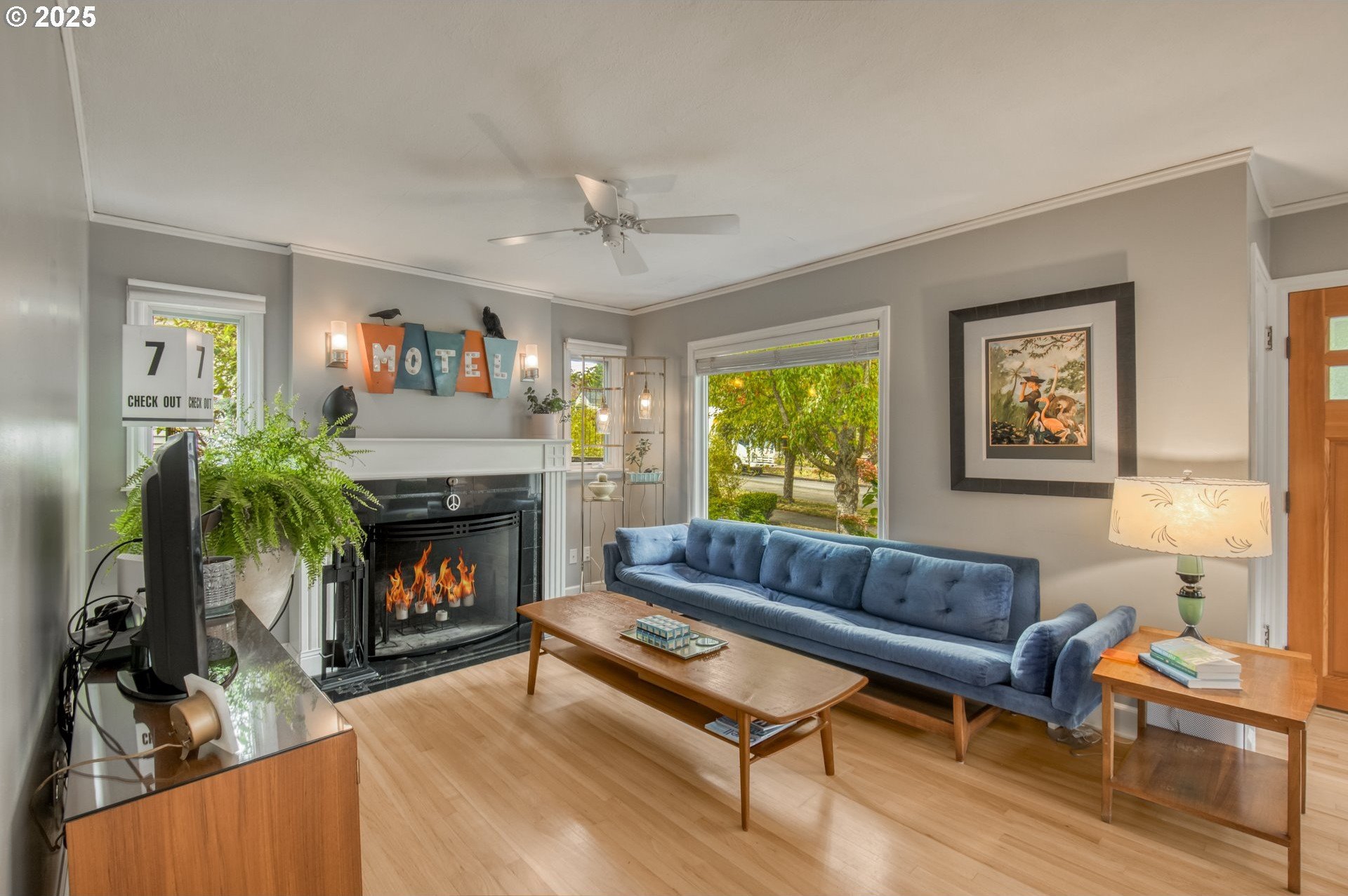 Nestled in the heart of Portland’s beloved Roseway neighborhood, this timeless 1934 English charmer blends vintage soul with modern updates, offering hardwood floors, a cozy fireplace, and authentic details alongside an updated kitchen with gas range, custom cabinetry, and a built-in breakfast nook that begs for Sunday mornings. The spacious living and dining areas flow together with an easy, modern vibe, while the vintage bathroom adds just the right touch of character. A large open unfinished basement with its own side door holds endless possibilities—studio, gym, creative workshop, or future expansion. Outside, lush mature landscaping frames a private fenced backyard with French doors opening to an oversized covered deck, perfect for year-round entertaining, while the detached garage provides plenty of room for bikes, gear, or projects. A newer tear-off roof adds peace of mind for years to come. With a Walk Score of 76 and Bike Score of 89, you’re a short stroll from the Roseway Parkway, Wellington Park, and Sacajawea Park—and less than five minutes from the farm-to-table restaurants, indie coffee shops, craft bars, and boutique shopping that make Beaumont Alameda on Fremont some of Portland’s most vibrant destinations. Live local. Live vibrant. Live in the Roseway neighborhood and enjoy the best of Portland’s urban energy, all from a quiet tree-lined street.