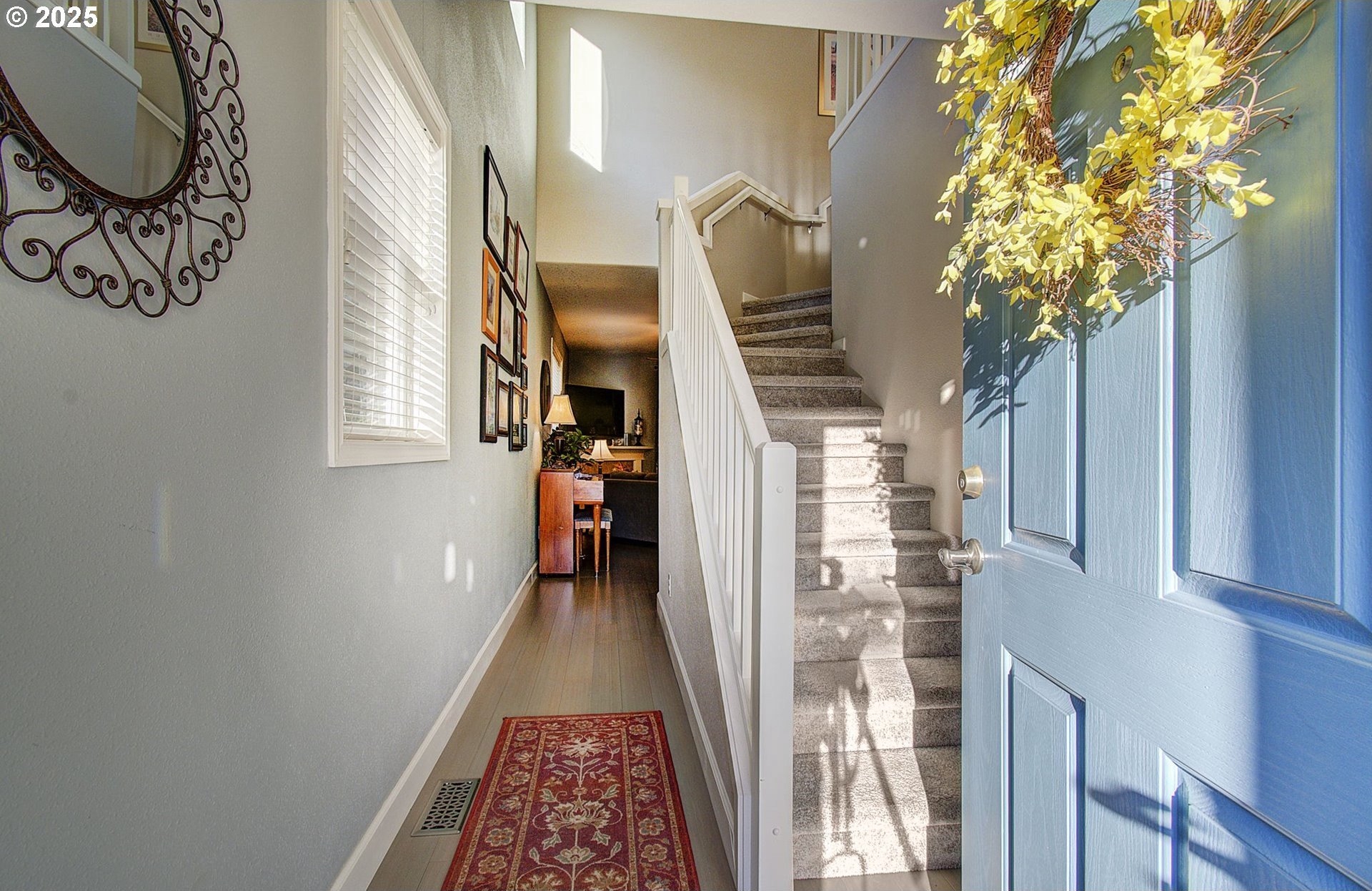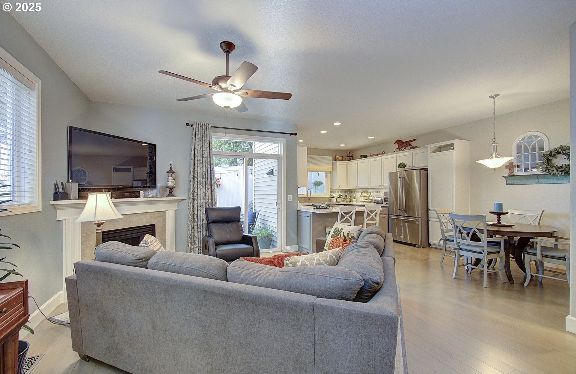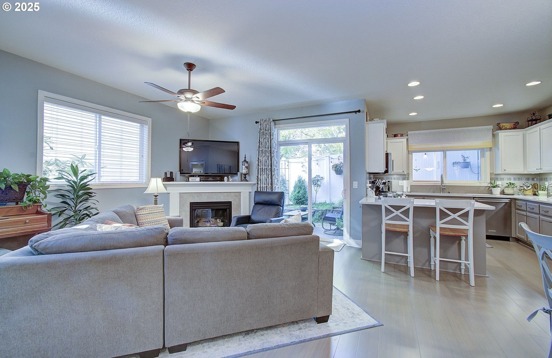 Centrally located move in ready townhome. This house lives large with it's open concept great room and engineered bamboo flooring throughout the main floor. The stylishly updated kitchen includes stainless steel kitchen aid appliances, quartz countertops, under cabinet lighting and added pantry cabinetry! Living area features a gas fireplace with blower that heats the space in the winter and a ceiling fan that helps cool in summer, plus this home has forced air heat and central AC to stay comfortable all year round. A sliding door leads to the patio, this backyard is fully fenced and there are no homes behind, which makes for a very enjoyable & low maintenance yard! Upstairs has newer plush wall to wall carpeting and the primary bedroom with vaulted ceiling & fan, attached updated bathroom including a large soaker tub, walk-in tiled shower & walk-in closet with built in shelving. Also two more good sized bedrooms and hall bath. The attached two car garage has extra storage shelving and a workbench. Plus there is a true two car driveway as well. The low HOA includes exterior maintenance, landscaping and management. This is a premium tastefully updated home, close to everything, top rated high school boundary and priced to sell! Blocks away from Luke Jenson Park with playground and walking trails. Open house Saturday 10/11 from 11-1 and Sunday 10/12 from 1-3 Come take a tour!