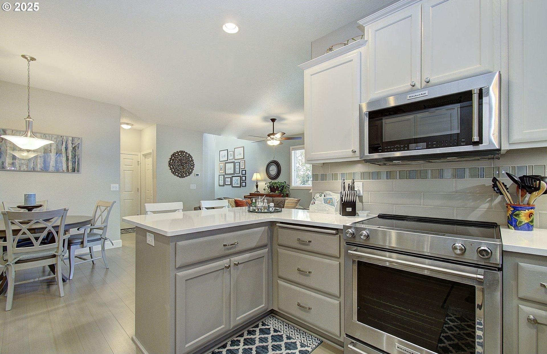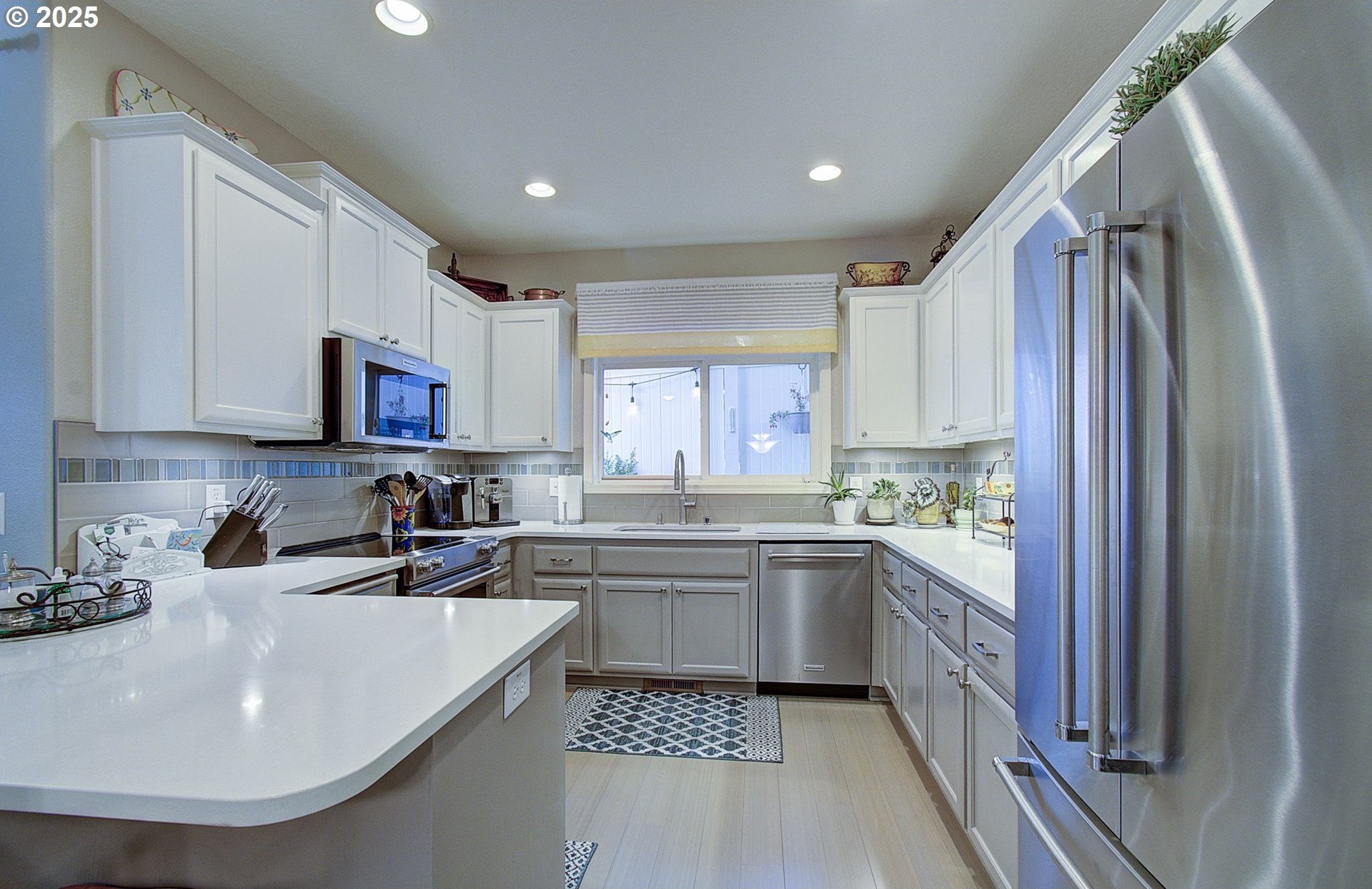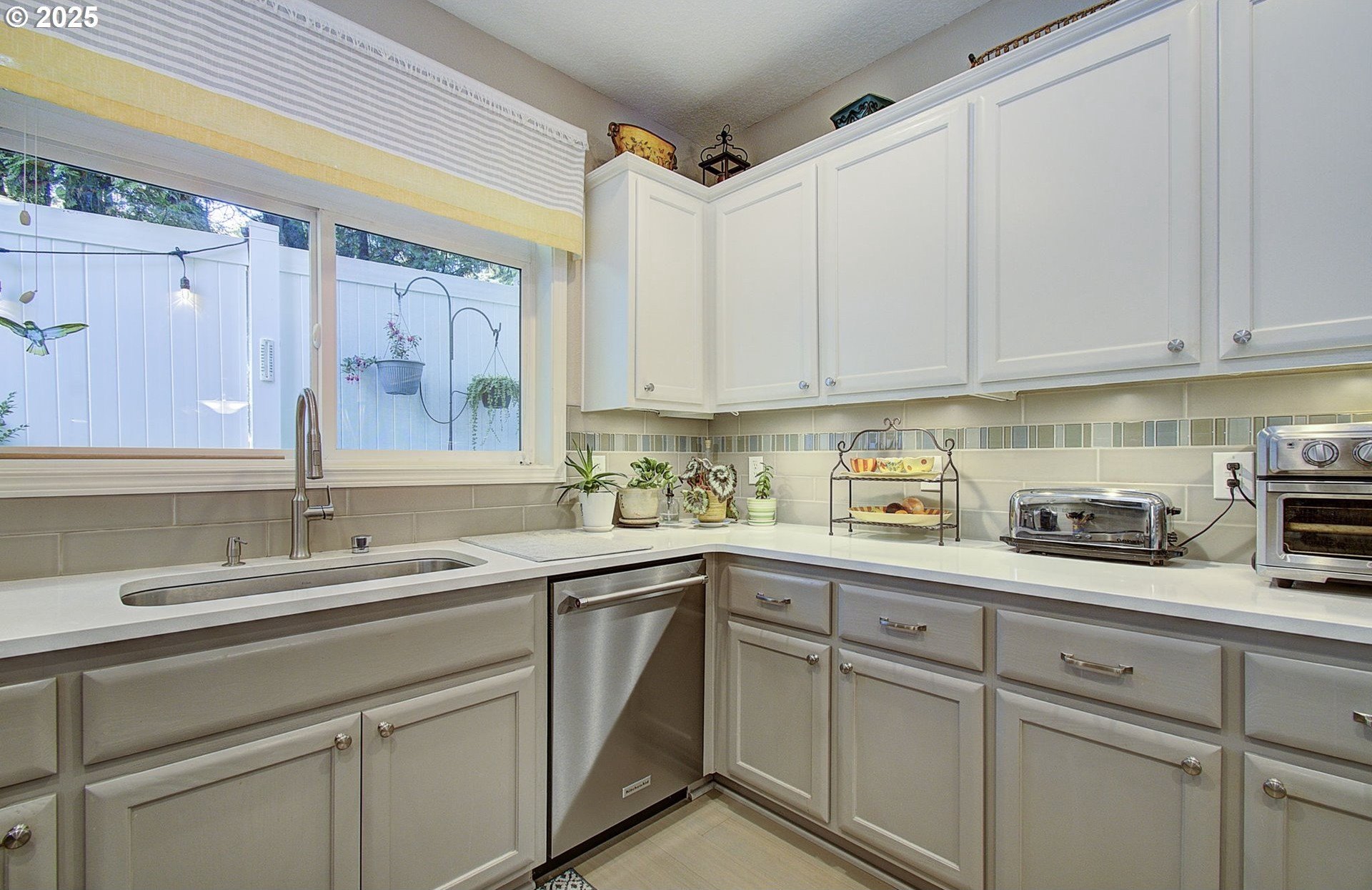Centrally located move in ready townhome. This house lives large with it's open concept great room and engineered bamboo flooring throughout the main floor. The stylishly updated kitchen includes stainless steel kitchen aid appliances, quartz countertops, under cabinet lighting and added pantry cabinetry! Living area features a gas fireplace with blower that heats the space in the winter and a ceiling fan that helps cool in summer, plus this home has forced air heat and central AC to stay comfortable all year round. A sliding door leads to the patio, this backyard is fully fenced and there are no homes behind, which makes for a very enjoyable & low maintenance yard! Upstairs has newer plush wall to wall carpeting and the primary bedroom with vaulted ceiling & fan, attached updated bathroom including a large soaker tub, walk-in tiled shower & walk-in closet with built in shelving. Also two more good sized bedrooms and hall bath. The attached two car garage has extra storage shelving and a workbench. Plus there is a true two car driveway as well. The low HOA includes exterior maintenance, landscaping and management. This is a premium tastefully updated home, close to everything, top rated high school boundary and priced to sell! Blocks away from Luke Jenson Park with playground and walking trails. Open house Saturday 10/11 from 11-1 and Sunday 10/12 from 1-3 Come take a tour!