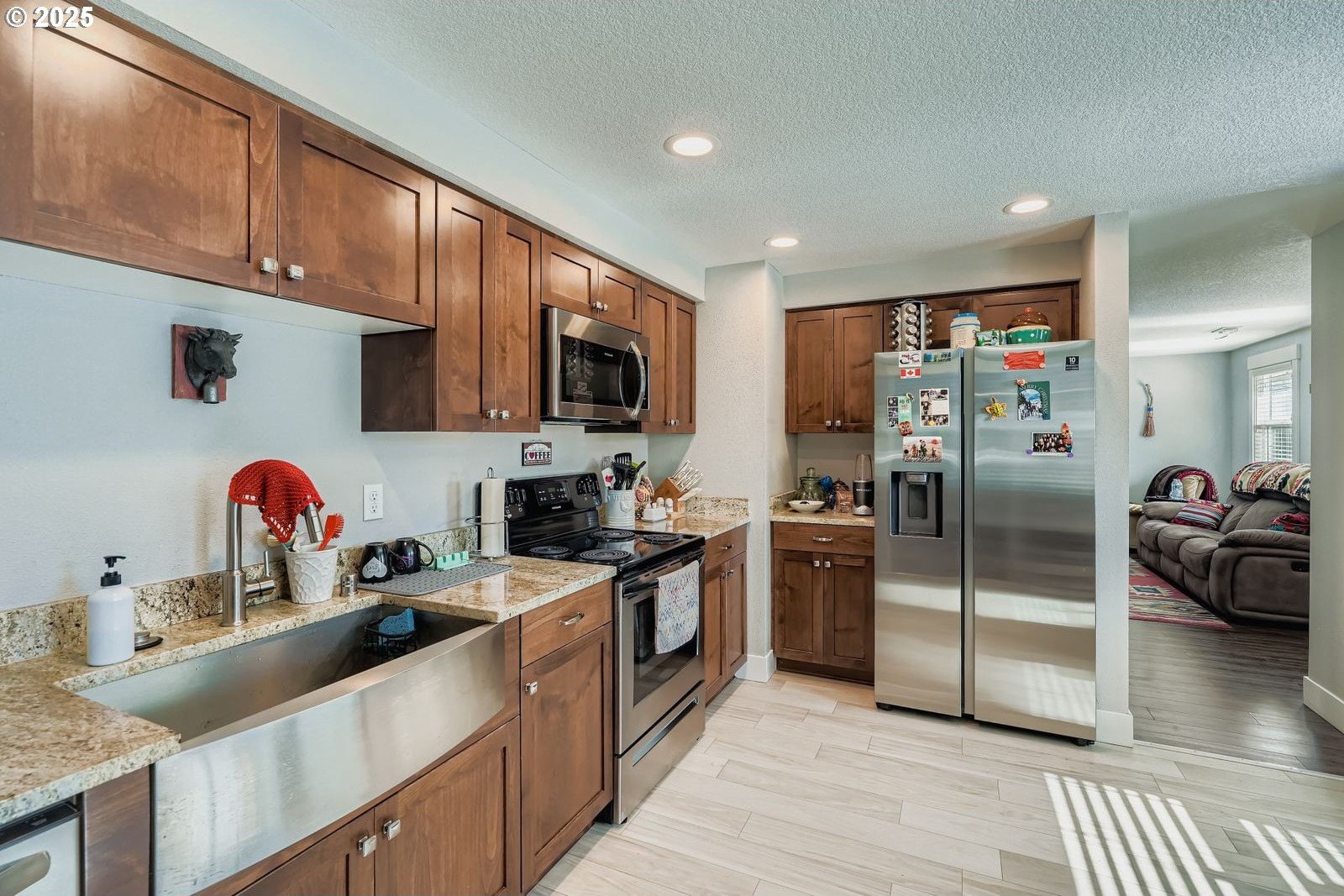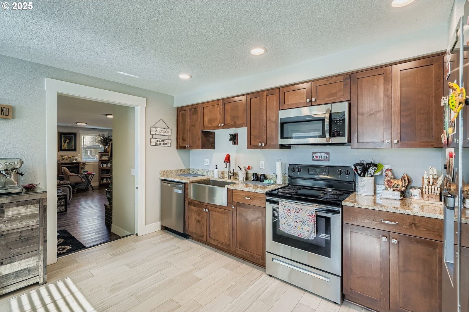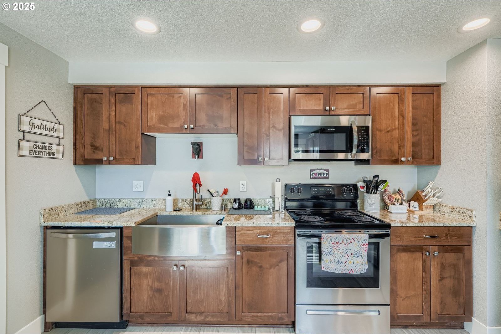 Fully refreshed and inviting ranch home in Burnt Bridge Creek. Offering 3 beds/1.75 baths, this 1,312 sf home has a a spacious floor plan & key upgrades featuring soft closed cabinets, granite countertops, farm style sink, stainless steel appliances, long lasting/low maintenance LVP flooring, newer heat pump, & more. This lovely home sits on a generous 10,572 sq. ft. cul de sac lot w/ plenty of room for a boat, RV, or trailer, plus an oversized patio & fully fenced backyard. Roof is approximately 6 years old w/plenty of life remaining. Added bonus of two 10x12 storage buildings for all your items. Thoughtfully updated with modern finishes and a layout built for ease, this home provides peace of mind and is move-in ready.