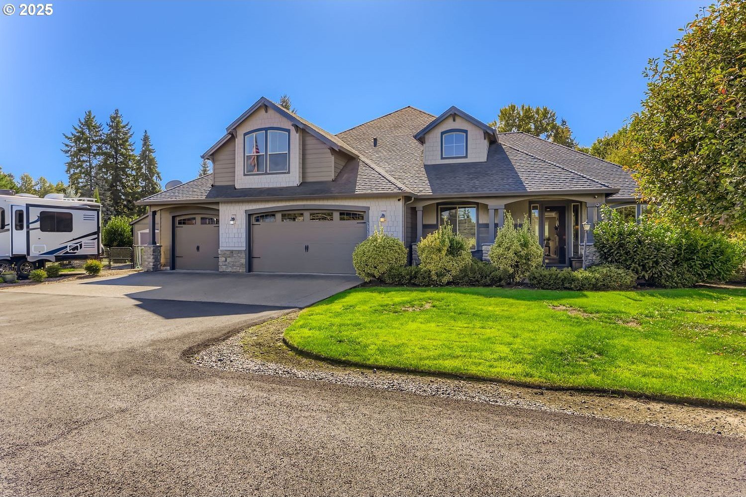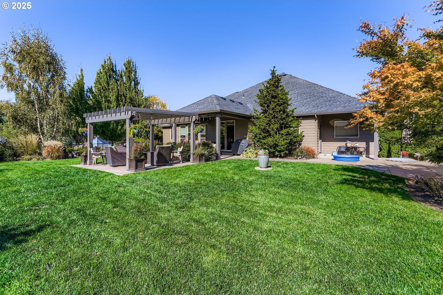 Welcome to this beautifully maintained 3-bedroom, 3.5-bathroom home offering the perfect blend of function, comfort, and space for entertaining—all on the main level with the bonus of an upstairs retreat. Set on a peaceful 2-acre lot, this property provides the ideal balance between privacy and convenience, featuring multiple outdoor living areas, a workshop, and an insulated outbuilding with AC currently used as an exercise studio.Inside, an inviting floor plan centers around a spacious kitchen designed for gatherings, complete with a dining room, breakfast nook, and easy flow into the living spaces. The dedicated office with French doors offers the perfect work-from-home setup or a quiet study area. The upstairs bonus room adds flexibility for a media room, hobby space, or guest retreat—whatever best fits your lifestyle.Step outside to a stunning fenced backyard featuring a pergola, custom landscaping, and open space ideal for summer barbecues, gardening, or quiet relaxation. Ample parking and a 20x24 carport in the back acre make room for guests, RVs, or extra vehicles. The renovated barn has been transformed into a powered workshop—ready for projects, storage, or creative use.Since 2016, the owners have thoughtfully upgraded nearly every aspect of the property: trim lighting installed around the home’s perimeter (controlled via app to change colors for holidays), central vacuum system, front and backyard irrigation, and a full alarm system. The barn was converted into a functioning shop, the driveway and parking area were replaced with new asphalt, and the garage now includes a mini-split system—making it a true multiuse space. Additional highlights include the home’s 2024 repaint, regular well servicing (1–2 times per year), and beautiful year-round curb appeal enhanced by the programmable lighting.A property that perfectly blends practicality, entertainment, and charm—this is country living at its best, just waiting for its next owner to enjoy.