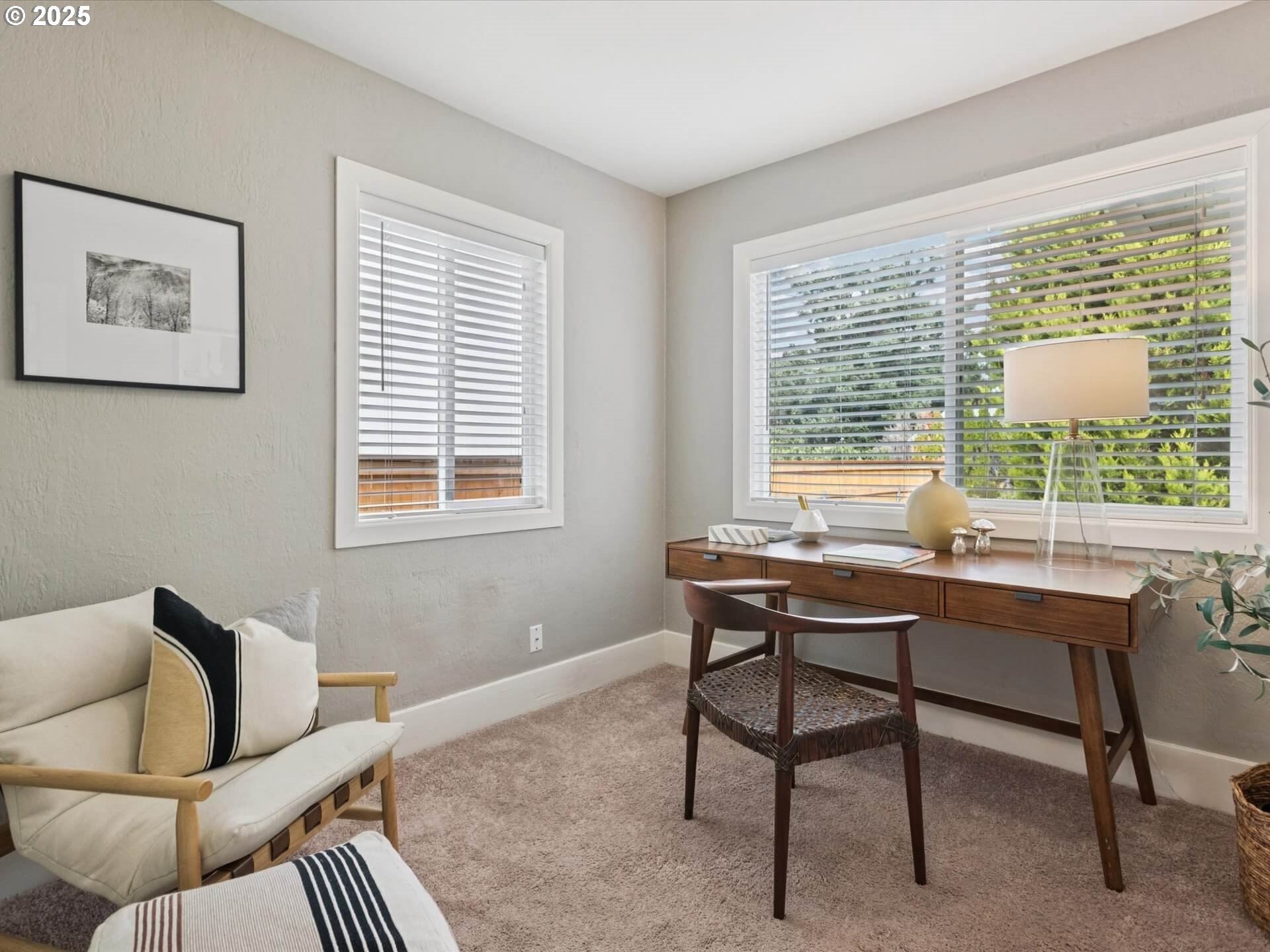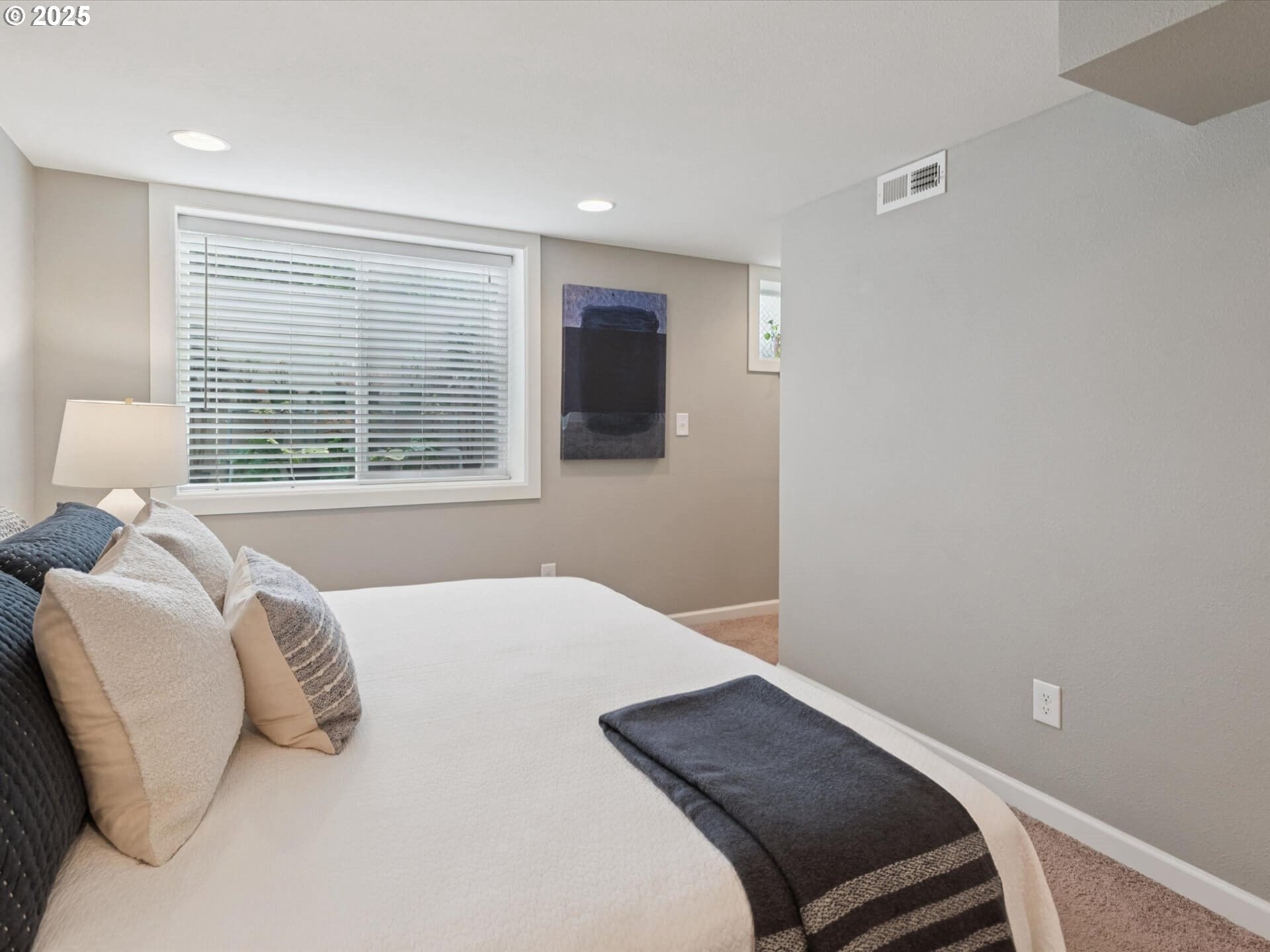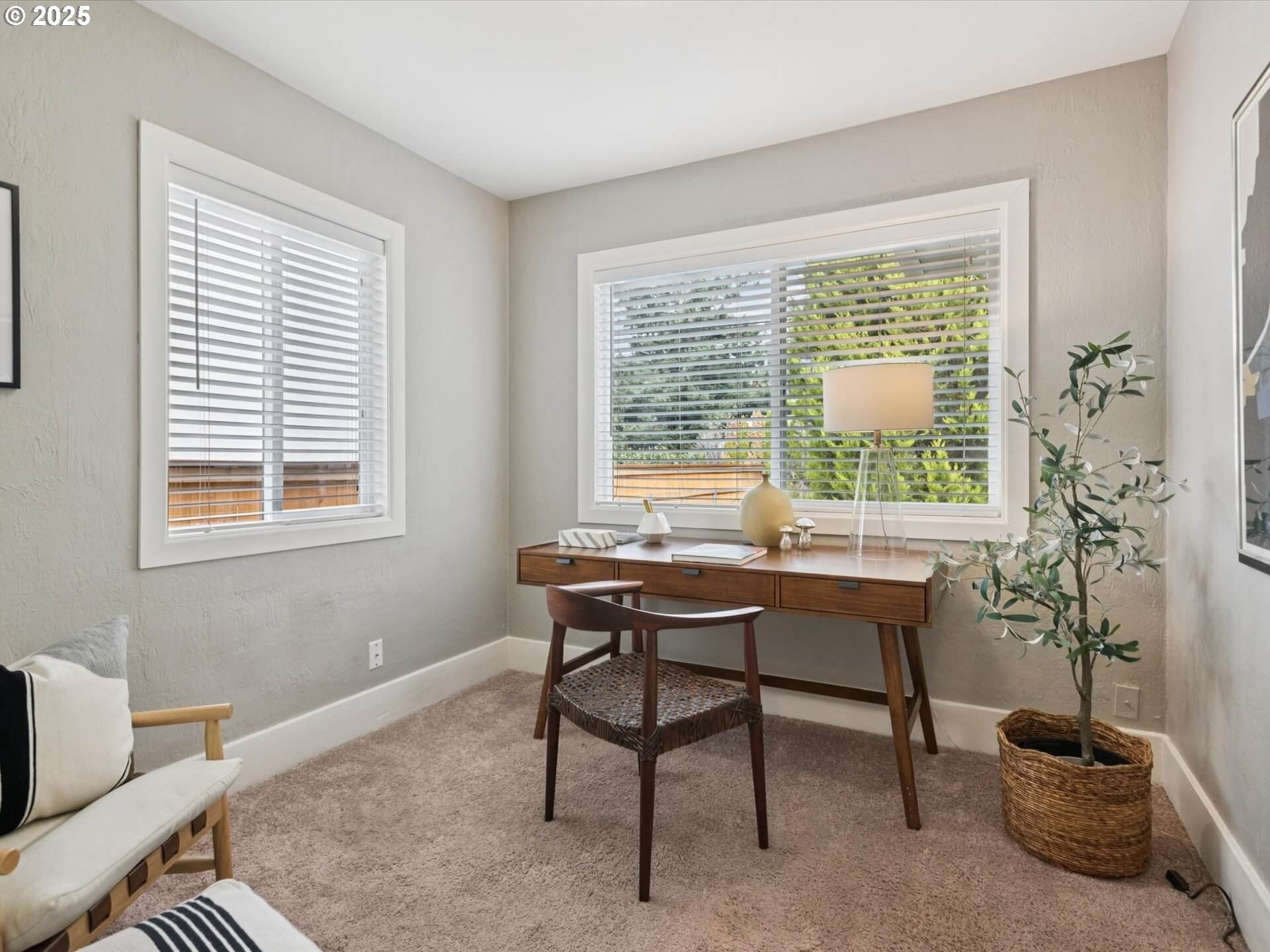 A beautifully renovated bungalow near Woodstock! This home effortlessly blends classic charm with modern upgrades, beginning with gleaming hardwood floors and a striking Calcutta-tiled fireplace. Enjoy peace of mind with newer siding, roof, gutters, furnace, hot water heater, central AC – plus a sprinkler system with drip irrigation, decommissioned oil tank, and radon mitigation system for added comfort and efficiency. The sun-drenched, spacious kitchen features quartz countertops, wainscoting, a dual five-burner range, and a refrigerator with built-in ice maker. Retreat to the luxurious primary ensuite, complete with a custom walk-in closet designed with uplighting and ample space for the most dedicated shoe or wardrobe enthusiast. The spa-like bathroom includes double sinks, quartz counters, a soaking tub, and abundant storage. Step outside to a fully fenced yard oasis, complete with mature landscaping, raised garden beds, a new storage shed, and a covered patio ideal for year-round enjoyment. Off-street parking adds convenience, and the location — near both Brentwood Park and Mt. Scott Community Center — offers loads of neighborhood fun!