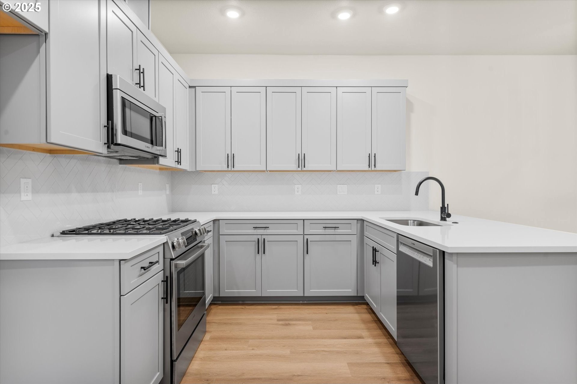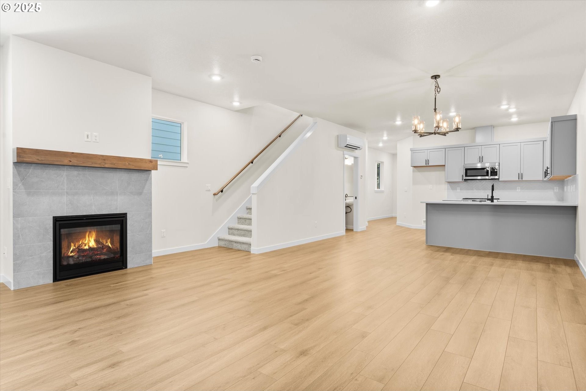 This brand-new 3-bedroom, 2.5-bath home offers 1,700 sq. ft. of modern comfort in a prime Milwaukie location. Designed with both style and function in mind, the open-concept main level showcases a sleek kitchen with quartz countertops, shaker cabinetry, and durable LVP flooring, all centered around a cozy gas fireplace. Upstairs, you’ll find a private primary suite along with spacious secondary bedrooms and a convenient laundry area. Step outside to your private deck with peaceful greenspace views—perfect for entertaining or unwinding at the end of the day. A blend of craftsmanship, comfort, and contemporary design makes this home an exceptional opportunity.
