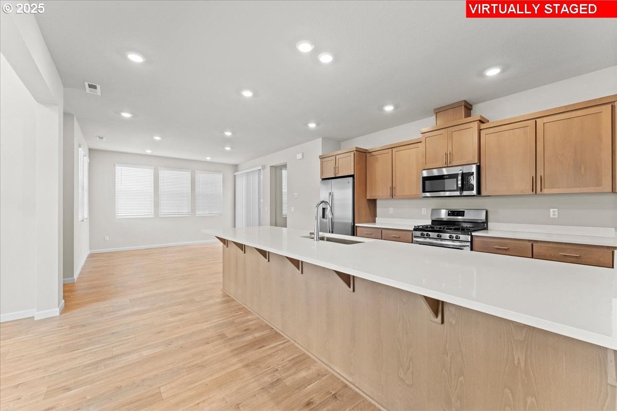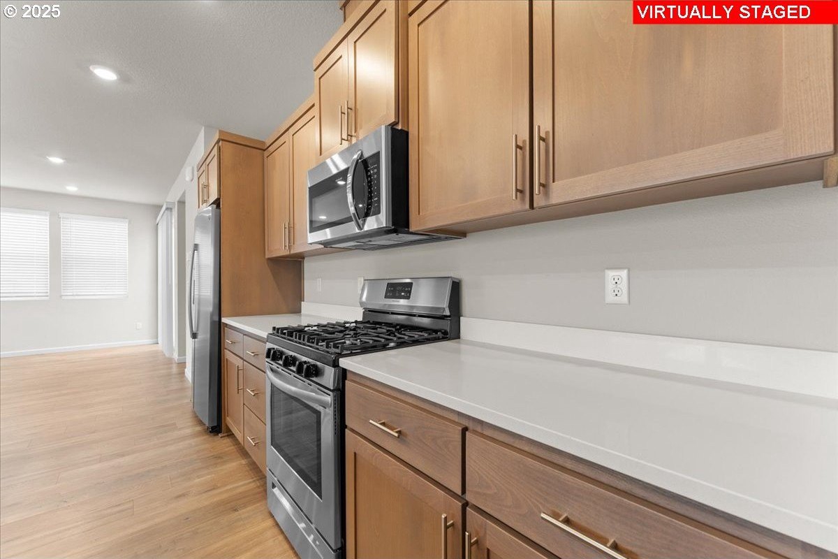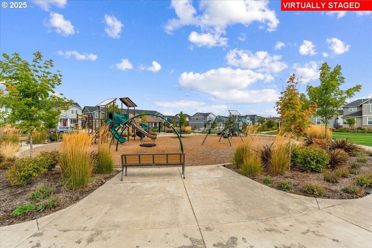 Lived in for only a year this home shows like new. This floor plan is sold out with the area builder! A beautifully maintained residence offers modern comfort and style, with several home warranties still in place for added peace of mind. The South facing living provides an abundance of light throughout the home. With an office and the primary bedroom conveniently located on the main level, featuring a spacious walk-in closet and a luxurious ensuite bathroom complete with a soaking tub and shower. The heart of the home is the open-concept kitchen with an abundance of counter tops space for gathering, equipped with sleek stainless steel appliances, ample counter space, and a layout that flows seamlessly into the dining area. You’ll love the gorgeous living room with its soaring ceilings and cozy fireplace, a stunning and inviting space. Upstairs, you’ll find two generously sized bedrooms and a large loft-style bonus/family room, offering the perfect flex space for a playroom, home office, or media lounge. Don’t miss this move-in-ready home that combines the benefits of modern construction with timeless design and smart living. North Plains offers the charm of small town living with easy access to HWY 26, Hillsboro and NW Portland. All appliances and AC are included in the sale. Move in ready. **Incentives to be reviewed upon request.Community features multiple parks, Pickleball court, basketball courts and more.