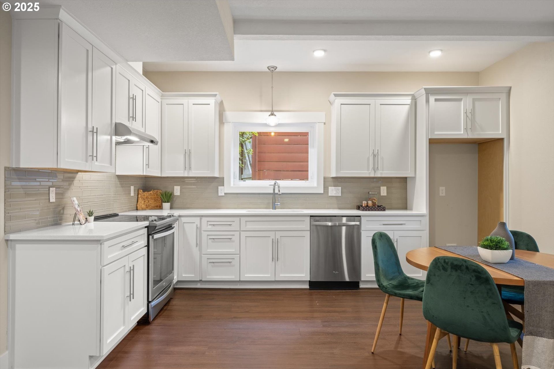 Open House Sunday 10/12 2-4pm. Be amazed by this fully remodeled contemporary home in the heart of Sellwood. Step inside where laminate flooring leads you through the open floor plan and into a spacious kitchen featuring an entertainer’s island, walk-in pantry, quartz countertops, stainless steel appliances, and a surplus of cabinet space. The main floor also includes an oversized bedroom and full bathroom. Upstairs, you’ll find a versatile loft that makes for a perfect home office, along with three additional bedrooms. The primary suite offers a true retreat with double vanities, a walk-in closet, and a glass shower. The lower level features a fully permitted 1-bedroom, 1-bath ADU with private exterior access, a full kitchen with custom cabinetry, and quartz countertops, ideal for supplemental income or a private guest suite. Outside, enjoy a beautiful Trex deck that wraps around the back of the home, overlooking the fully landscaped yard. Don’t miss this rare opportunity with endless possibilities, whether as a profitable rental, multi-family living, or your dream home in one of Portland’s most desirable neighborhoods.