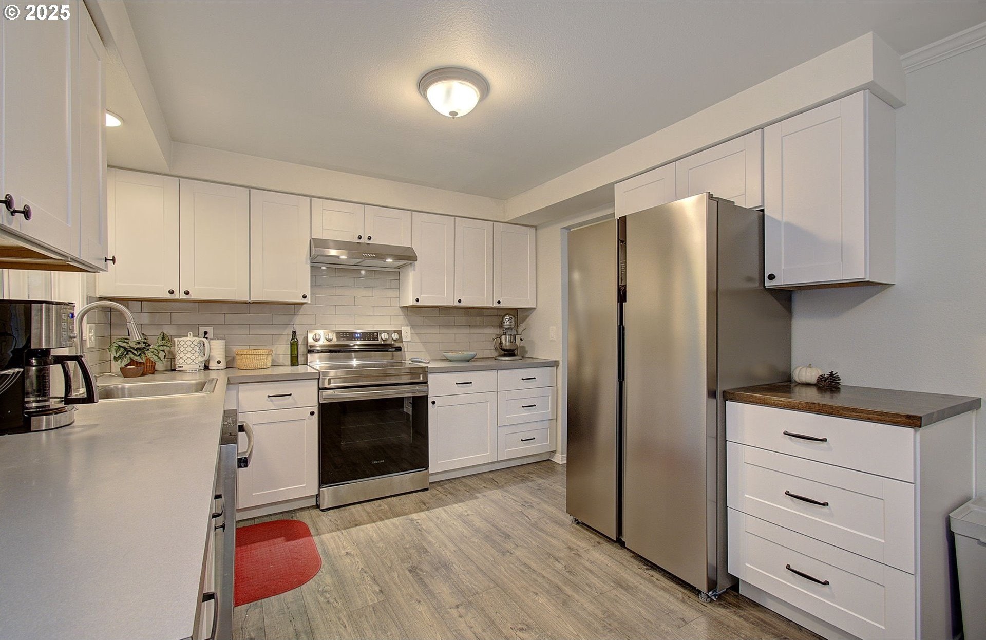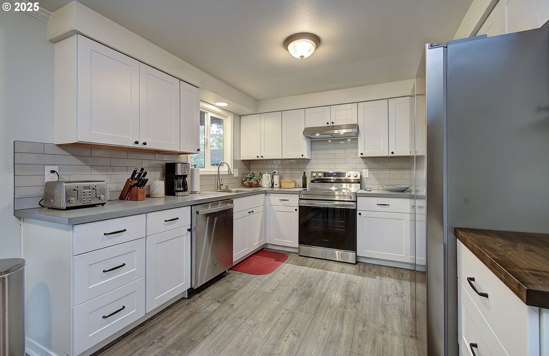 Discover this freshly painted and beautifully updated 3-bedroom, 2-bath home offering 1,312 sq ft of comfortable living space on a 0.20-acre lot in a quiet cul-de-sac. Step inside to find modern updates throughout, including new flooring, refreshed bathrooms, and upgraded vinyl windows that enhance energy efficiency and natural light. The stylish kitchen features stainless steel appliances and plenty of counter space, while the spacious living room includes a wood-burning fireplace that adds warmth and character. Each bedroom is thoughtfully designed for comfort and functionality. Outside, enjoy a large, fully fenced backyard with a covered patio—perfect for outdoor dining, entertaining, or relaxing. A tool shed offers convenient storage for garden tools and equipment. Conveniently located to schools, shopping, parks, and commuter routes, this home provides a blend of modern updates, privacy, and everyday convenience in one of Vancouver’s desirable neighborhoods.