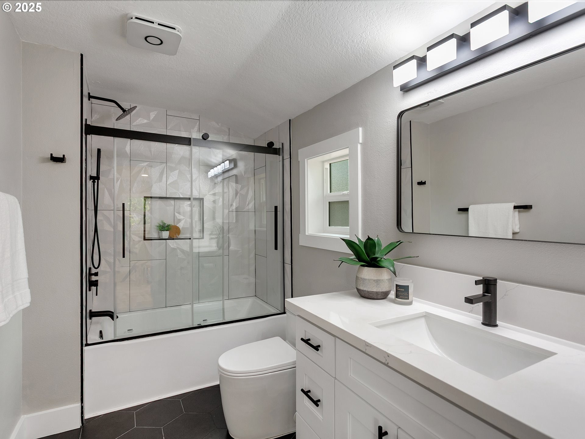 Completely refreshed and move-in ready, this Hillsdale gem welcomes you with a bright, open layout featuring soaring high ceilings and brand-new engineered solid hardwood floors. Fresh windows, doors, updated s-port plugin outlets, and all new lighting throughout flood the space with natural light and modern elegance.The stunning kitchen boasts sleek quartz countertops, a stylish tile backsplash, built-in stainless steel appliances, and a brand-new gas stove—ideal for culinary inspiration.Indulge in the high-end modern bathroom, complete with LED dimmable lighting, exquisite custom tilework, and frameless glass sliding shower doors for a spa-like retreat.The spacious bedrooms have been thoughtfully updated for ultimate comfort and style.Step outside to your private oasis: a new Trex deck and fully fenced yard, topped off with a brand-new roof and brand new complete sewer line for peace of mind and worry-free enjoyment—perfect for relaxing or hosting friends.All this, just minutes from vibrant shops, scenic parks, and seamless freeway access! [Home Energy Score = 10. HES Report at https://rpt.greenbuildingregistry.com/hes/OR10242349]