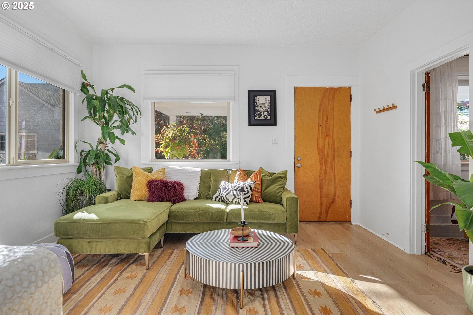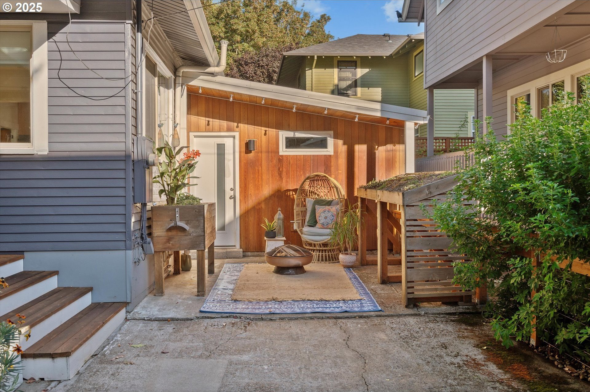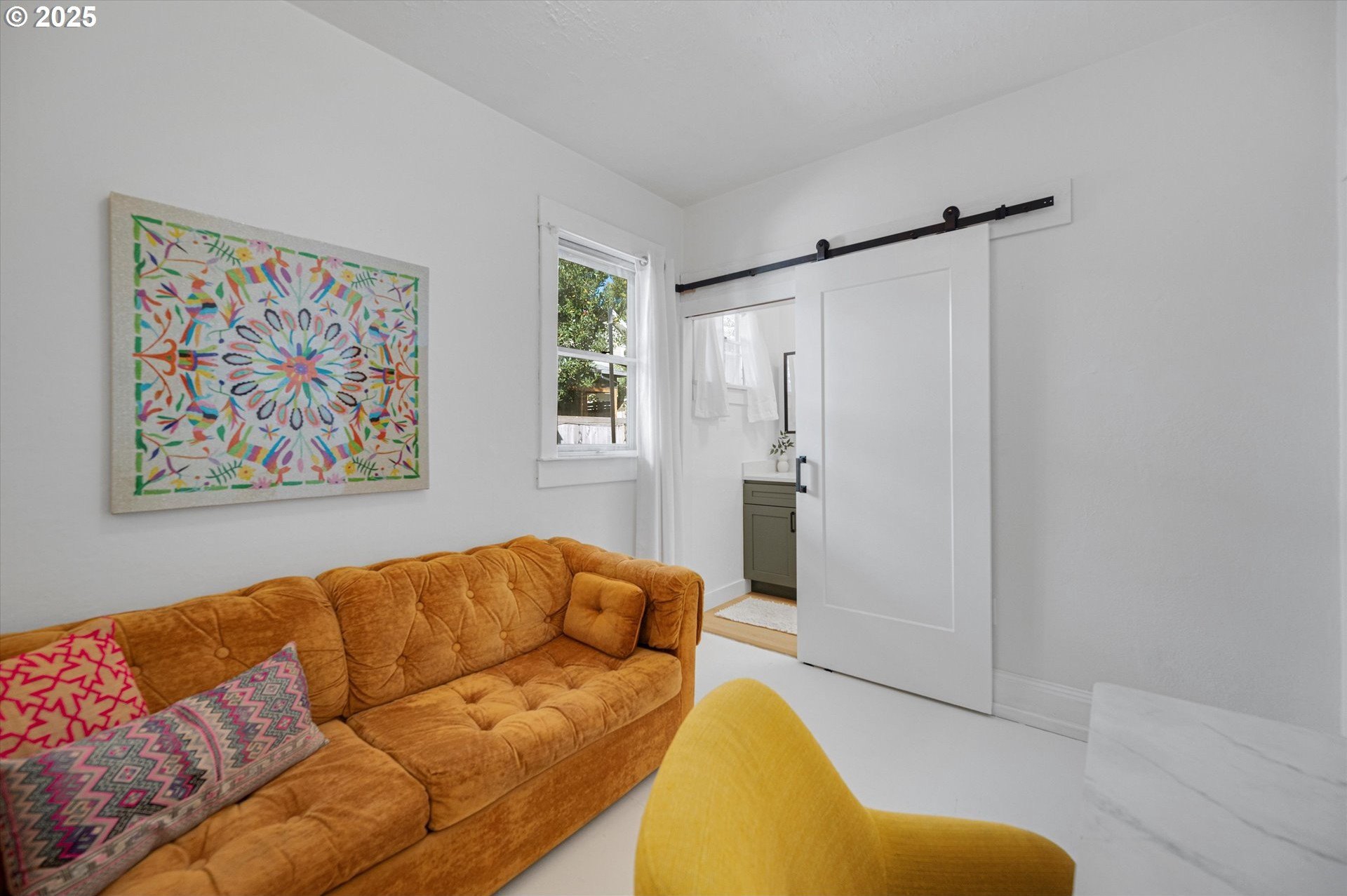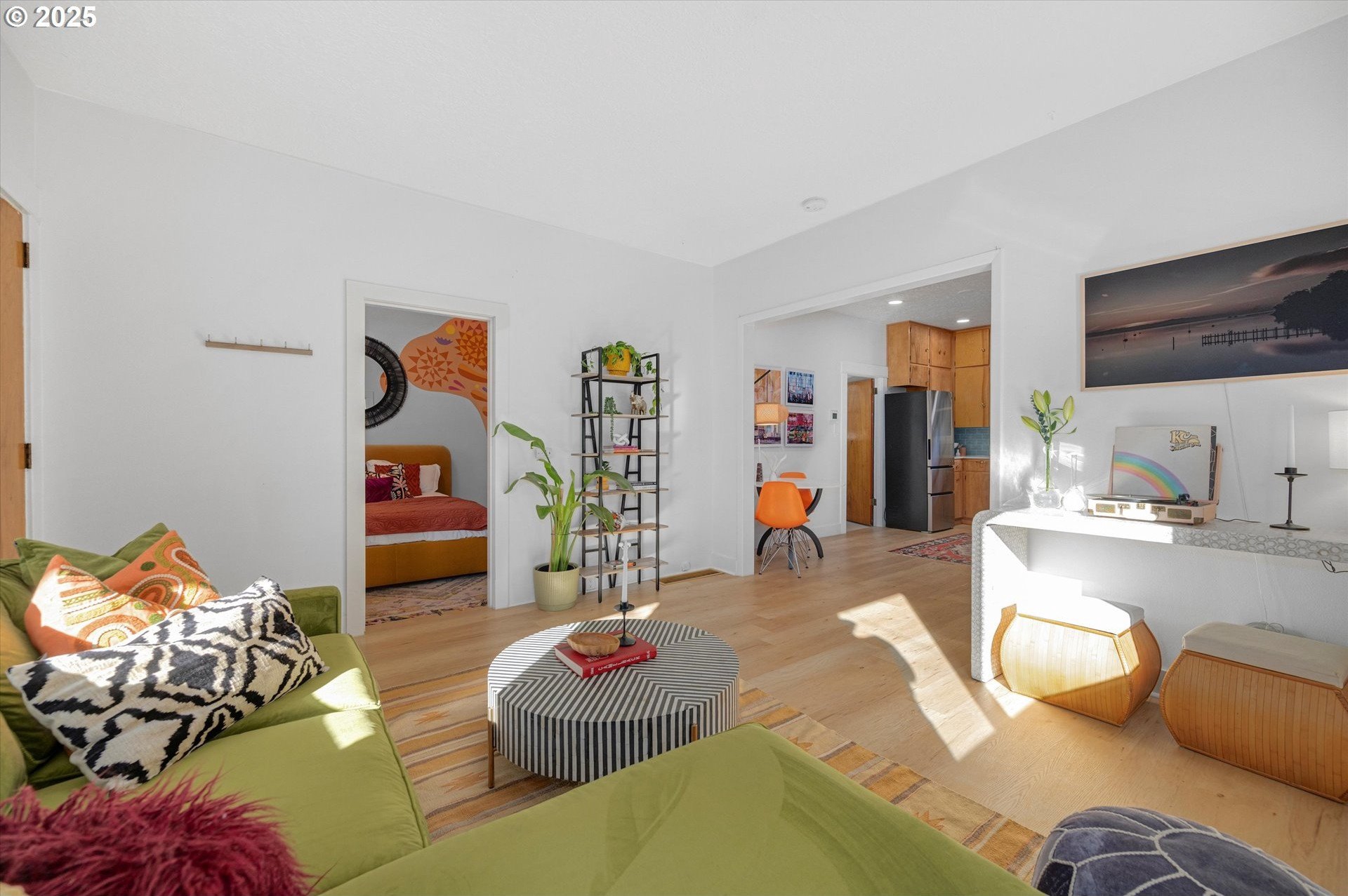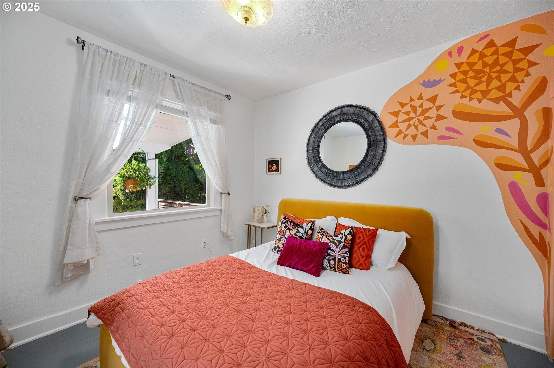 Hidden away on a quiet side street, this storybook Sunnyside cottage is a rare Portland find — just blocks to Belmont Street and Laurelhurst Park. Every detail of this home has been thoughtfully reimagined for modern living, with convenience, comfort, and an eye for design. Step inside to a light-filled living room with 8ft. ceilings, custom finishes, and open floorplan. The updated kitchen shines with quartz countertops, designer tile, and stainless appliances. Enjoy single-level living with three spacious bedrooms, two updated baths, and a large primary suite with a skylight illuminating a hand painted mural by Portland's own Lettie Jane Rennekamp. Custom mudroom adds style and storage, while a partially finished basement with 7ft ceiling offers additional living space, or an easy path to an ADU conversion. Sip your morning matcha or evening negroni on the covered all-season porch, surrounded by native drought tolerant landscaping. When its time to explore, you can head out to Por que' No, Kens Artisan Pizza or Stumptown Coffee within blocks. Updates include modernized kitchen and baths, newer composition roof, gutters, furnace & A/C, 200 Amp panel, and so much more. [Home Energy Score = 5. HES Report at https://rpt.greenbuildingregistry.com/hes/OR10108117]