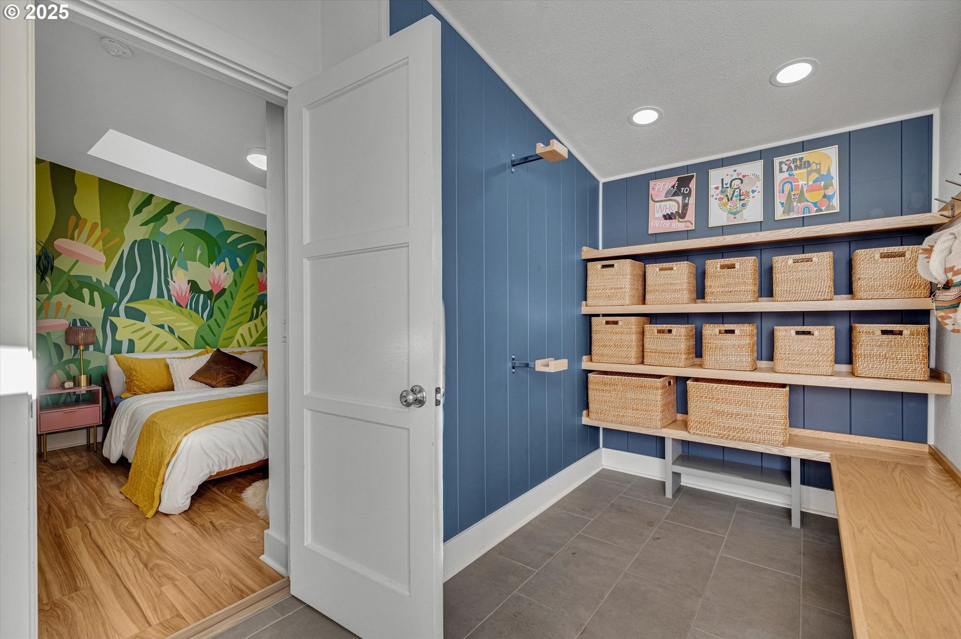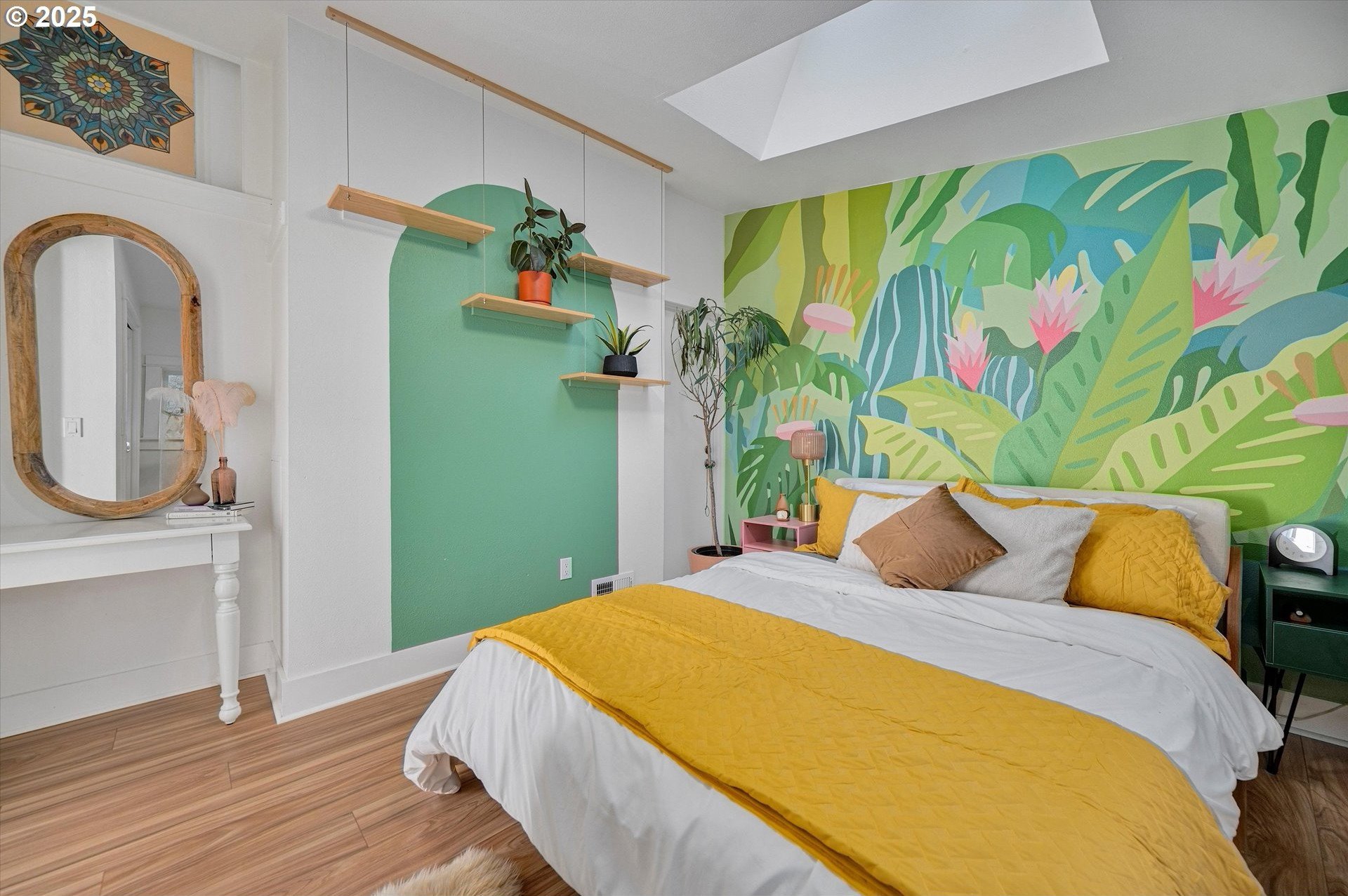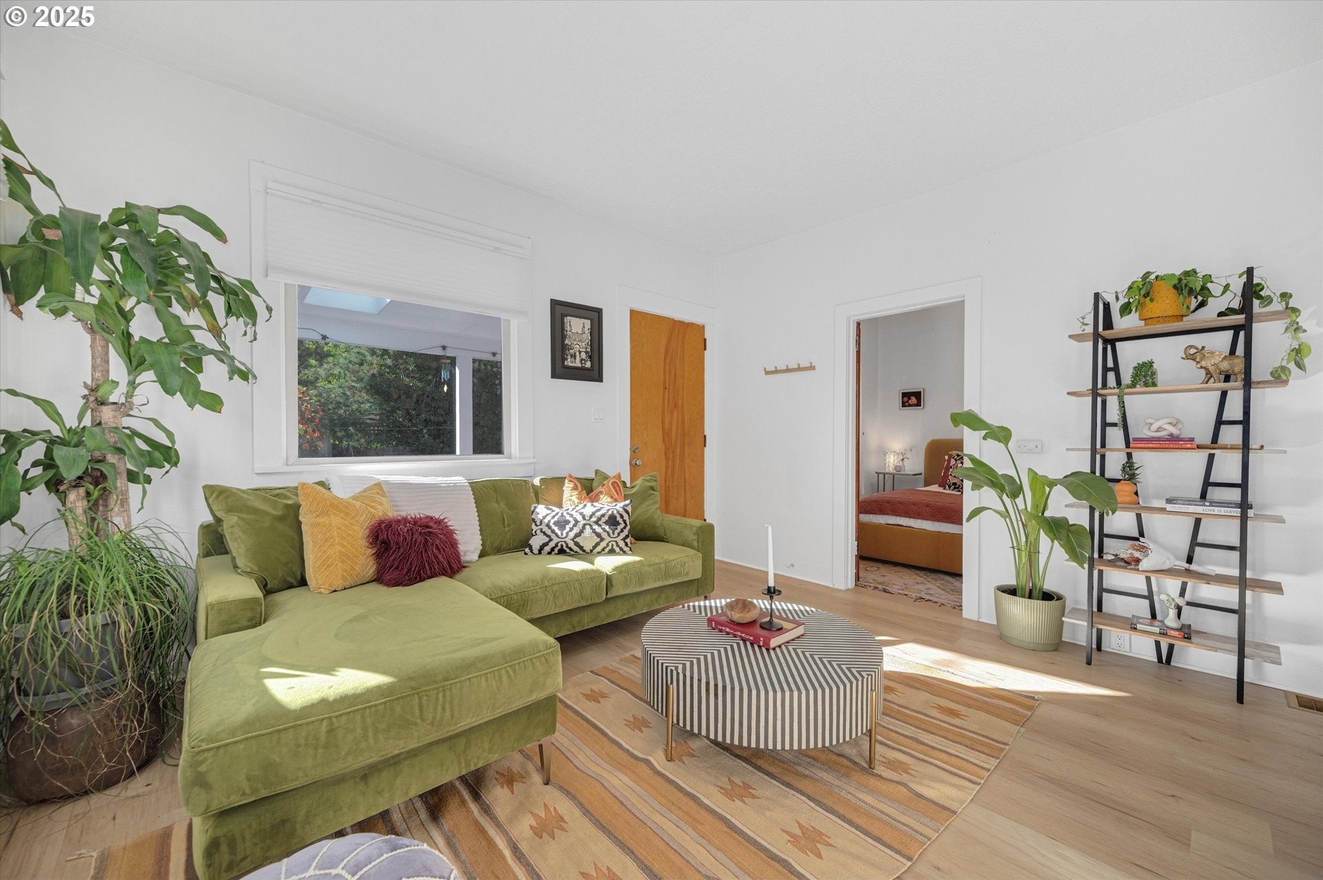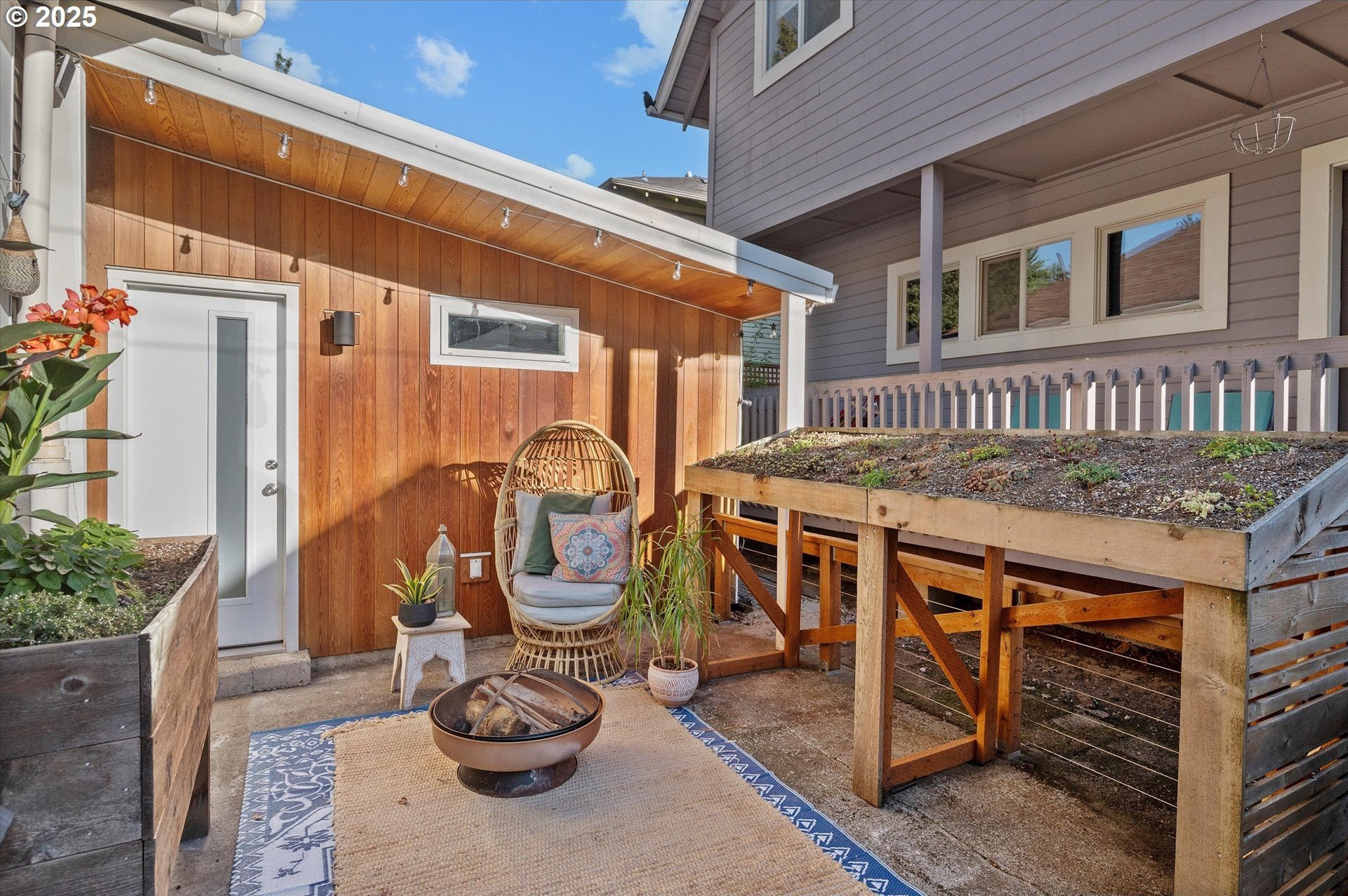 Hidden away on a quiet side street, this storybook Sunnyside cottage is a rare Portland find — just blocks to Belmont Street and Laurelhurst Park. Every detail of this home has been thoughtfully reimagined for modern living, with convenience, comfort, and an eye for design. Step inside to a light-filled living room with 8ft. ceilings, custom finishes, and open floorplan. The updated kitchen shines with quartz countertops, designer tile, and stainless appliances. Enjoy single-level living with three spacious bedrooms, two updated baths, and a large primary suite with a skylight illuminating a hand painted mural by Portland's own Lettie Jane Rennekamp. Custom mudroom adds style and storage, while a partially finished basement with 7ft ceiling offers additional living space, or an easy path to an ADU conversion. Sip your morning matcha or evening negroni on the covered all-season porch, surrounded by native drought tolerant landscaping. When its time to explore, you can head out to Por que' No, Kens Artisan Pizza or Stumptown Coffee within blocks. Updates include modernized kitchen and baths, newer composition roof, gutters, furnace & A/C, 200 Amp panel, and so much more. [Home Energy Score = 5. HES Report at https://rpt.greenbuildingregistry.com/hes/OR10108117]