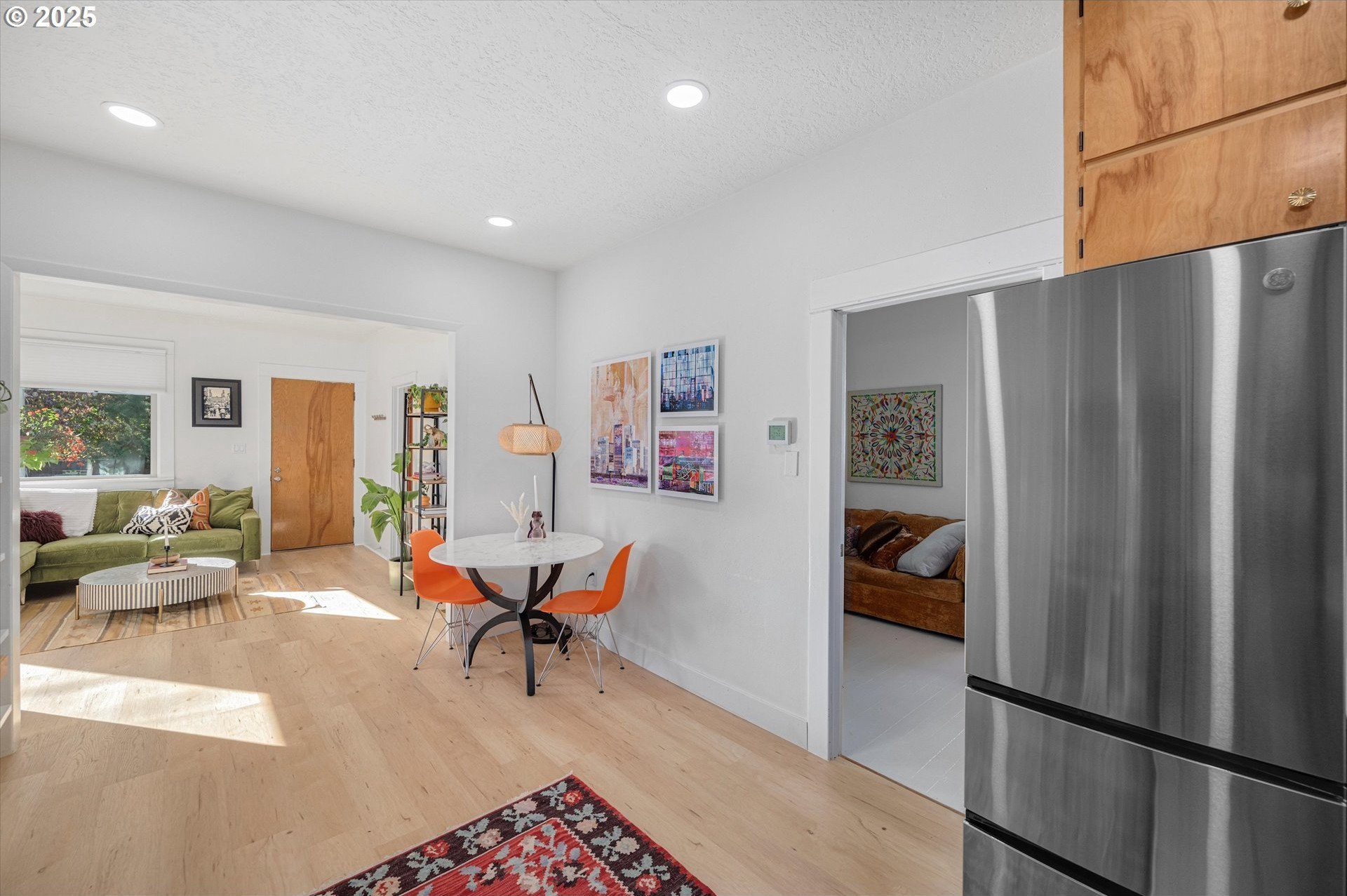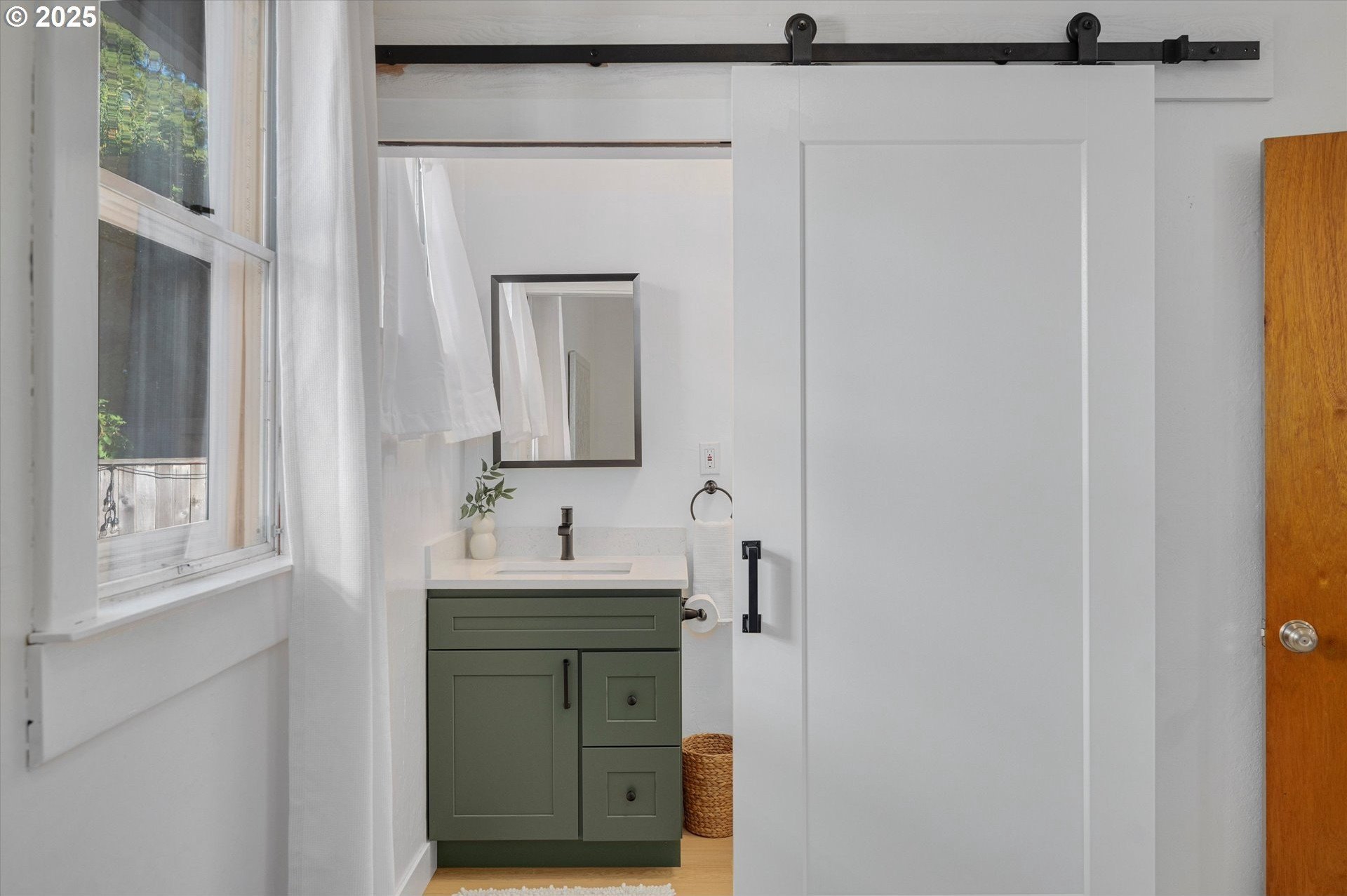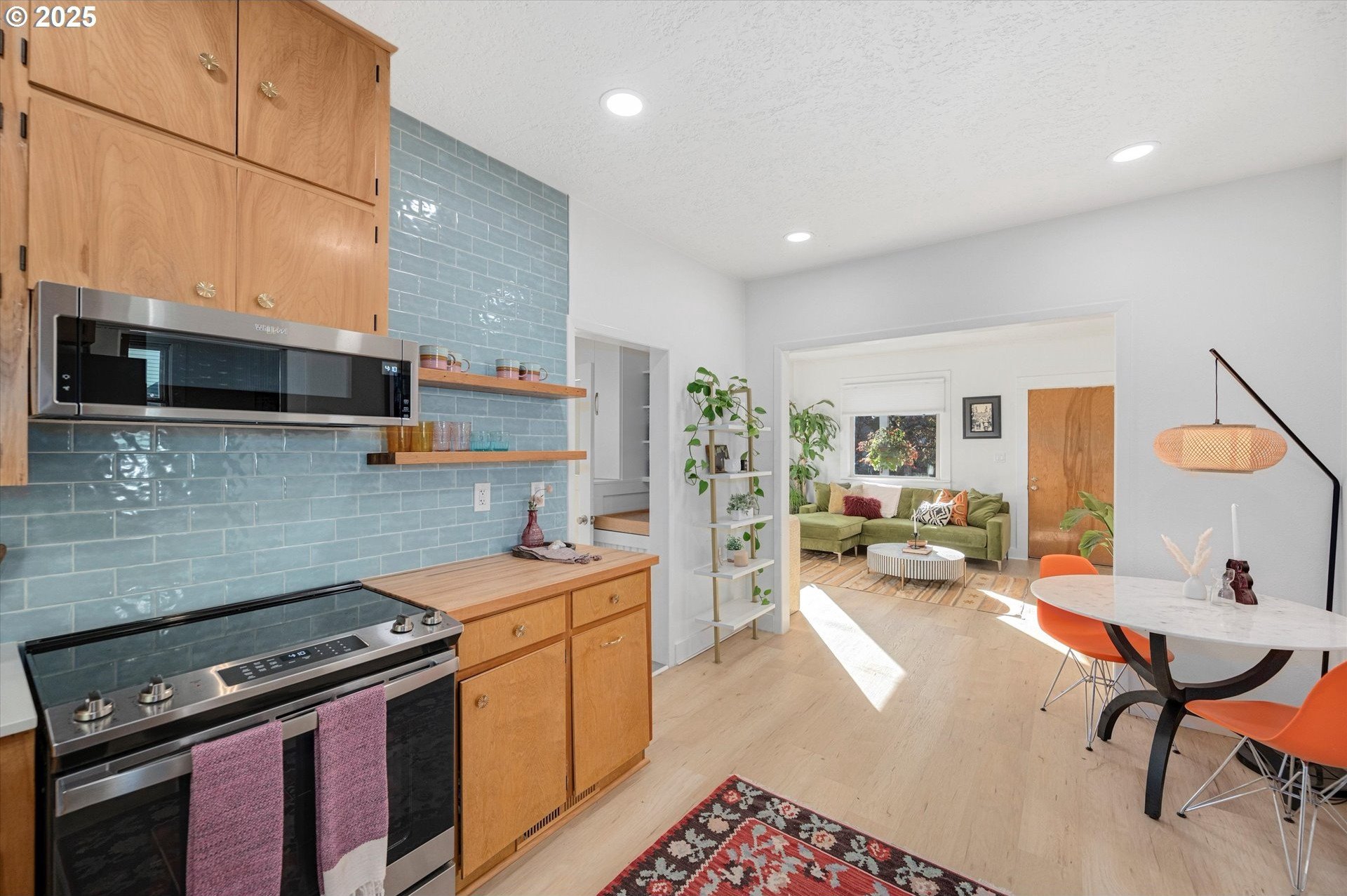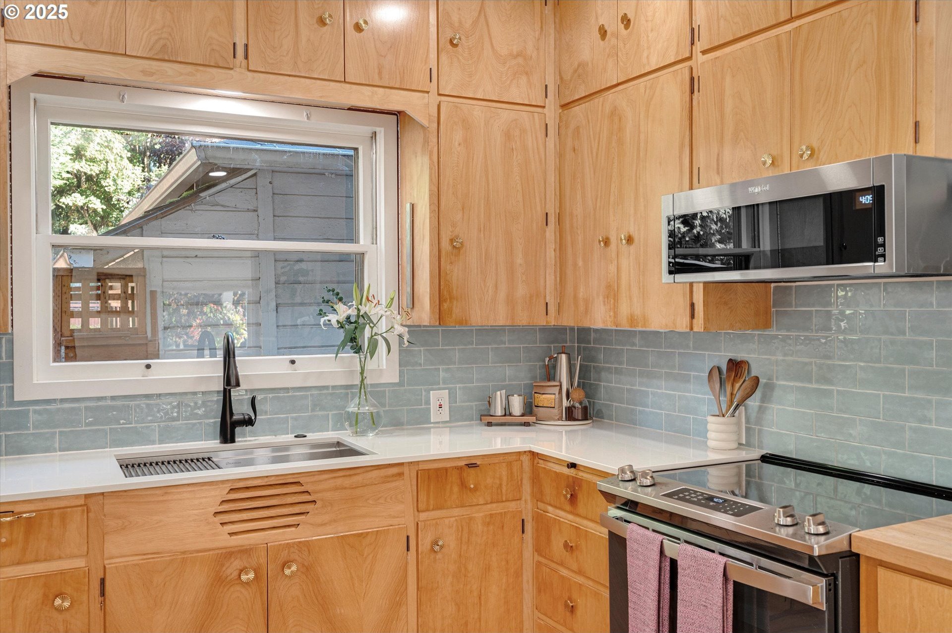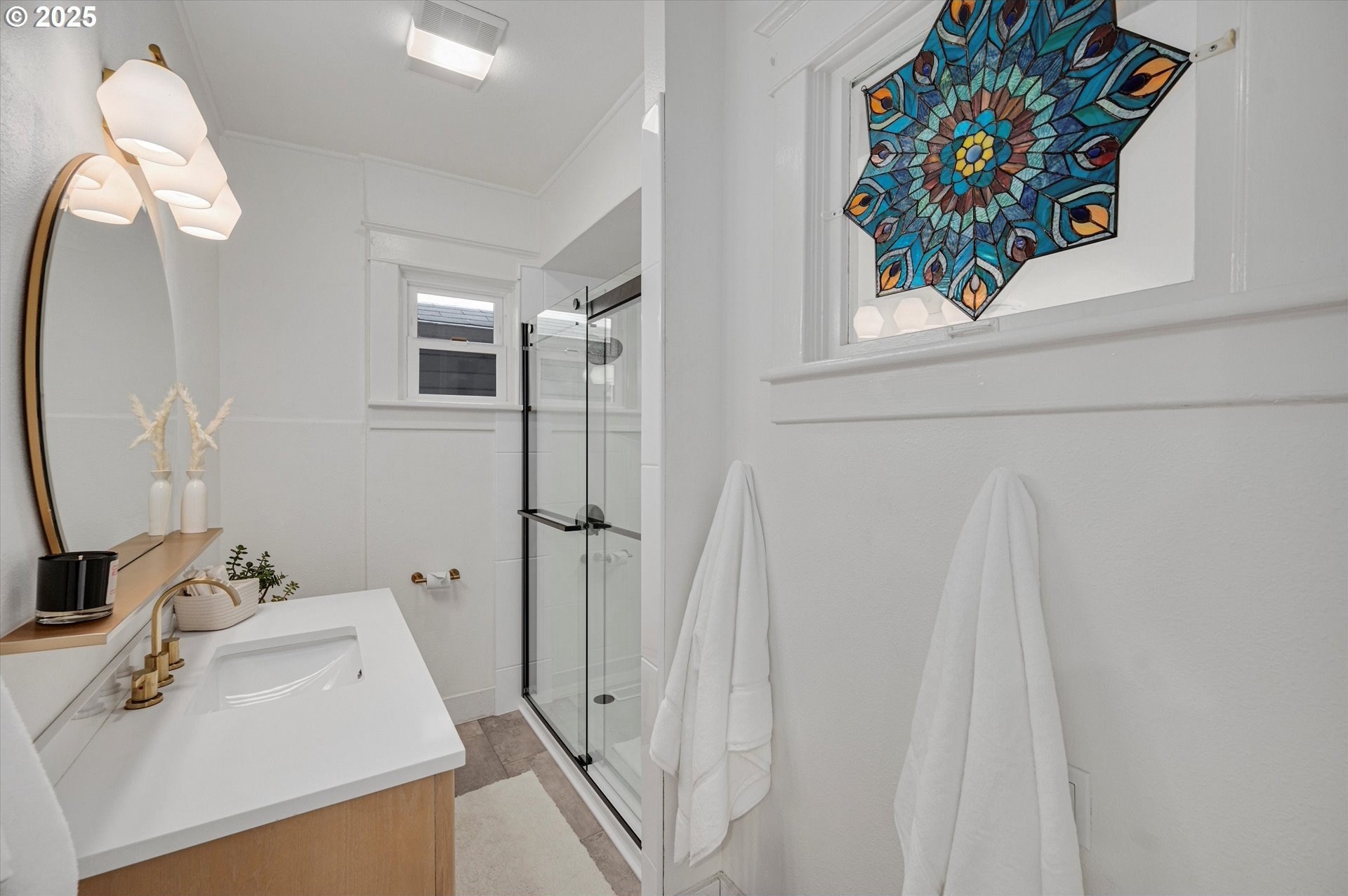 Hidden away on a quiet side street, this storybook Sunnyside cottage is a rare Portland find — just blocks to Belmont Street and Laurelhurst Park. Every detail of this home has been thoughtfully reimagined for modern living, with convenience, comfort, and an eye for design. Step inside to a light-filled living room with 8ft. ceilings, custom finishes, and open floorplan. The updated kitchen shines with quartz countertops, designer tile, and stainless appliances. Enjoy single-level living with three spacious bedrooms, two updated baths, and a large primary suite with a skylight illuminating a hand painted mural by Portland's own Lettie Jane Rennekamp. Custom mudroom adds style and storage, while a partially finished basement with 7ft ceiling offers additional living space, or an easy path to an ADU conversion. Sip your morning matcha or evening negroni on the covered all-season porch, surrounded by native drought tolerant landscaping. When its time to explore, you can head out to Por que' No, Kens Artisan Pizza or Stumptown Coffee within blocks. Updates include modernized kitchen and baths, newer composition roof, gutters, furnace & A/C, 200 Amp panel, and so much more. [Home Energy Score = 5. HES Report at https://rpt.greenbuildingregistry.com/hes/OR10108117]