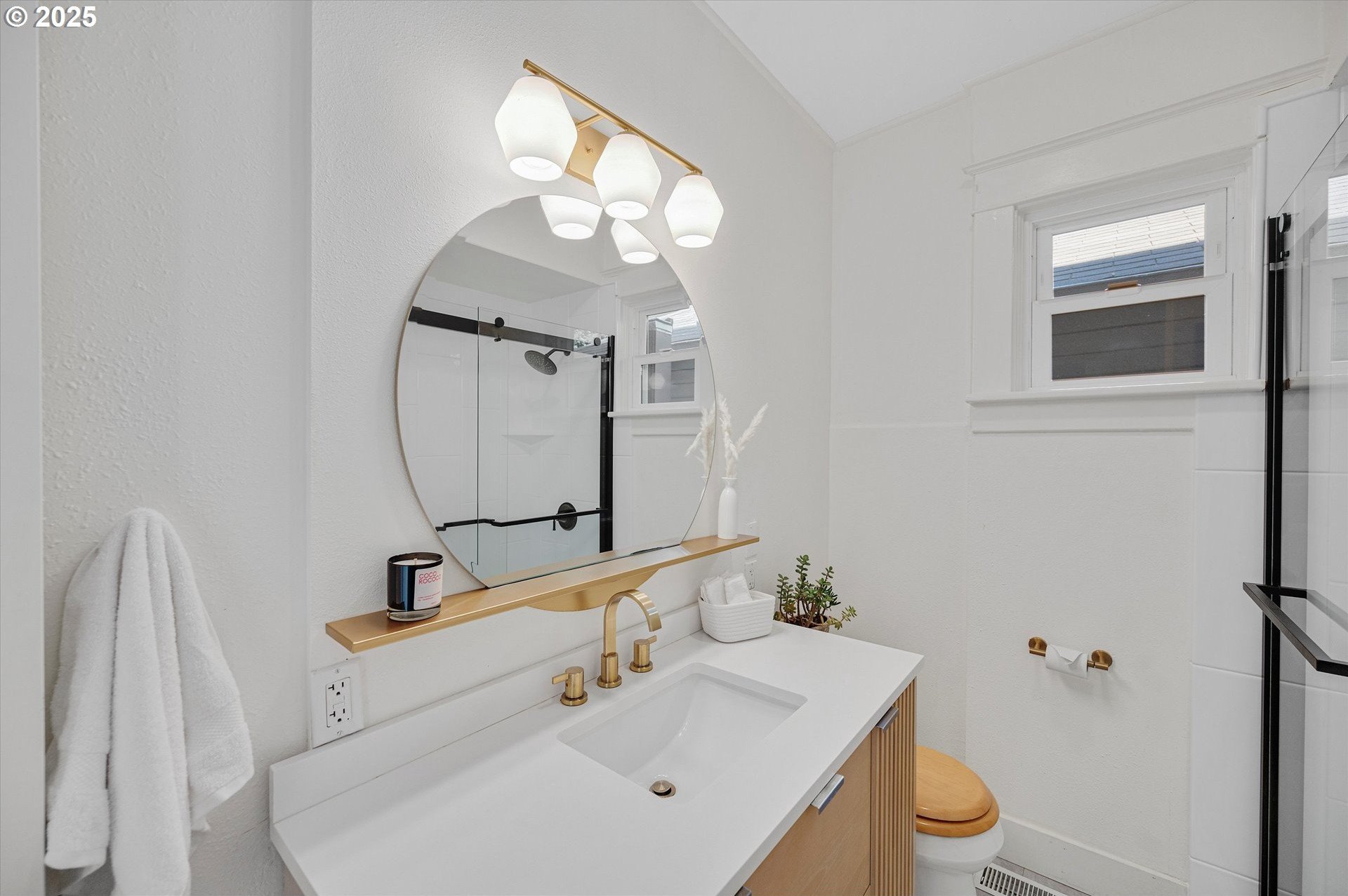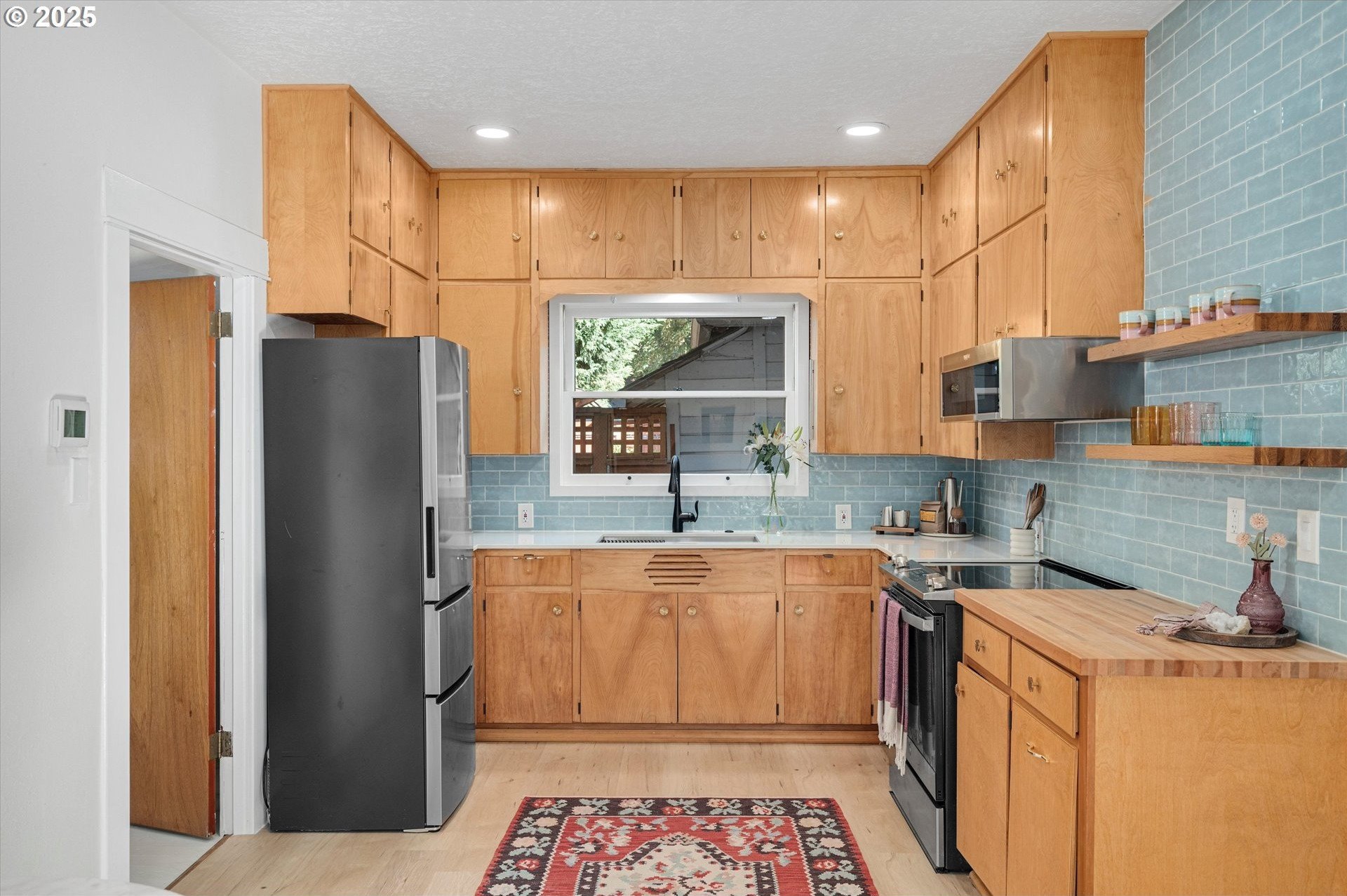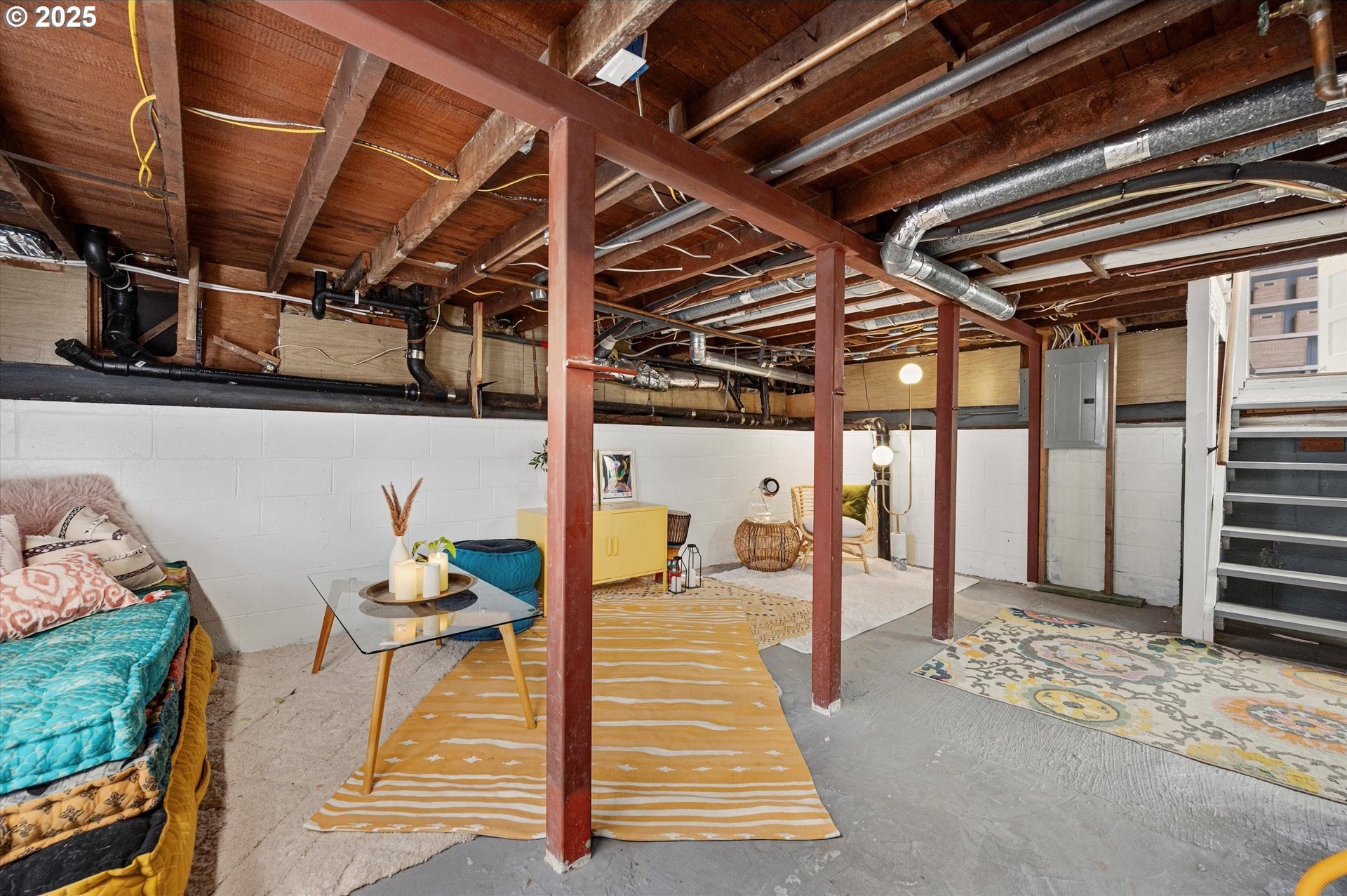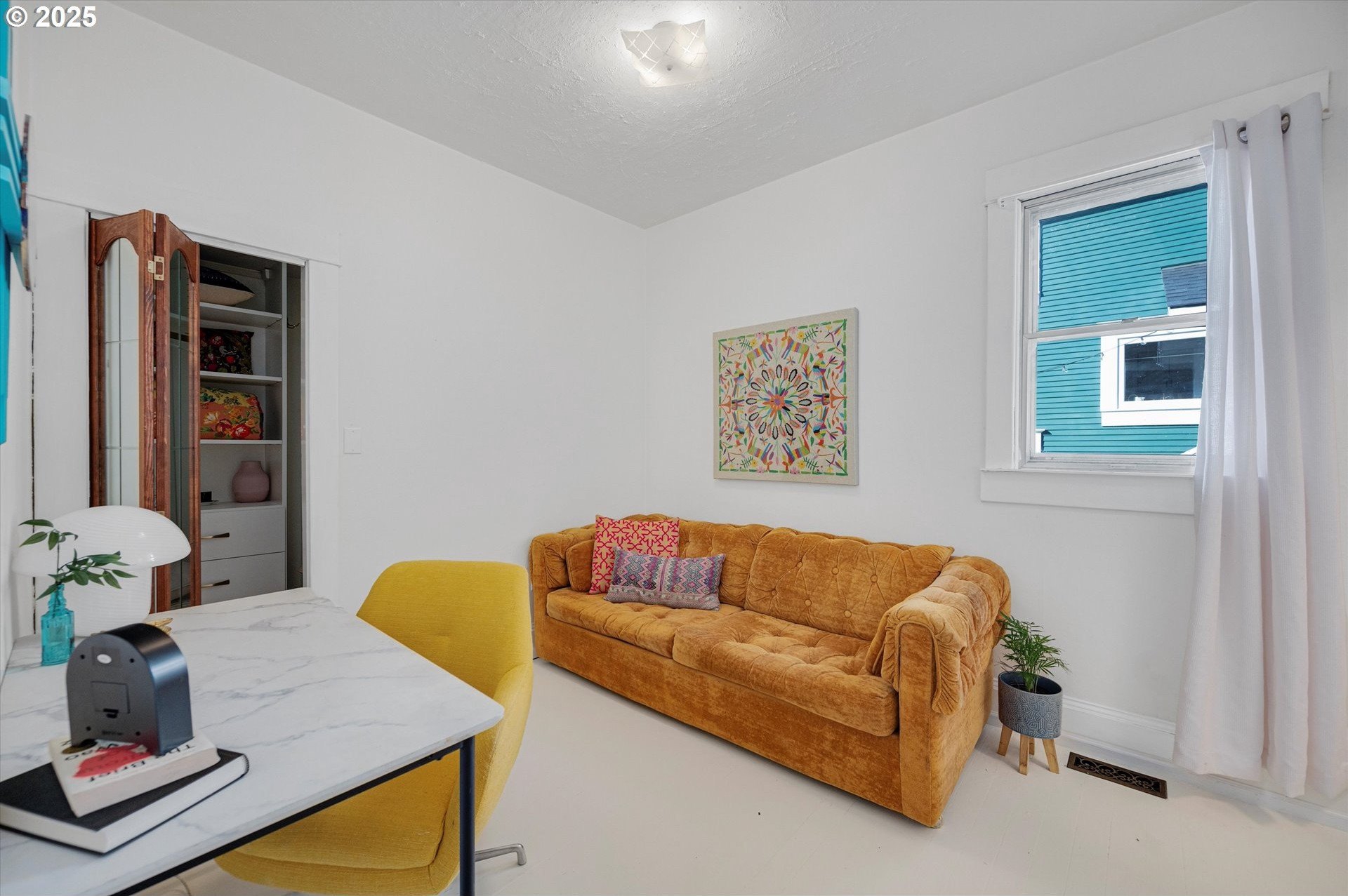 Hidden away on a quiet side street, this storybook Sunnyside cottage is a rare Portland find — just blocks to Belmont Street and Laurelhurst Park. Every detail of this home has been thoughtfully reimagined for modern living, with convenience, comfort, and an eye for design. Step inside to a light-filled living room with 8ft. ceilings, custom finishes, and open floorplan. The updated kitchen shines with quartz countertops, designer tile, and stainless appliances. Enjoy single-level living with three spacious bedrooms, two updated baths, and a large primary suite with a skylight illuminating a hand painted mural by Portland's own Lettie Jane Rennekamp. Custom mudroom adds style and storage, while a partially finished basement with 7ft ceiling offers additional living space, or an easy path to an ADU conversion. Sip your morning matcha or evening negroni on the covered all-season porch, surrounded by native drought tolerant landscaping. When its time to explore, you can head out to Por que' No, Kens Artisan Pizza or Stumptown Coffee within blocks. Updates include modernized kitchen and baths, newer composition roof, gutters, furnace & A/C, 200 Amp panel, and so much more. [Home Energy Score = 5. HES Report at https://rpt.greenbuildingregistry.com/hes/OR10108117]