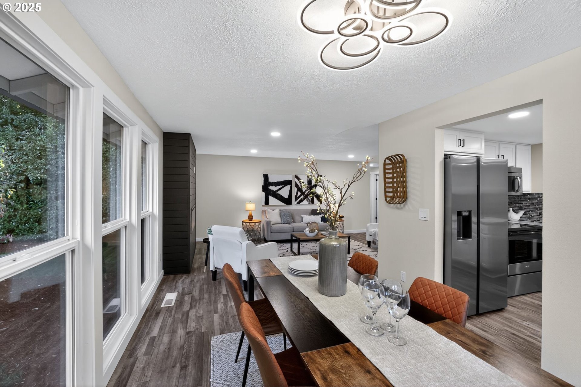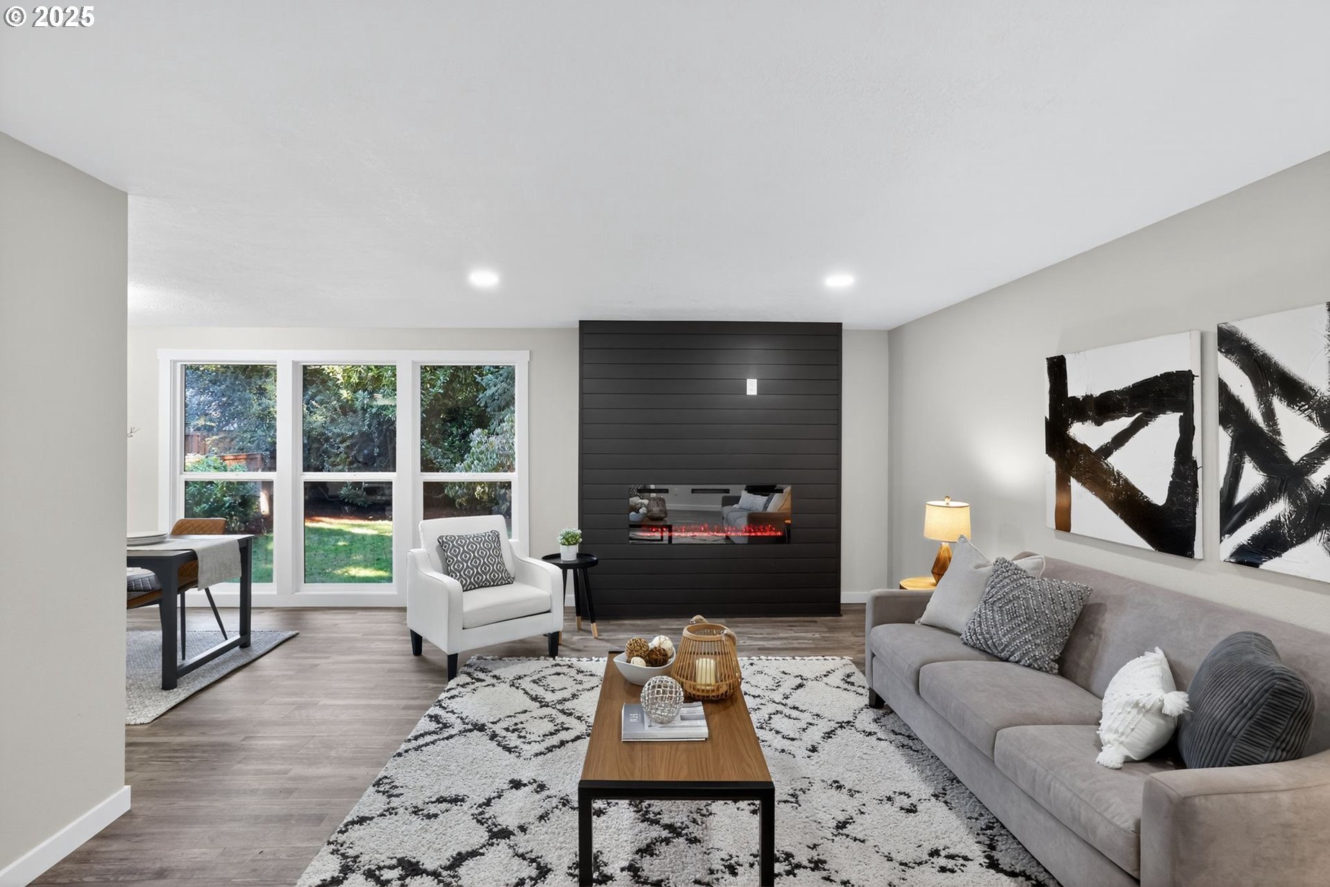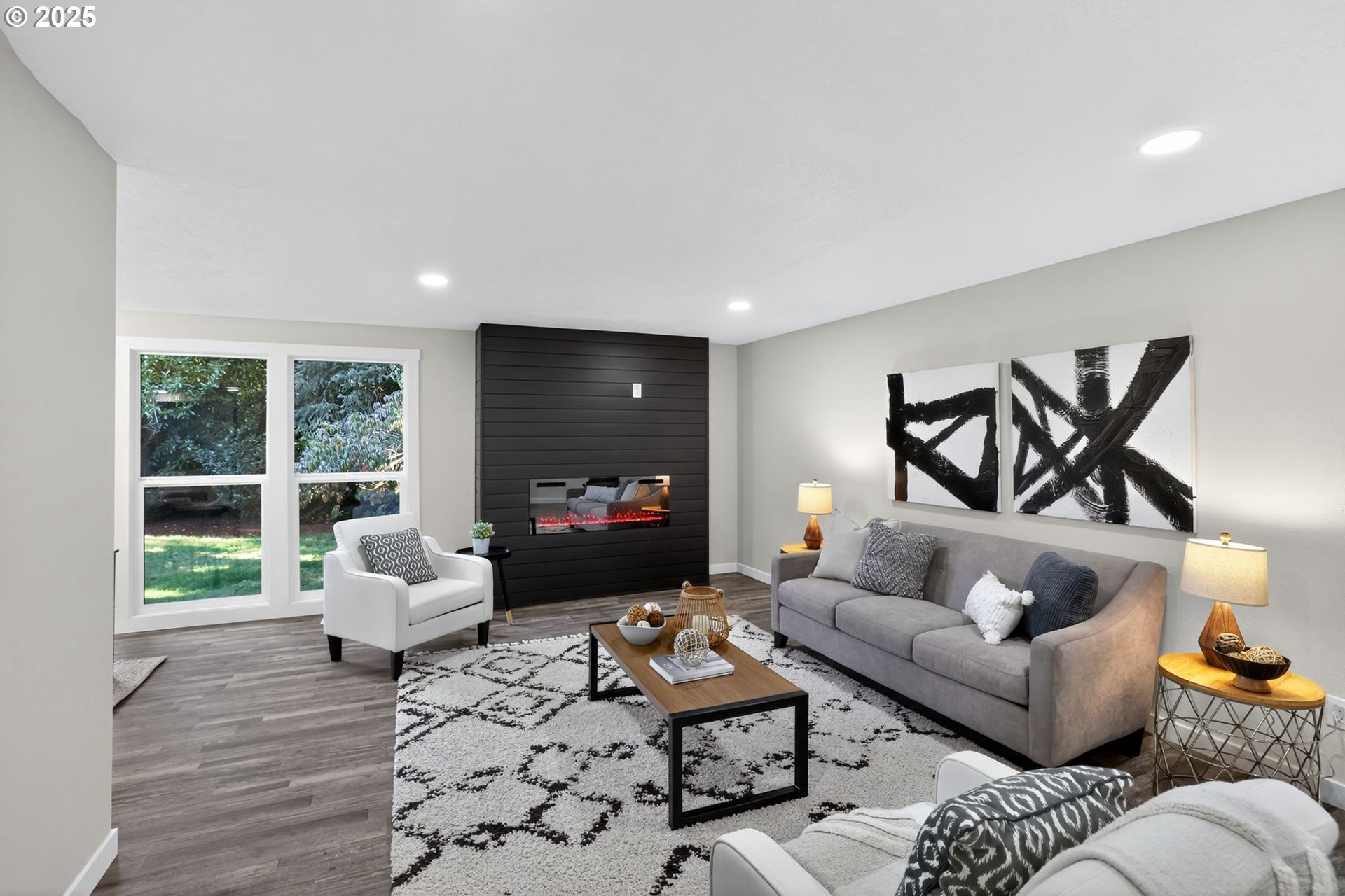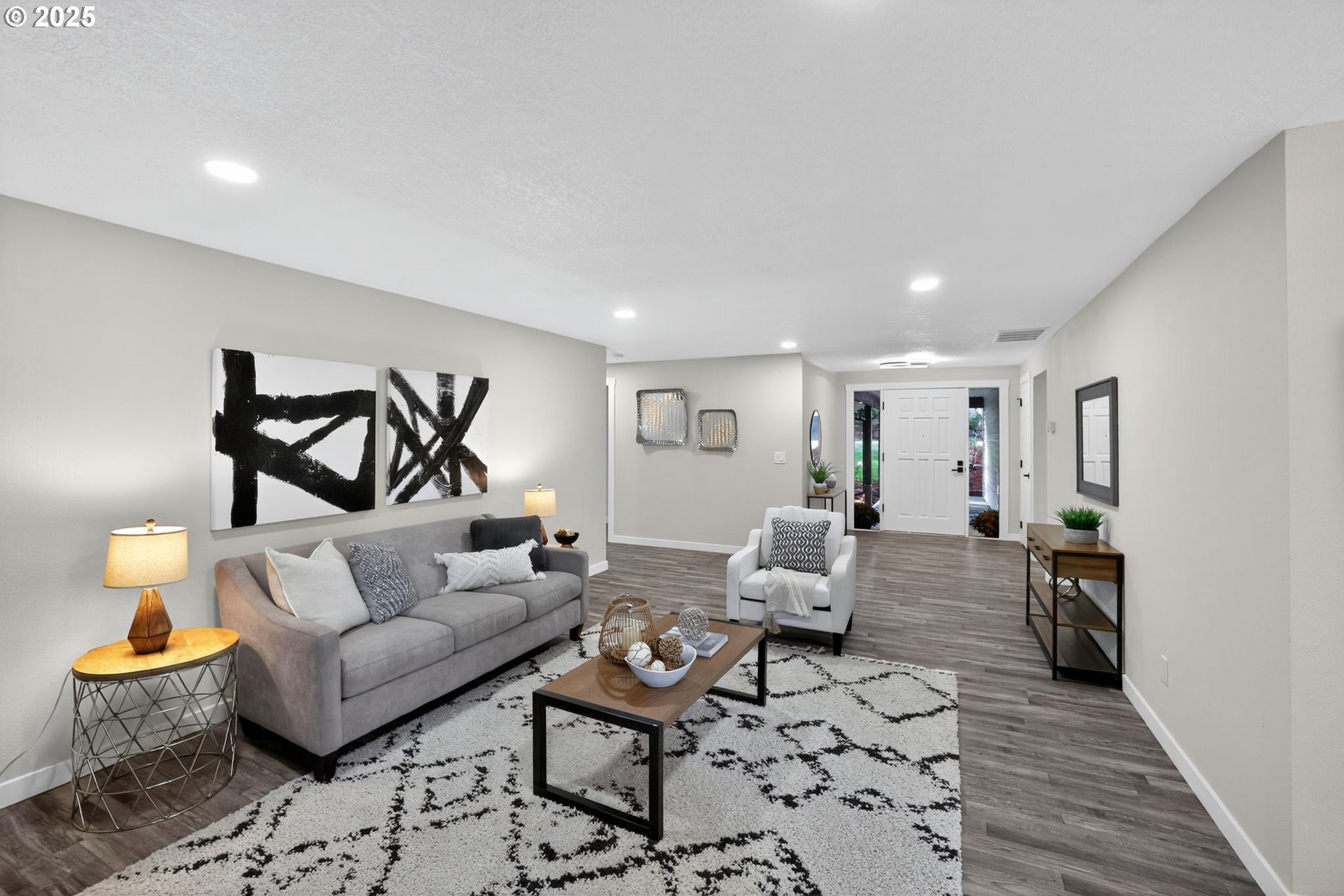Step inside this beautifully updated 3-bedroom, 2-bath home that’s full of charm and modern touches! This home offers two comfortable living spaces, giving you plenty of room to relax or entertain. The kitchen sits perfectly between one of the living areas and the dining room — featuring an undermounted sink, mostly new appliances, and easy flow throughout. The new electric fireplace adds a cozy modern vibe, and both bathrooms have been completely refreshed — the primary bathroom shines with a gorgeous gold and black design and a stunning shower backsplash, while the hall bath keeps things bright with white and gold accents. Other updates include all-new LVP flooring throughout, new windows, a newer roof, fresh interior and exterior paint, new trim, light fixtures, landscaping, deck, driveway, and gutters. *Seller is a licensed broker in OR